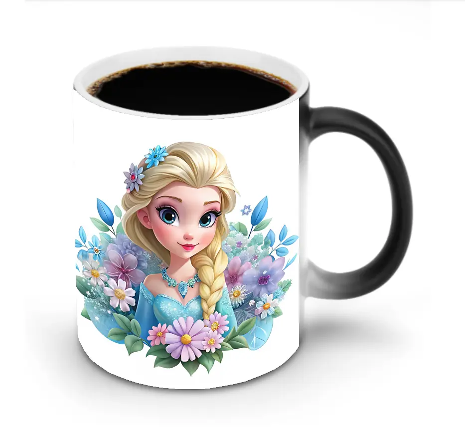 アナと雪の女王 エルサ フラワーモチーフ 優雅オリジナルデザイン - 変色マグカップ ・ セラミック ・ 熱転写プリント ・ 耐久性 高品質 ・ ギフト・自宅用 コーヒー お茶
