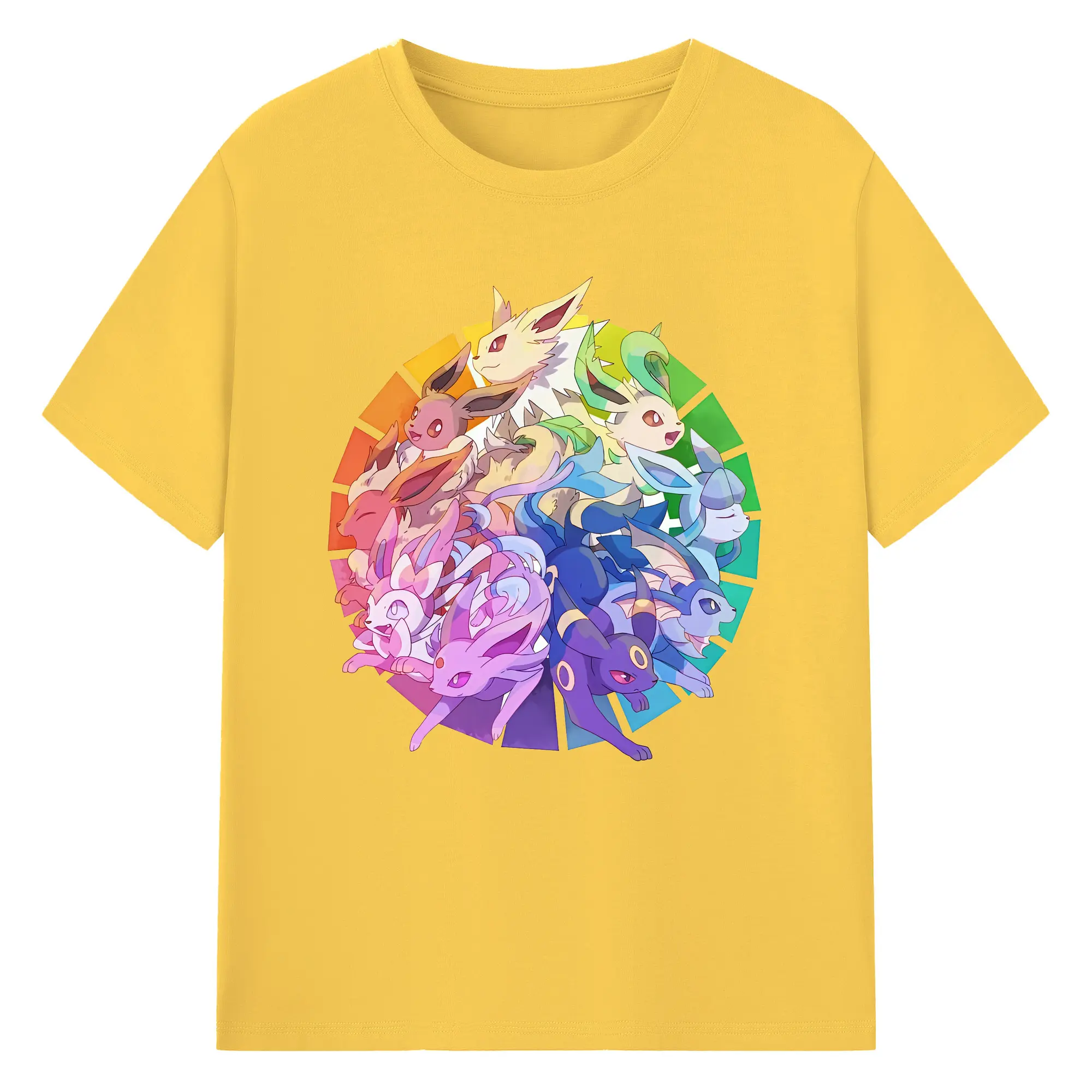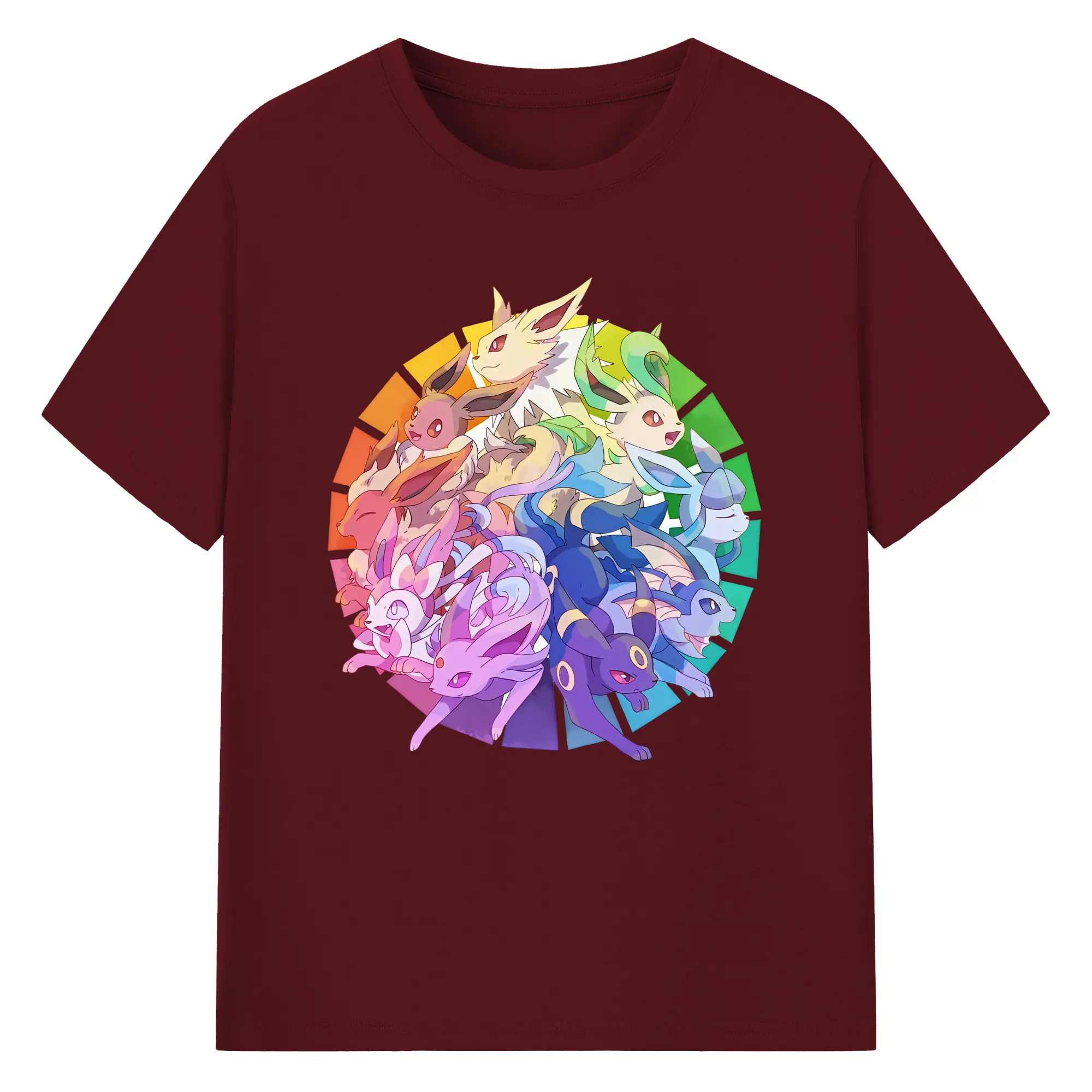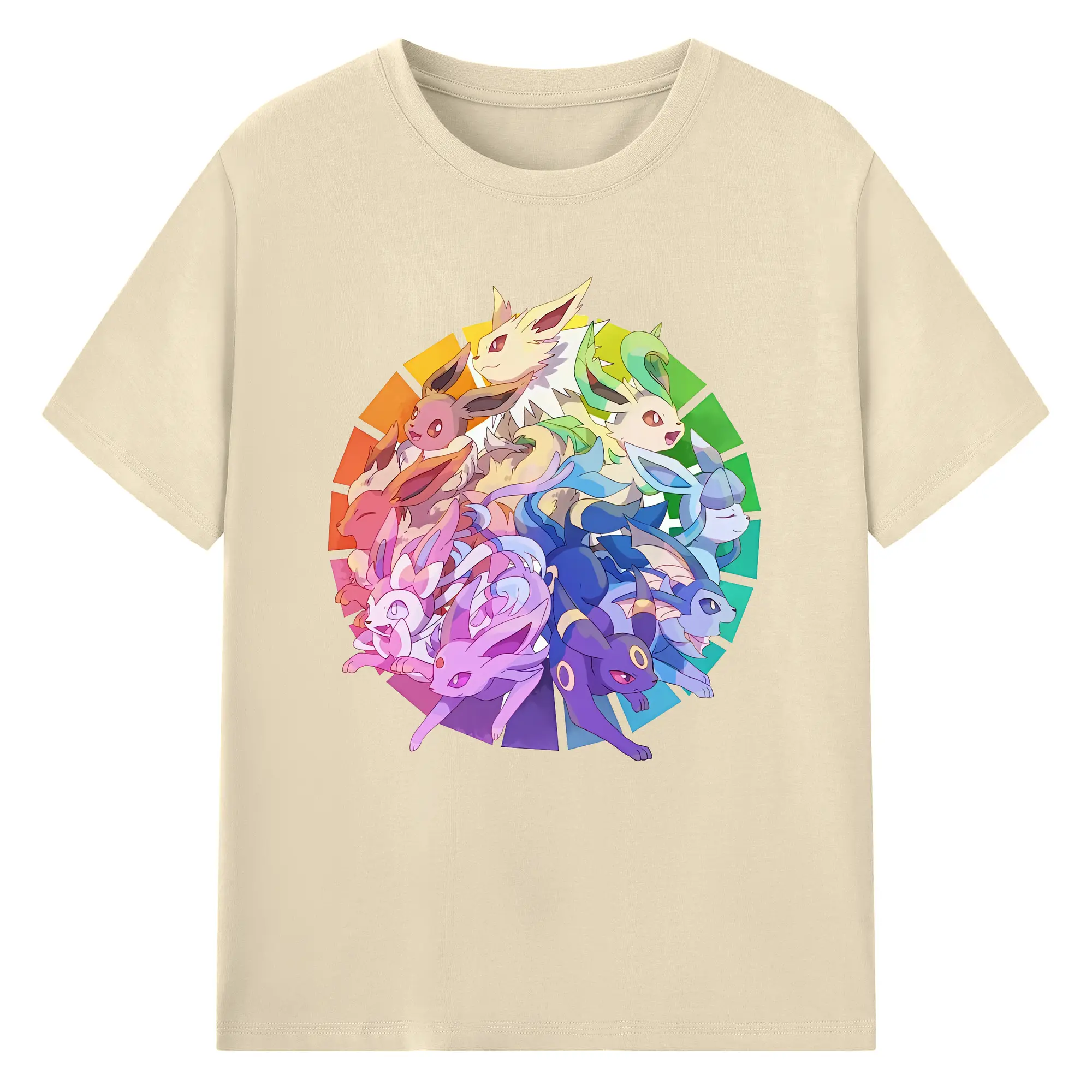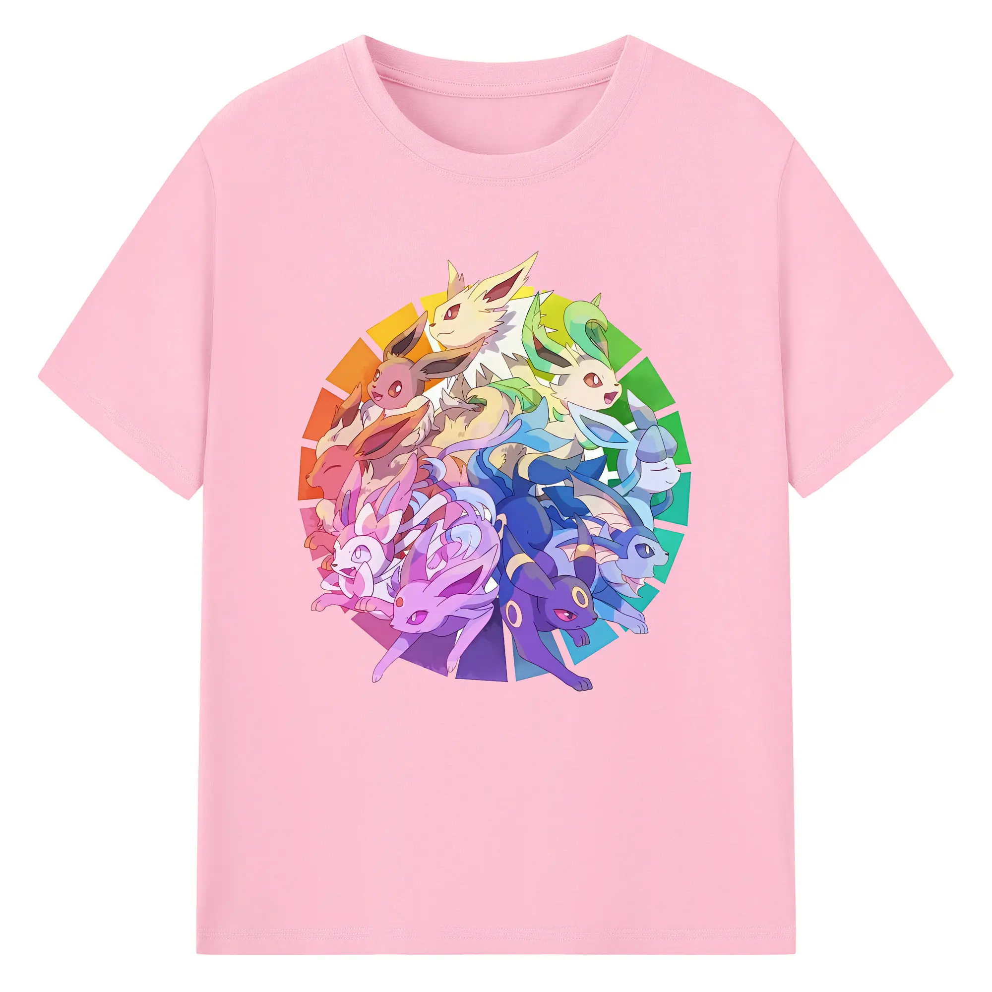 イーブイ進化系ブイズ集合桜デザイン - 綿100% 半袖Tシャツ ・ フロントプリント ・ 快適 通気性 ・ 日常使い 散歩 スポーツ用
