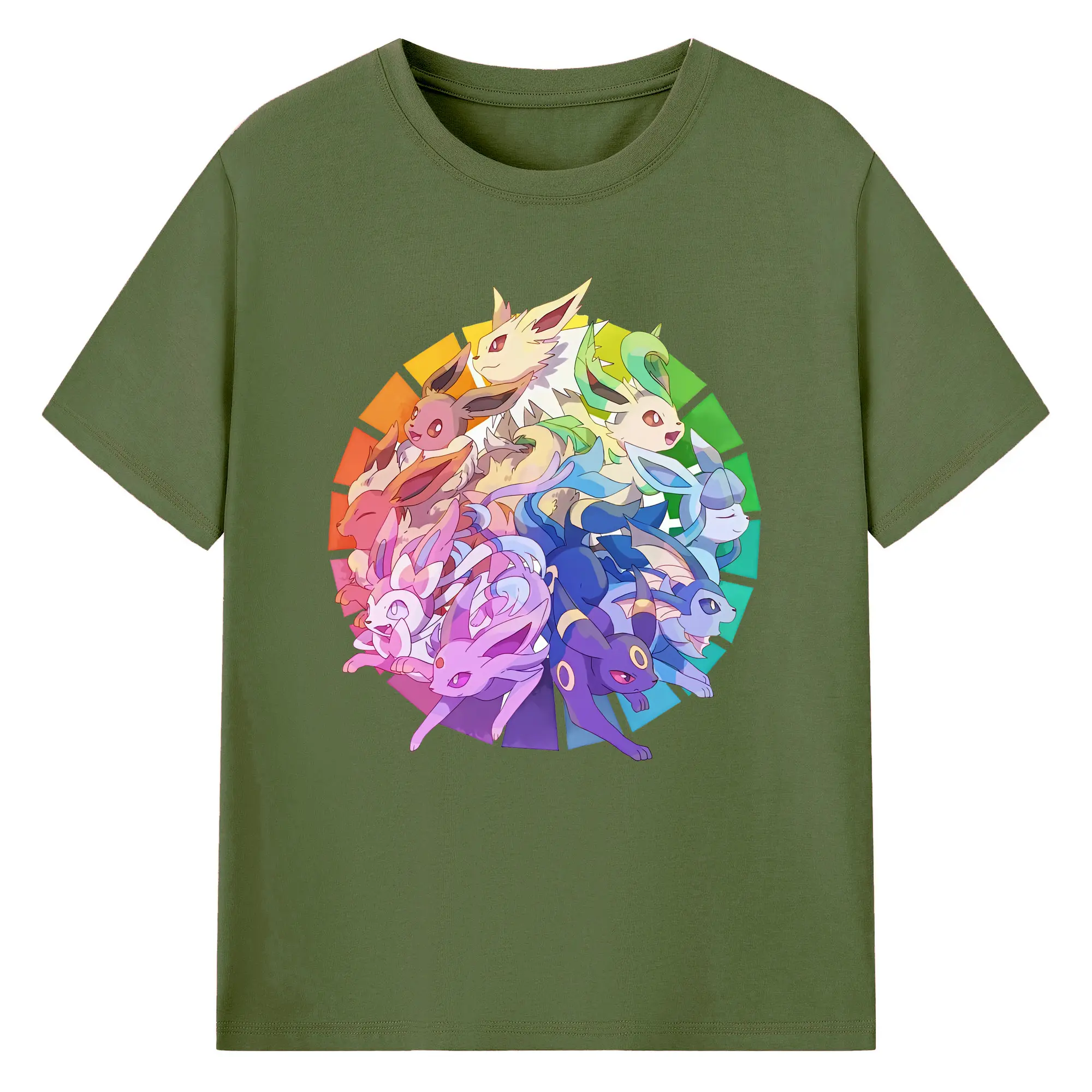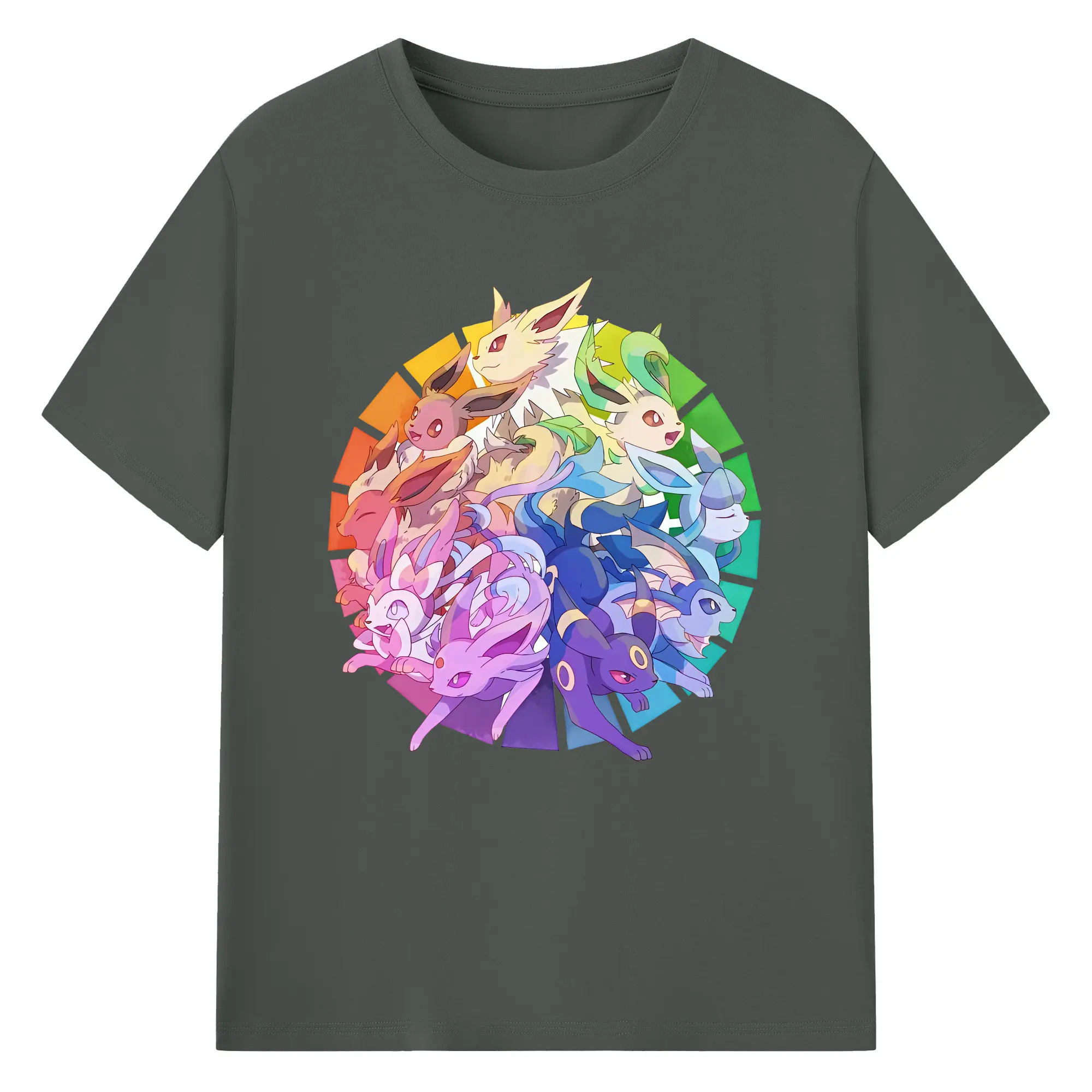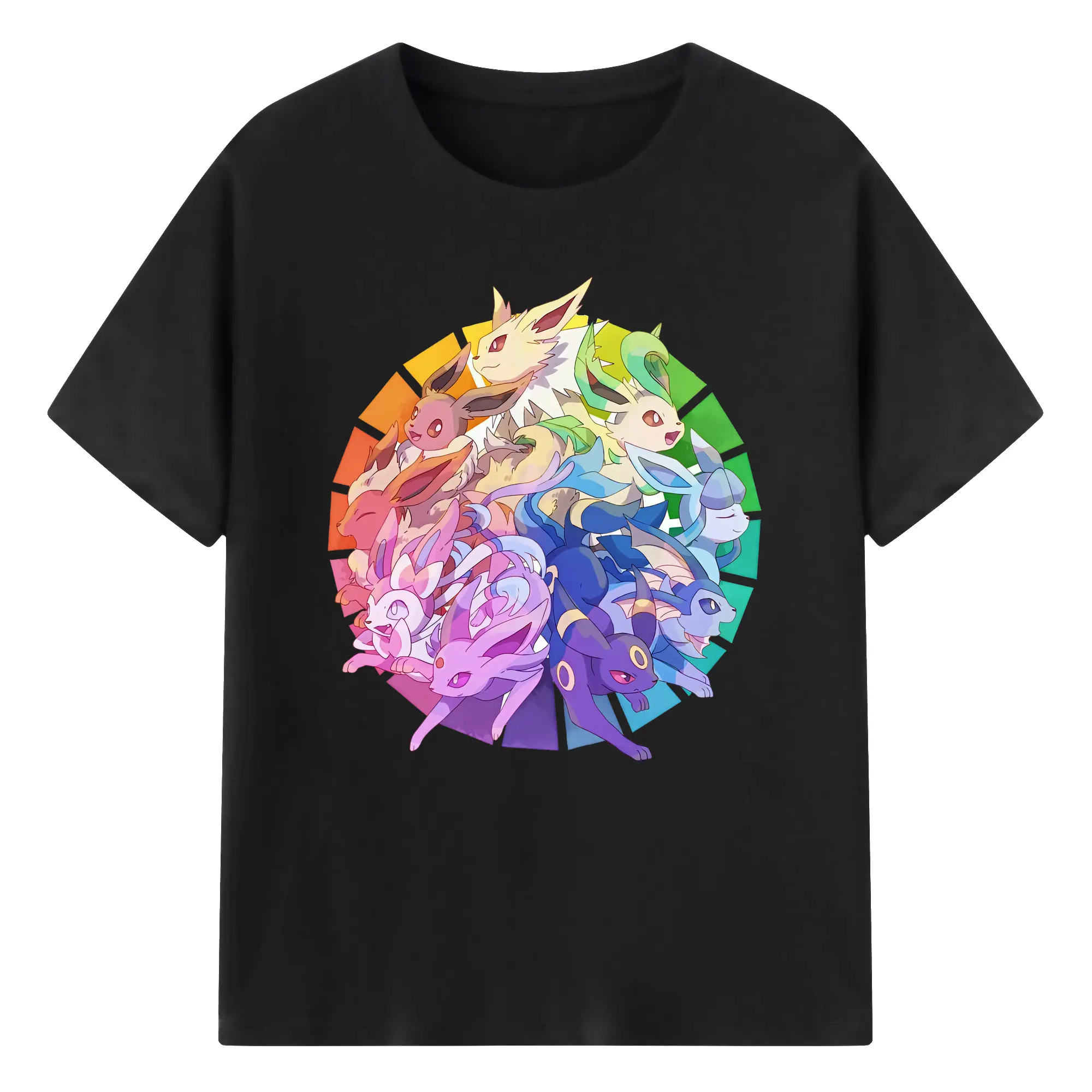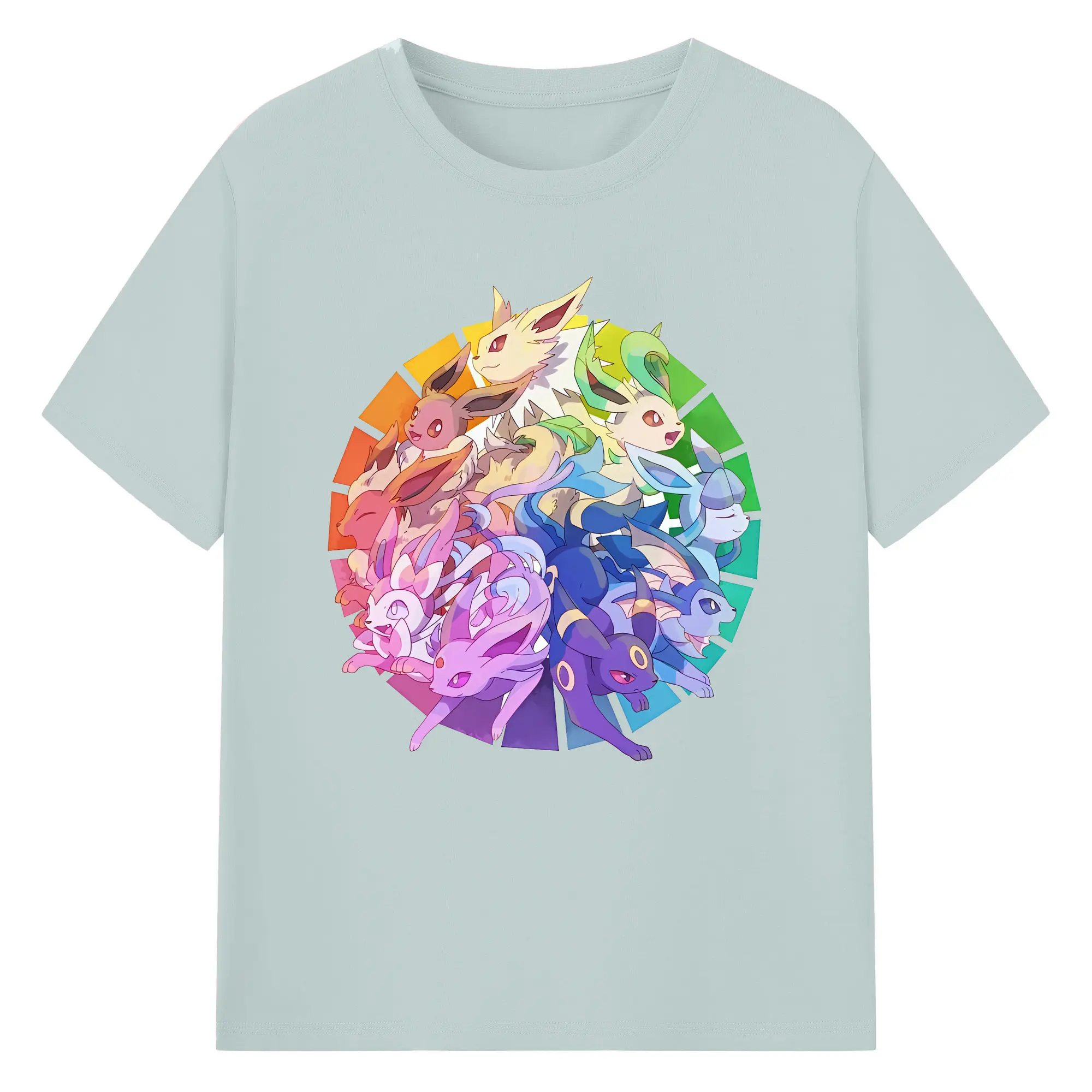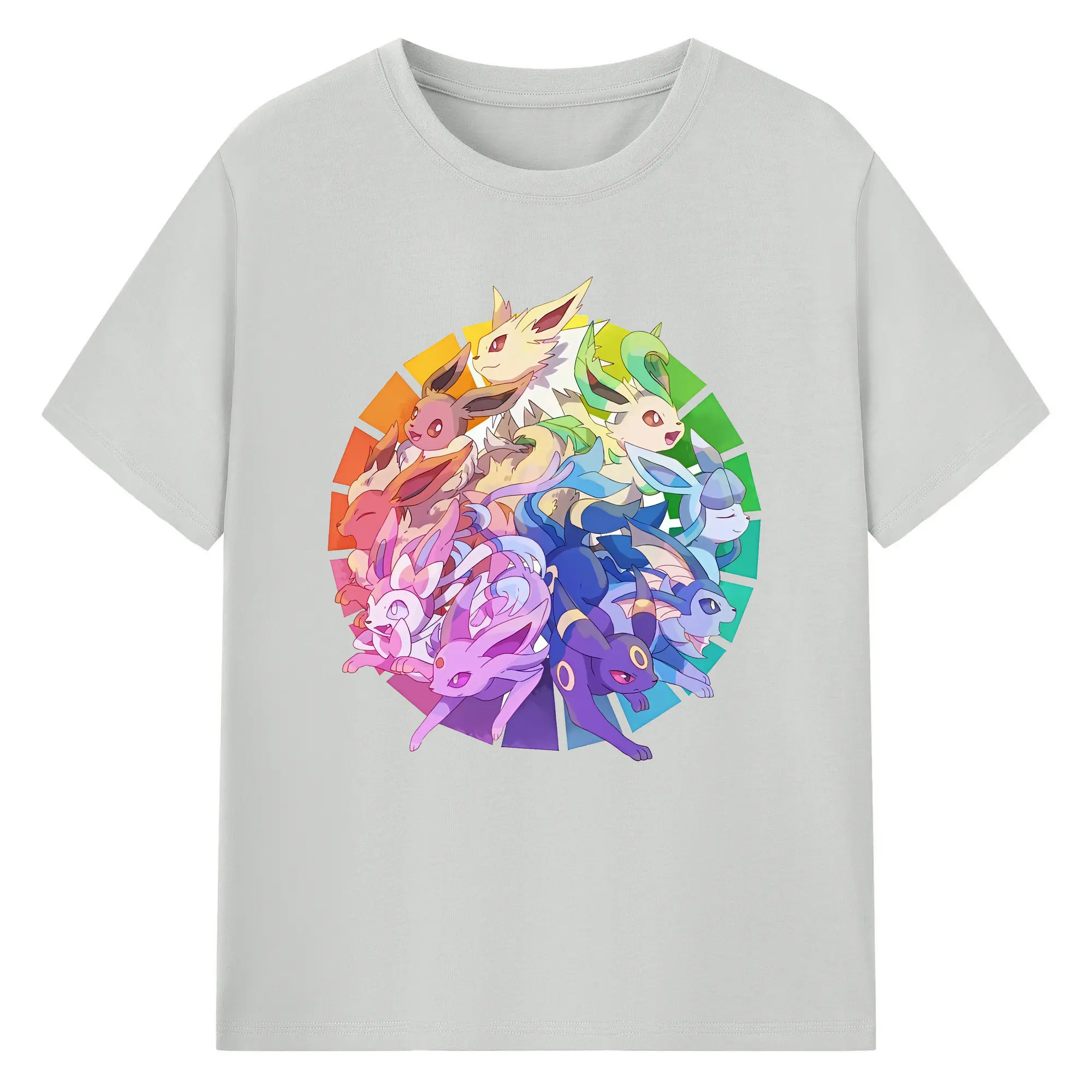 イーブイ進化系ブイズ集合桜デザイン - 綿100% 半袖Tシャツ ・ フロントプリント ・ 快適 通気性 ・ 日常使い 散歩 スポーツ用