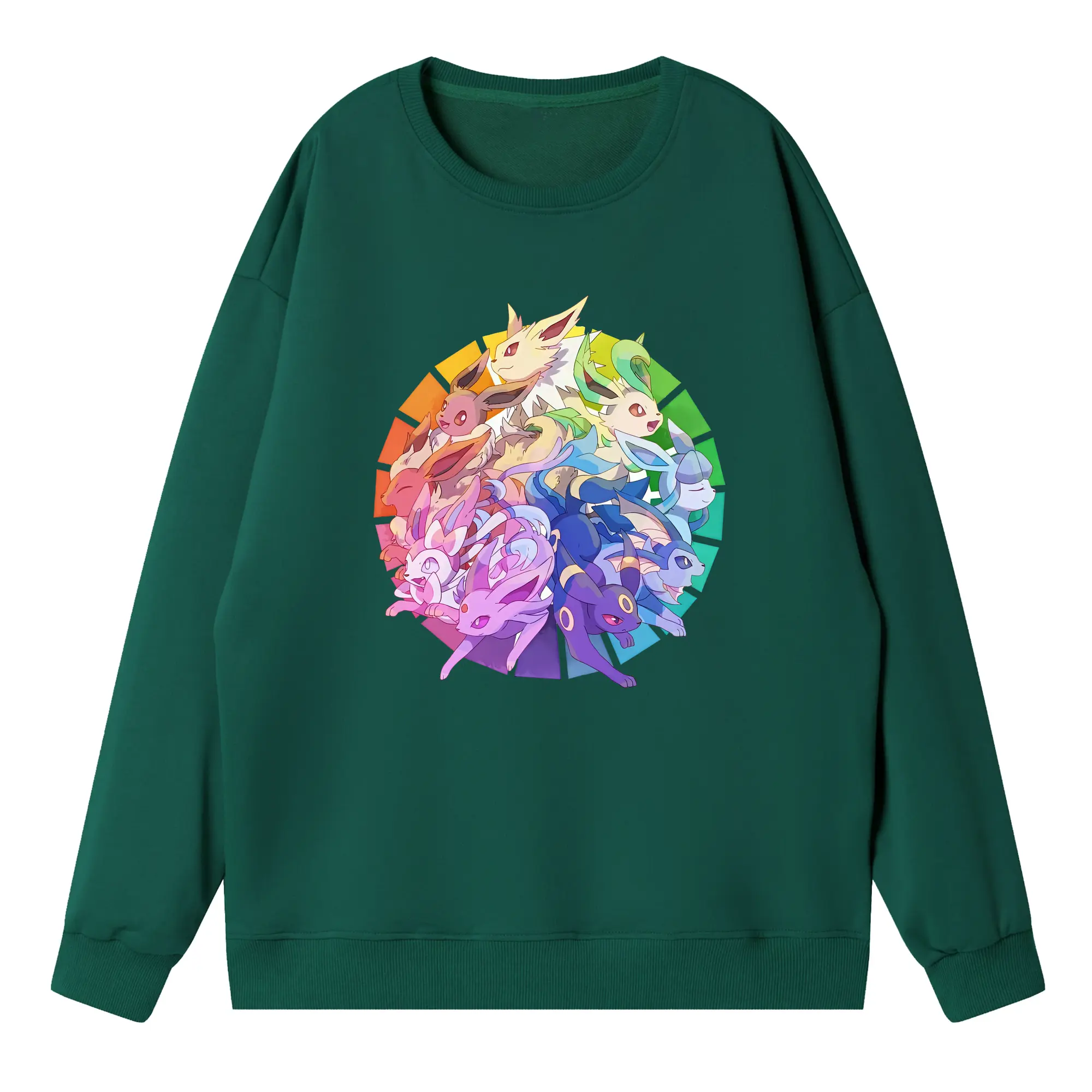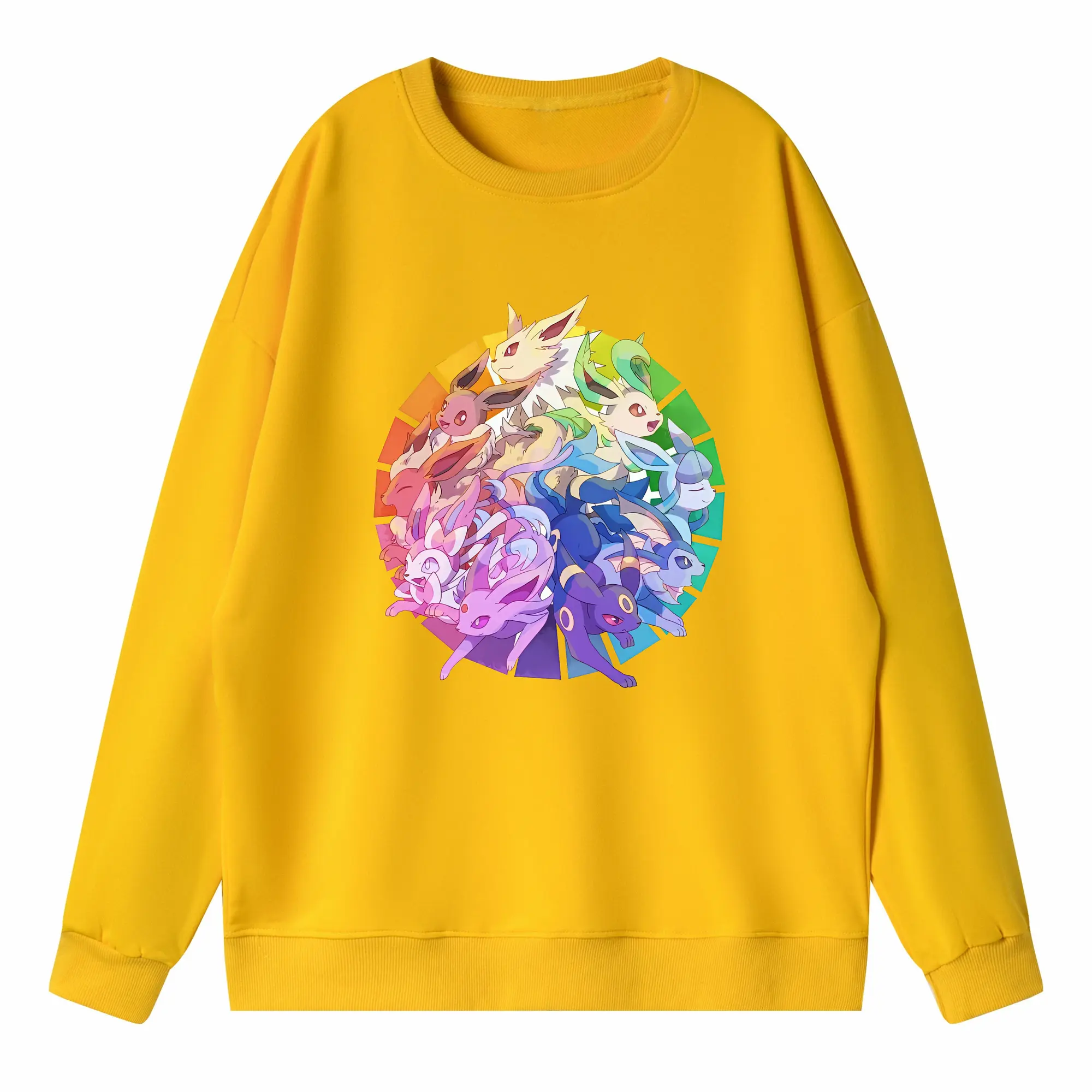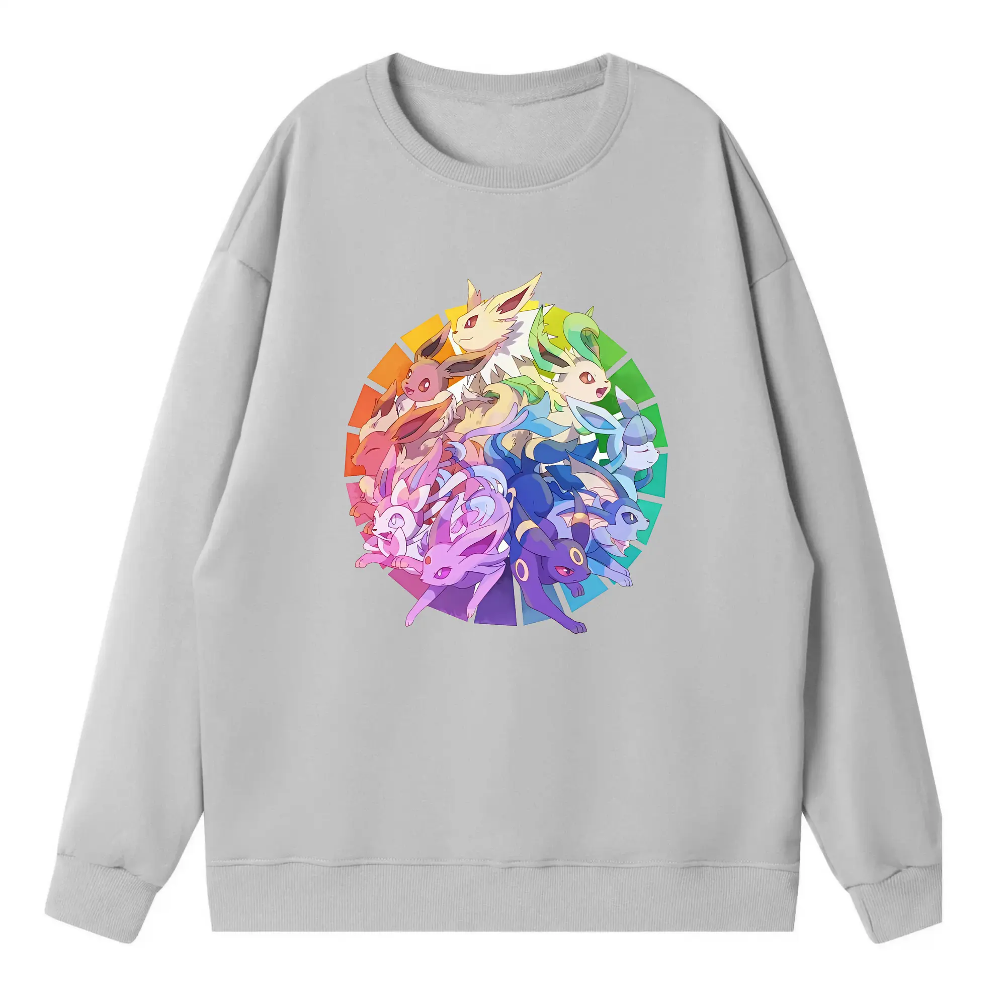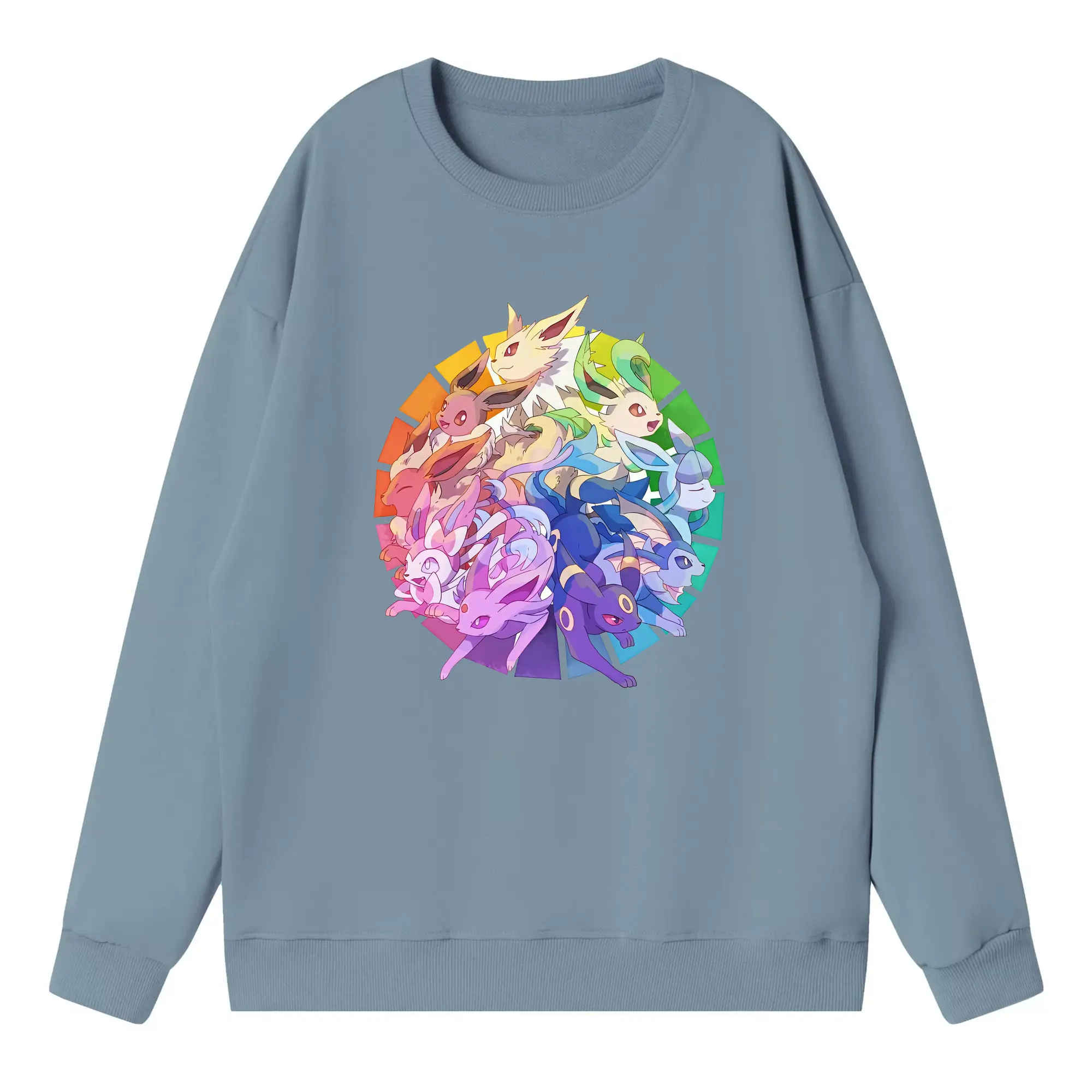 イーブイクリスタルクラウン限定グッズ - 薄手 クルーネック スウェット 裏毛260g · ポリエステル 春秋向け カジュアル 男女兼用 · トレーナー デイリー スポーツ 散歩に最適