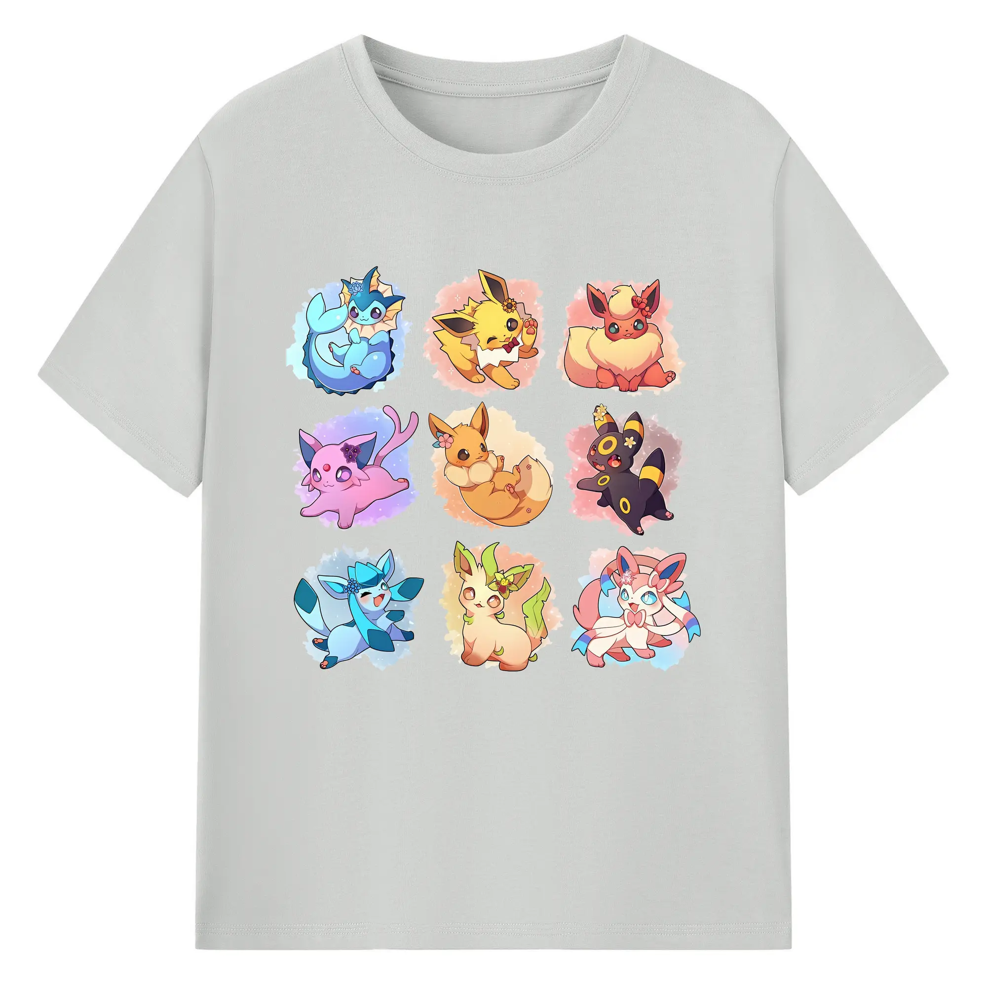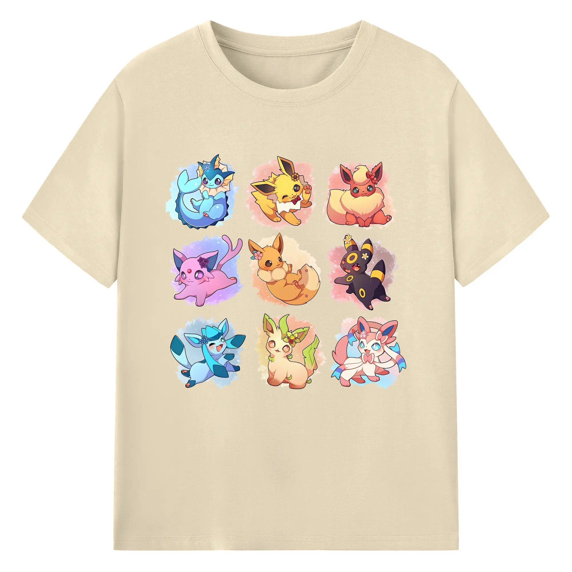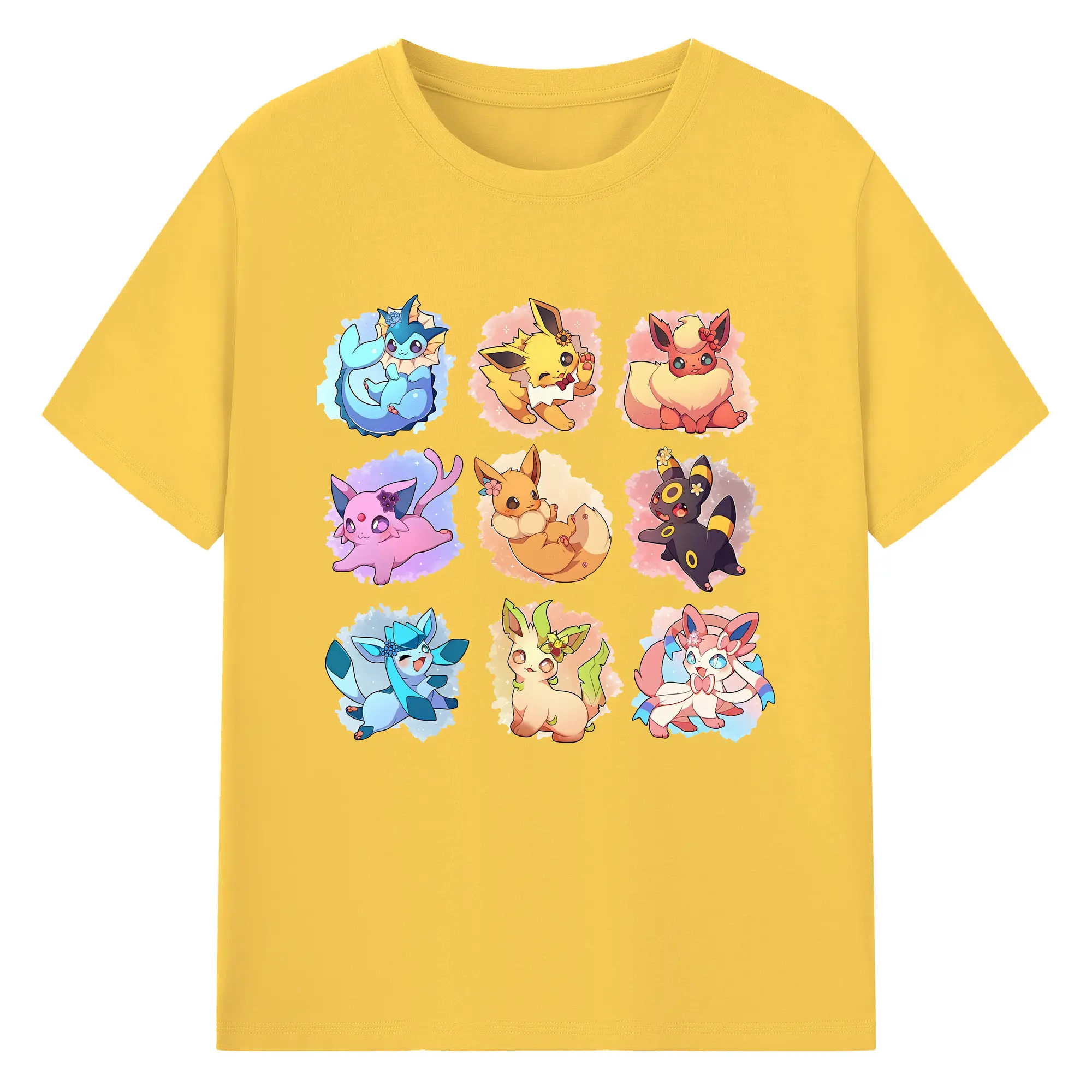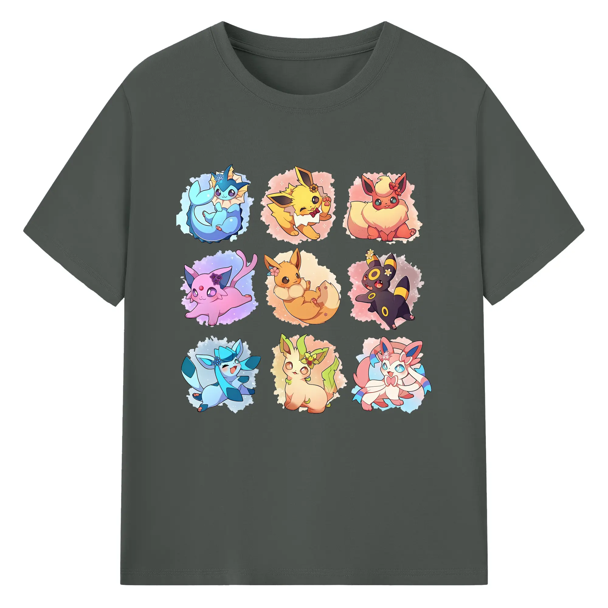 イーブイクリスタルクラウン限定グッズ - 綿100% 半袖Tシャツ ・ フロントプリント ・ 快適 通気性 ・ 日常使い 散歩 スポーツ用