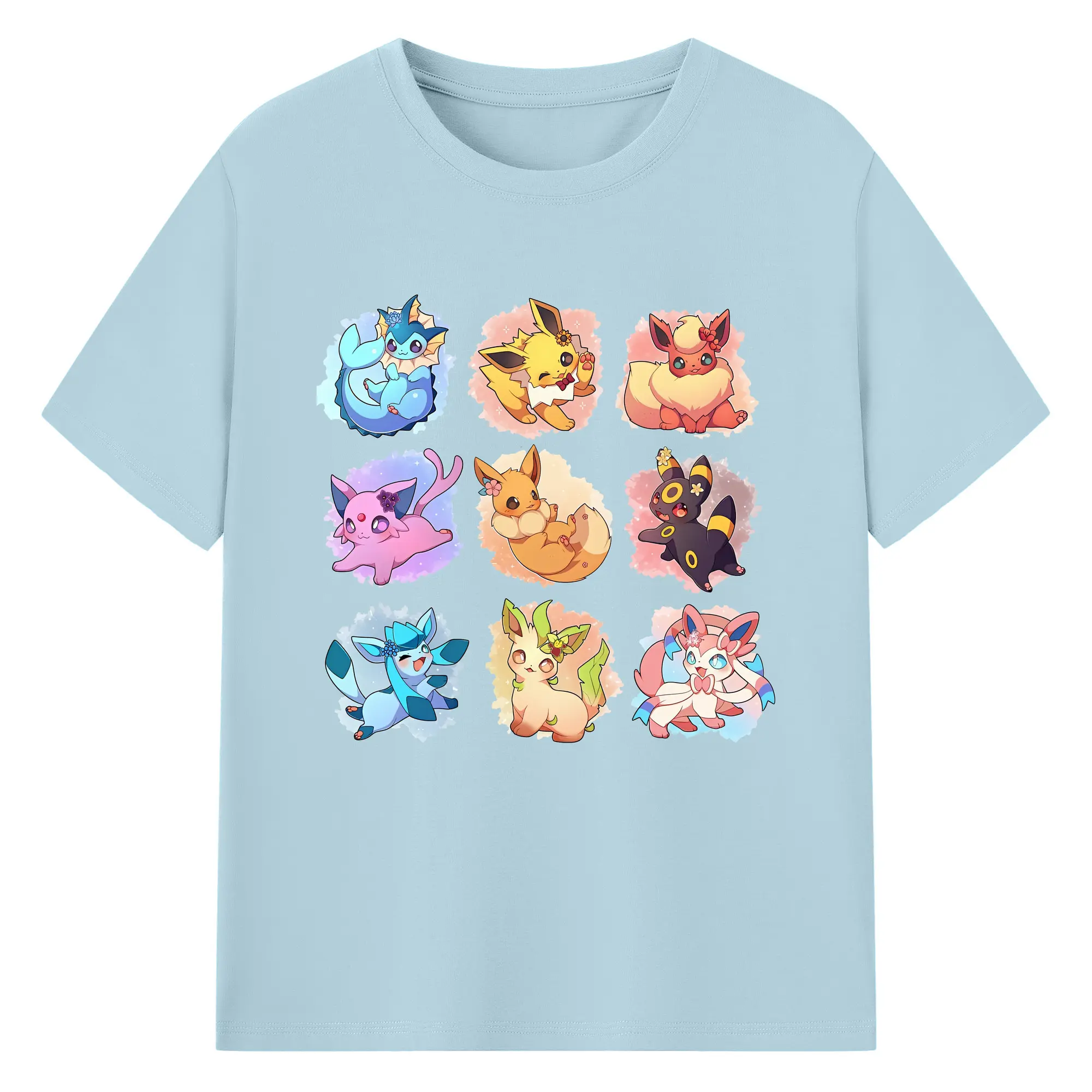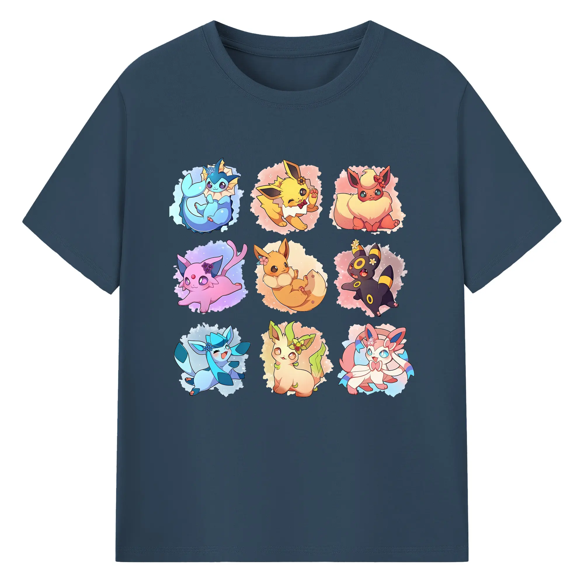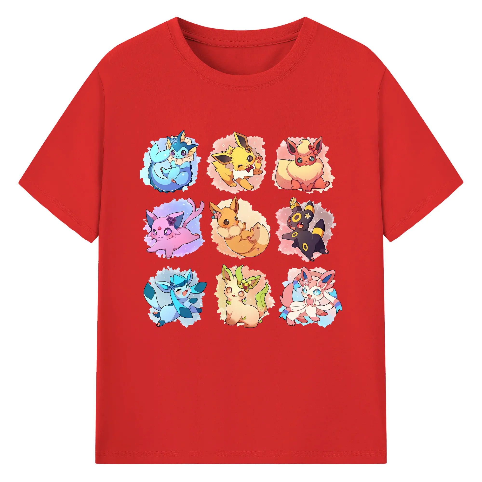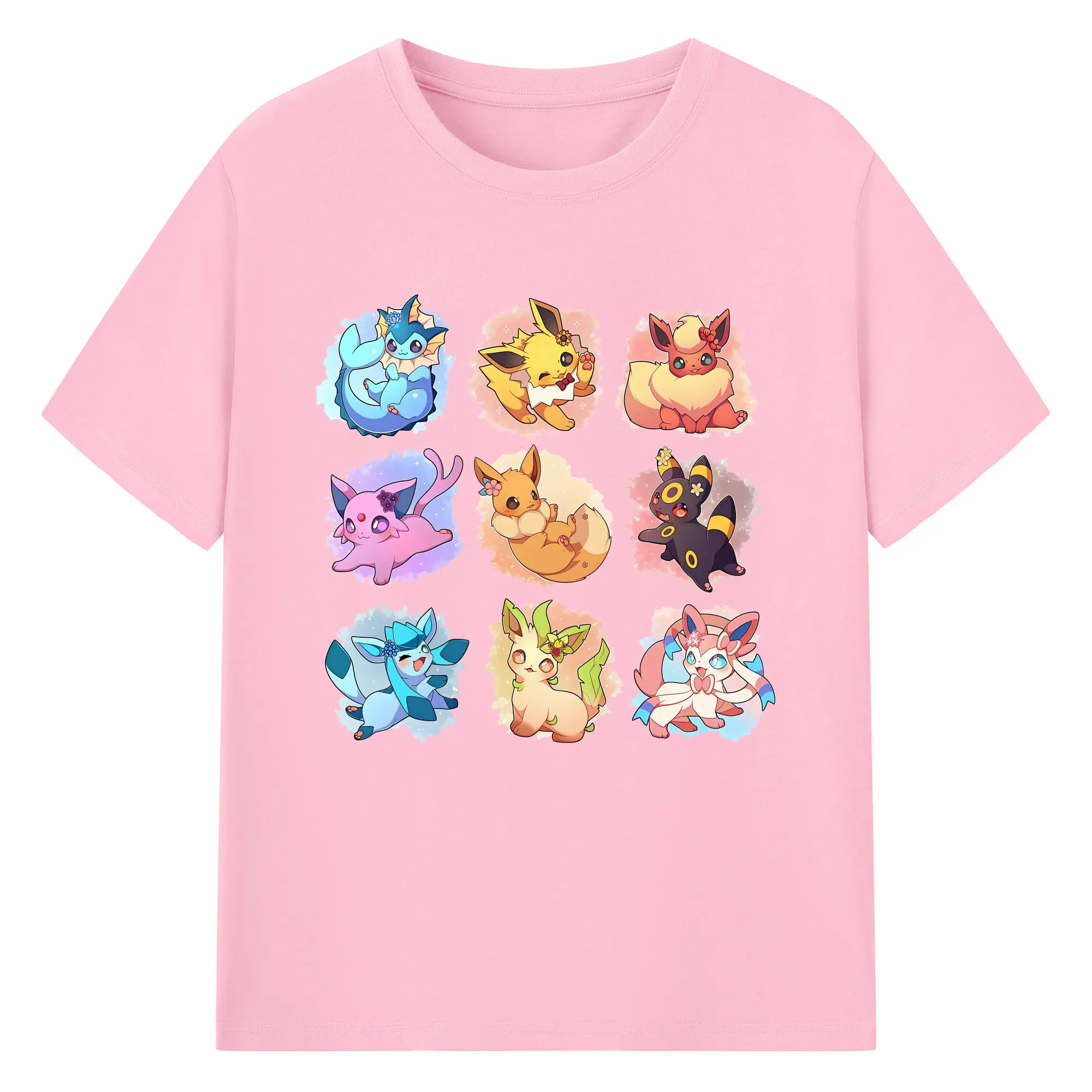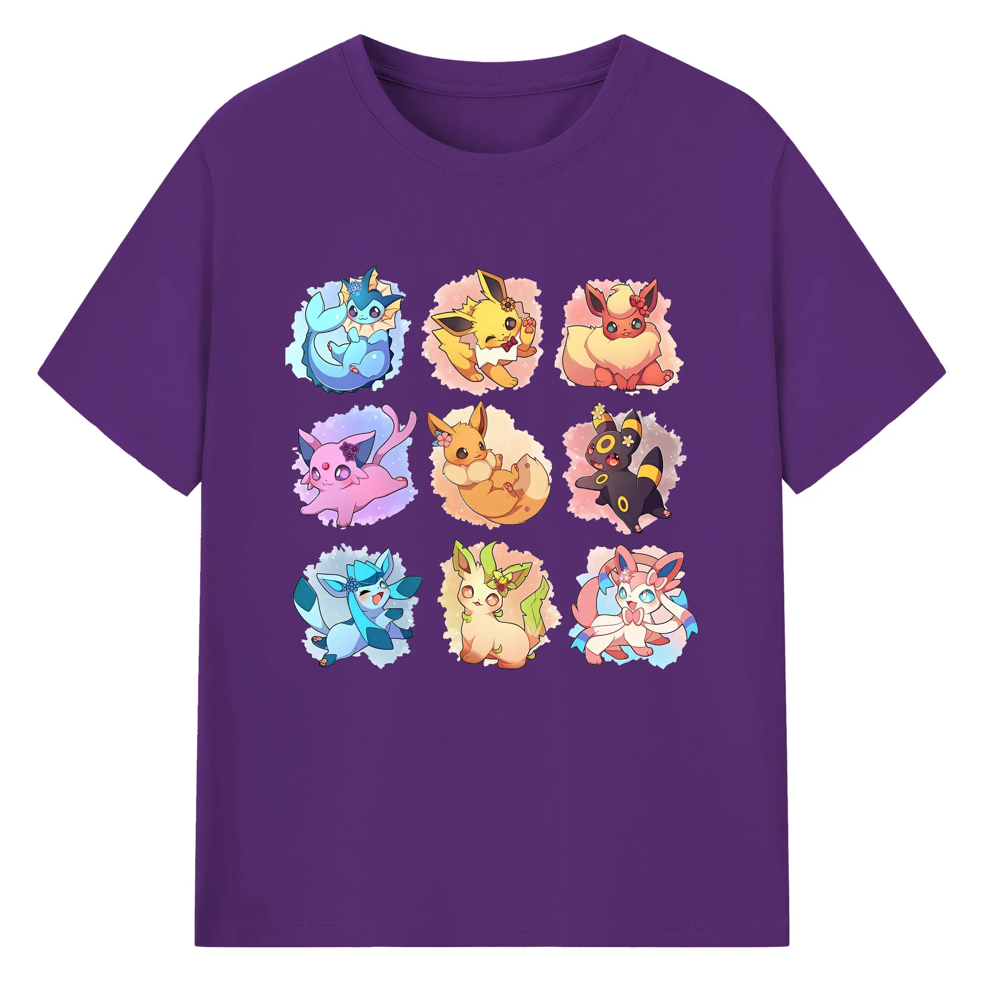 イーブイクリスタルクラウン限定グッズ - 綿100% 半袖Tシャツ ・ フロントプリント ・ 快適 通気性 ・ 日常使い 散歩 スポーツ用