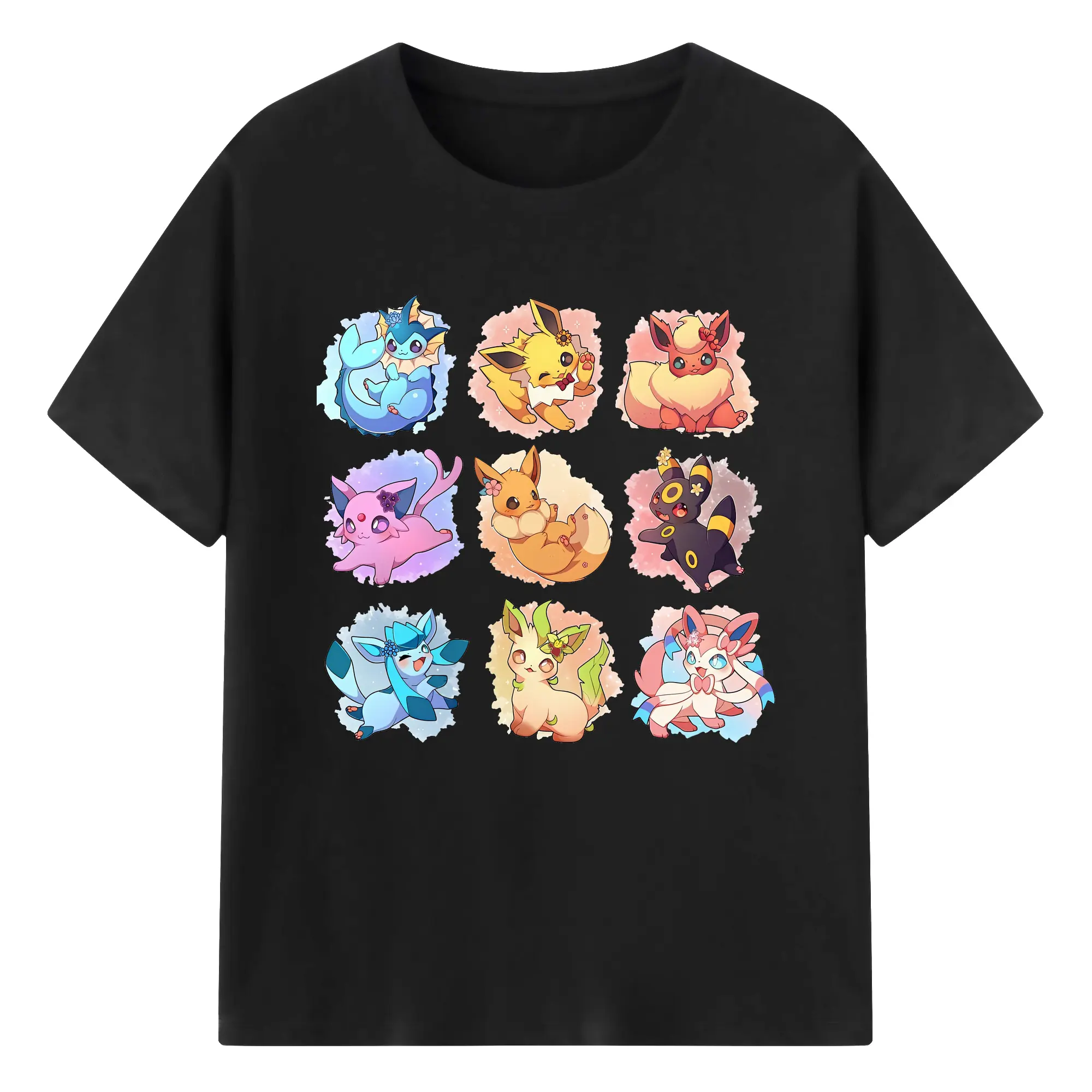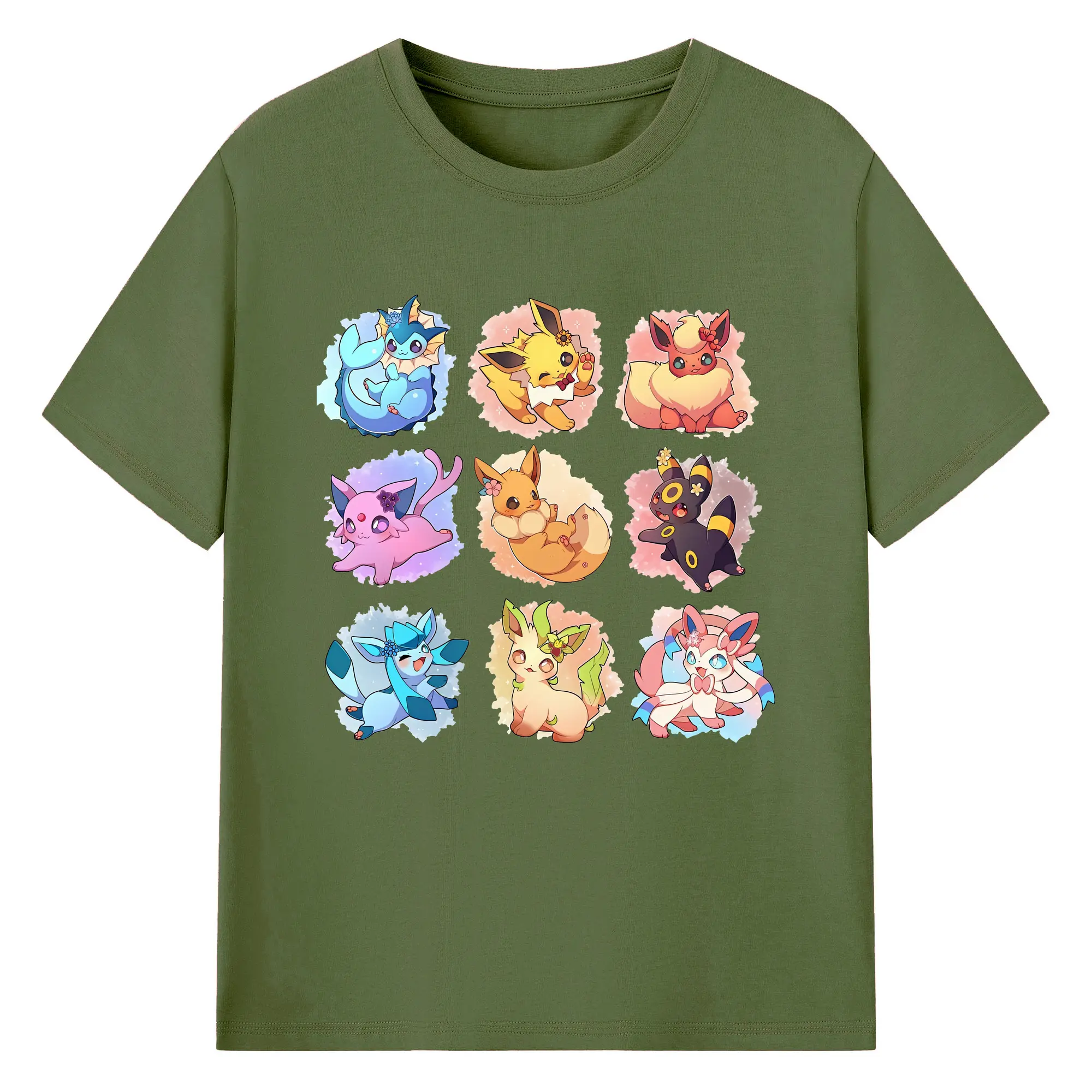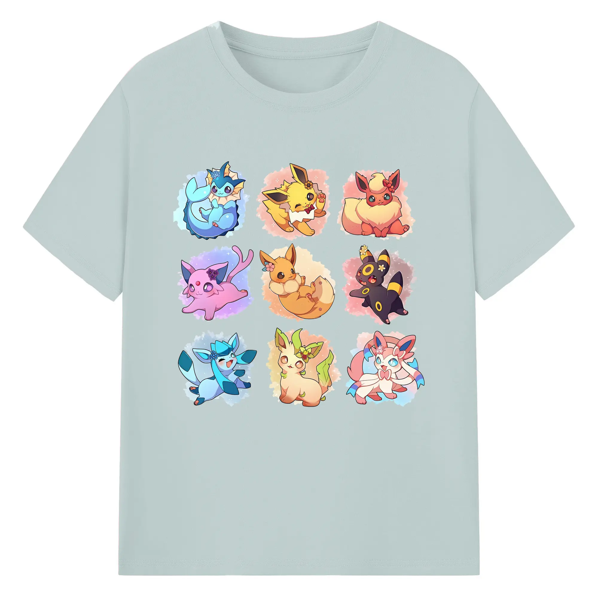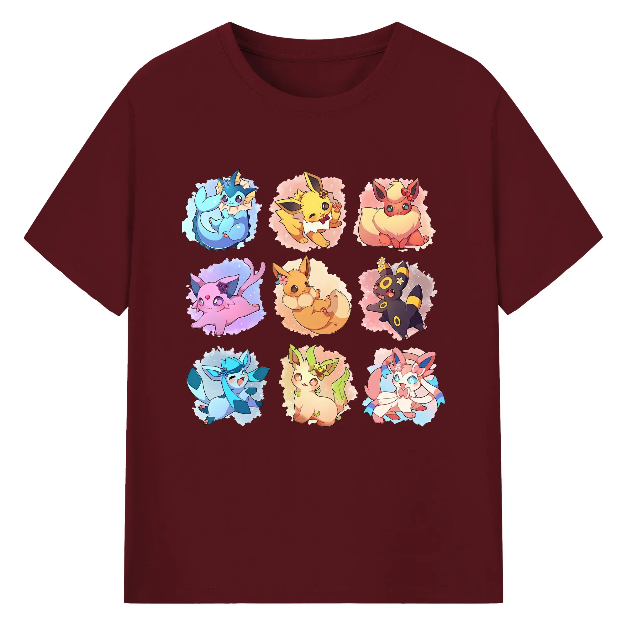 イーブイクリスタルクラウン限定グッズ - 綿100% 半袖Tシャツ ・ フロントプリント ・ 快適 通気性 ・ 日常使い 散歩 スポーツ用