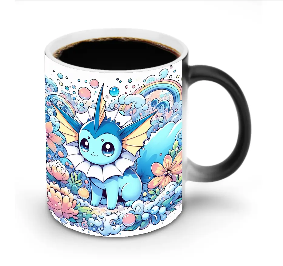 イーブイ ウォータータイプ 花と水波 フレッシュ オリジナルデザイン - 変色マグカップ ・ セラミック ・ 熱転写プリント ・ 耐久性 高品質 ・ ギフト・自宅用 コーヒー お茶