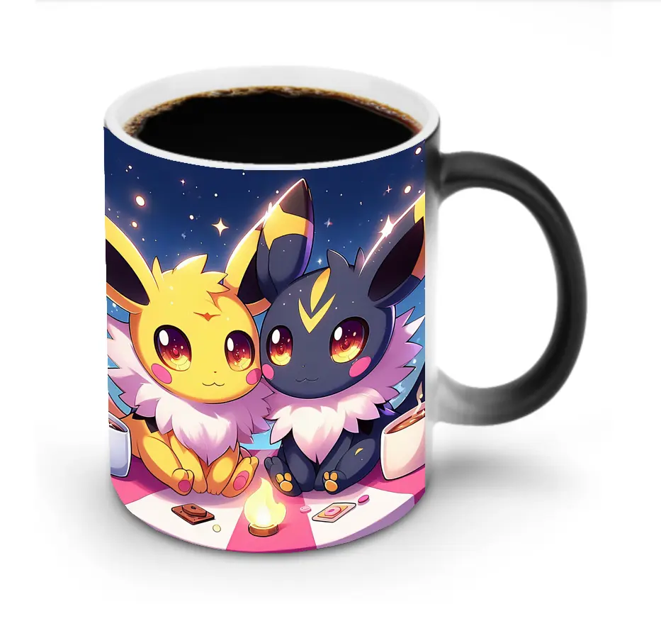 イーブイ サンダータイプ 星キラキラ ロマンチック オリジナルデザイン - 変色マグカップ ・ セラミック ・ 熱転写プリント ・ 耐久性 高品質 ・ ギフト・自宅用 コーヒー お茶