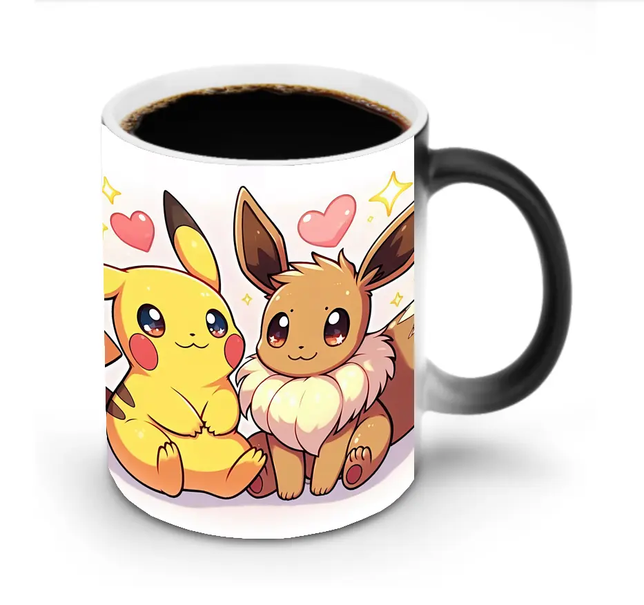 イーブイ  ピカチュウ コラボ ハートふれあい オリジナルデザイン - 変色マグカップ ・ セラミック ・ 熱転写プリント ・ 耐久性 高品質 ・ ギフト・自宅用 コーヒー お茶