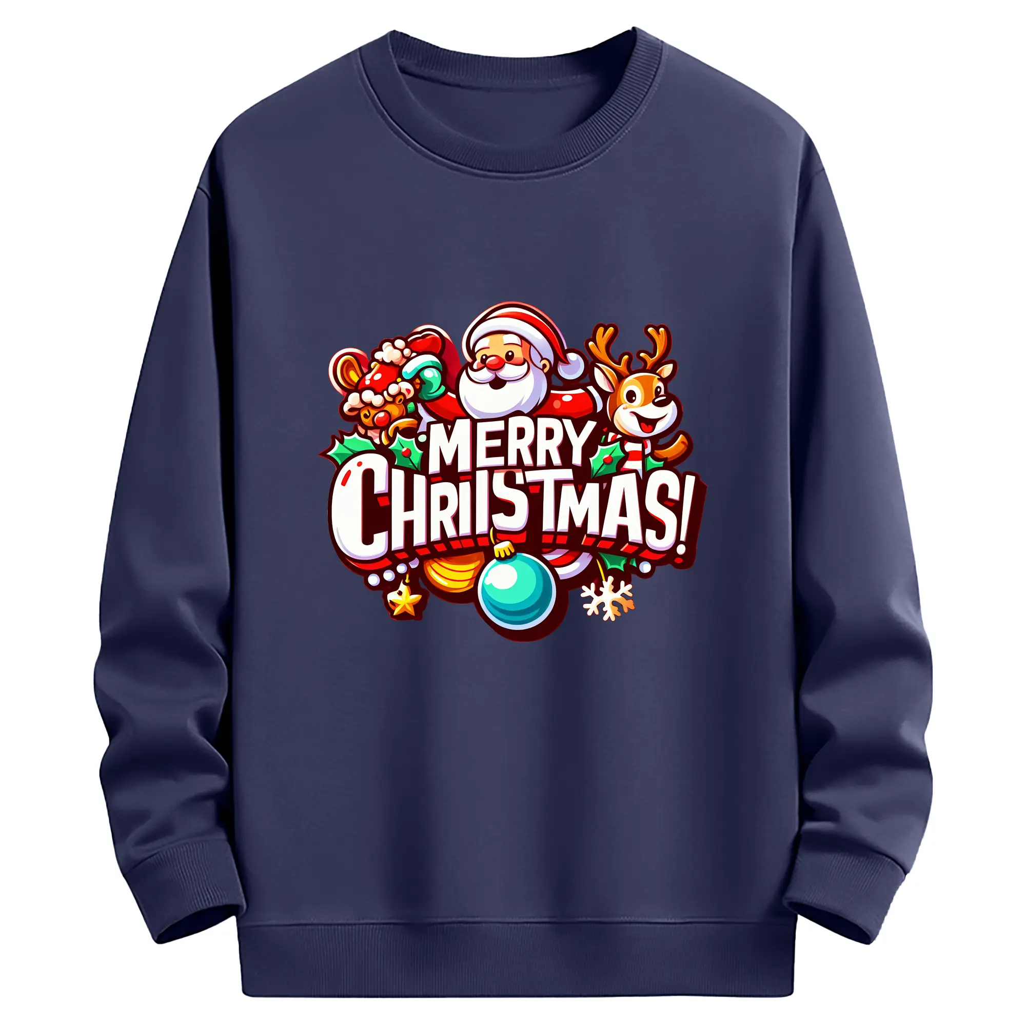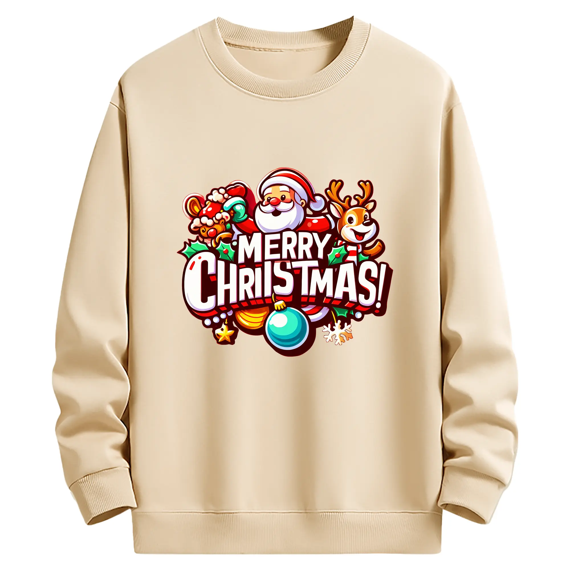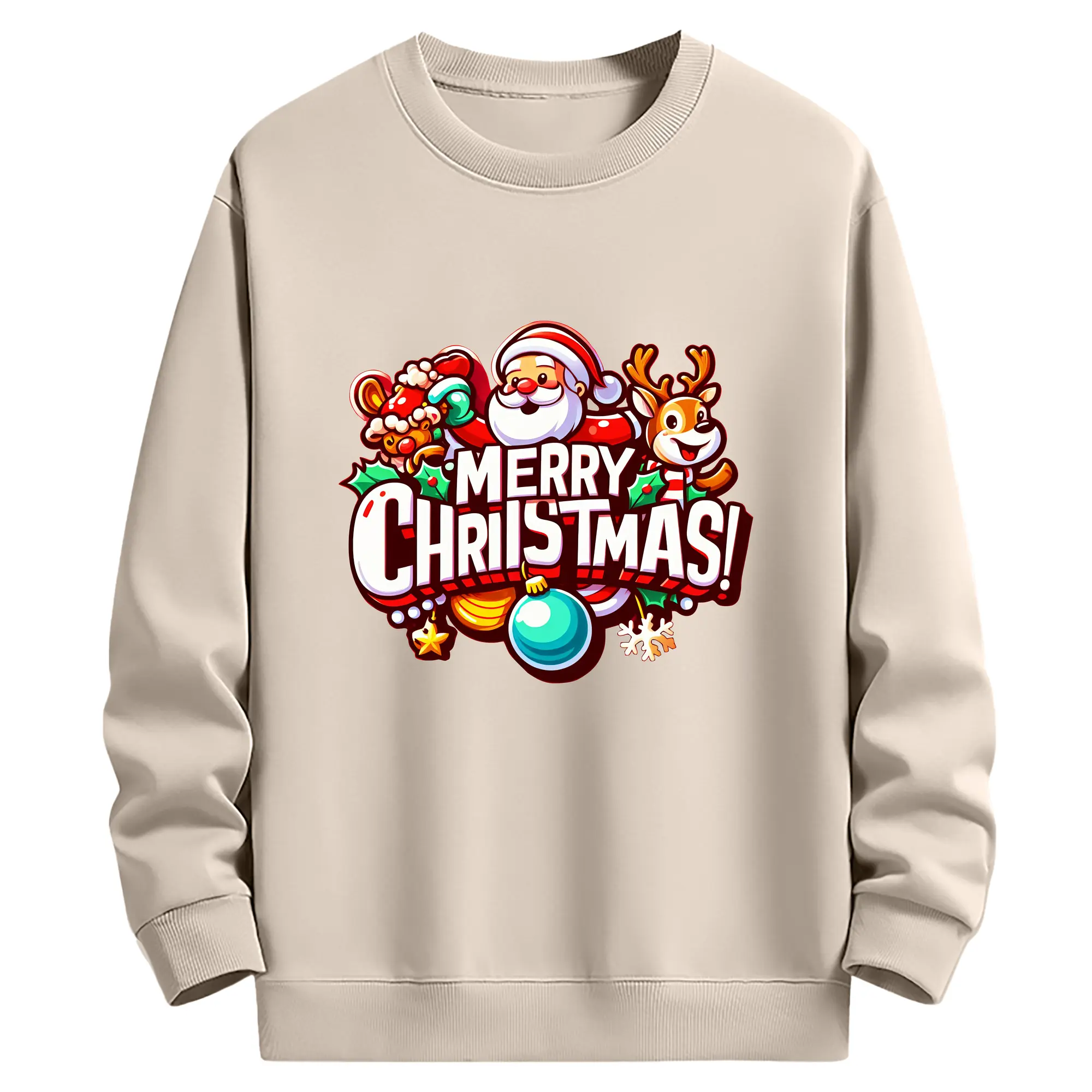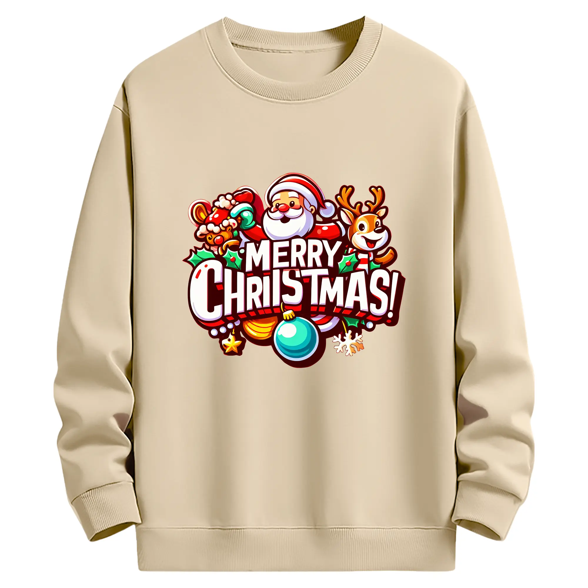 トナカイサンタ帽 カラフル メリークリスマス 特別限定 - 高品質 クルーネック スウェット ・ コットン59% ポリエステル41% ・ ユニセックス 長袖 トレーナー ・ カジュアル デイリー スポーツ 散歩用