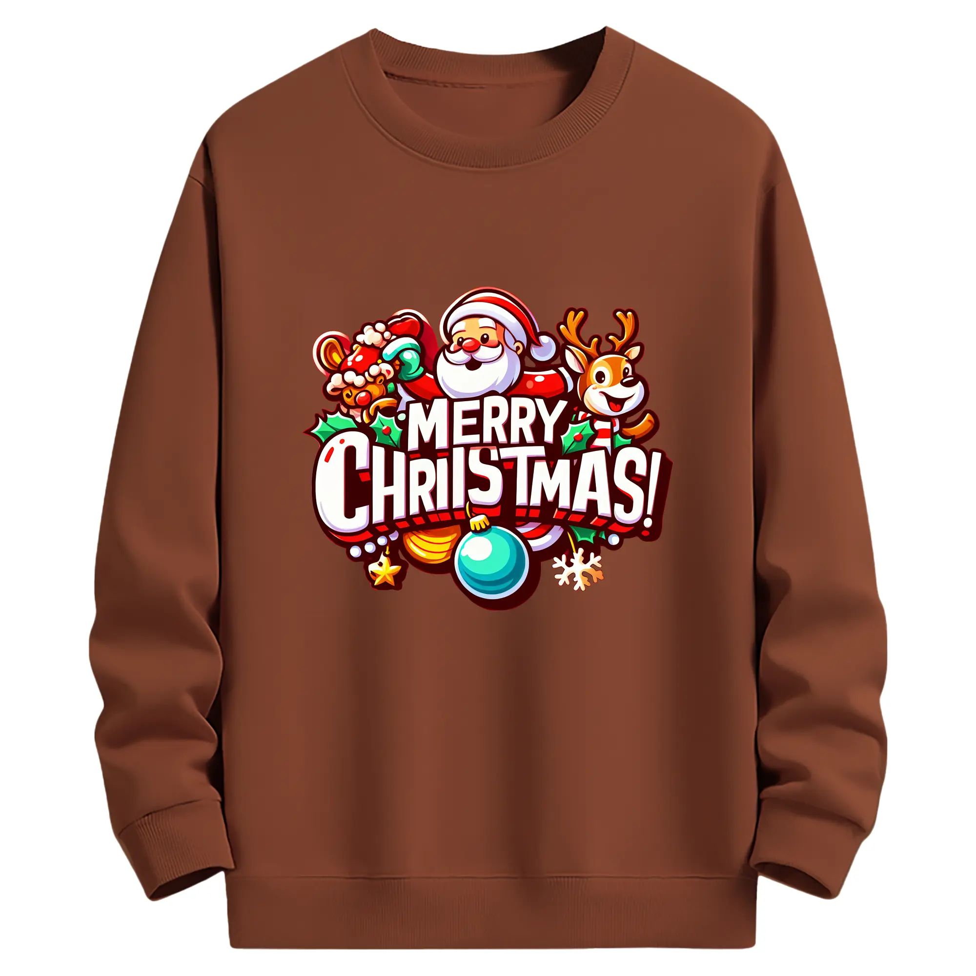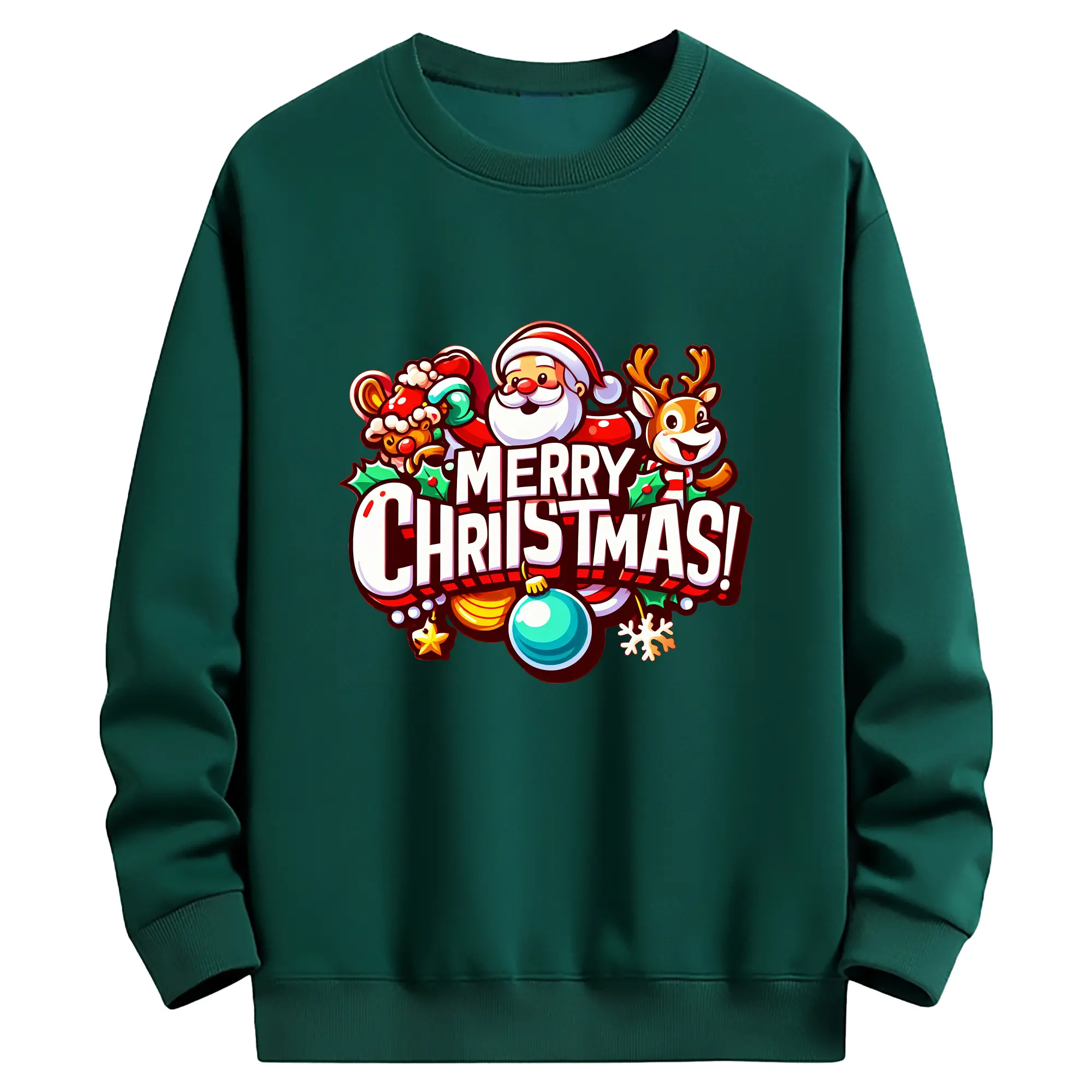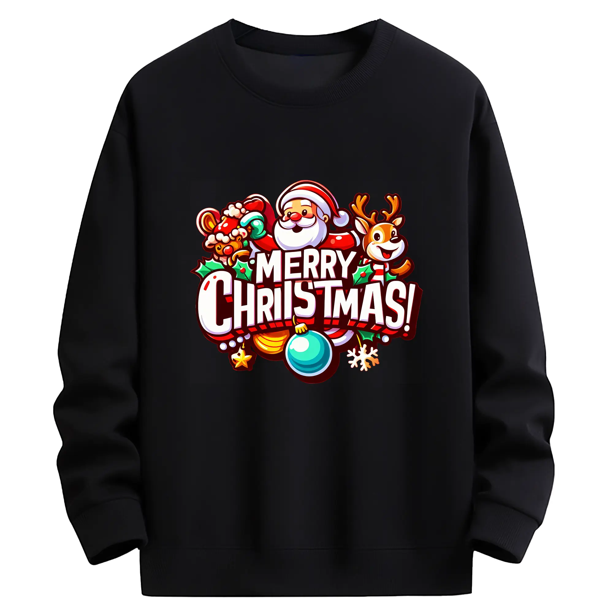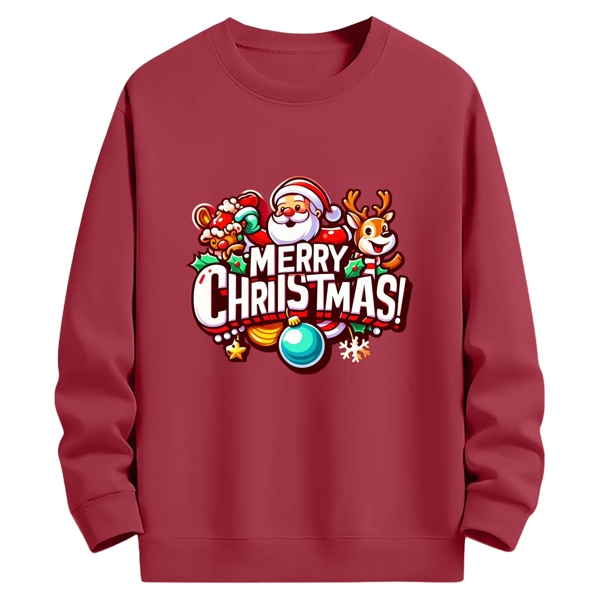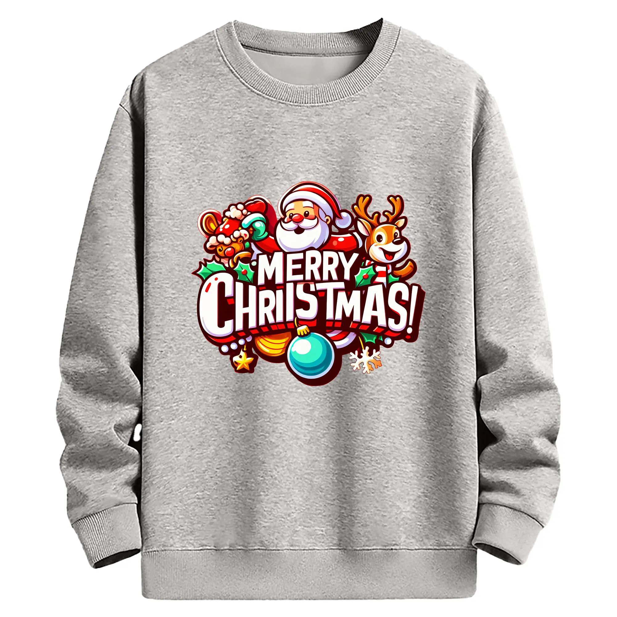 トナカイサンタ帽 カラフル メリークリスマス 特別限定 - 高品質 クルーネック スウェット ・ コットン59% ポリエステル41% ・ ユニセックス 長袖 トレーナー ・ カジュアル デイリー スポーツ 散歩用