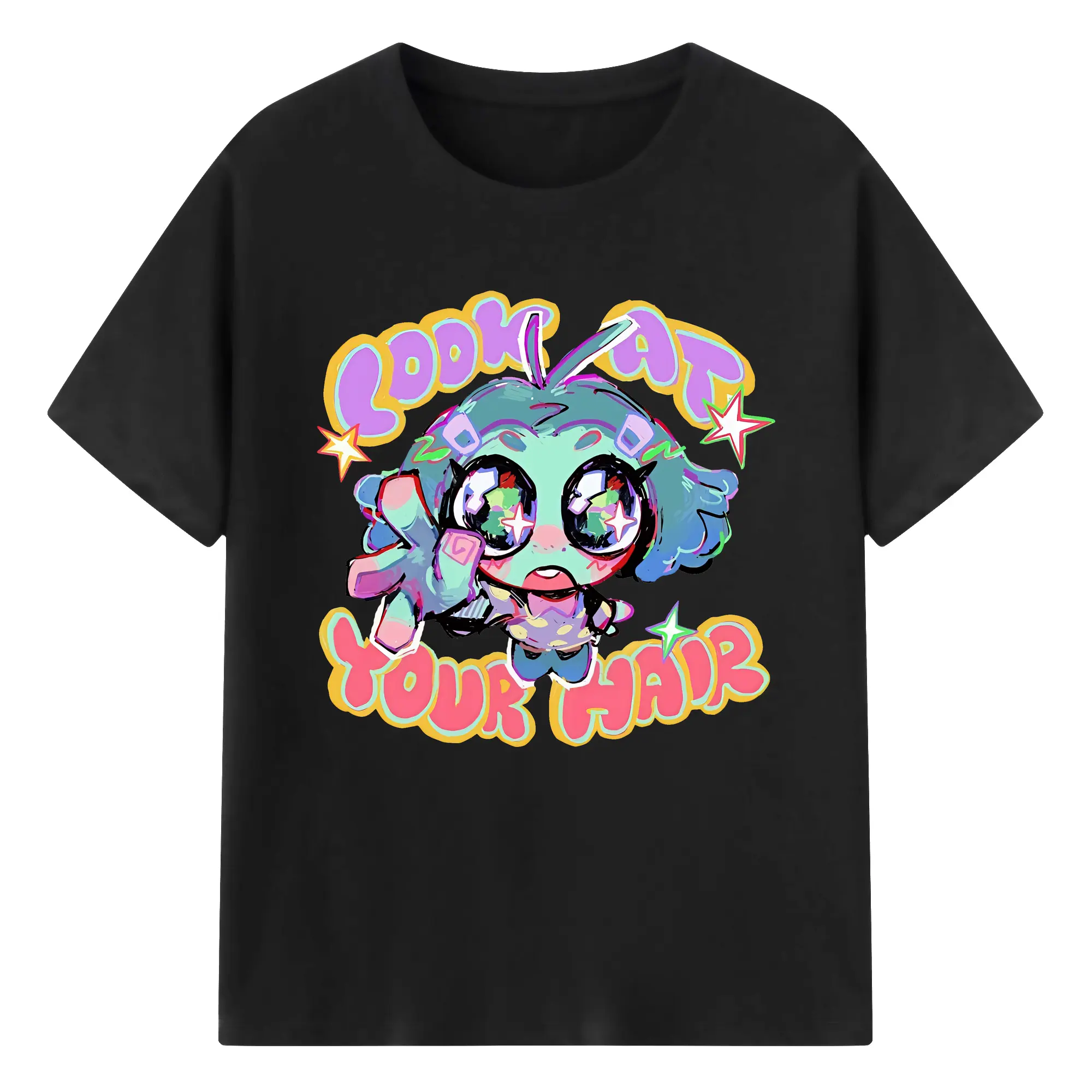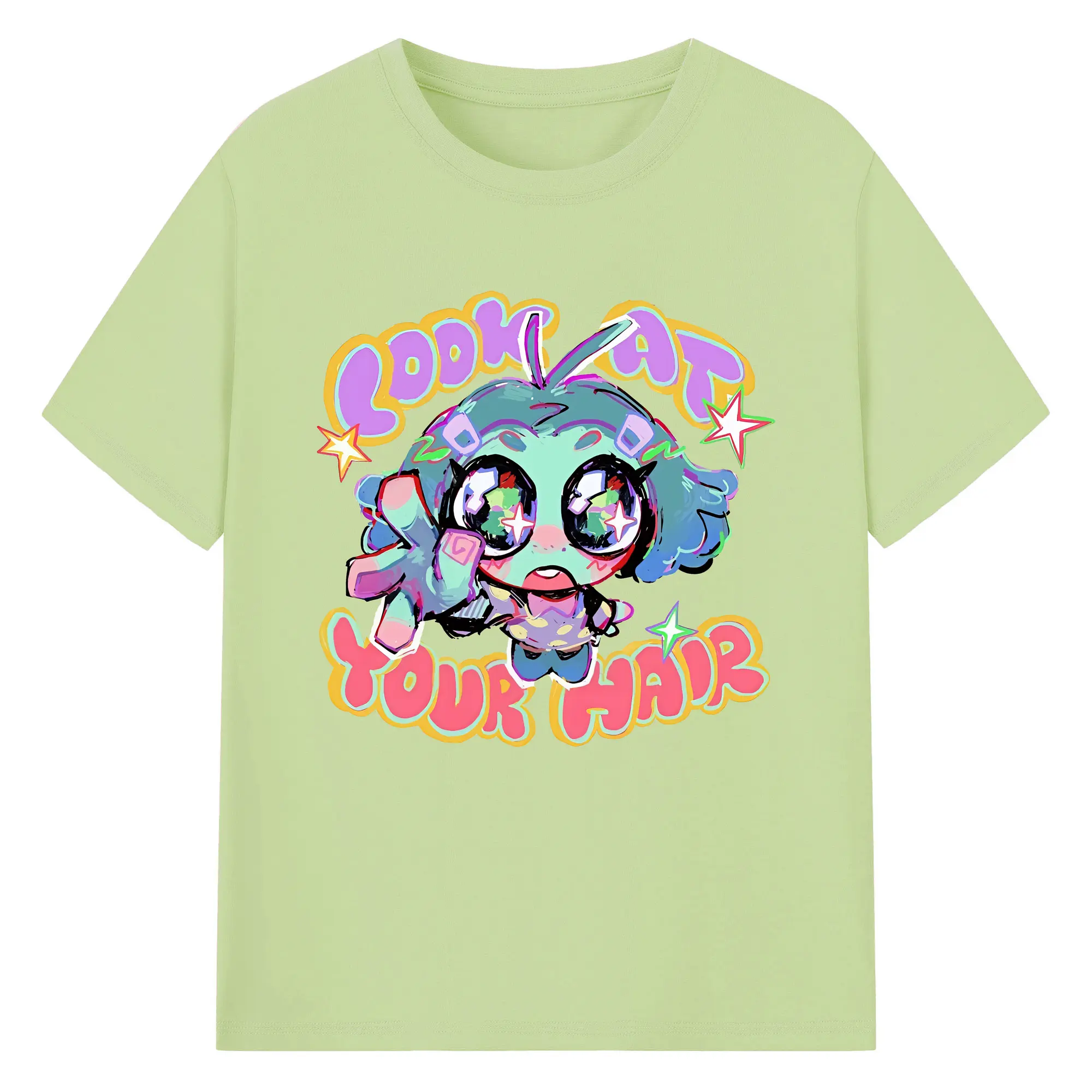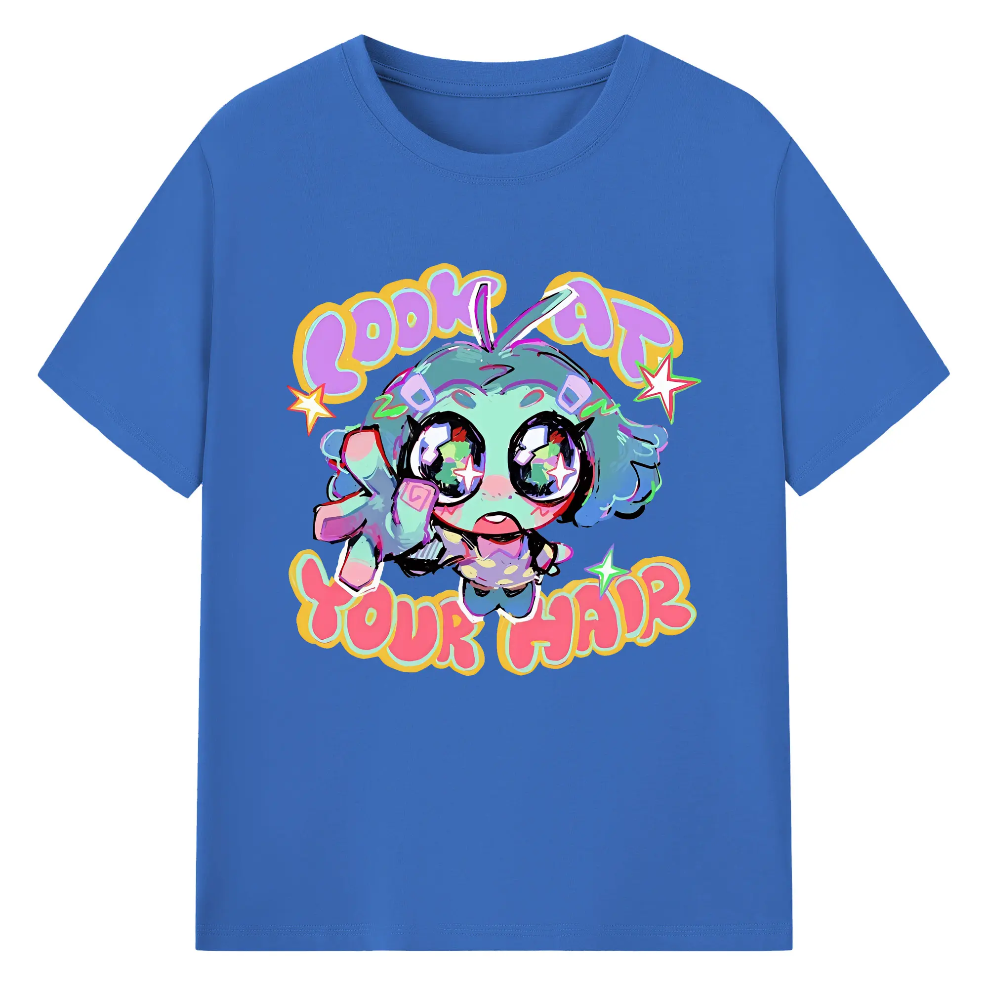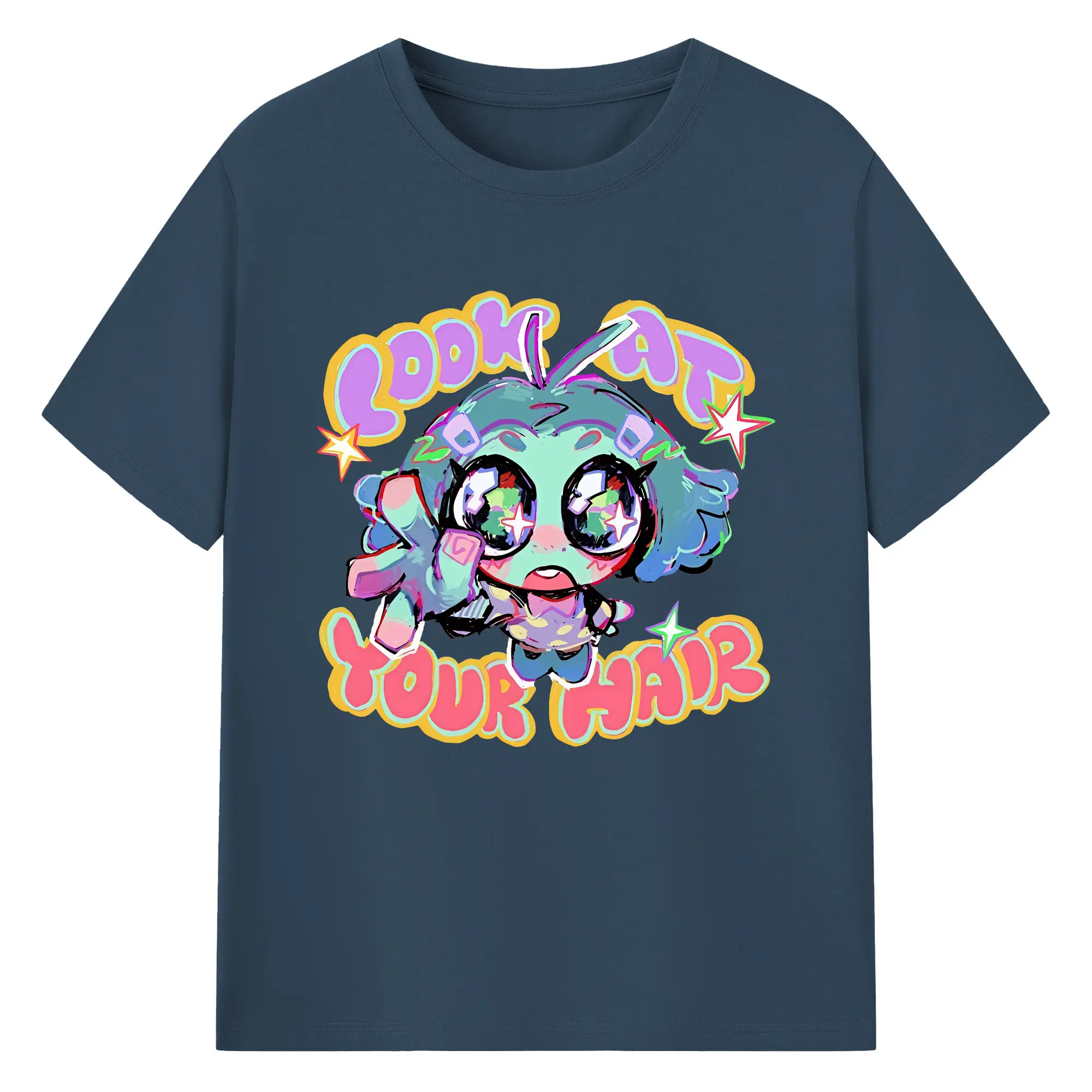 鏡音リン・レン デフォルメ 丸型フレーム ぽんやり可愛い オリジナルデザイン - 綿100% 半袖Tシャツ ・ フロントプリント ・ 快適 通気性 ・ 日常使い 散歩 スポーツ用