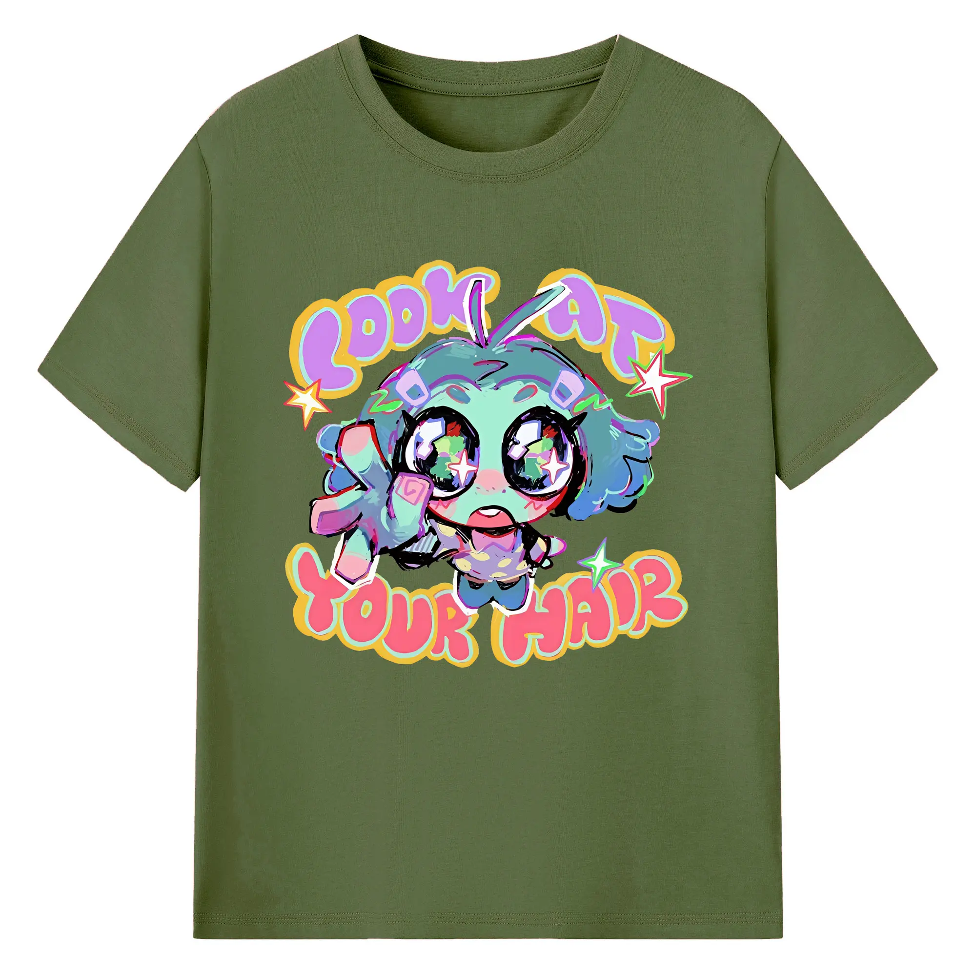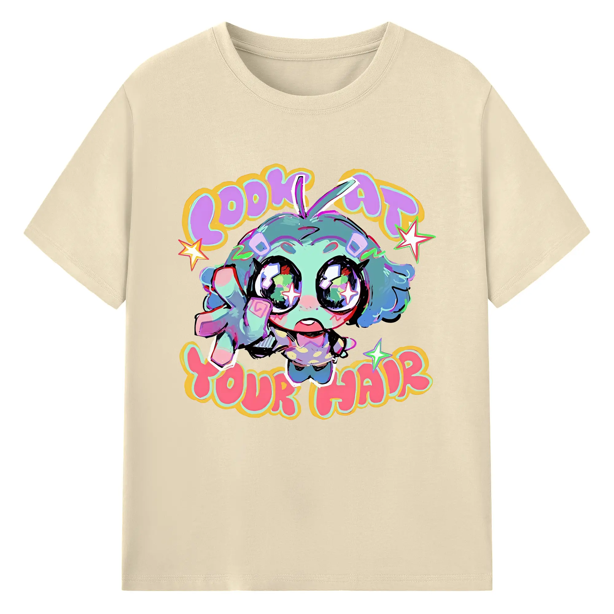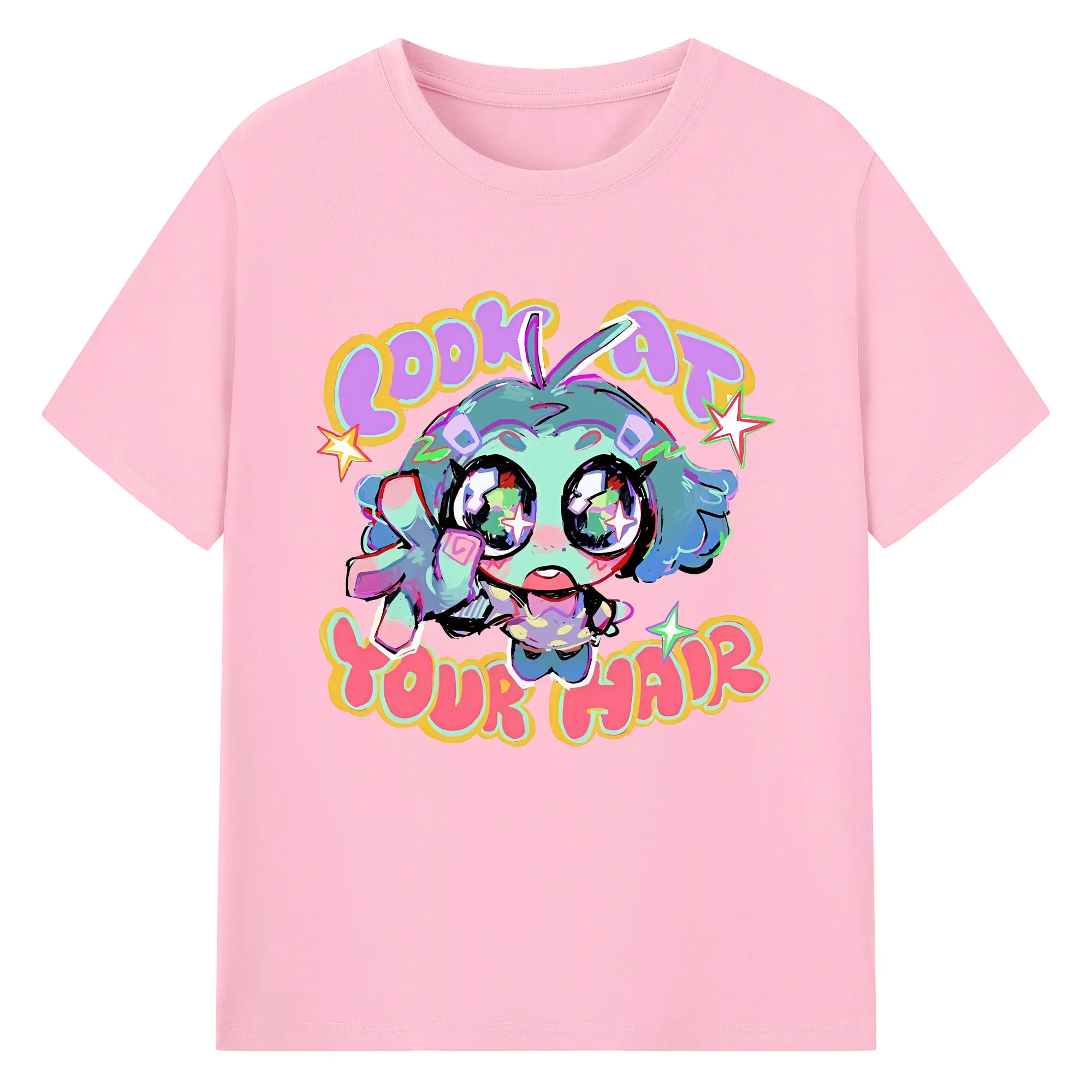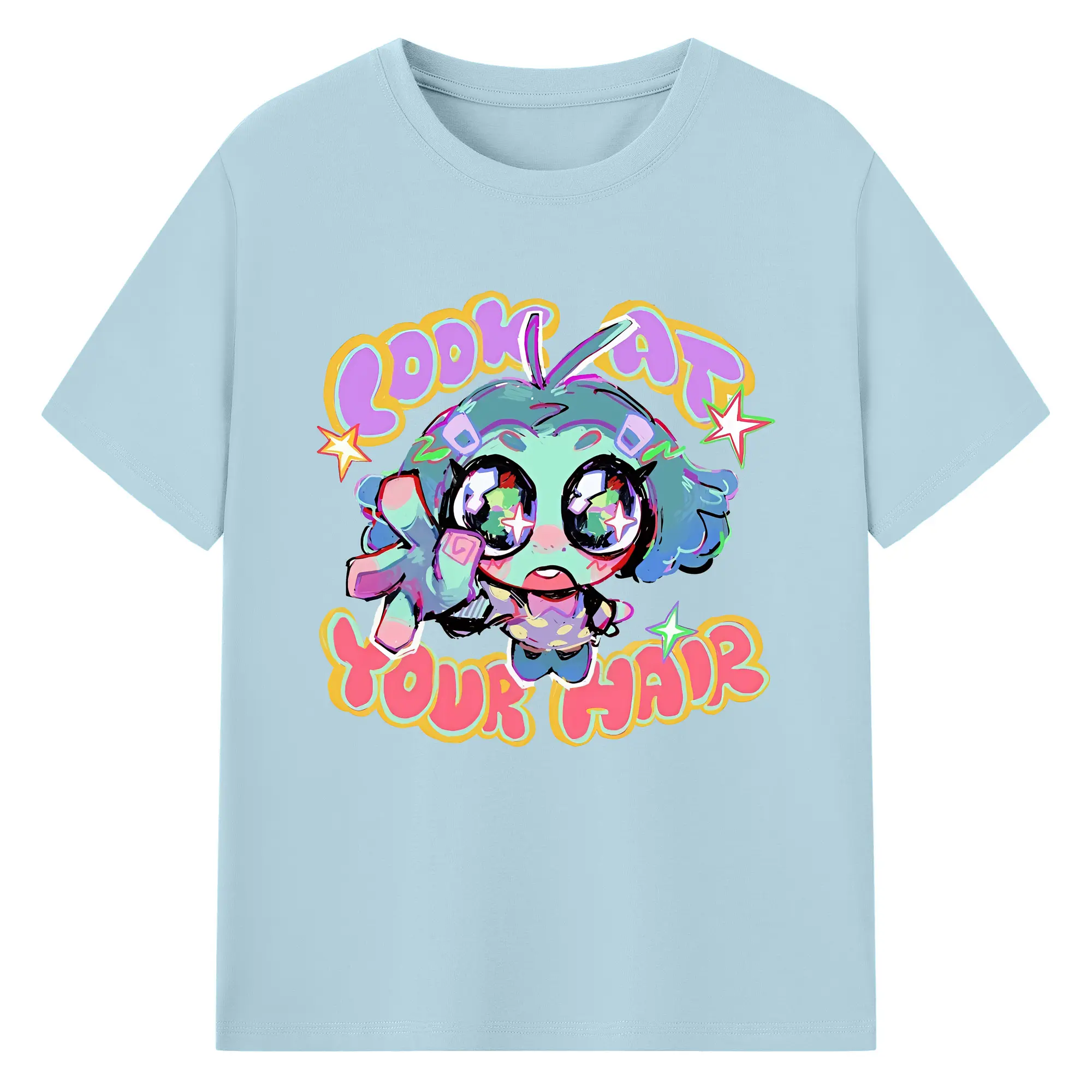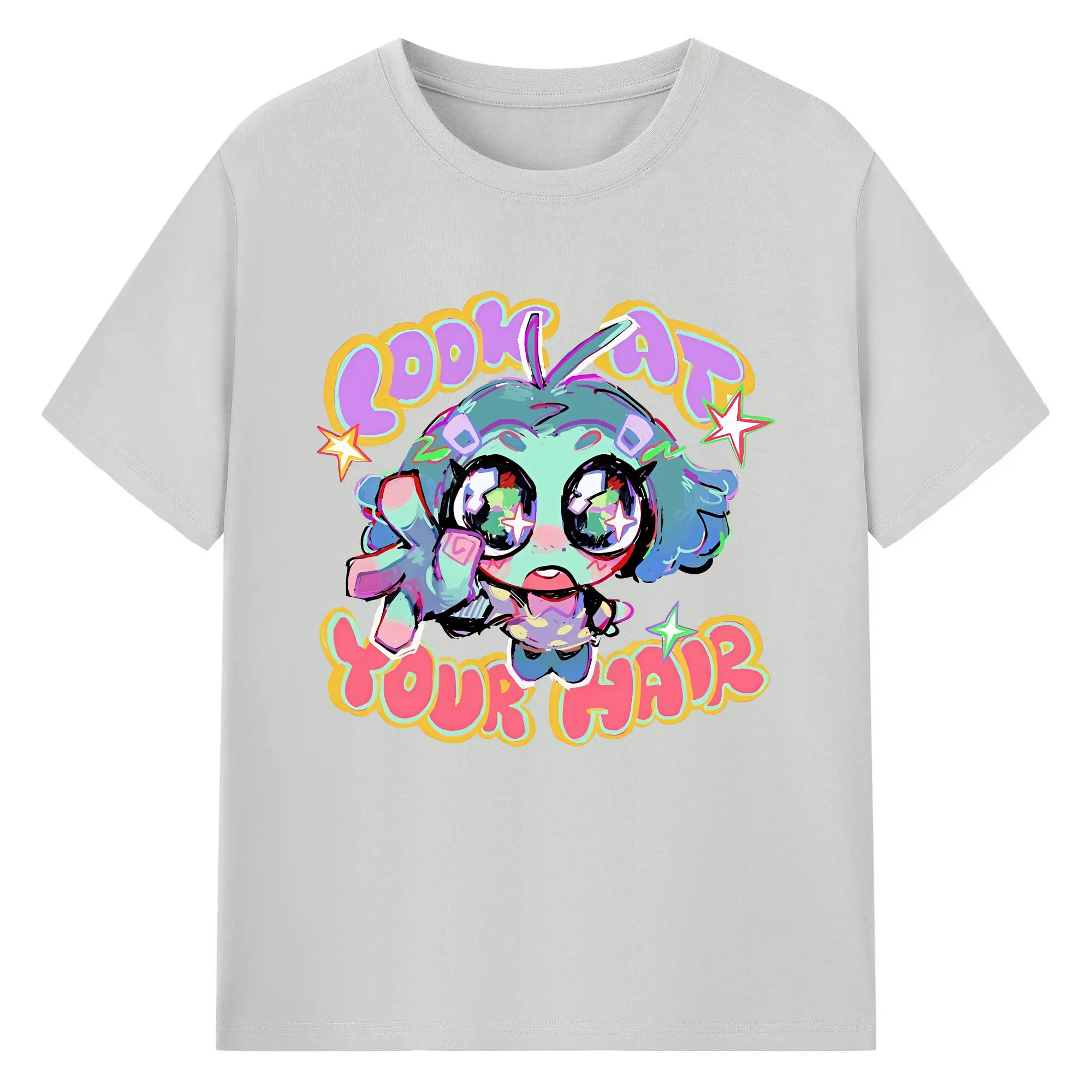 鏡音リン・レン デフォルメ 丸型フレーム ぽんやり可愛い オリジナルデザイン - 綿100% 半袖Tシャツ ・ フロントプリント ・ 快適 通気性 ・ 日常使い 散歩 スポーツ用