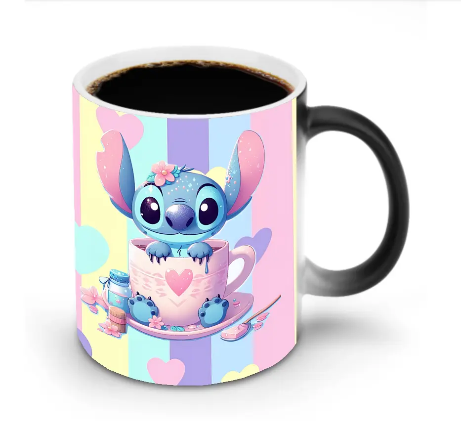 ディズニー スティッチ ハートカップ ふわふわ 可愛い オリジナルデザイン - 変色マグカップ ・ セラミック ・ 熱転写プリント ・ 耐久性 高品質 ・ ギフト・自宅用 コーヒー お茶