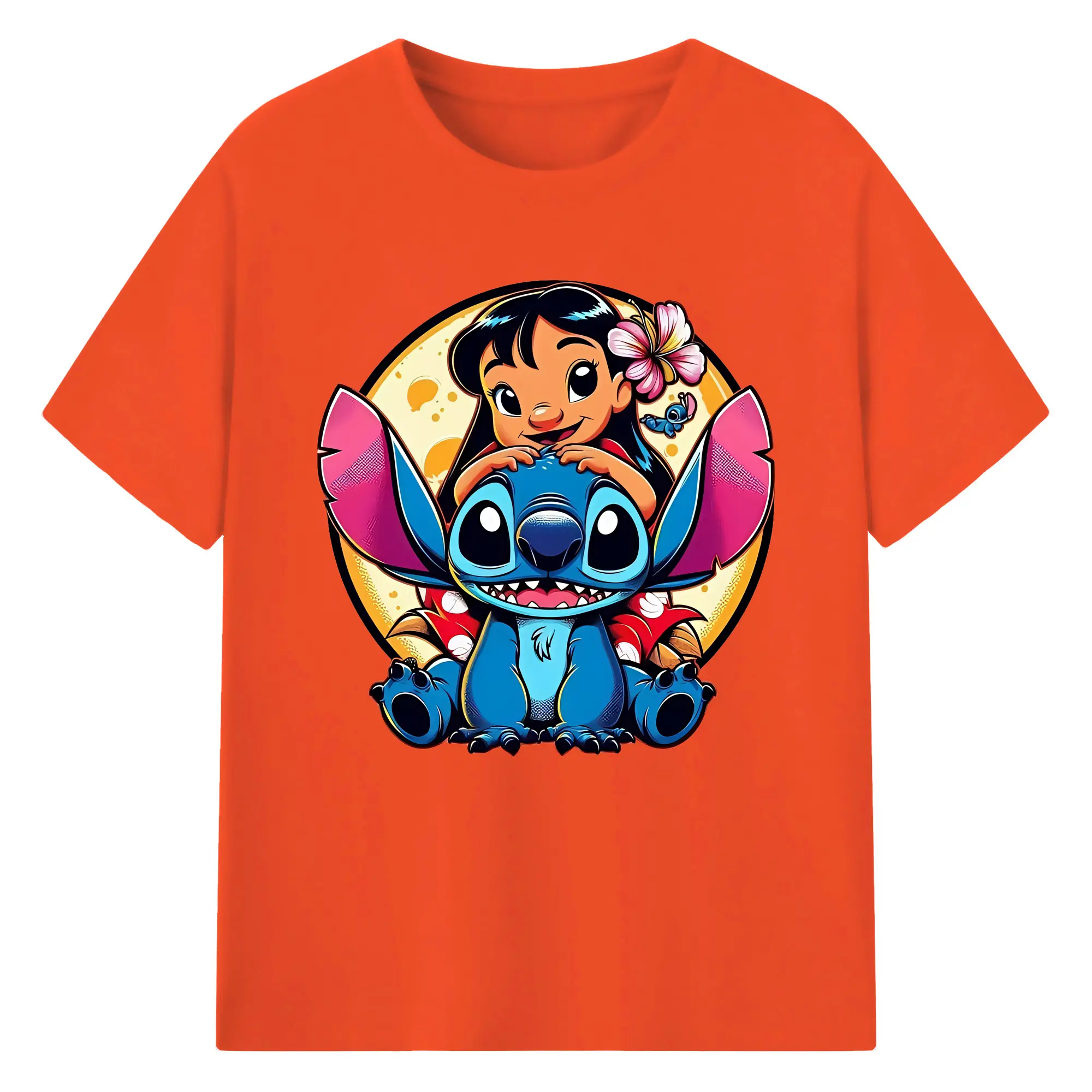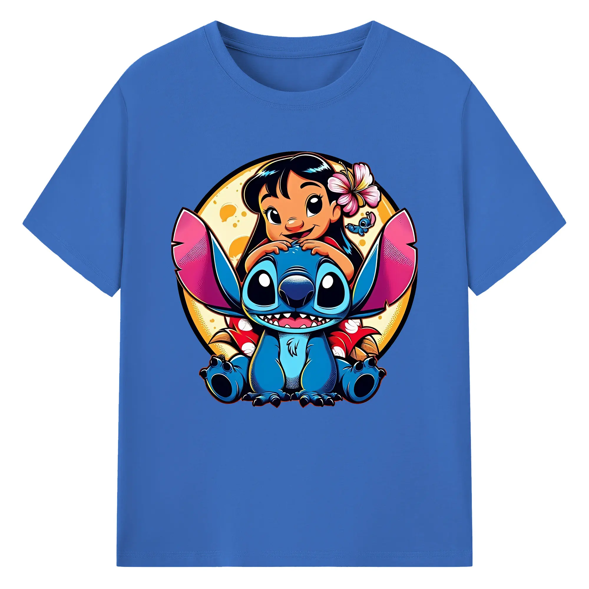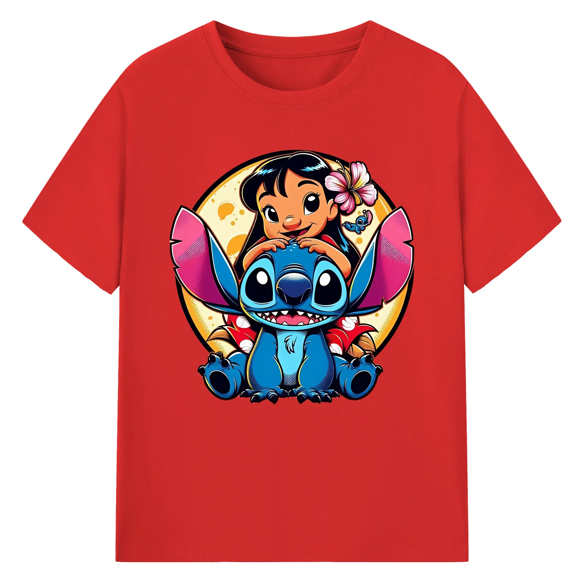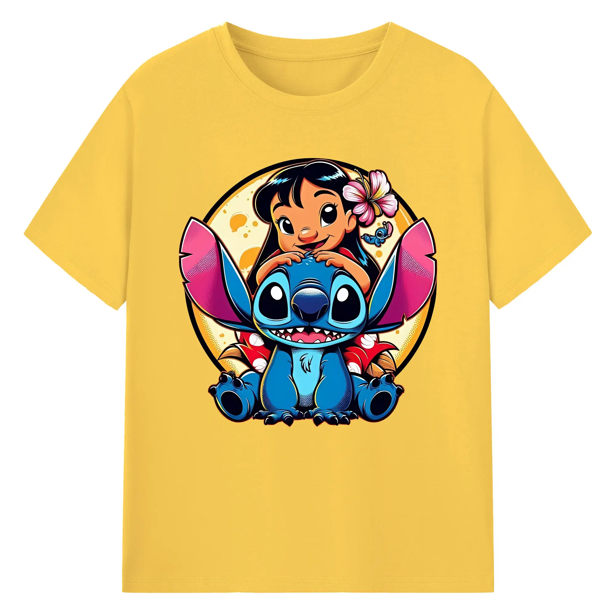 ディズニー スティッチ&リロ カラフルなインク風 オリジナルデザイン - 綿100% 半袖Tシャツ ・ フロントプリント ・ 快適 通気性 ・ 日常使い 散歩 スポーツ用