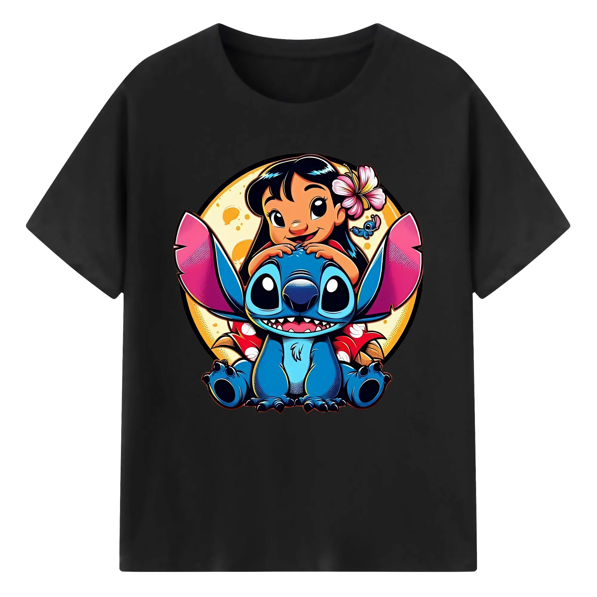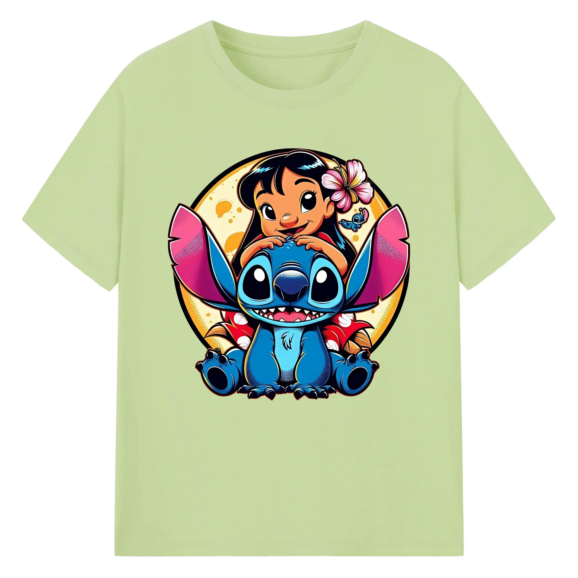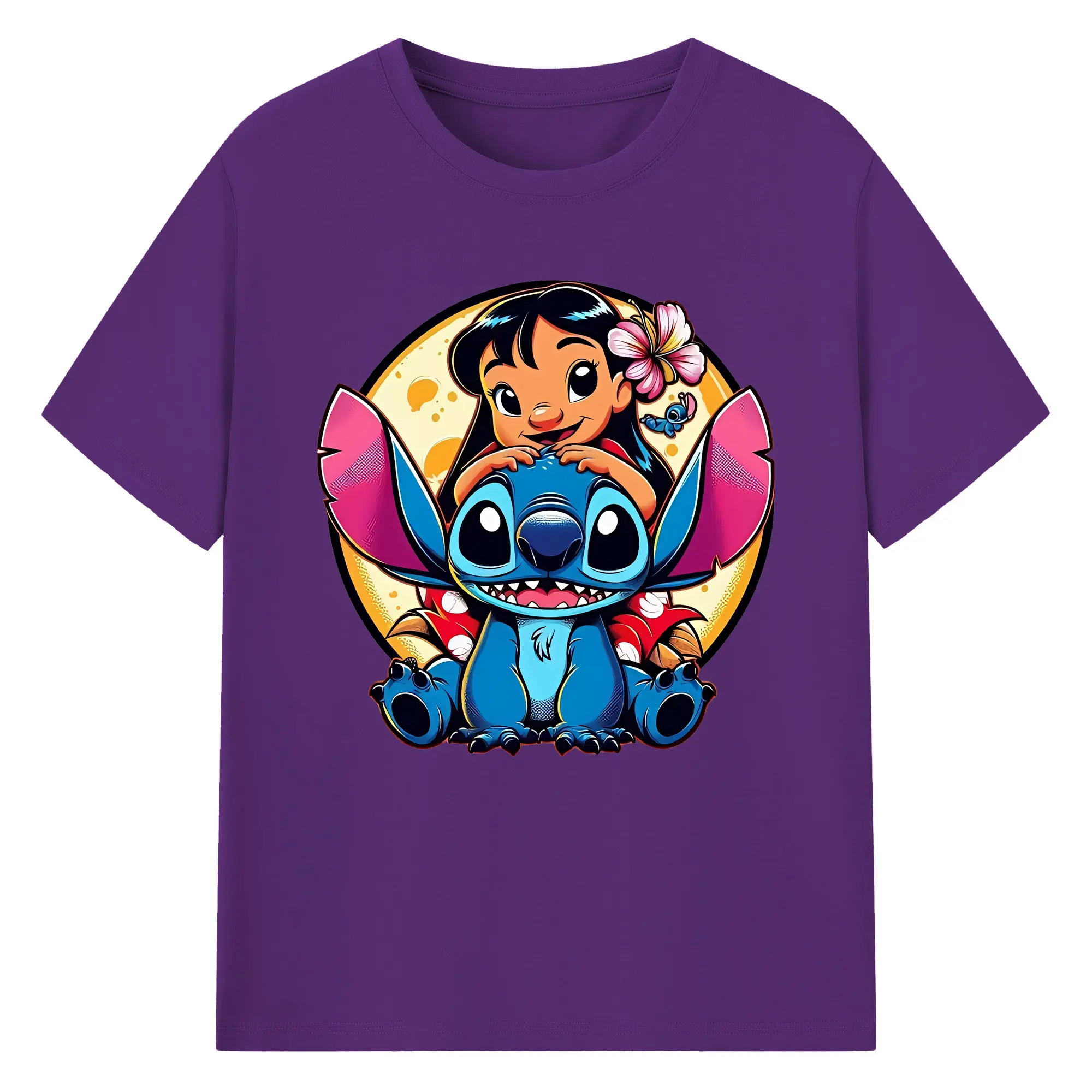 ディズニー スティッチ&リロ カラフルなインク風 オリジナルデザイン - 綿100% 半袖Tシャツ ・ フロントプリント ・ 快適 通気性 ・ 日常使い 散歩 スポーツ用