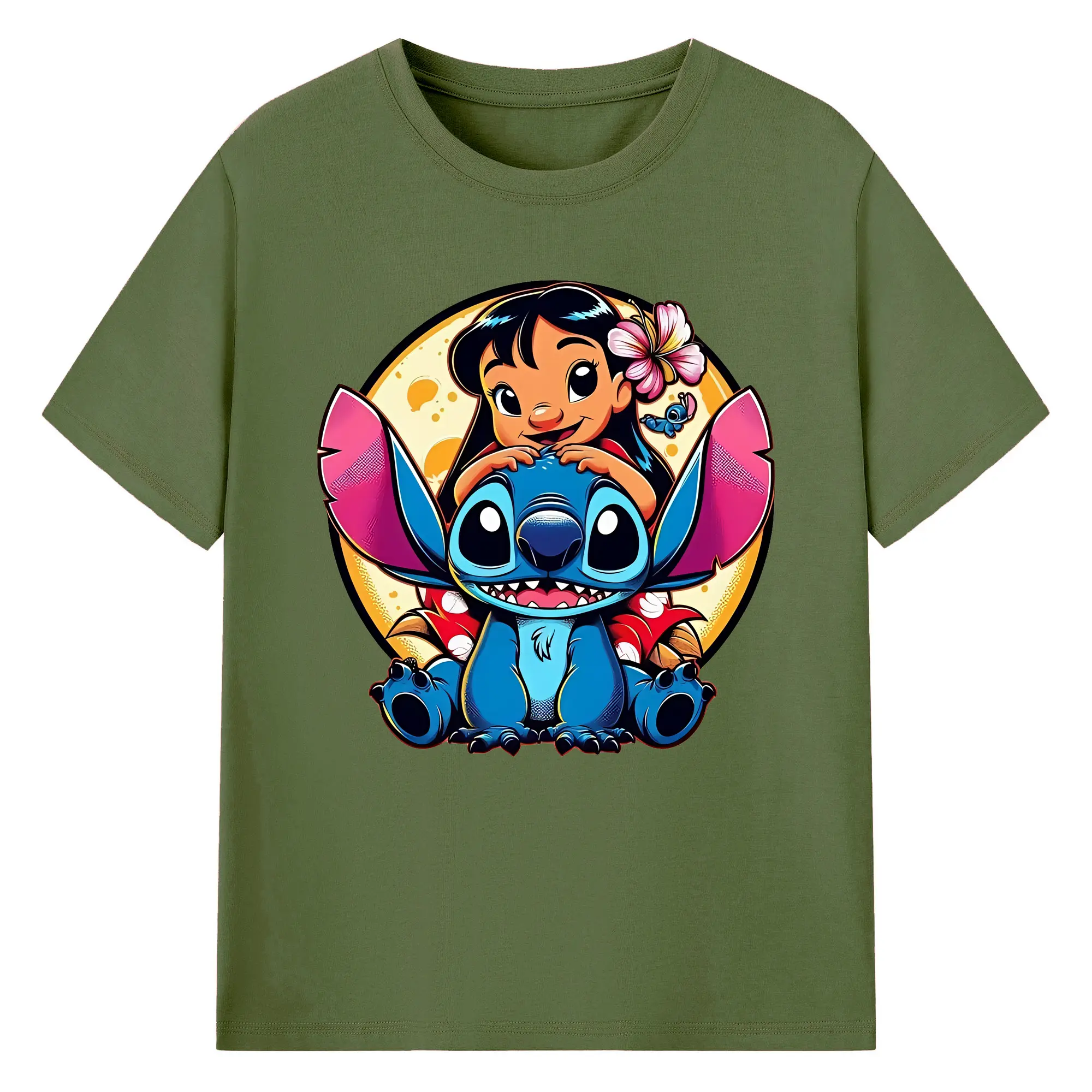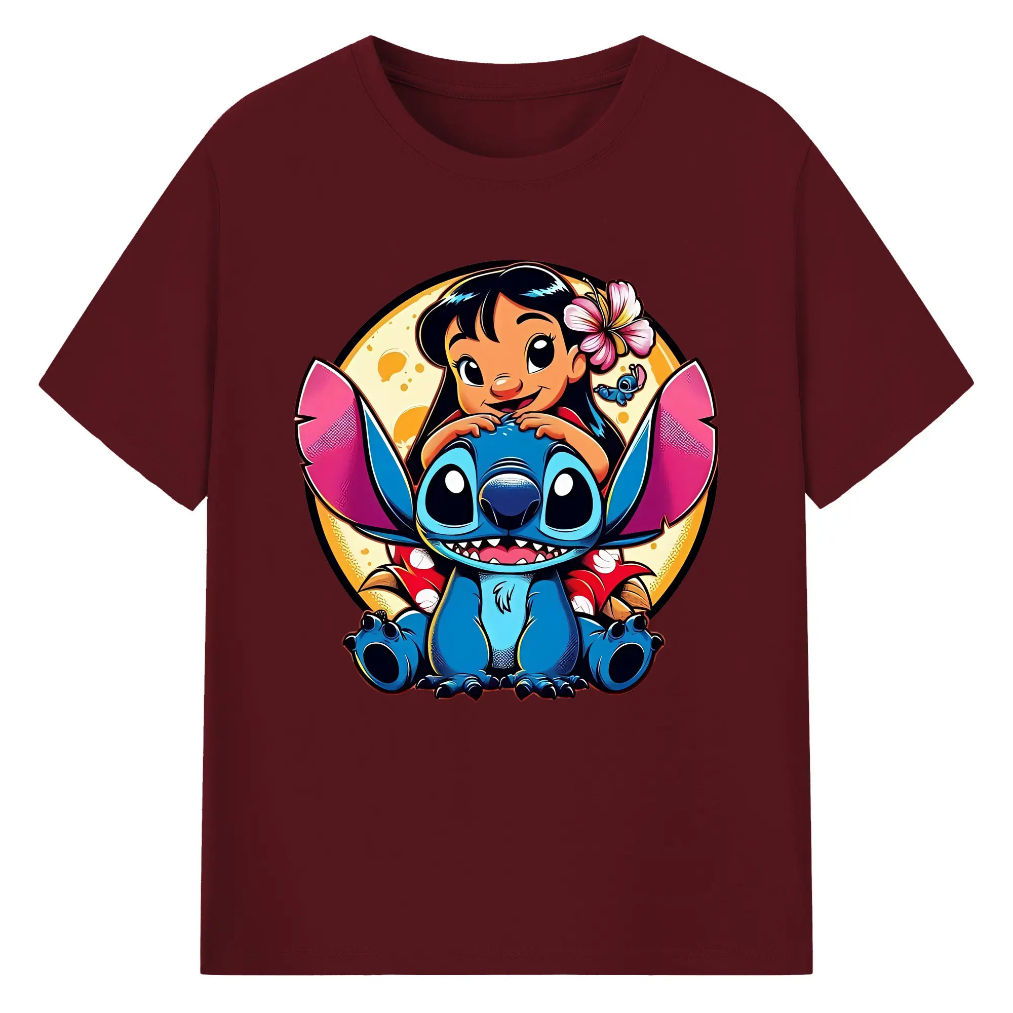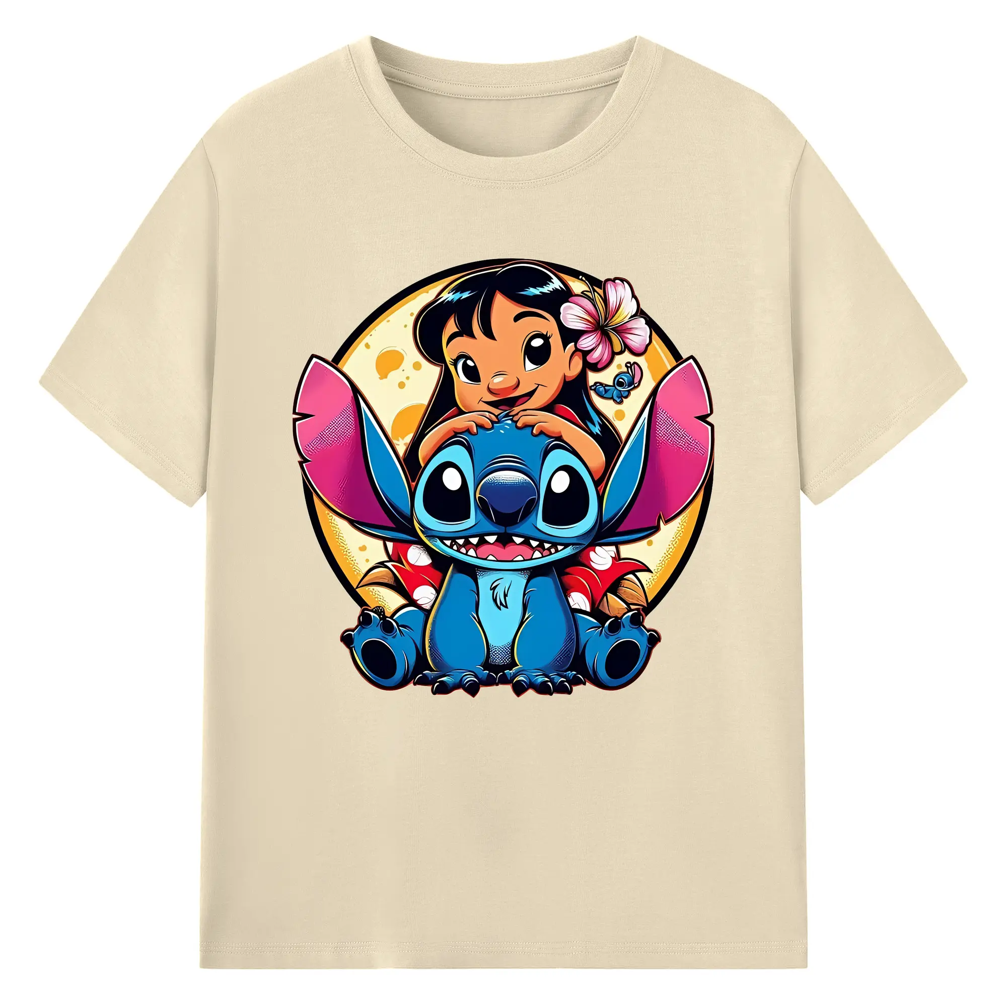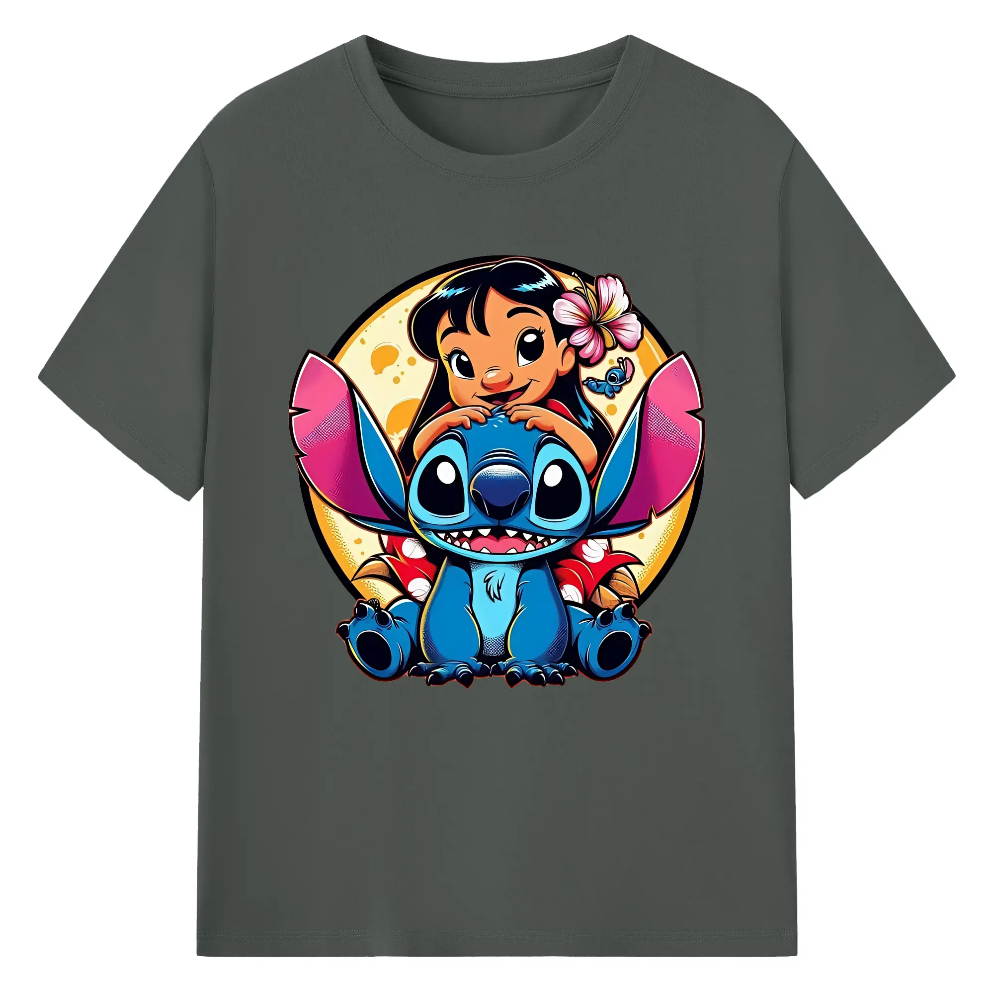 ディズニー スティッチ&リロ カラフルなインク風 オリジナルデザイン - 綿100% 半袖Tシャツ ・ フロントプリント ・ 快適 通気性 ・ 日常使い 散歩 スポーツ用