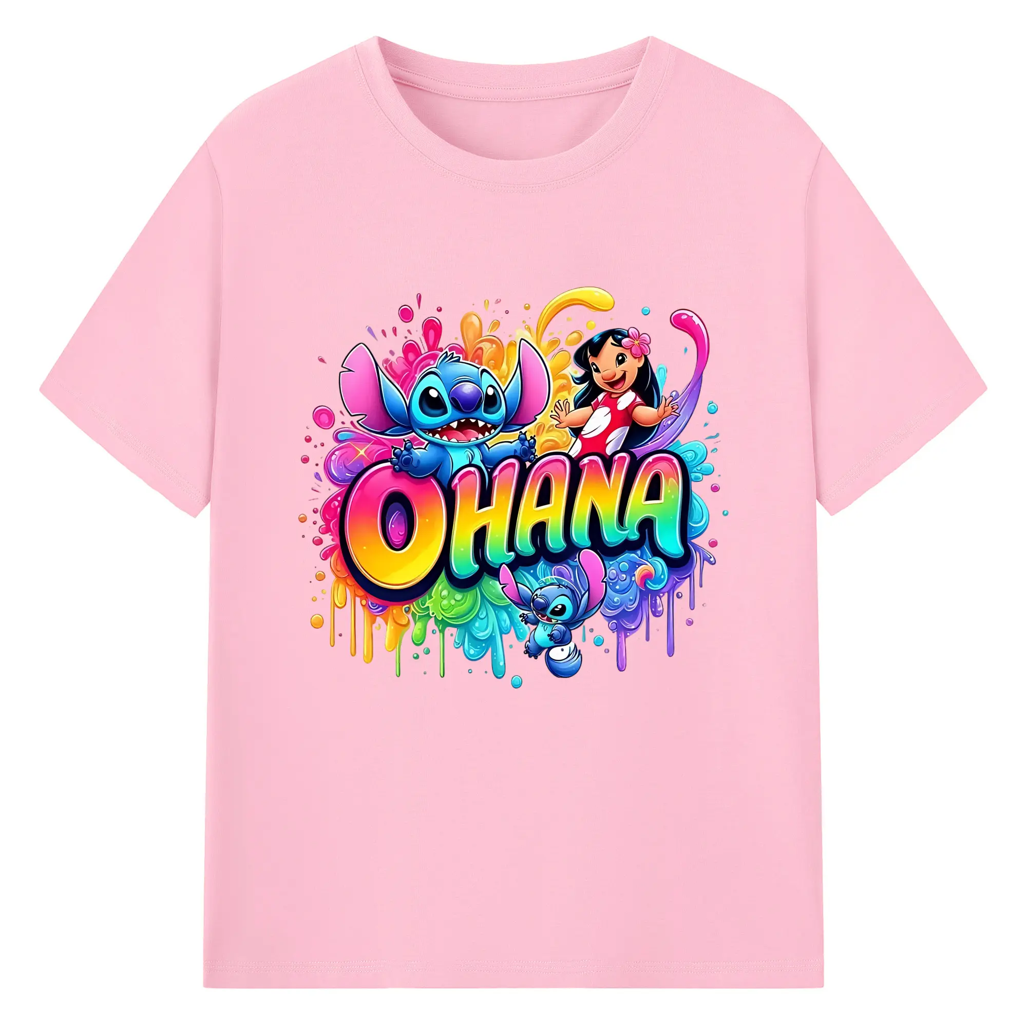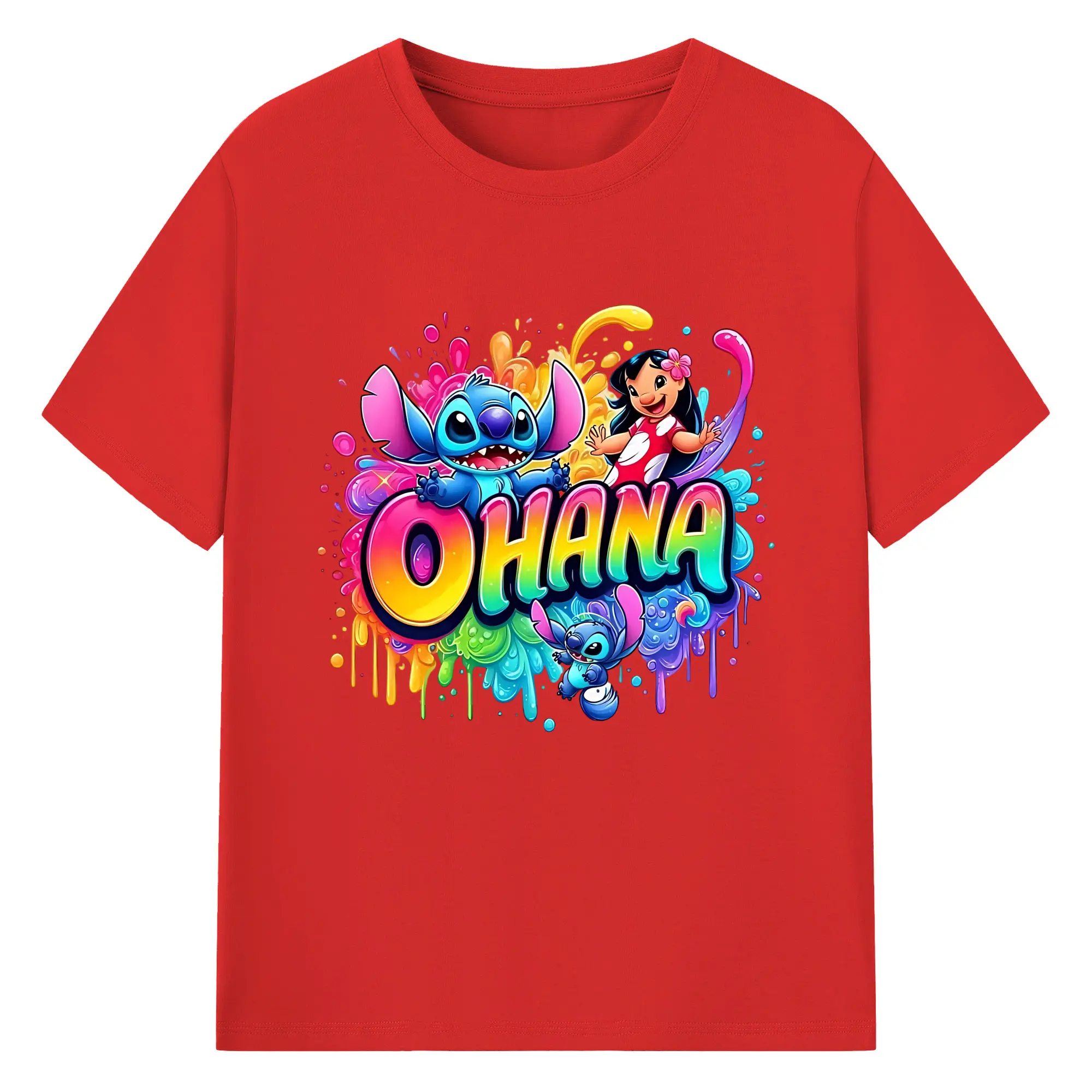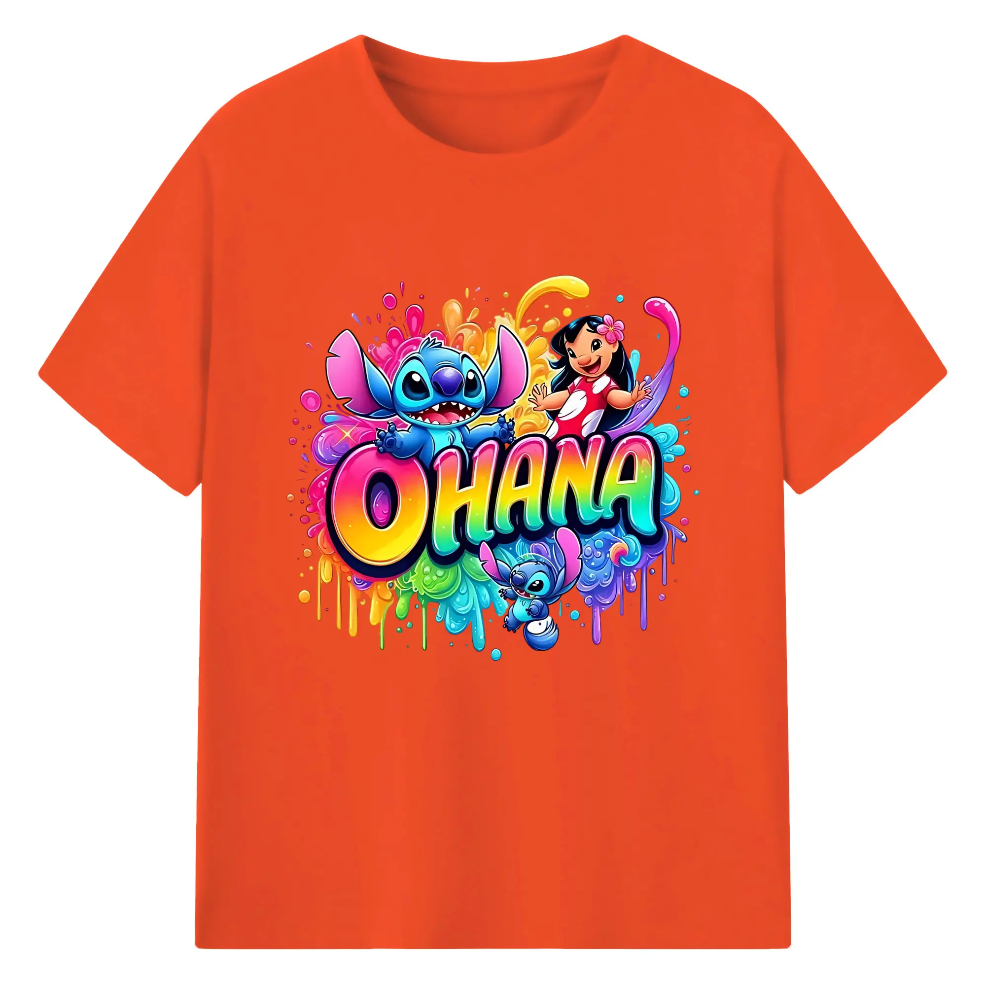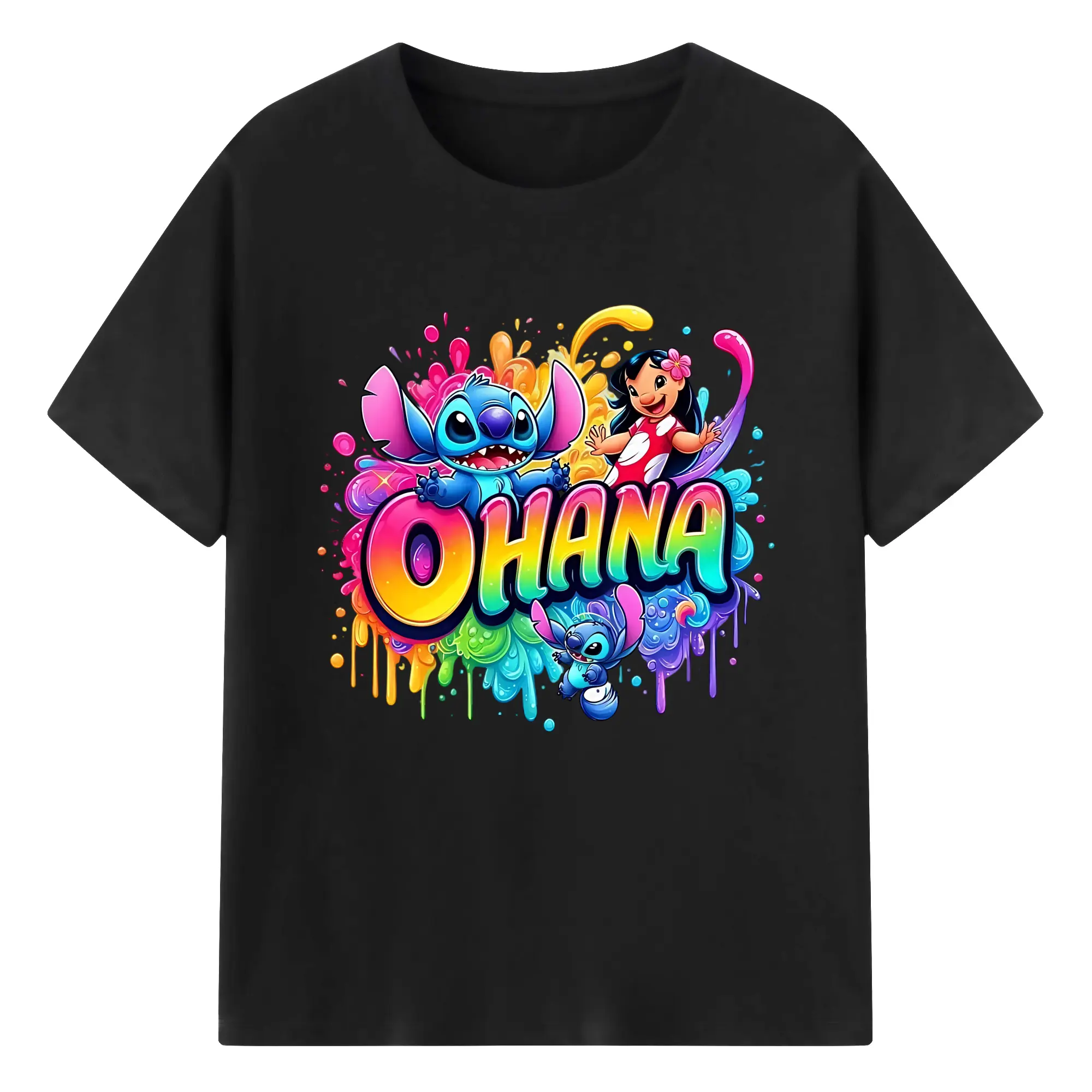 ディズニー スティッチ リロ 仲良し オリジナルデザイン - 綿100% 半袖Tシャツ ・ フロントプリント ・ 快適 通気性 ・ 日常使い 散歩 スポーツ用