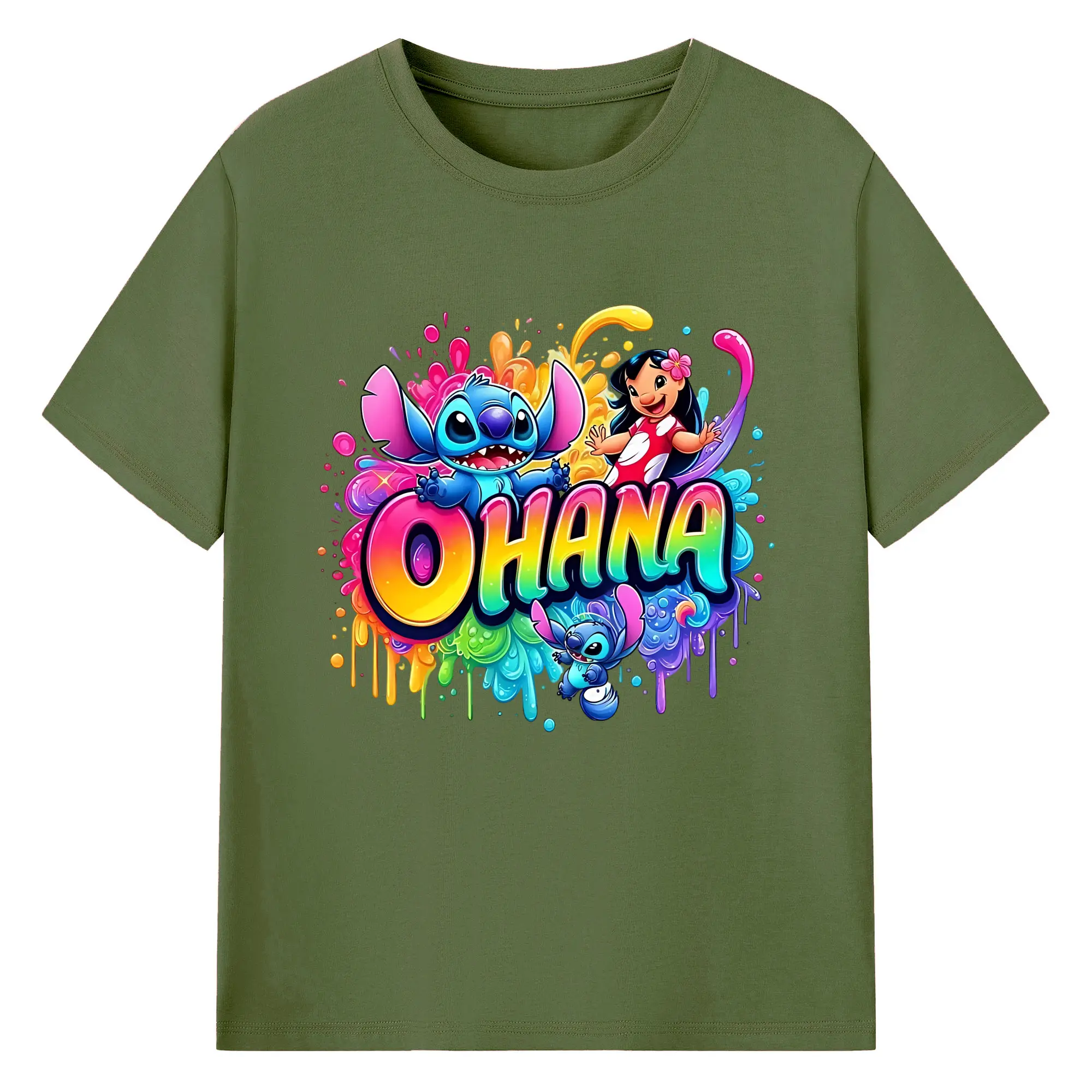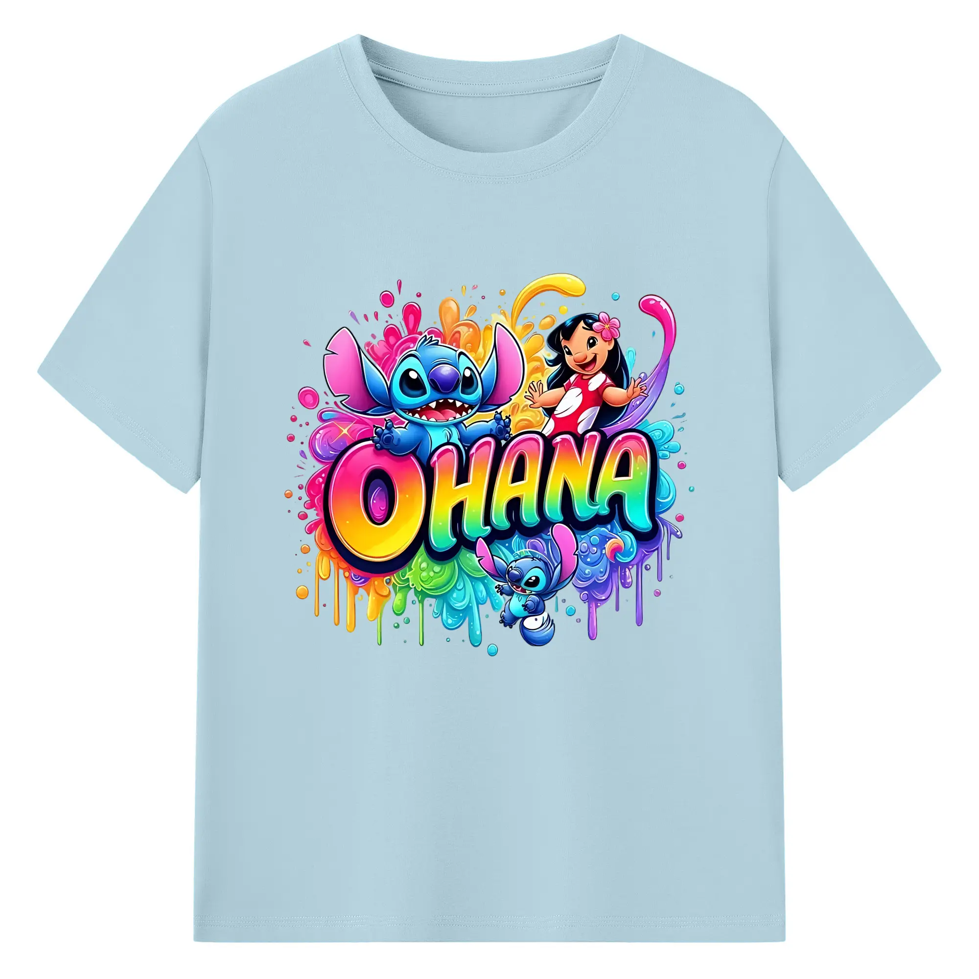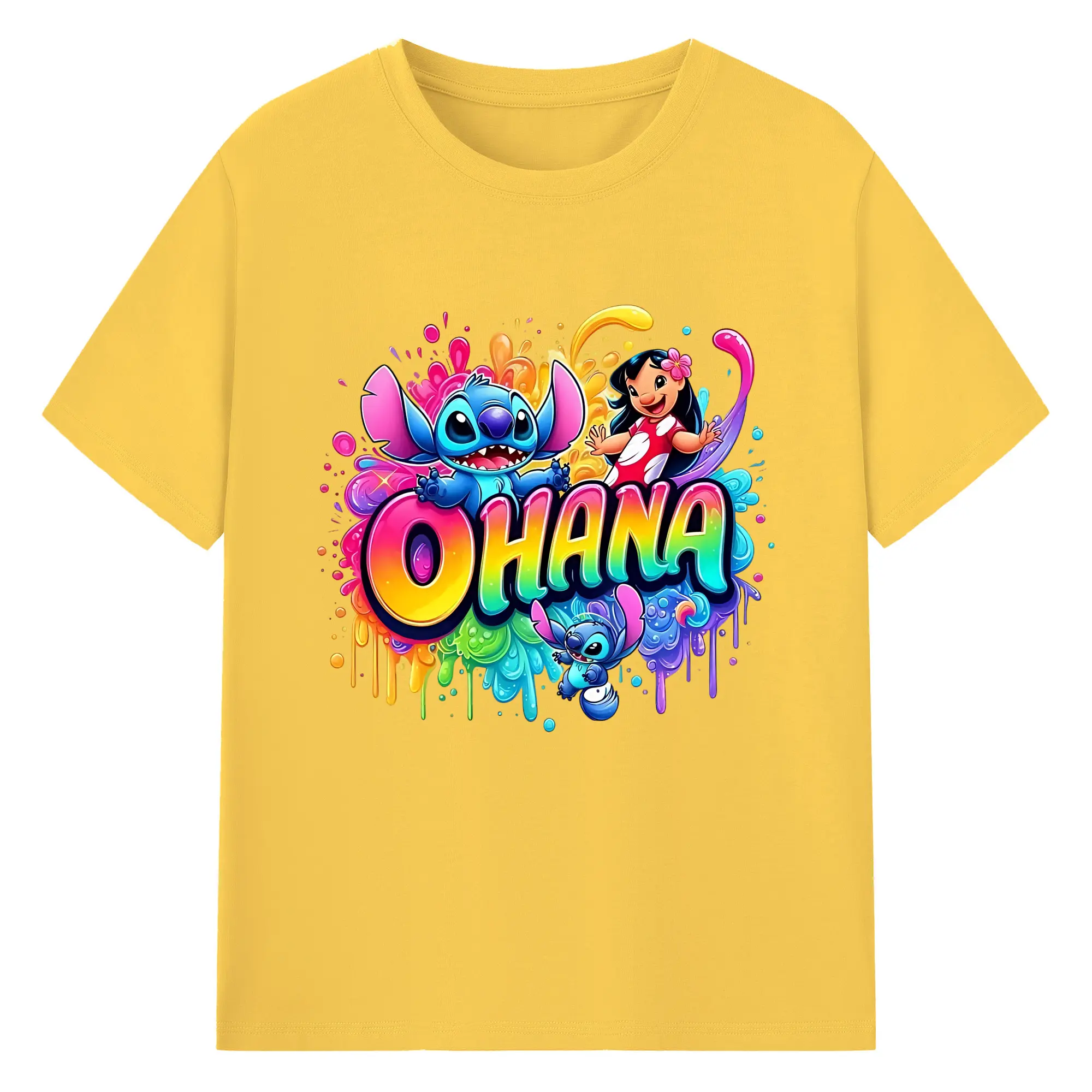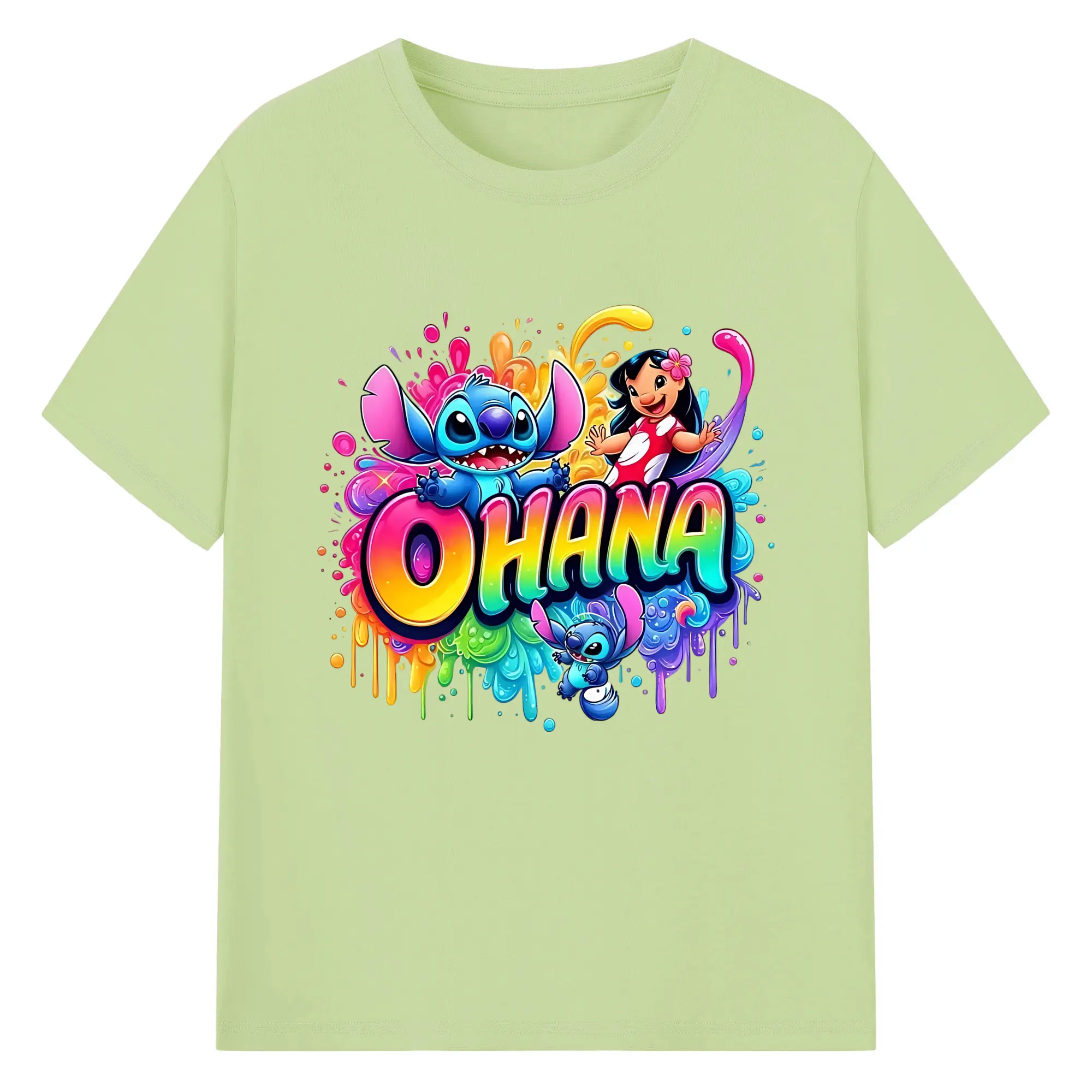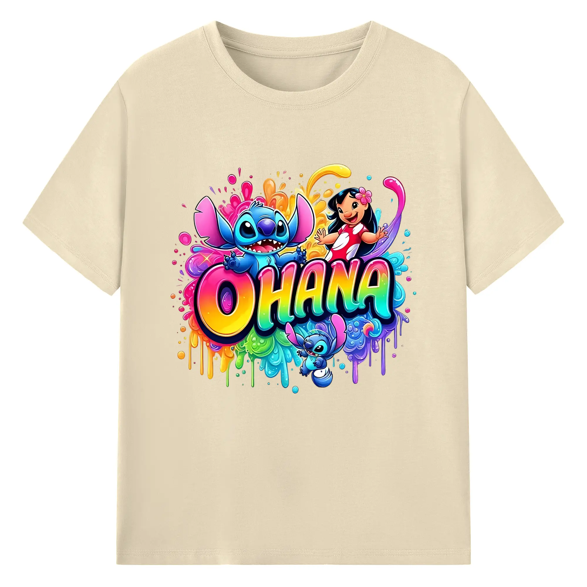 ディズニー スティッチ リロ 仲良し オリジナルデザイン - 綿100% 半袖Tシャツ ・ フロントプリント ・ 快適 通気性 ・ 日常使い 散歩 スポーツ用
