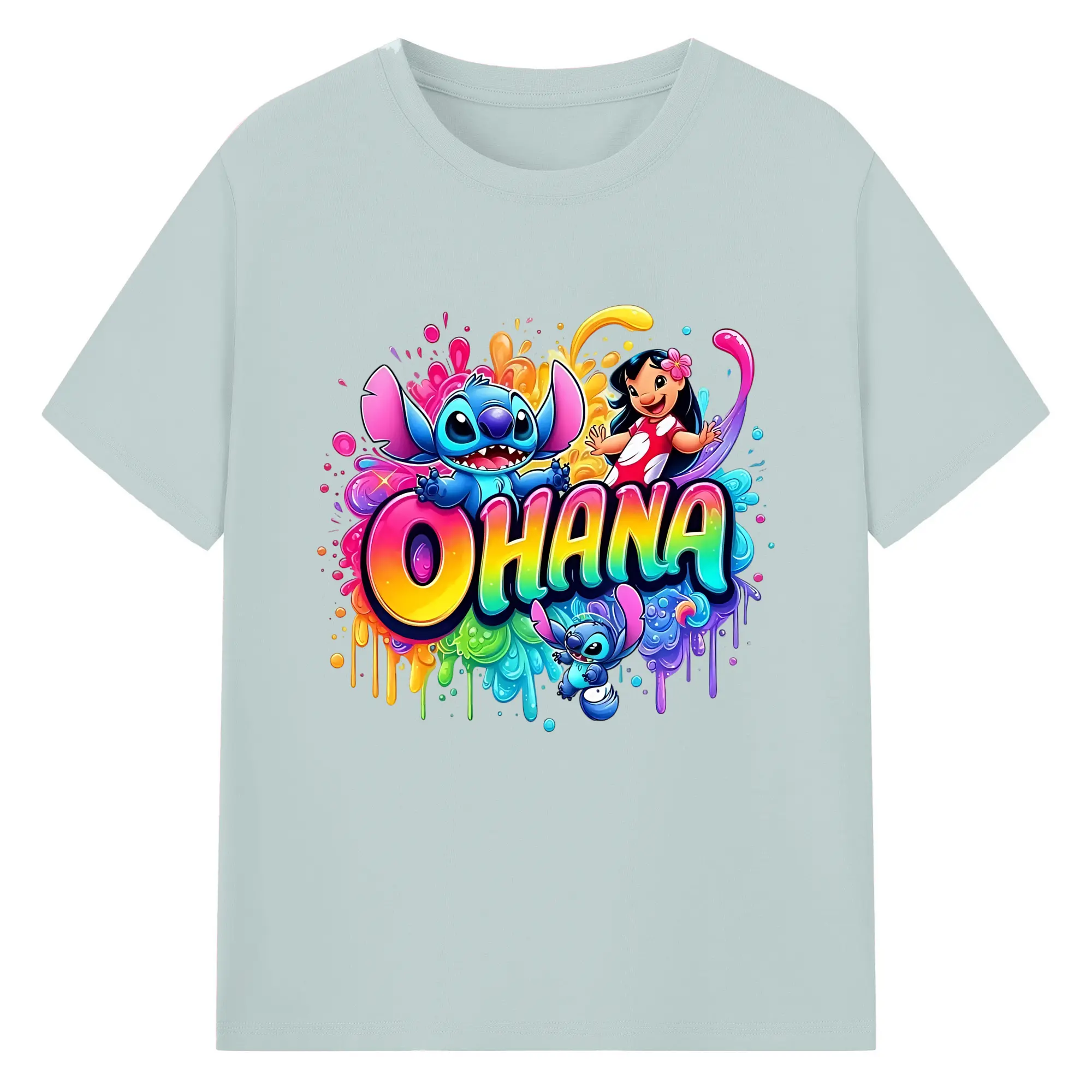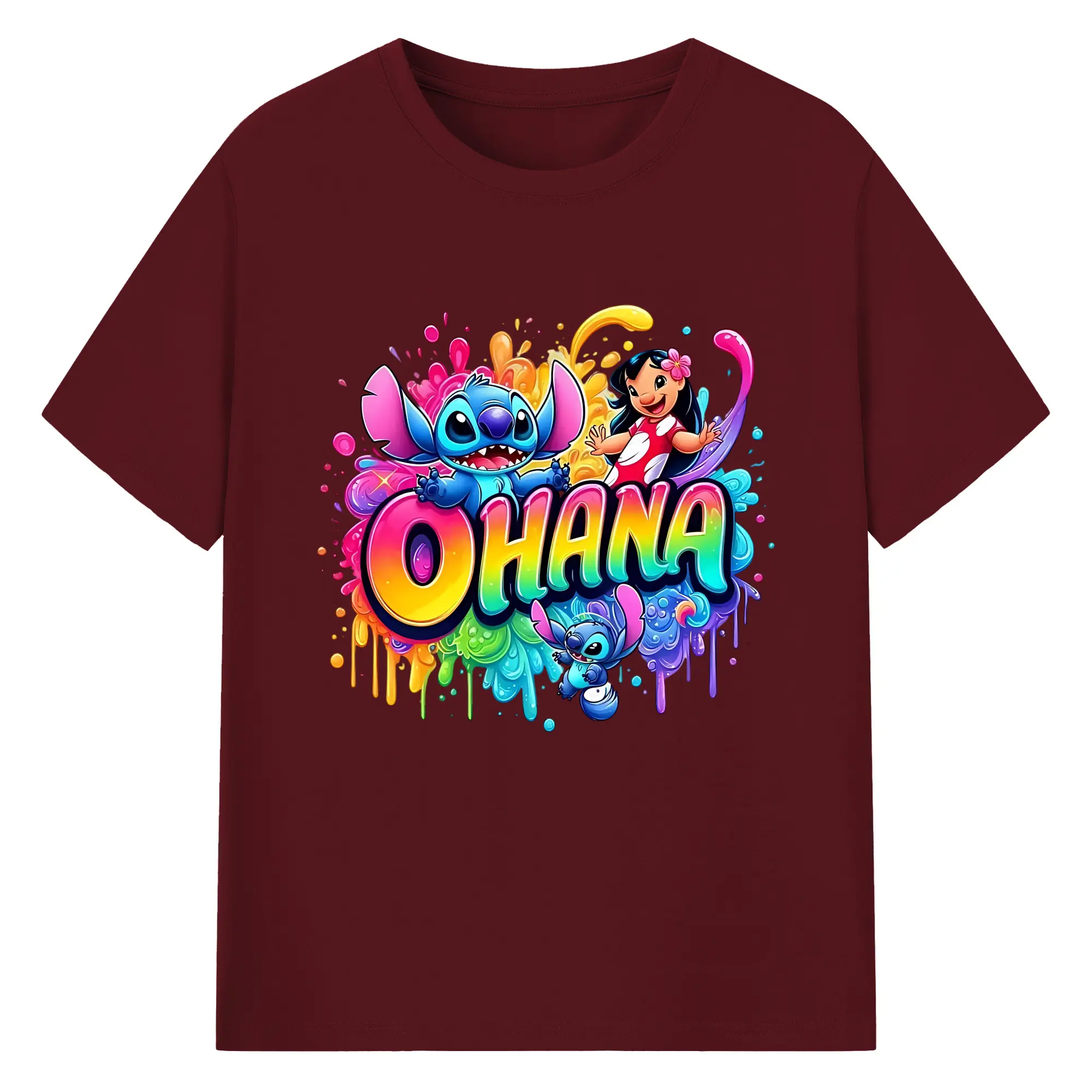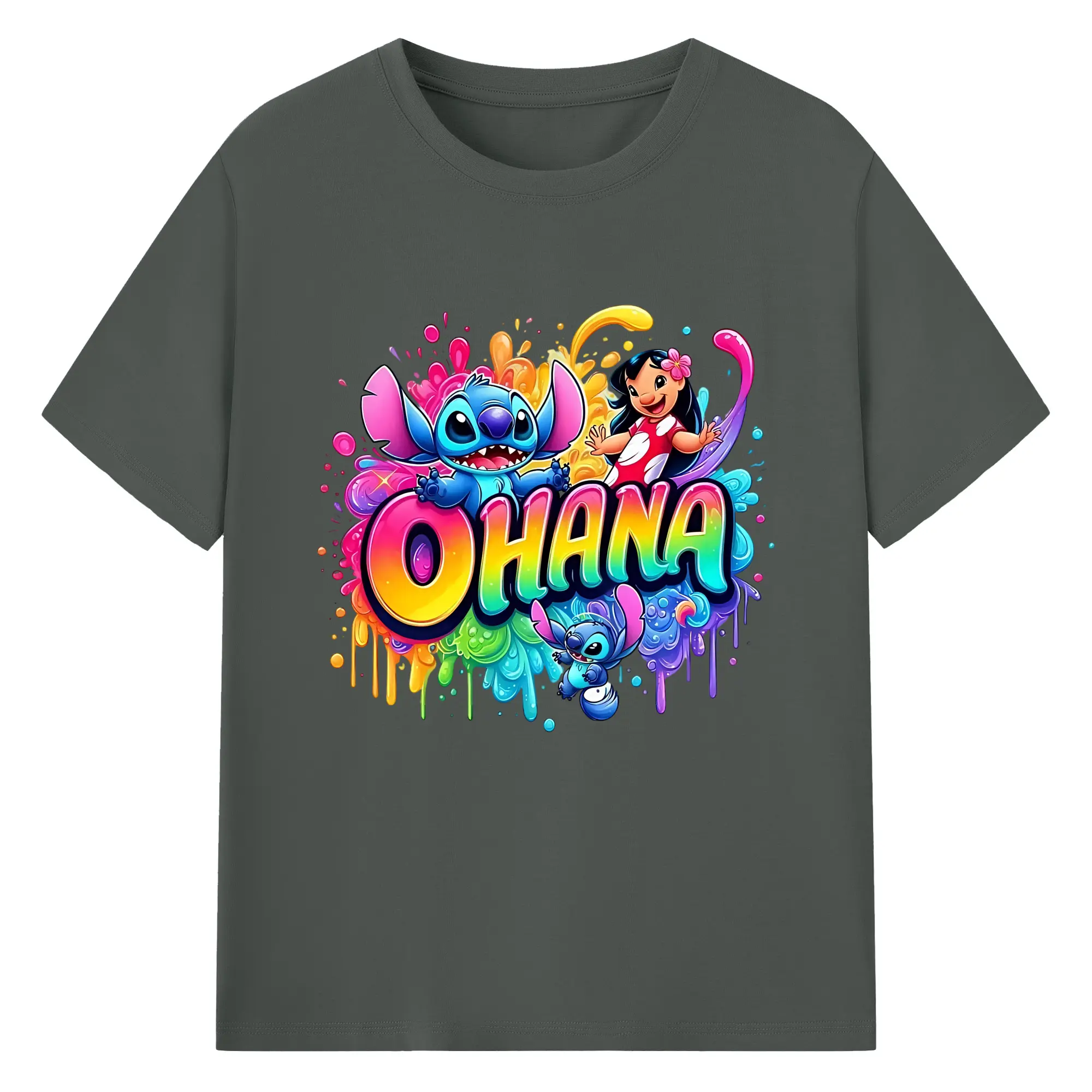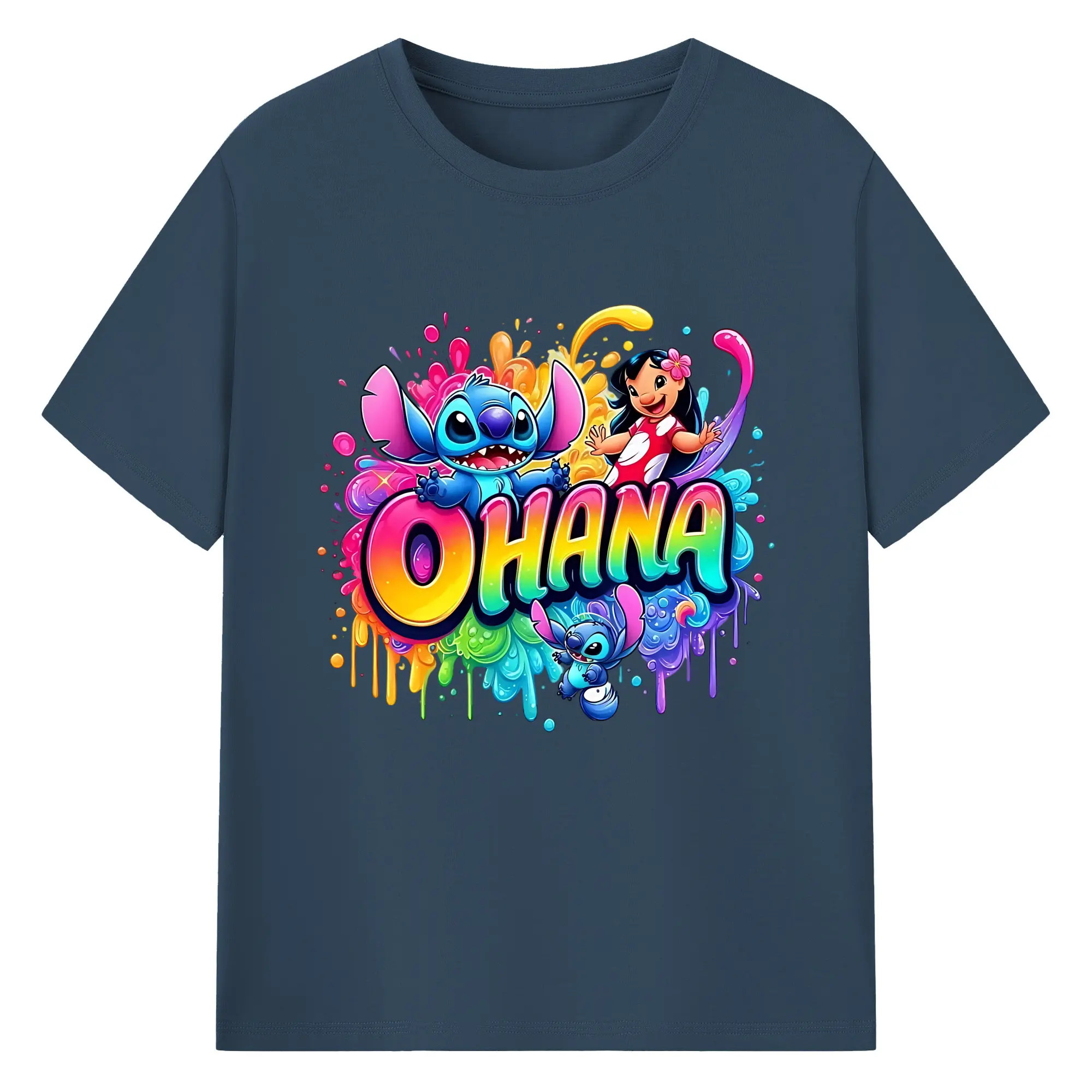 ディズニー スティッチ リロ 仲良し オリジナルデザイン - 綿100% 半袖Tシャツ ・ フロントプリント ・ 快適 通気性 ・ 日常使い 散歩 スポーツ用