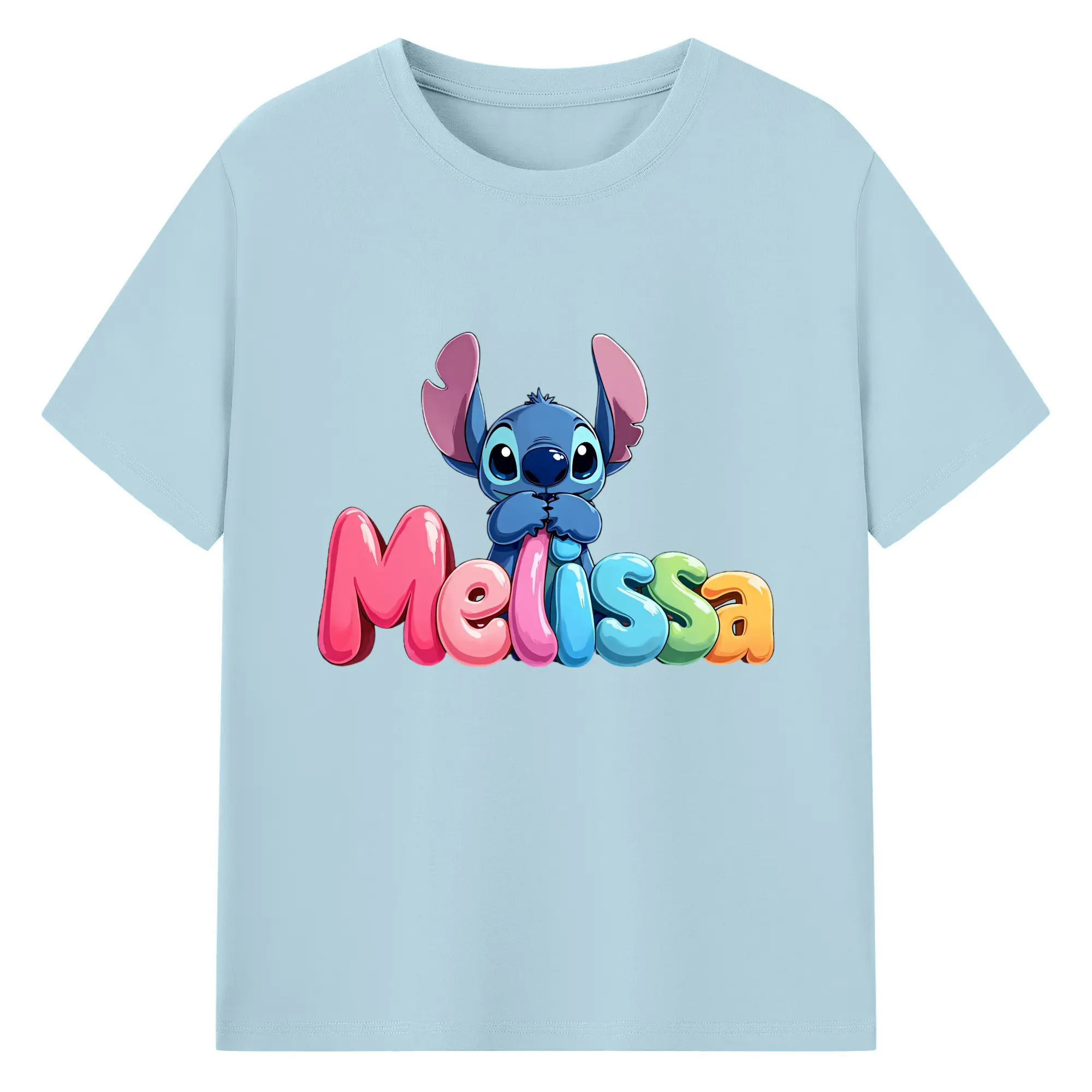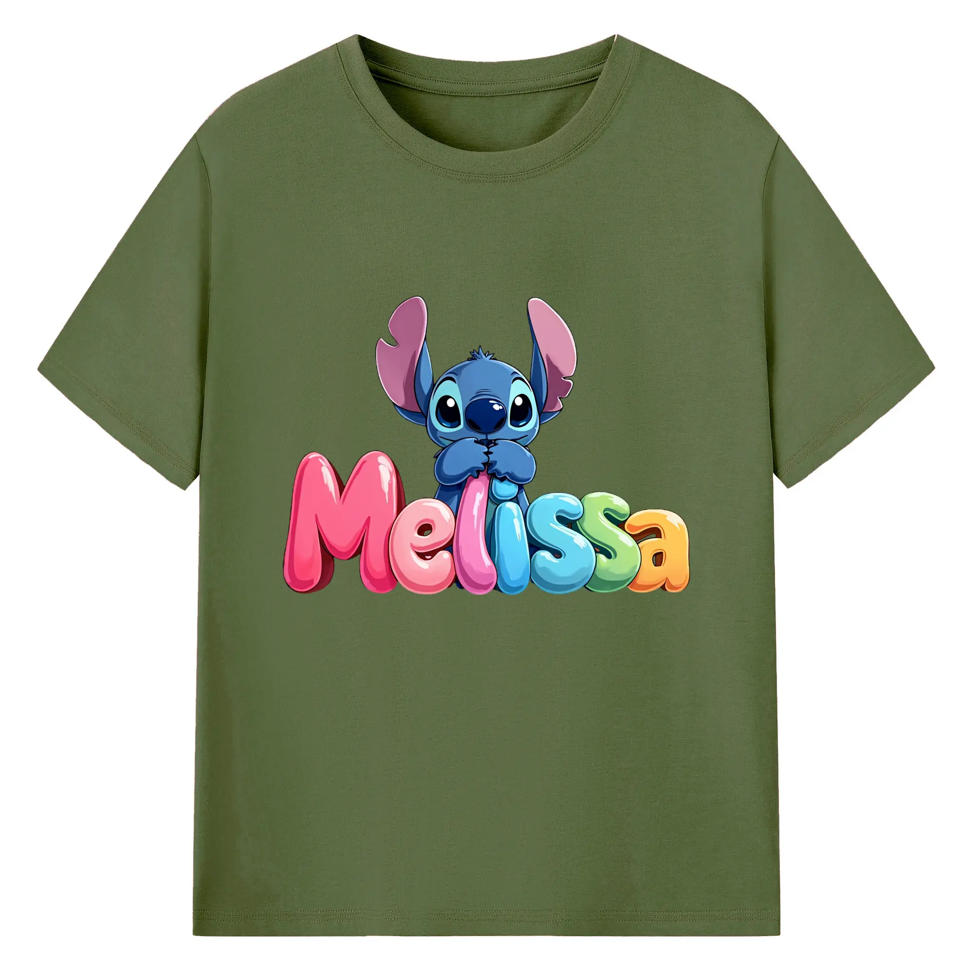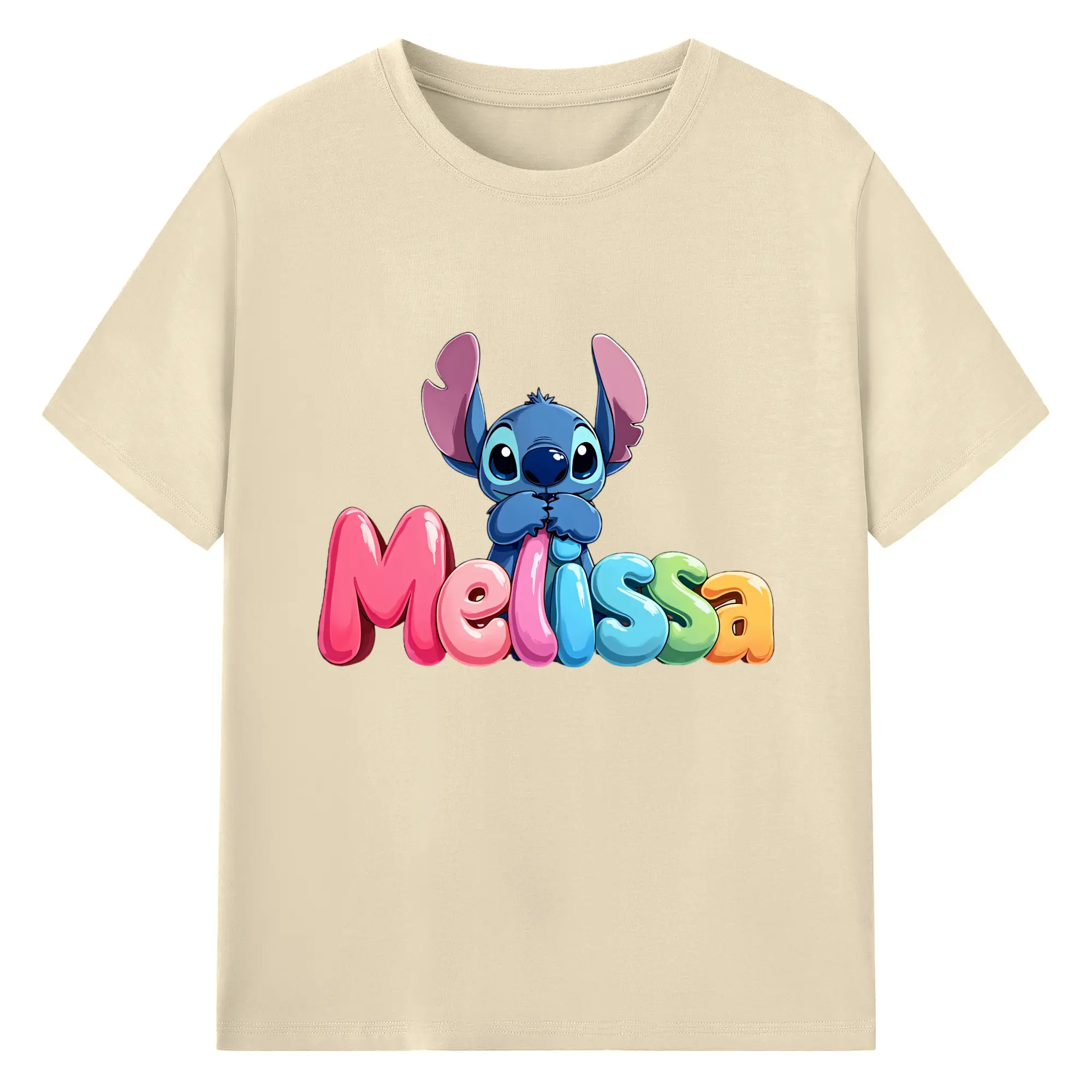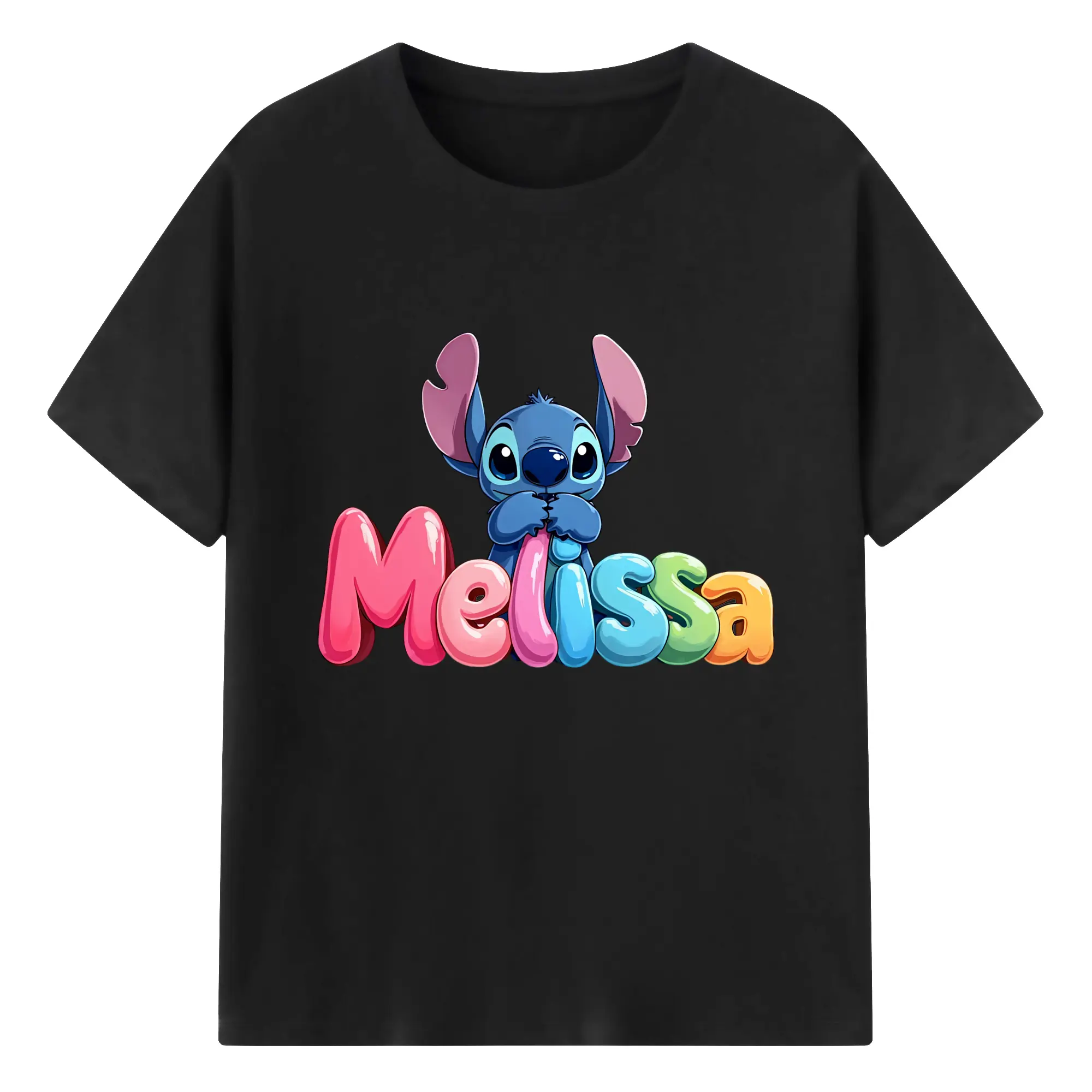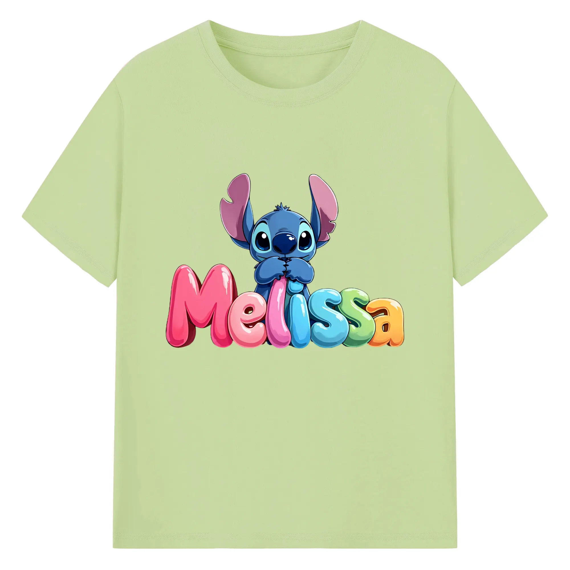 ディズニー スティッチ 水彩風 オリジナルデザイン - 綿100% 半袖Tシャツ ・ フロントプリント ・ 快適 通気性 ・ 日常使い 散歩 スポーツ用