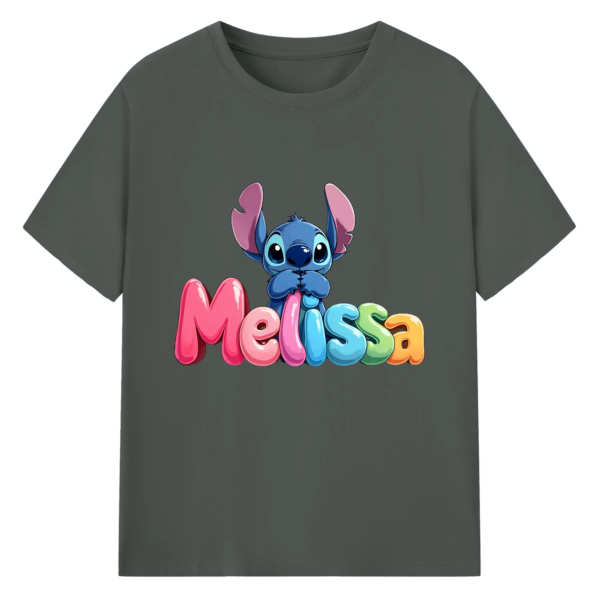 ディズニー スティッチ ハート シンプル オリジナルデザイン - 綿100% 半袖Tシャツ ・ フロントプリント ・ 快適 通気性 ・ 日常使い 散歩 スポーツ用