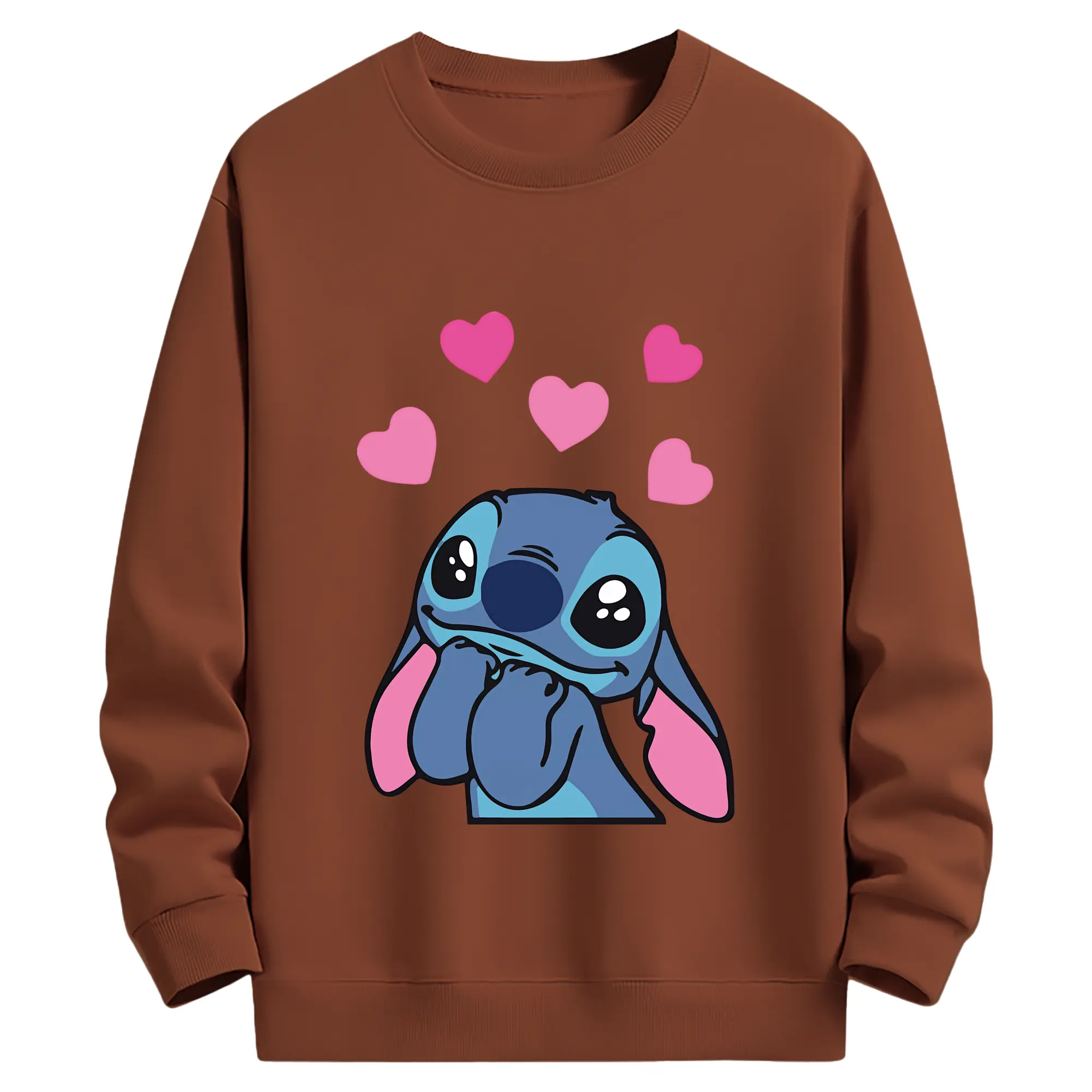 ミニー &スティッチコラボイラスト かわいいデザイン - 高品質 クルーネック スウェット ・ コットン59% ポリエステル41% ・ ユニセックス 長袖 トレーナー ・ カジュアル デイリー スポーツ 散歩用