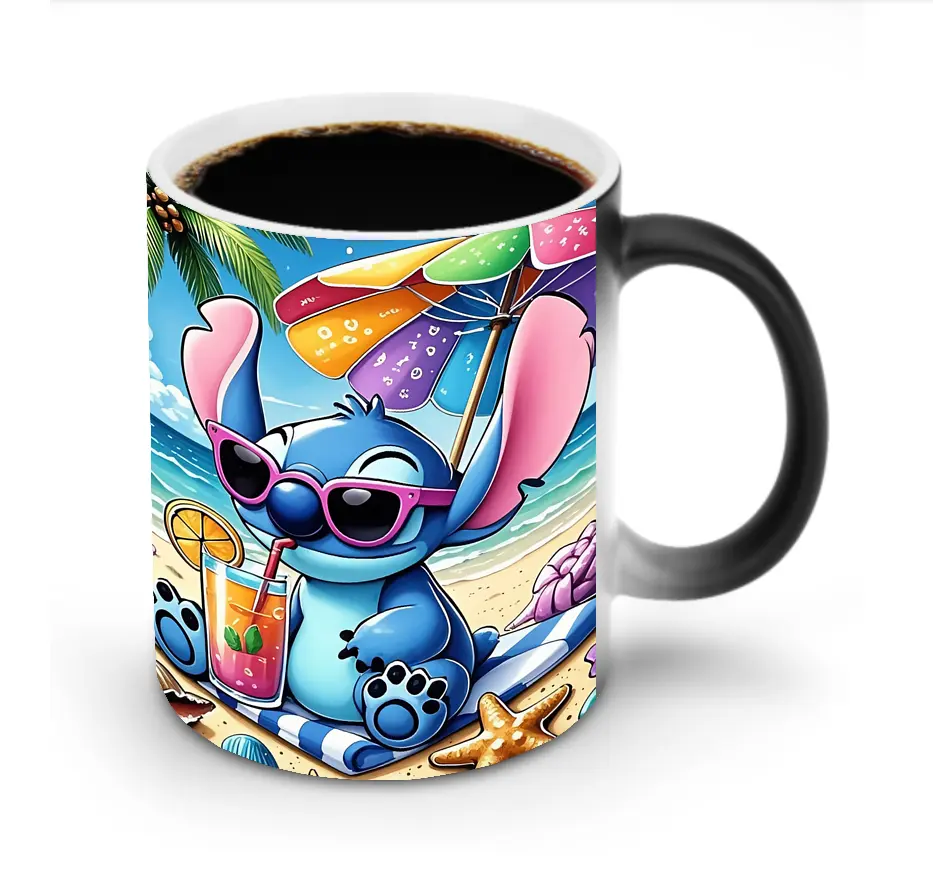 ディズニー スティッチ ビーチバケーション のんびり オリジナルデザイン - 変色マグカップ ・ セラミック ・ 熱転写プリント ・ 耐久性 高品質 ・ ギフト・自宅用 コーヒー お茶