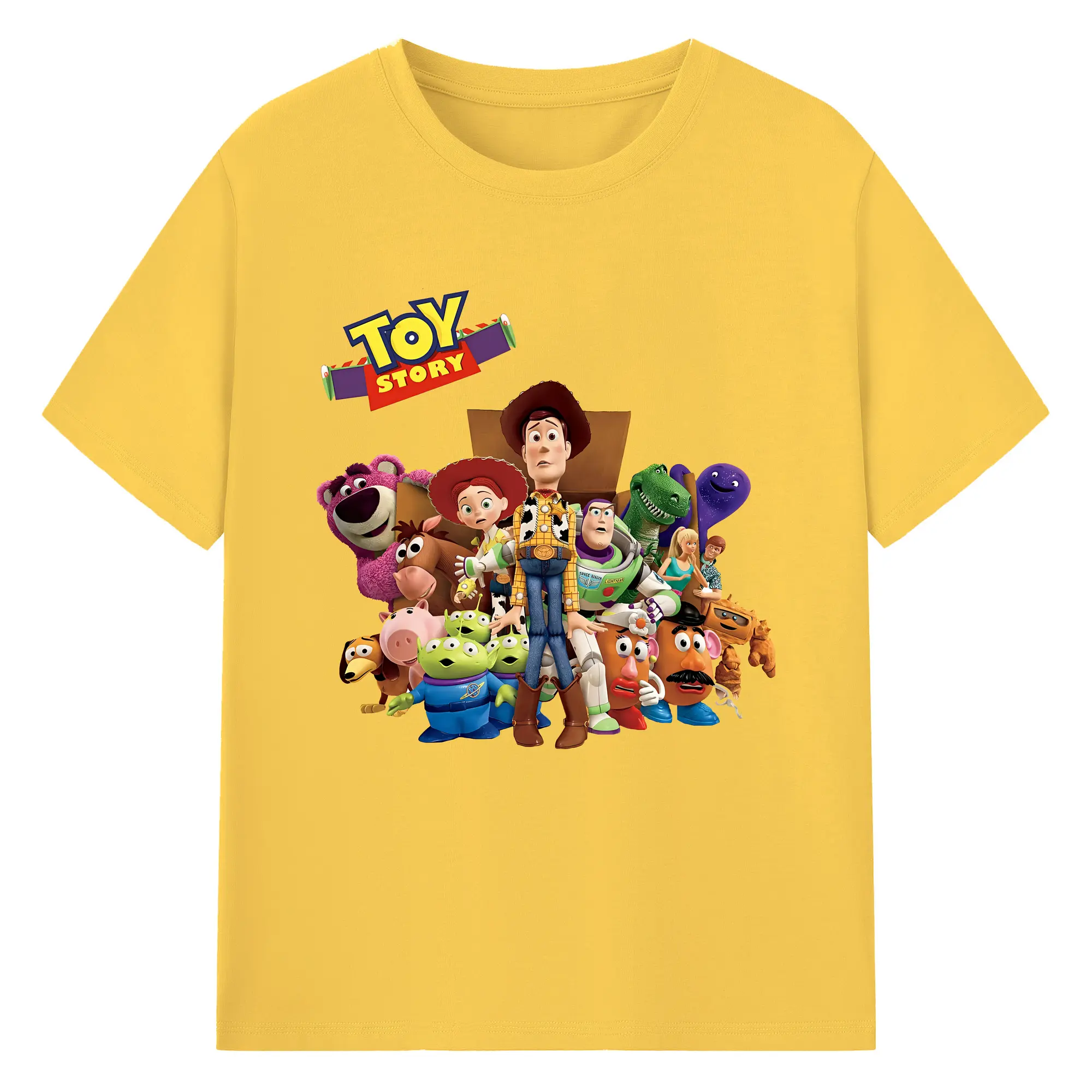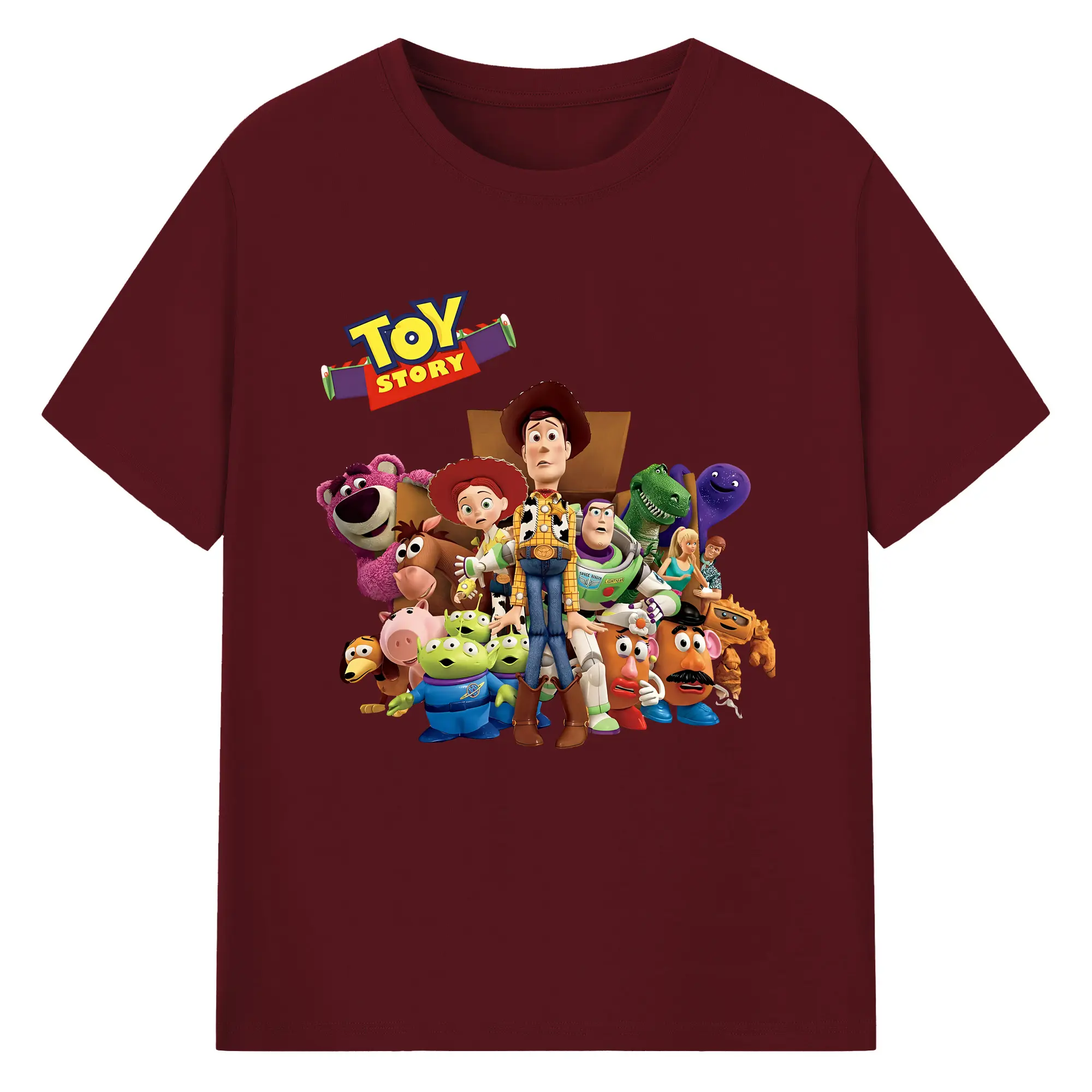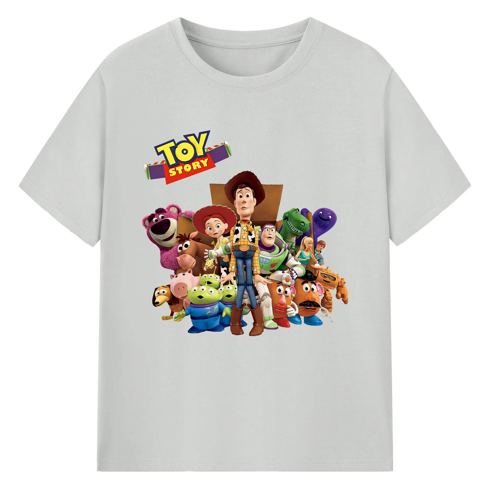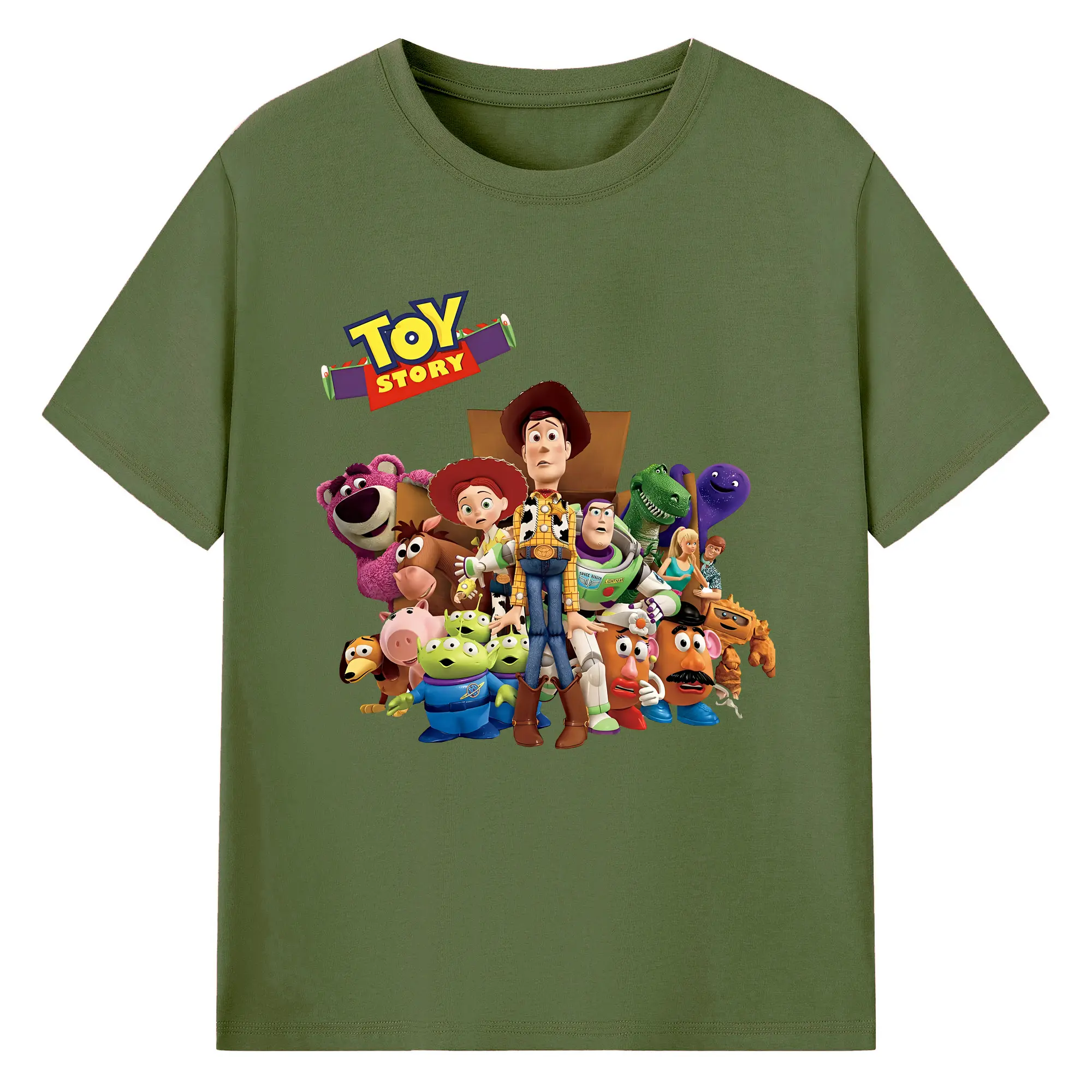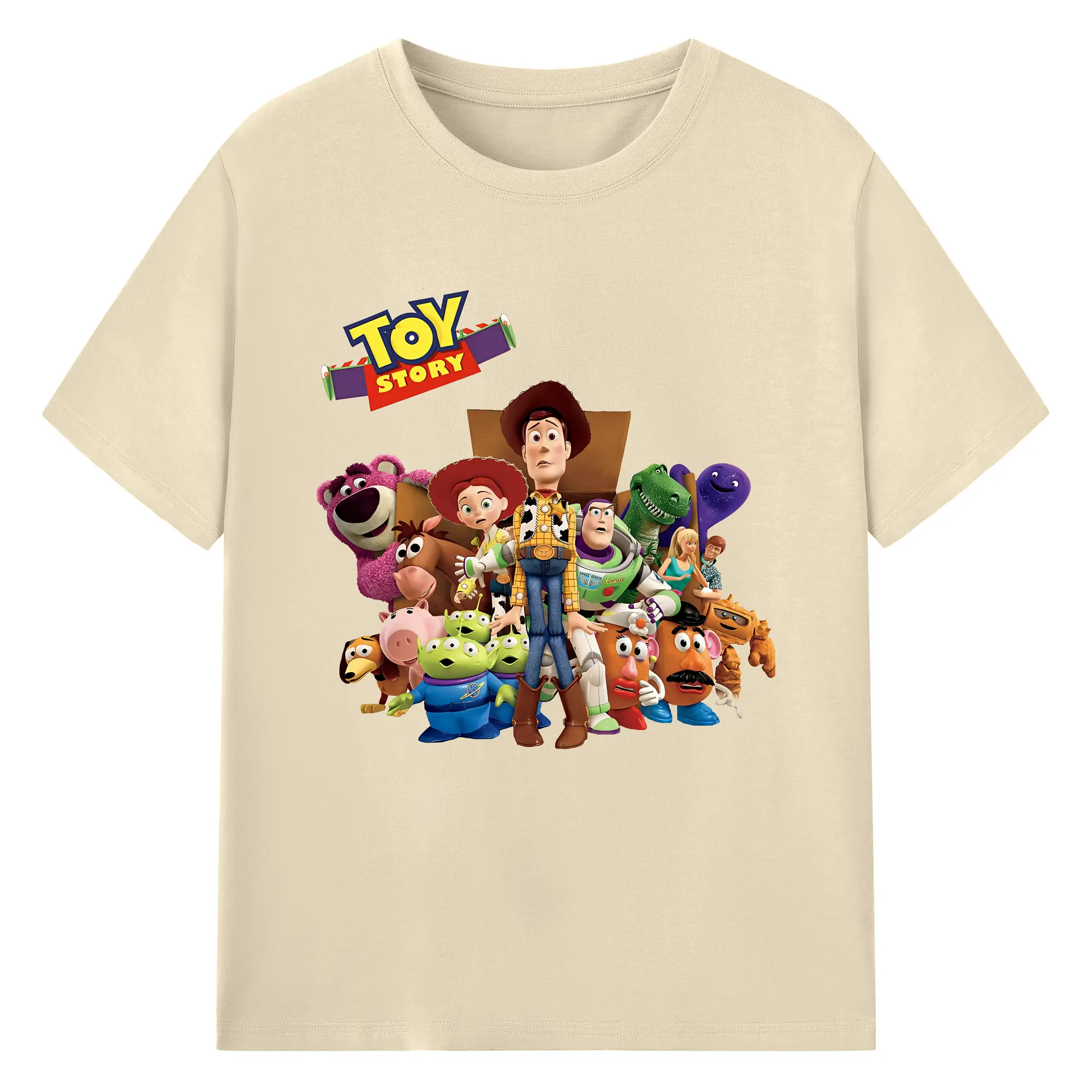 トイ・ストーリー キャラクター集合 賑やか オリジナルデザイン - 綿100% 半袖Tシャツ ・ フロントプリント ・ 快適 通気性 ・ 日常使い 散歩 スポーツ用