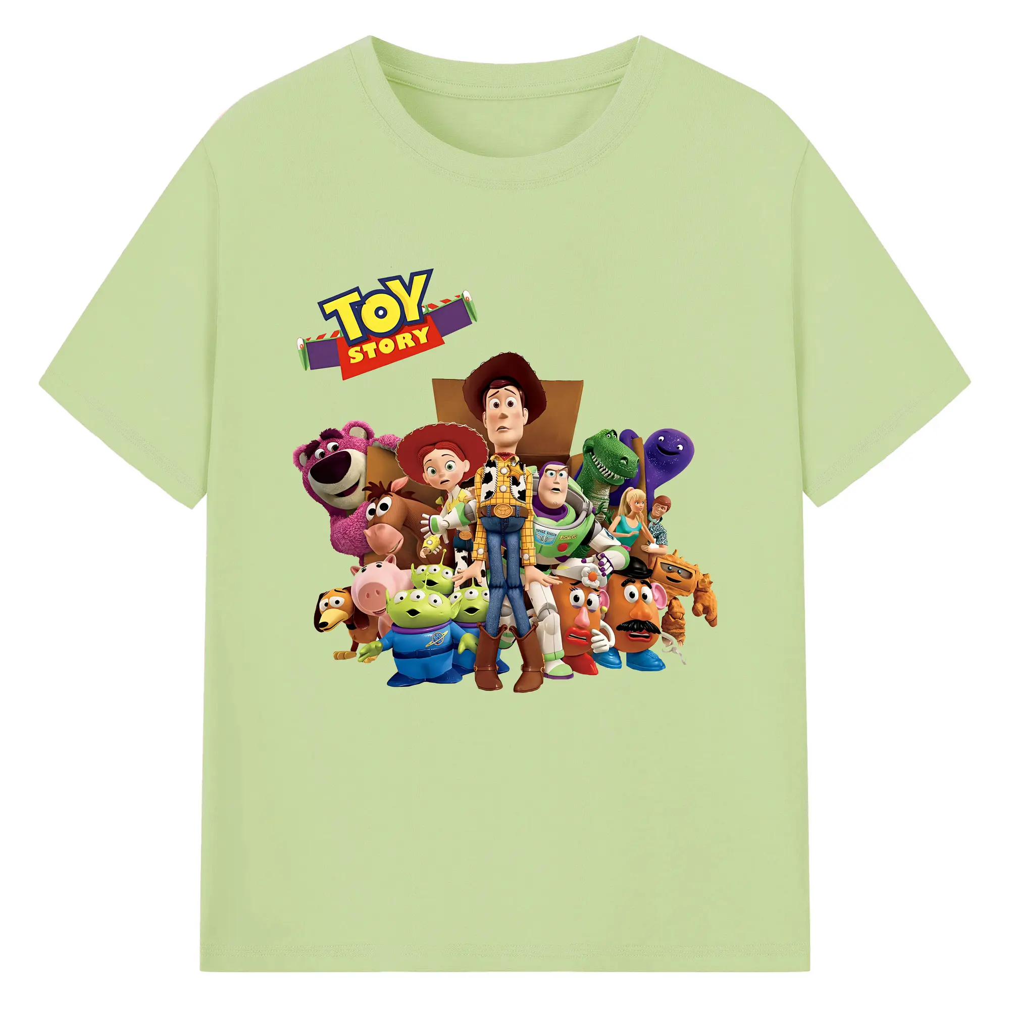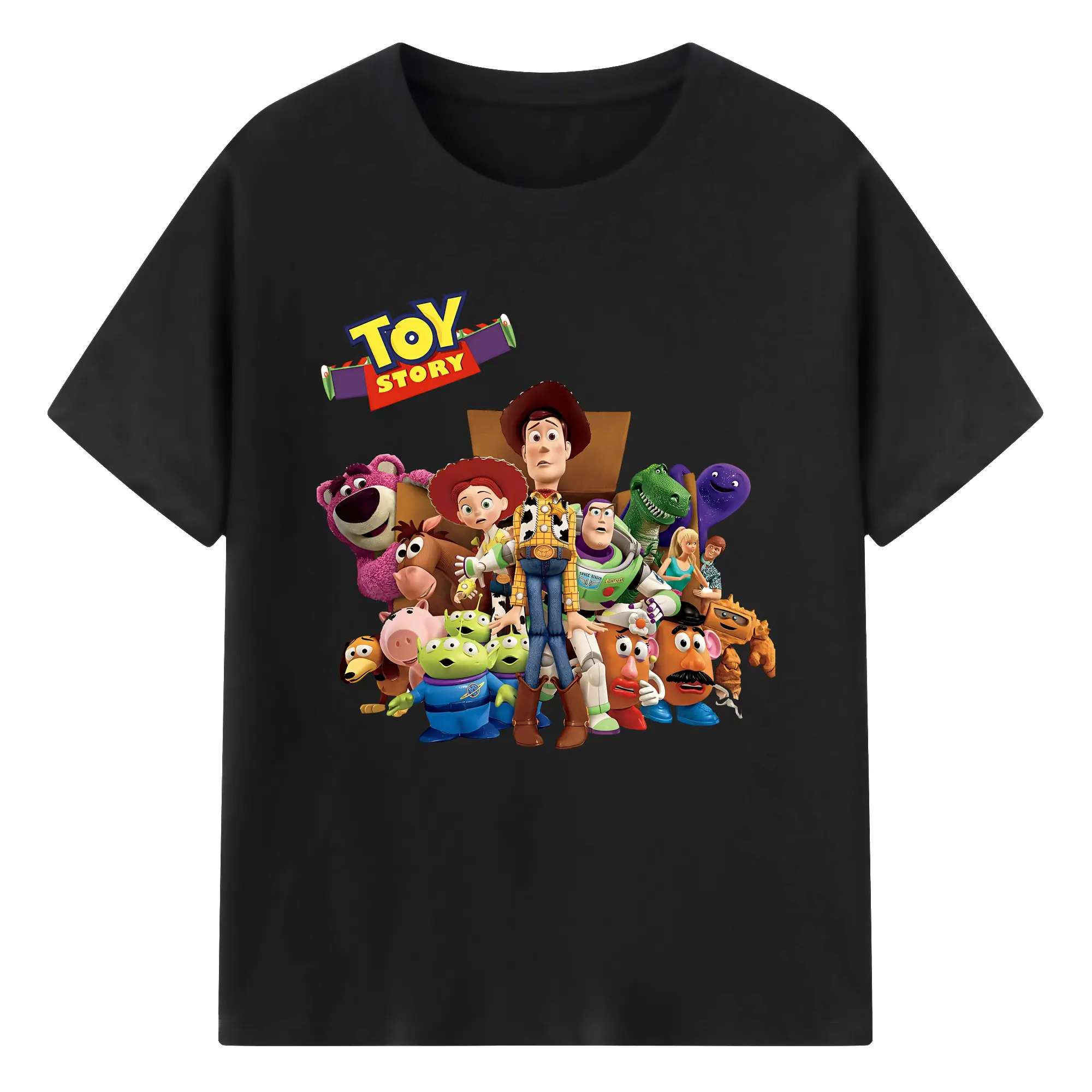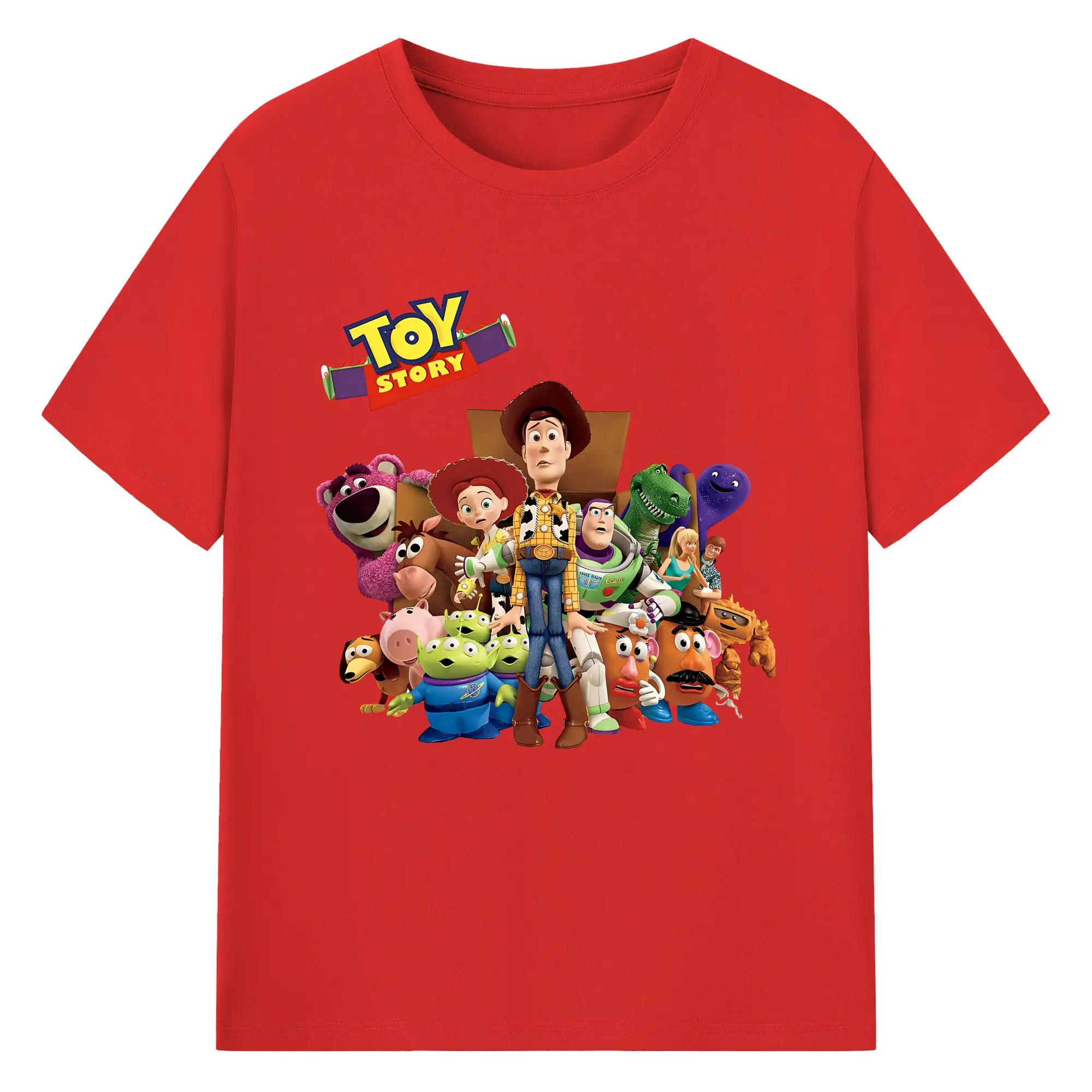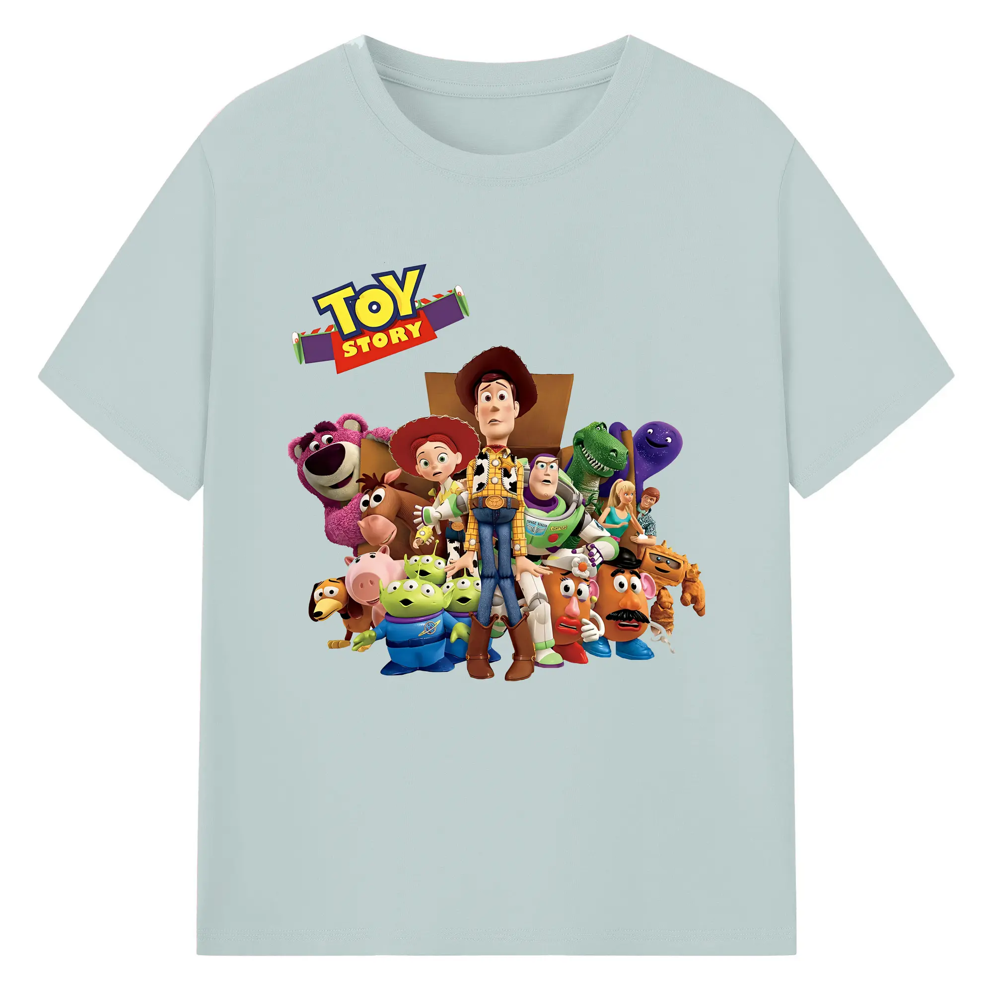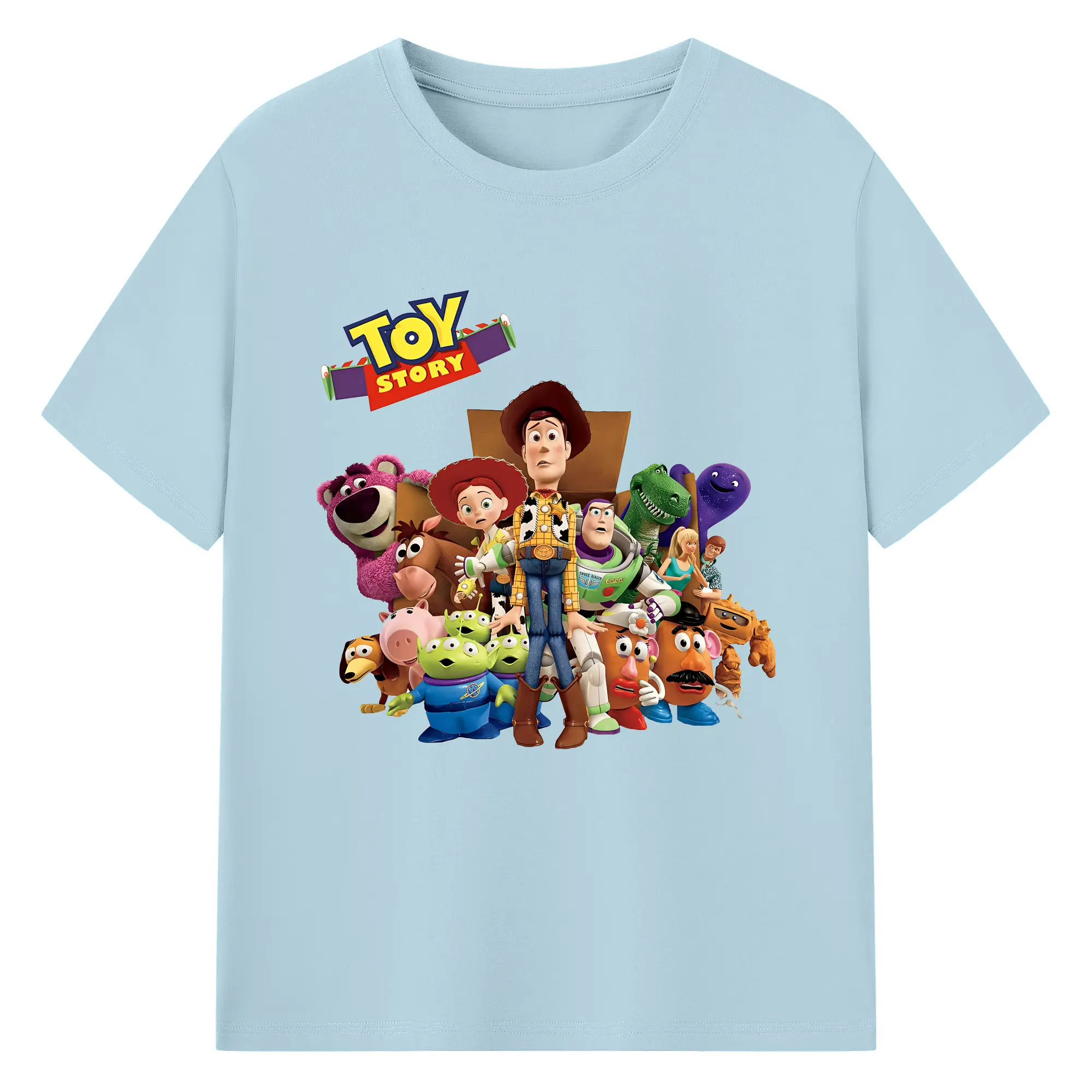 トイ・ストーリー キャラクター集合 賑やか オリジナルデザイン - 綿100% 半袖Tシャツ ・ フロントプリント ・ 快適 通気性 ・ 日常使い 散歩 スポーツ用