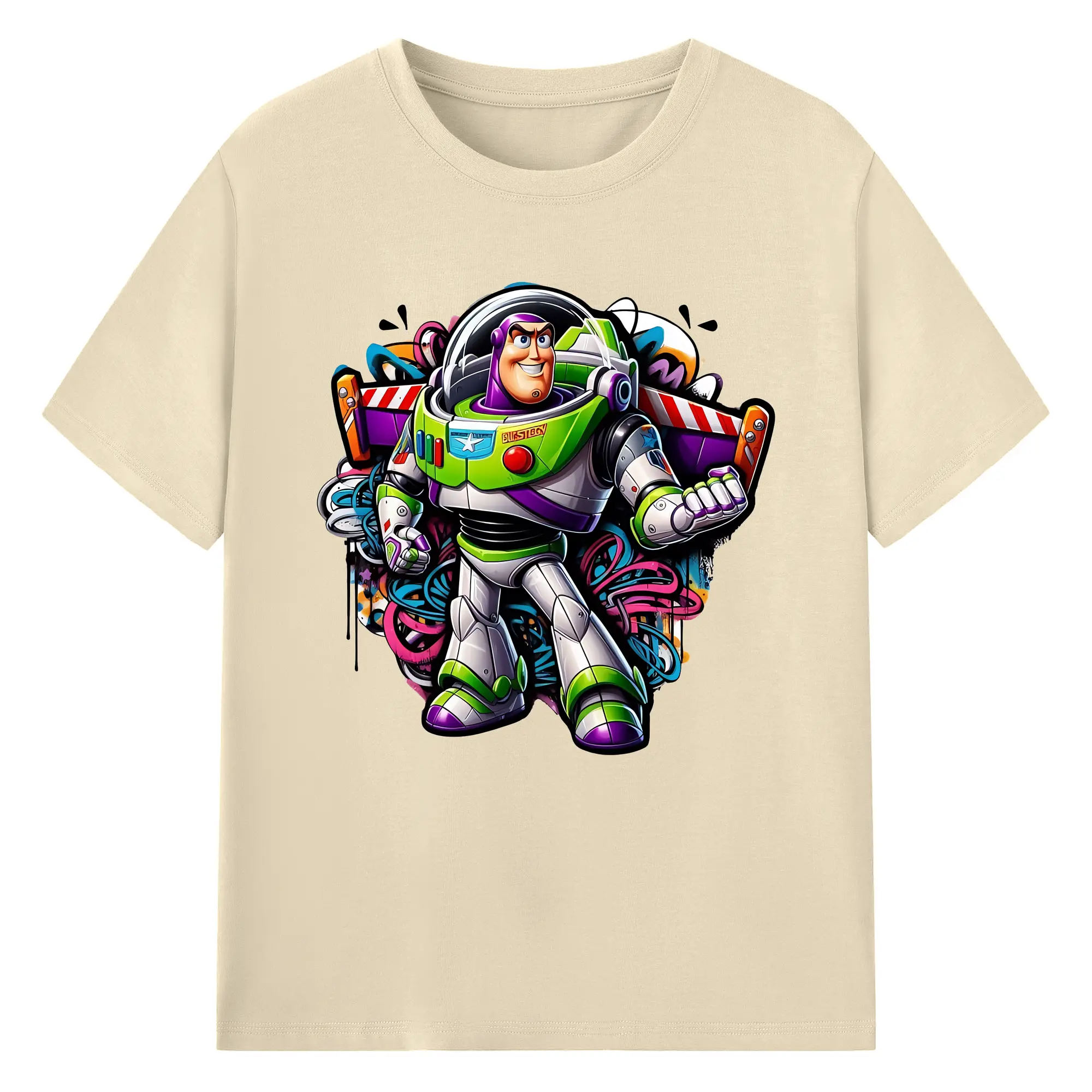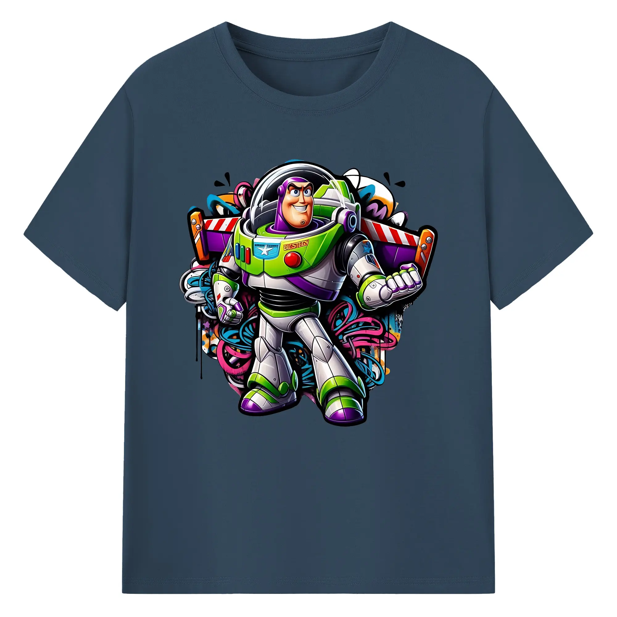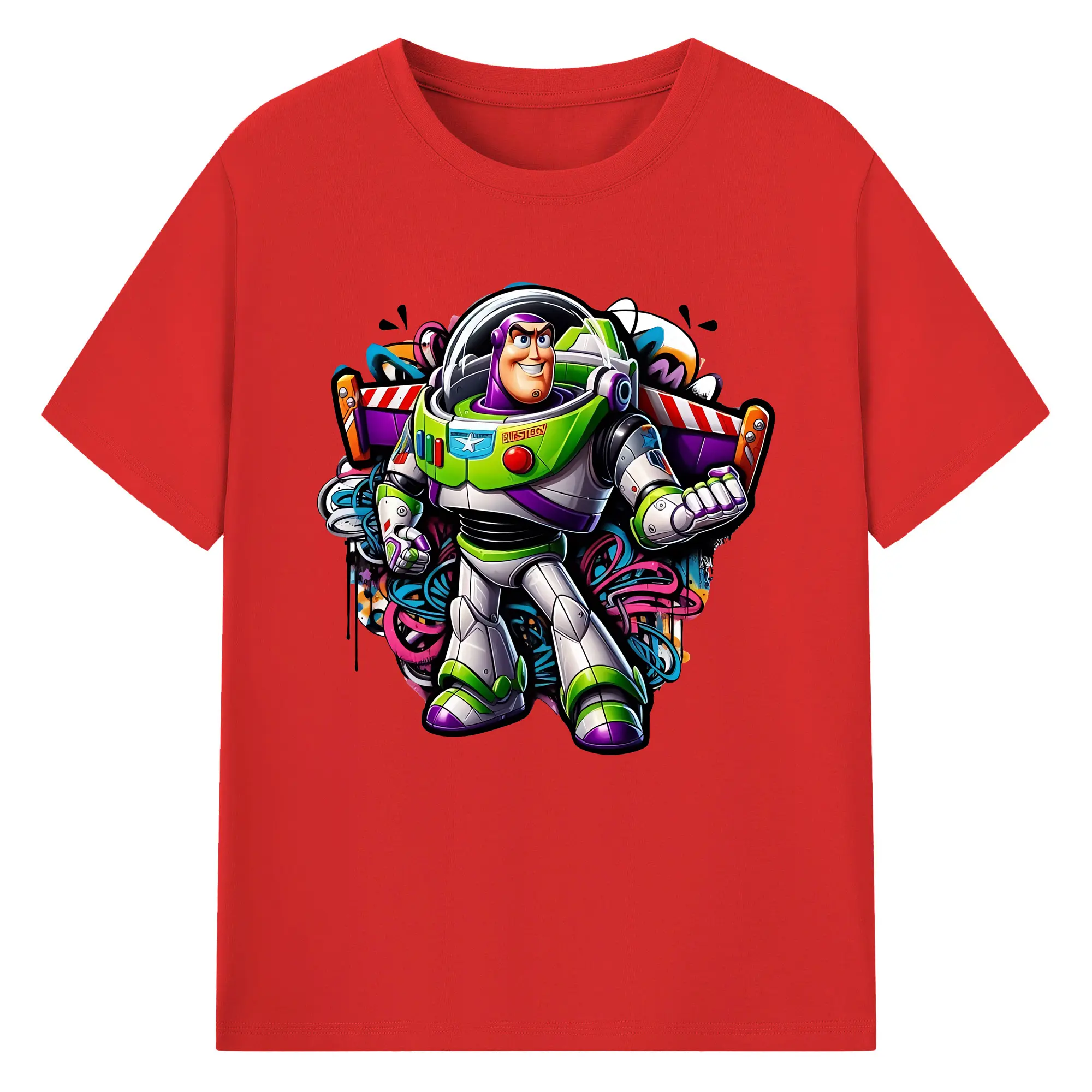 トイ・ストーリー バズ・ライトイヤー クール オリジナルデザイン - 綿100% 半袖Tシャツ ・ フロントプリント ・ 快適 通気性 ・ 日常使い 散歩 スポーツ用
