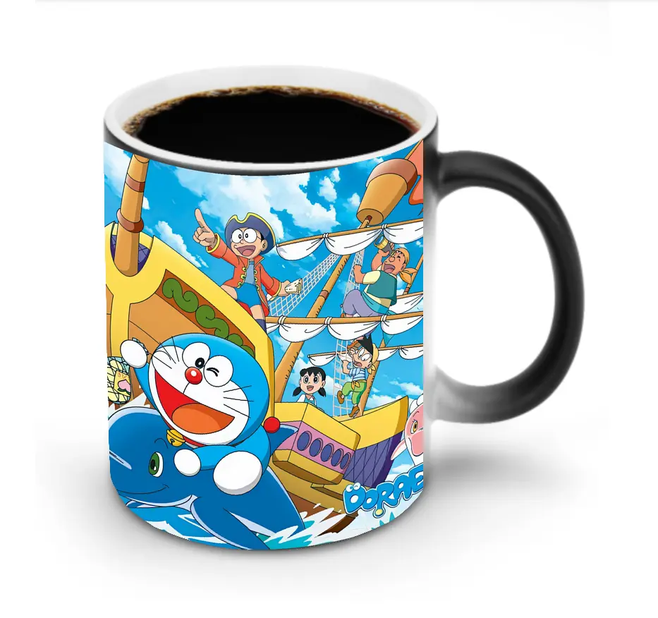ドラえもん 全キャラクター 海洋で航海冒険 オリジナルデザイン - 変色マグカップ ・ セラミック ・ 熱転写プリント ・ 耐久性 高品質 ・ ギフト・自宅用 コーヒー お茶
