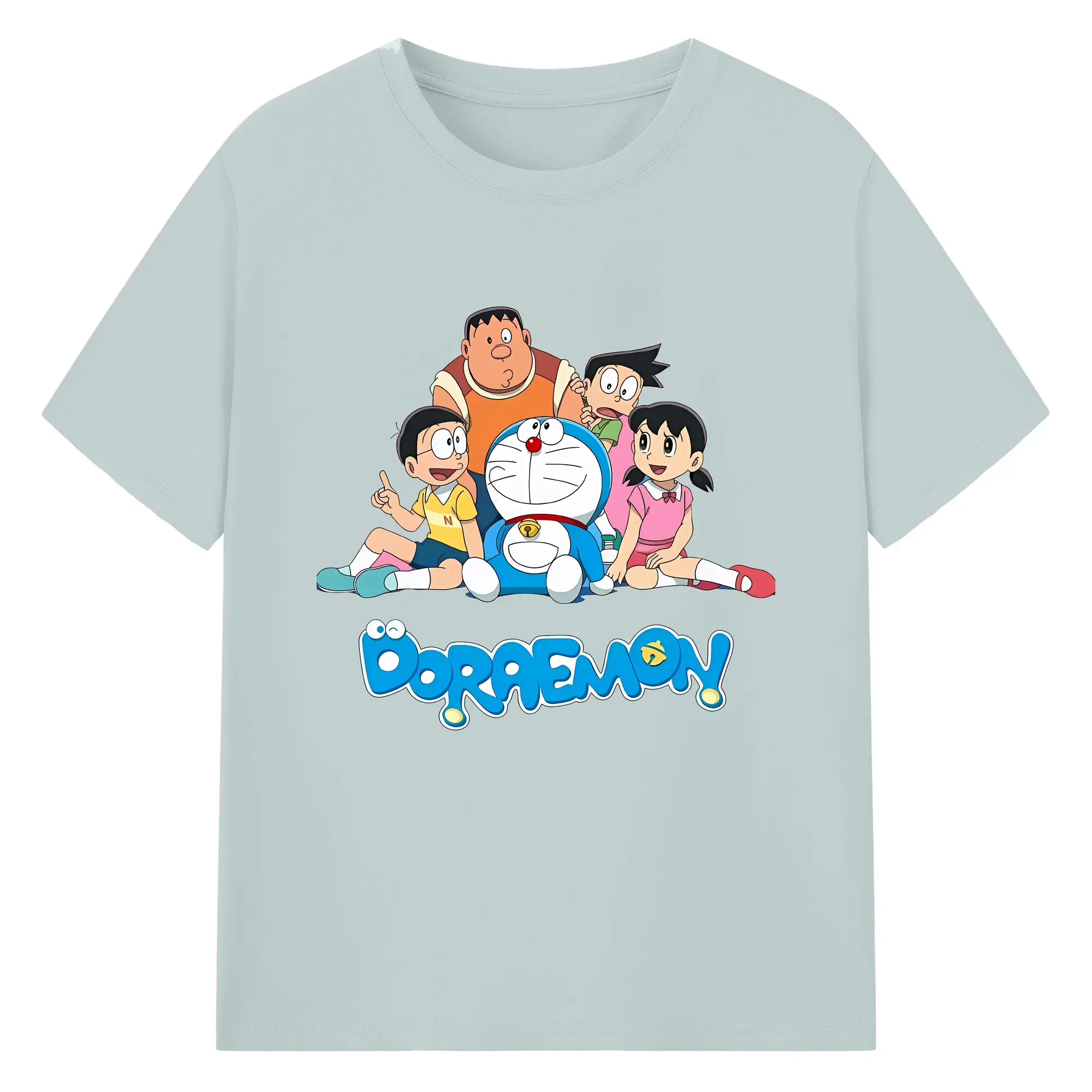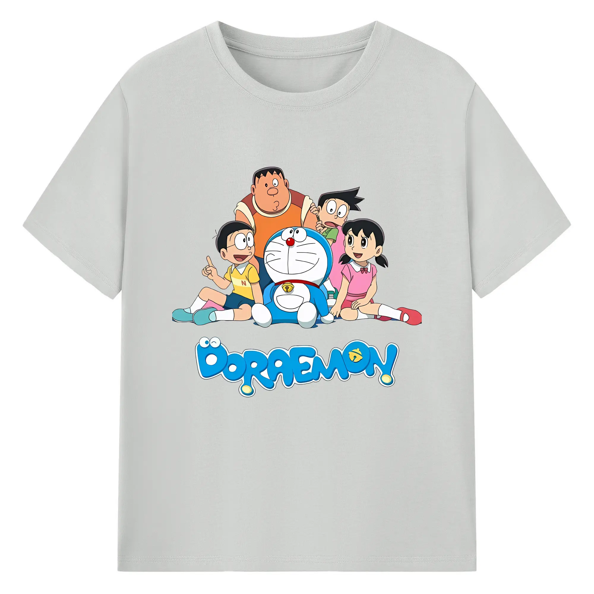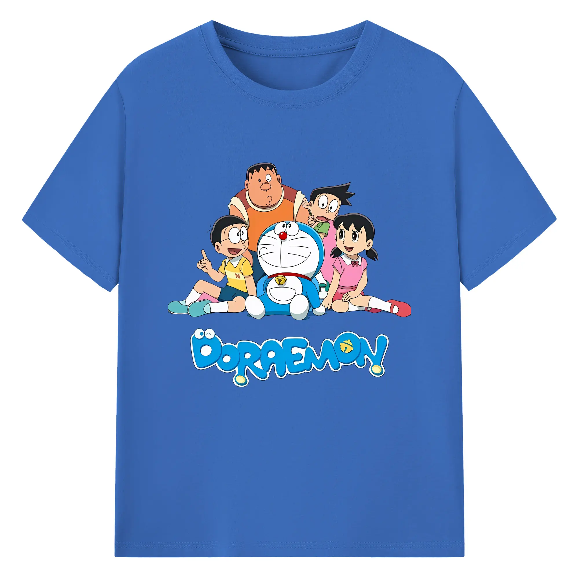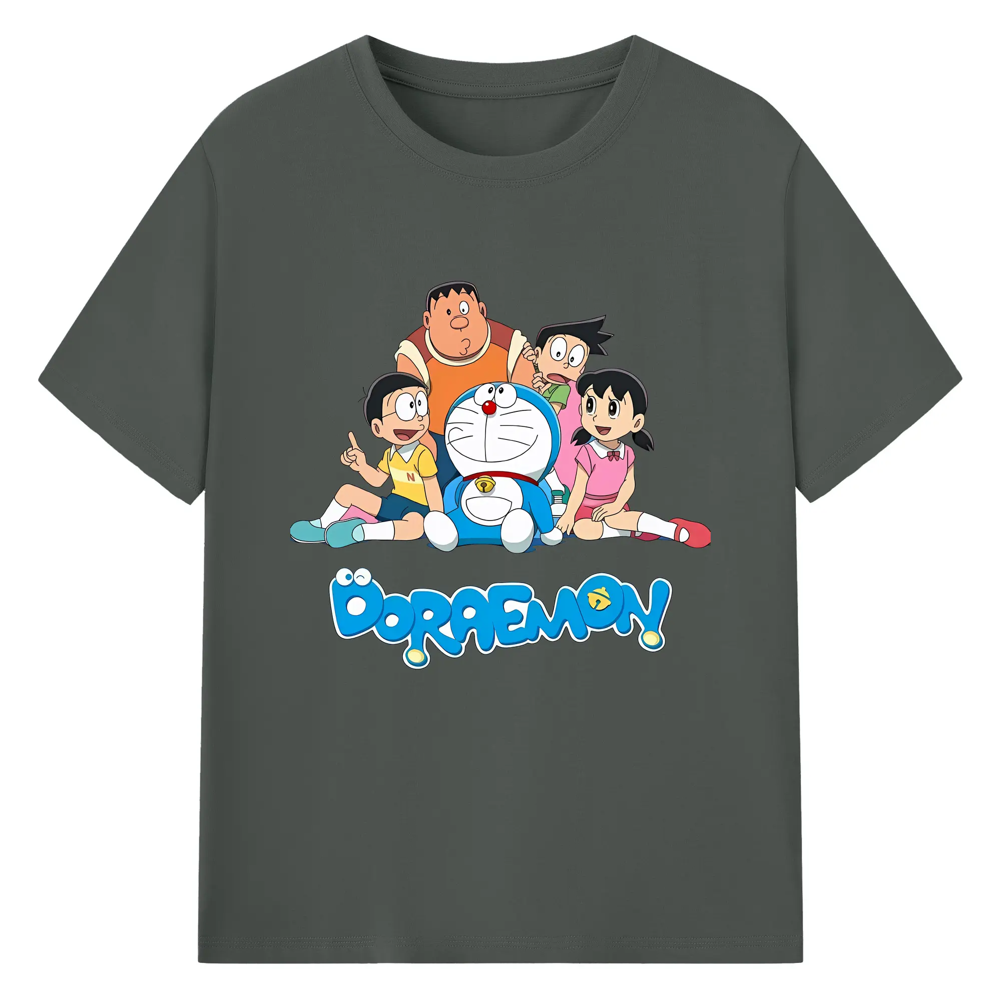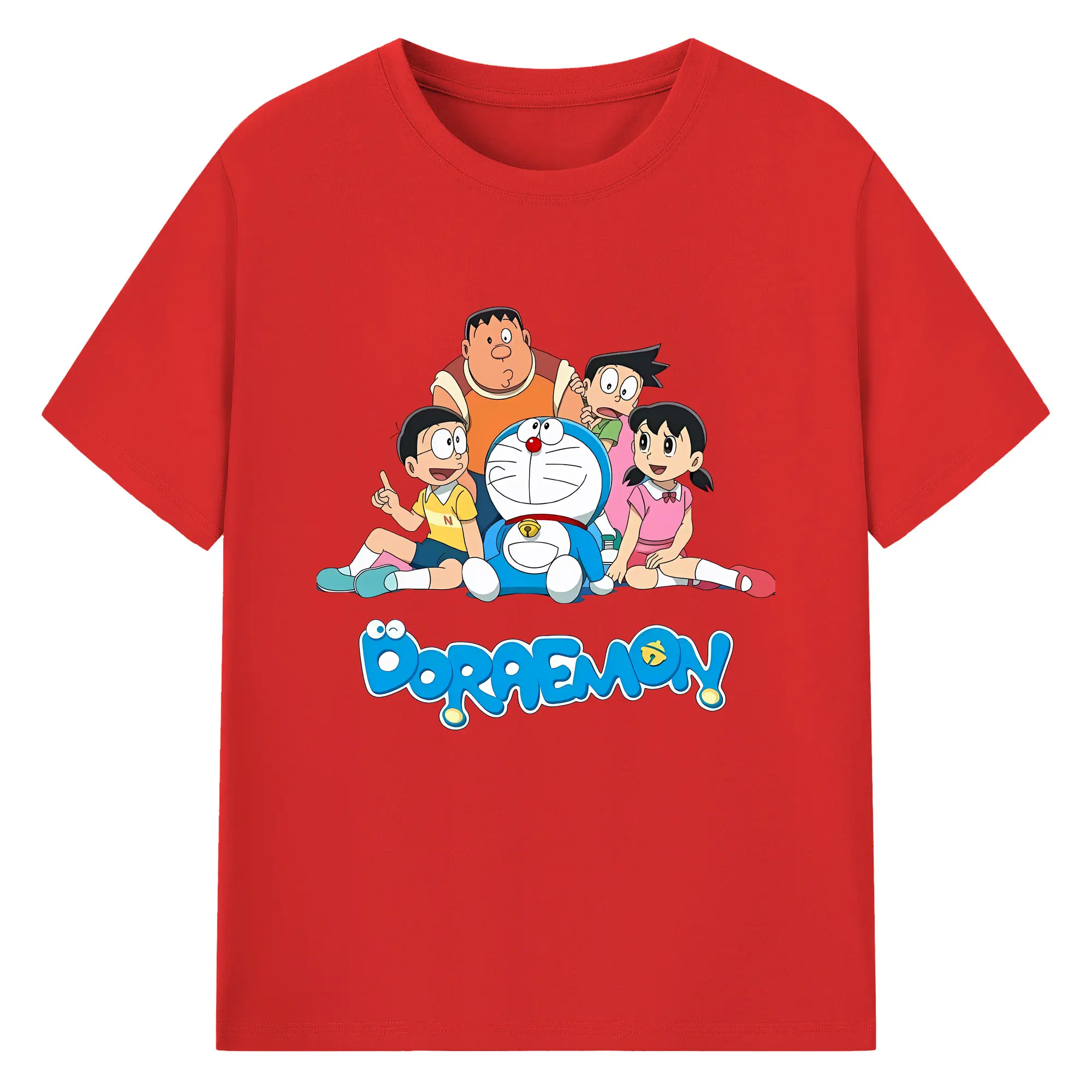 ドラえもん 主役チーム 楽しい オリジナルデザイン - 綿100% 半袖Tシャツ ・ フロントプリント ・ 快適 通気性 ・ 日常使い 散歩 スポーツ用