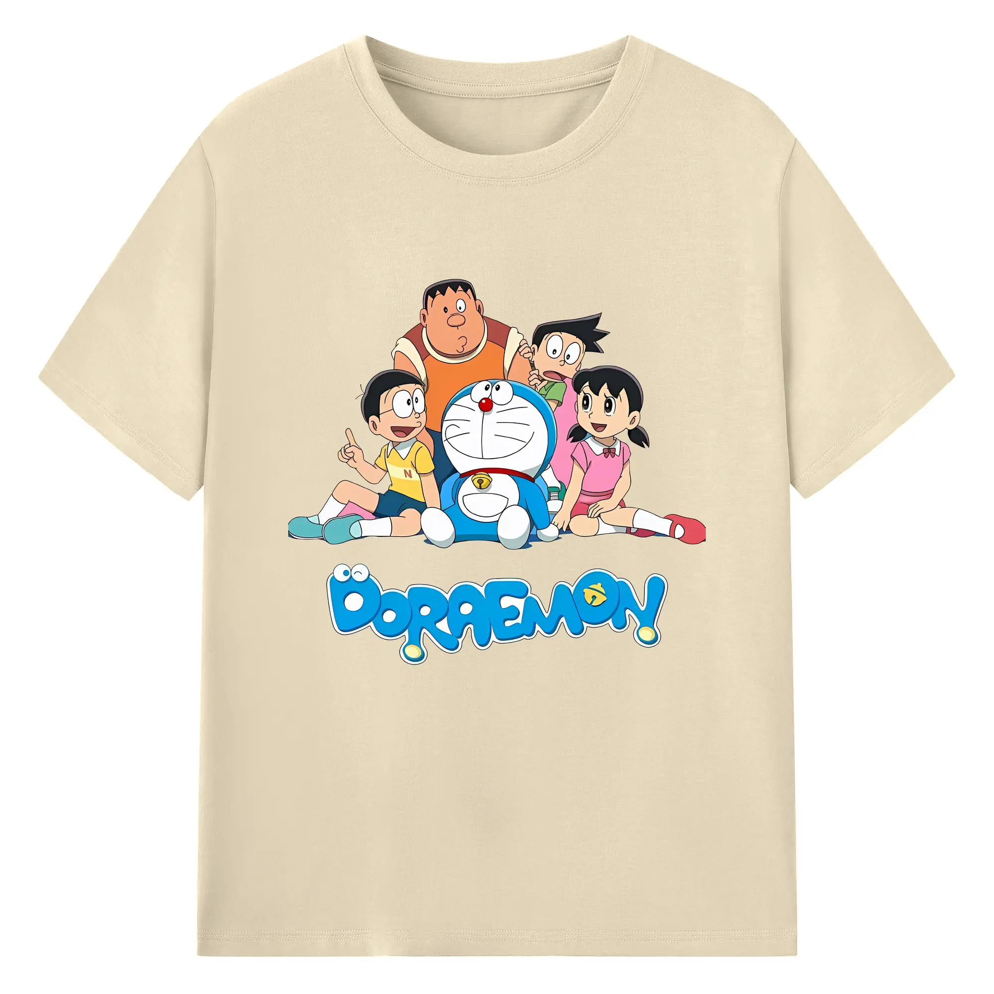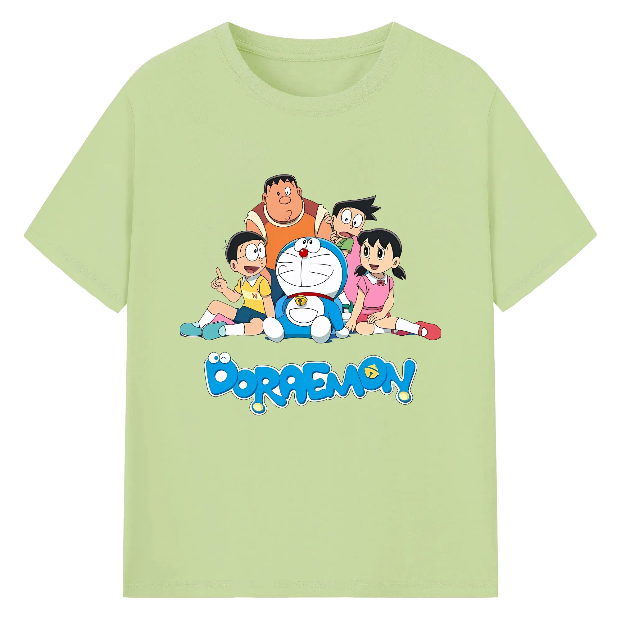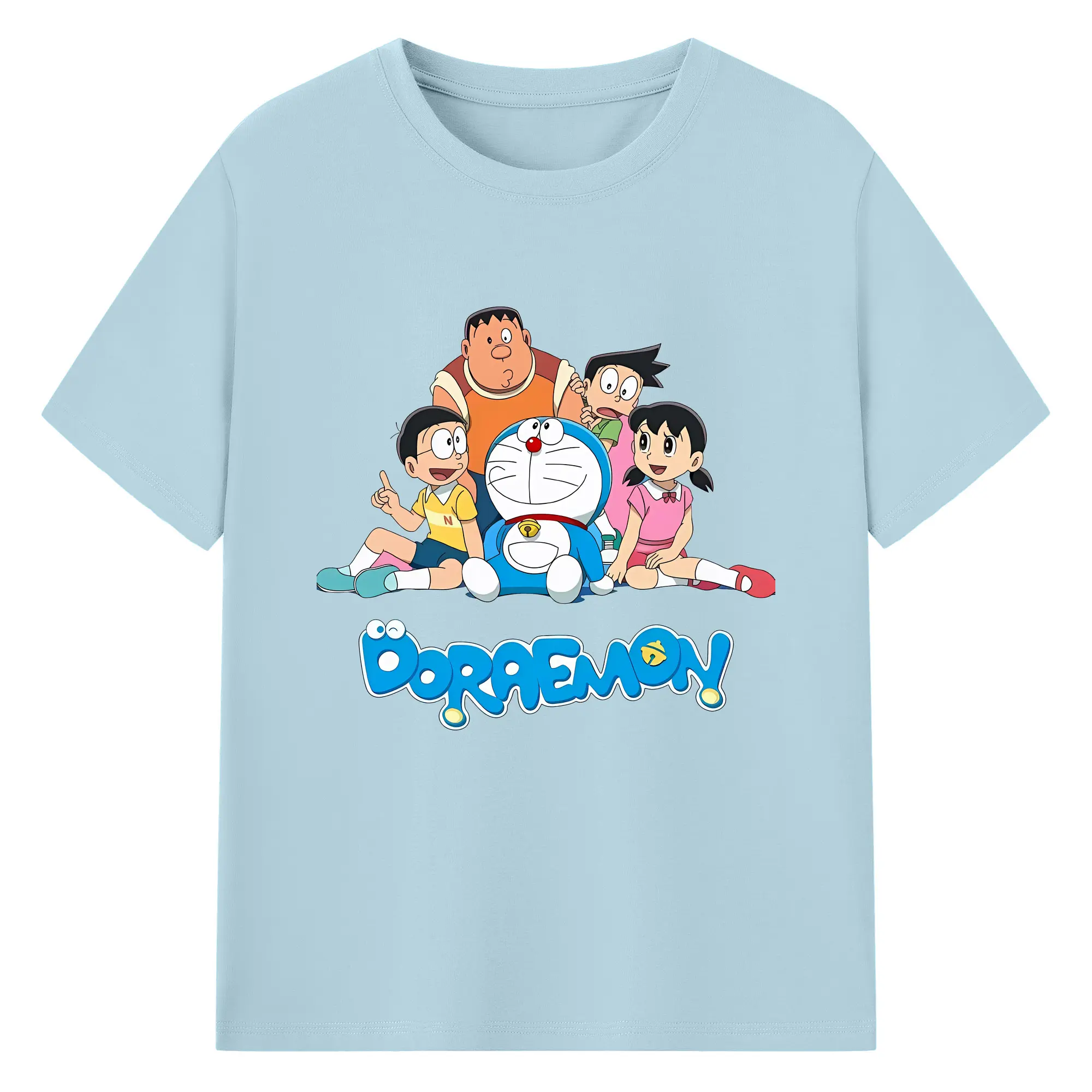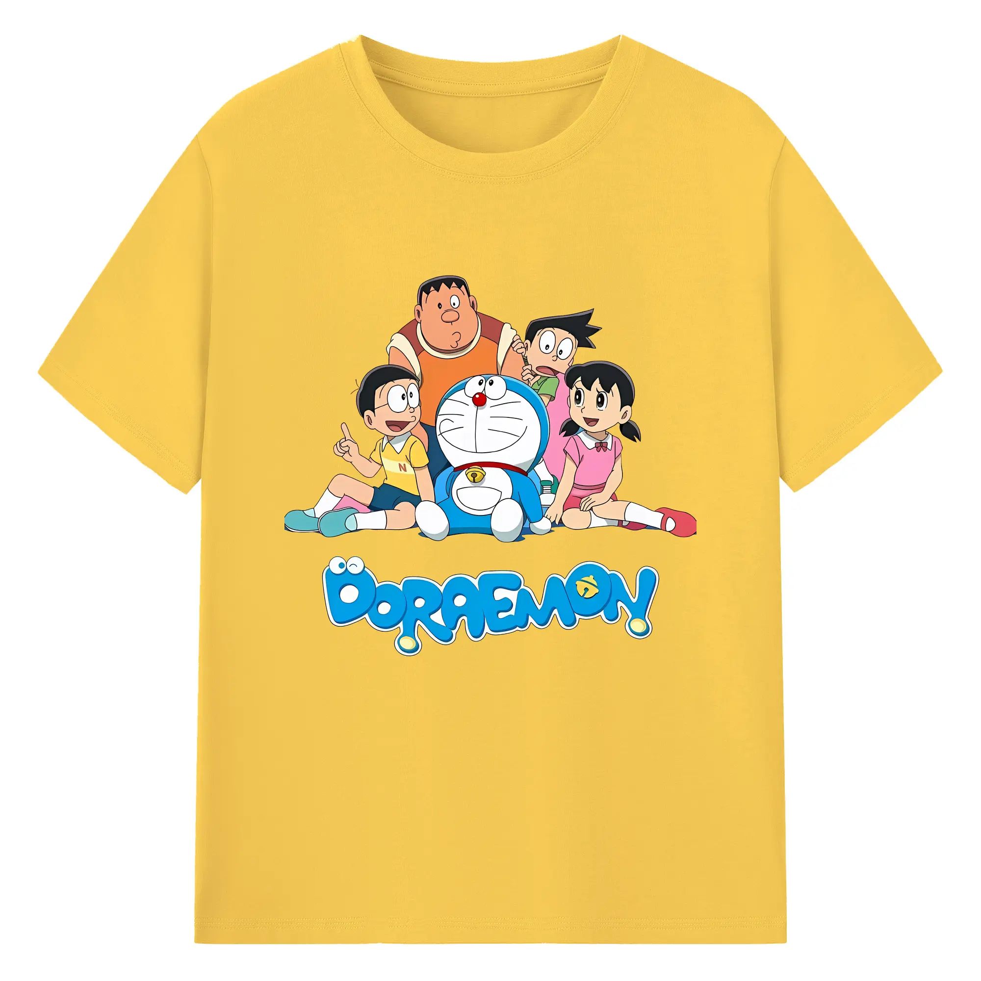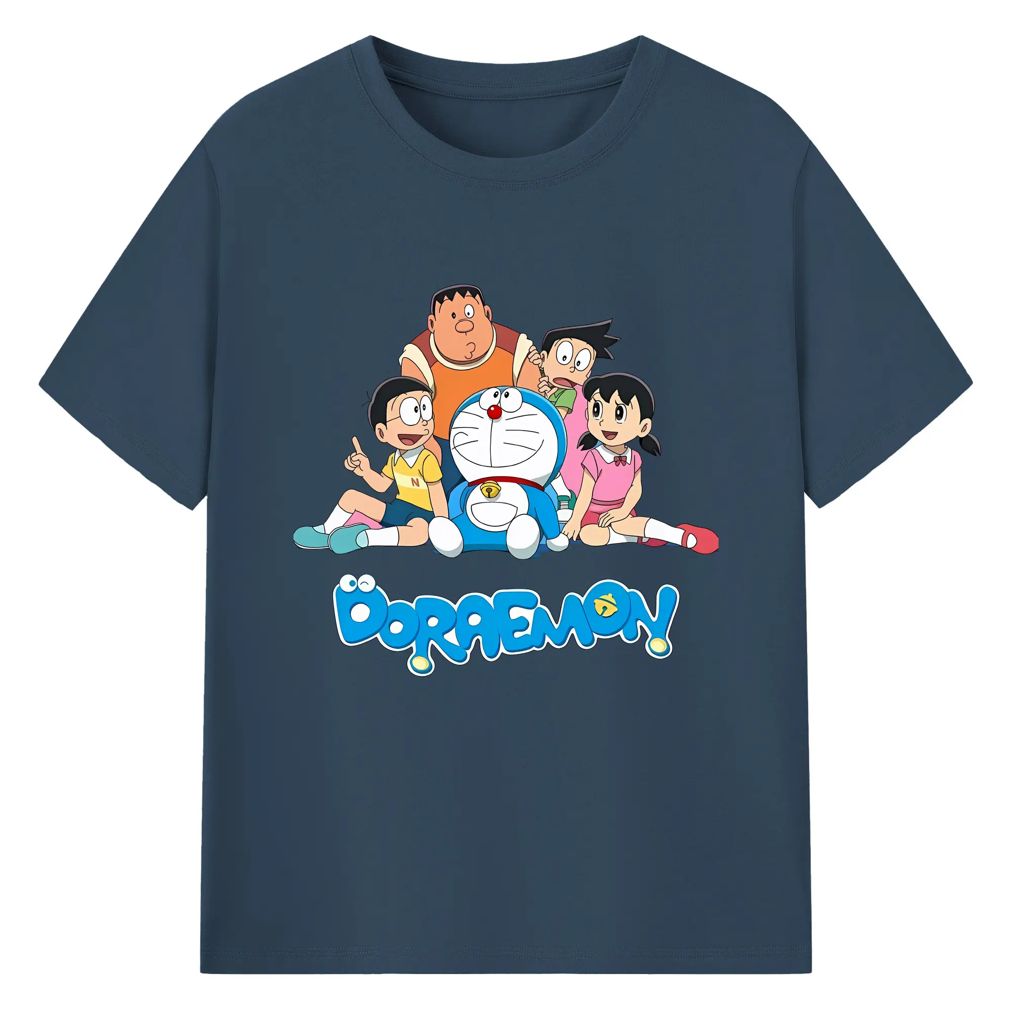 ドラえもん 主役チーム 楽しい オリジナルデザイン - 綿100% 半袖Tシャツ ・ フロントプリント ・ 快適 通気性 ・ 日常使い 散歩 スポーツ用