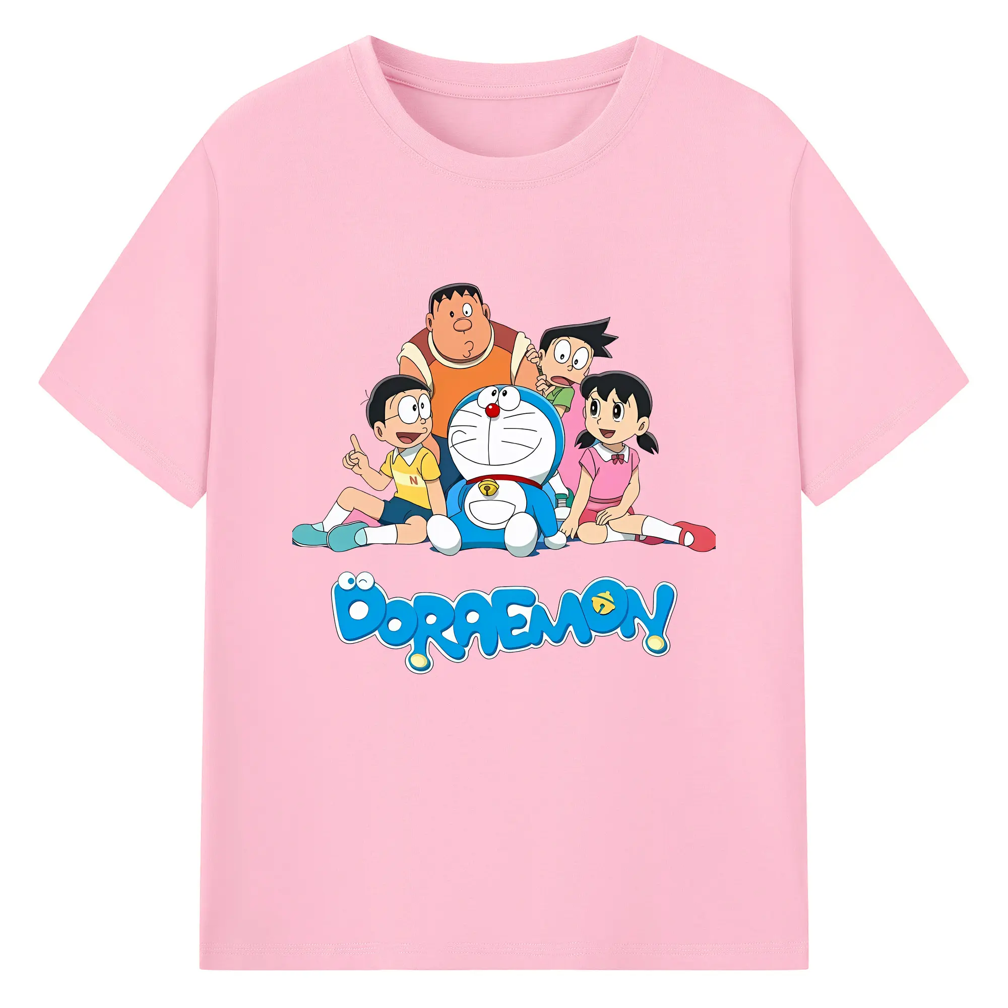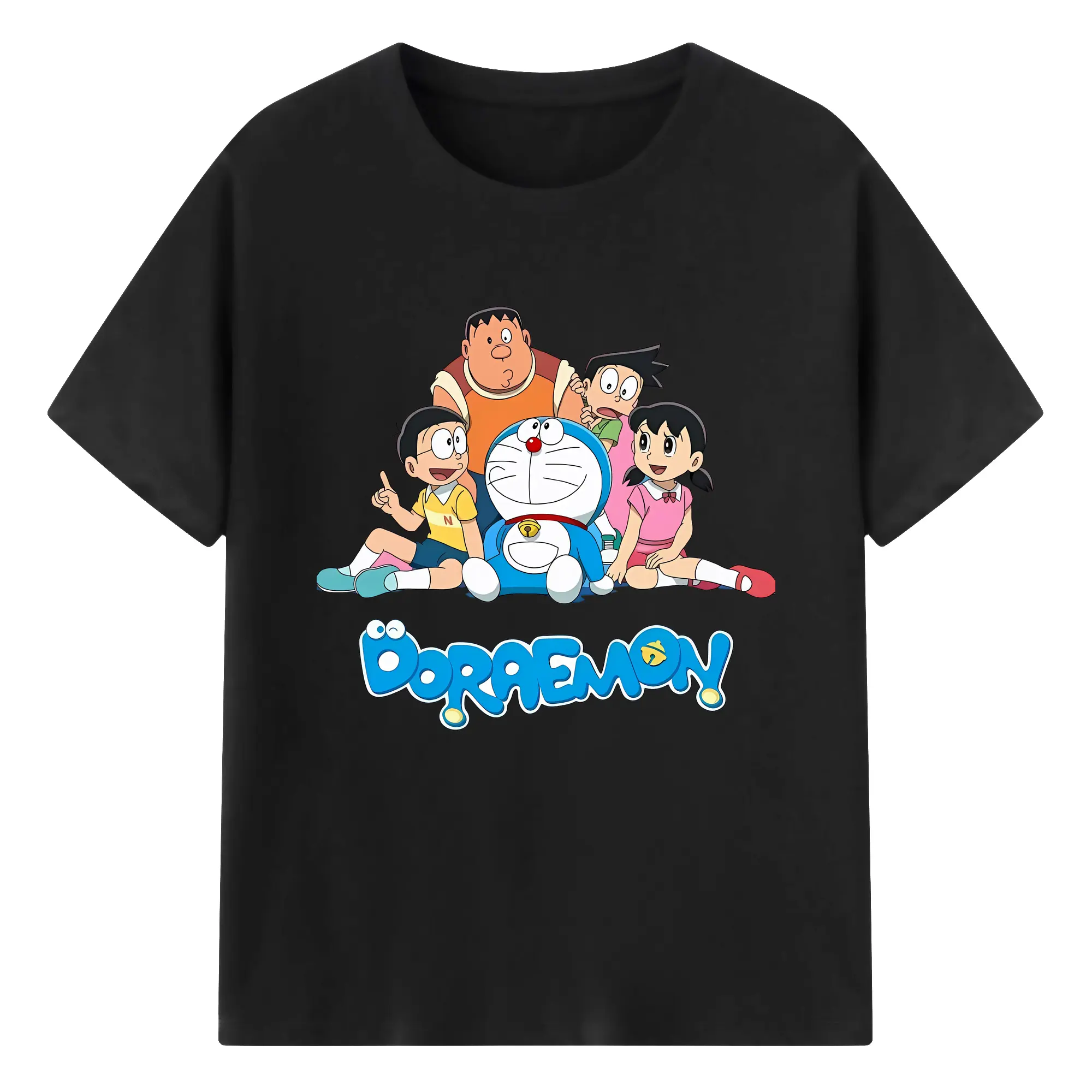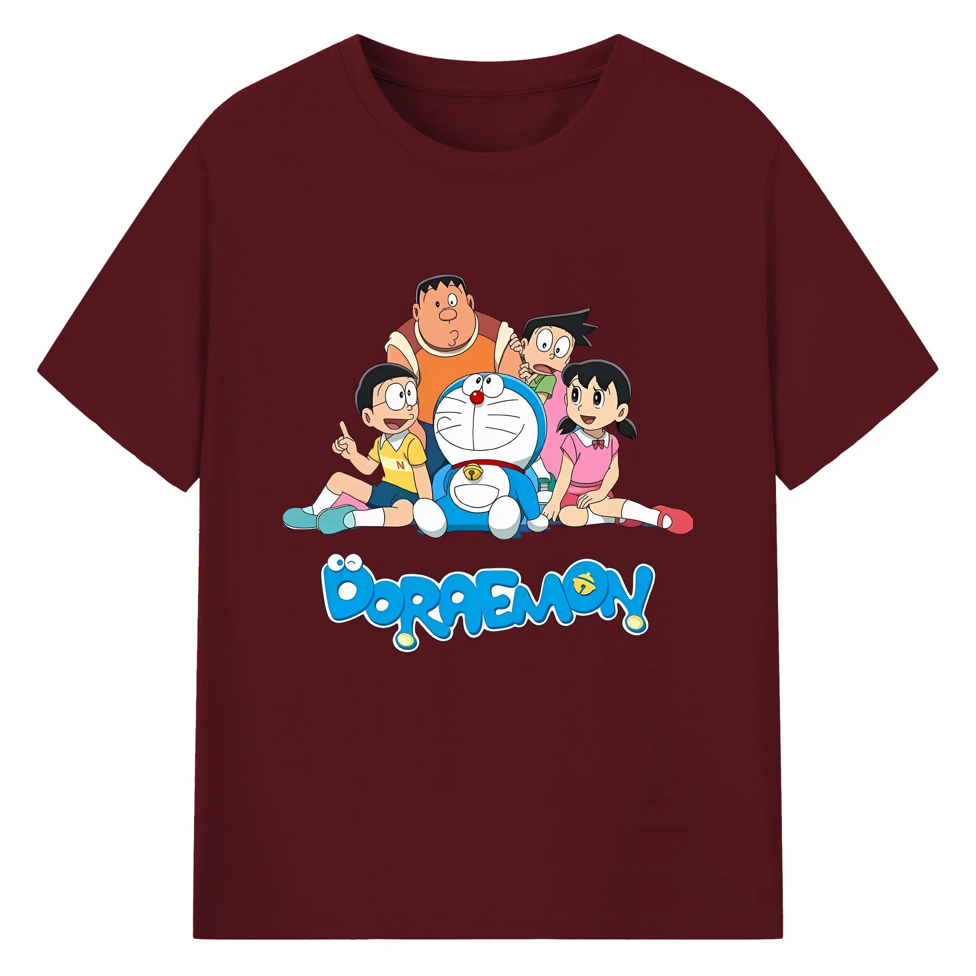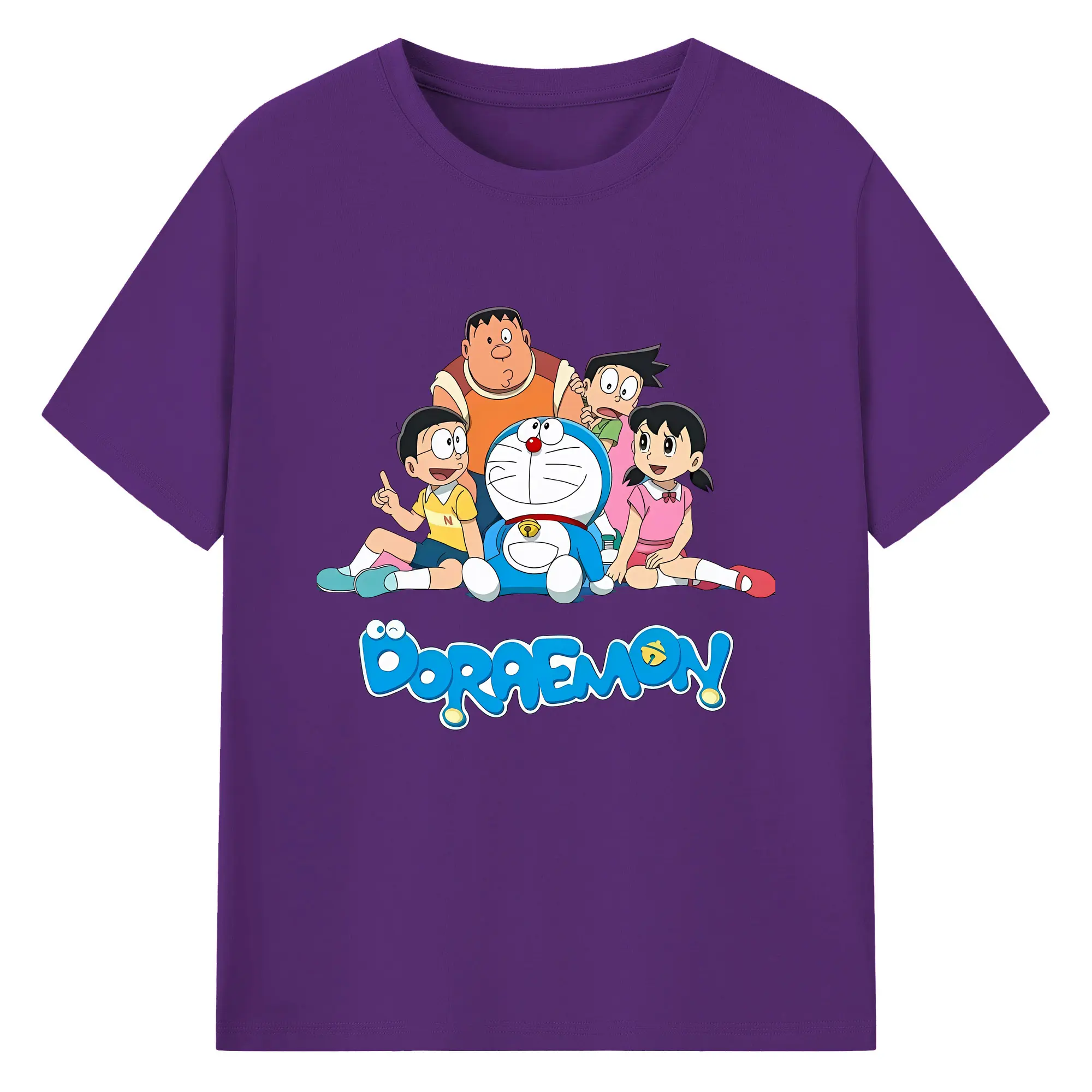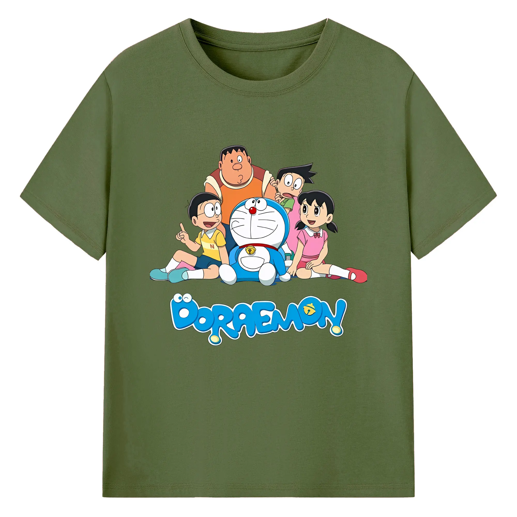 ドラえもん 主役チーム 楽しい オリジナルデザイン - 綿100% 半袖Tシャツ ・ フロントプリント ・ 快適 通気性 ・ 日常使い 散歩 スポーツ用