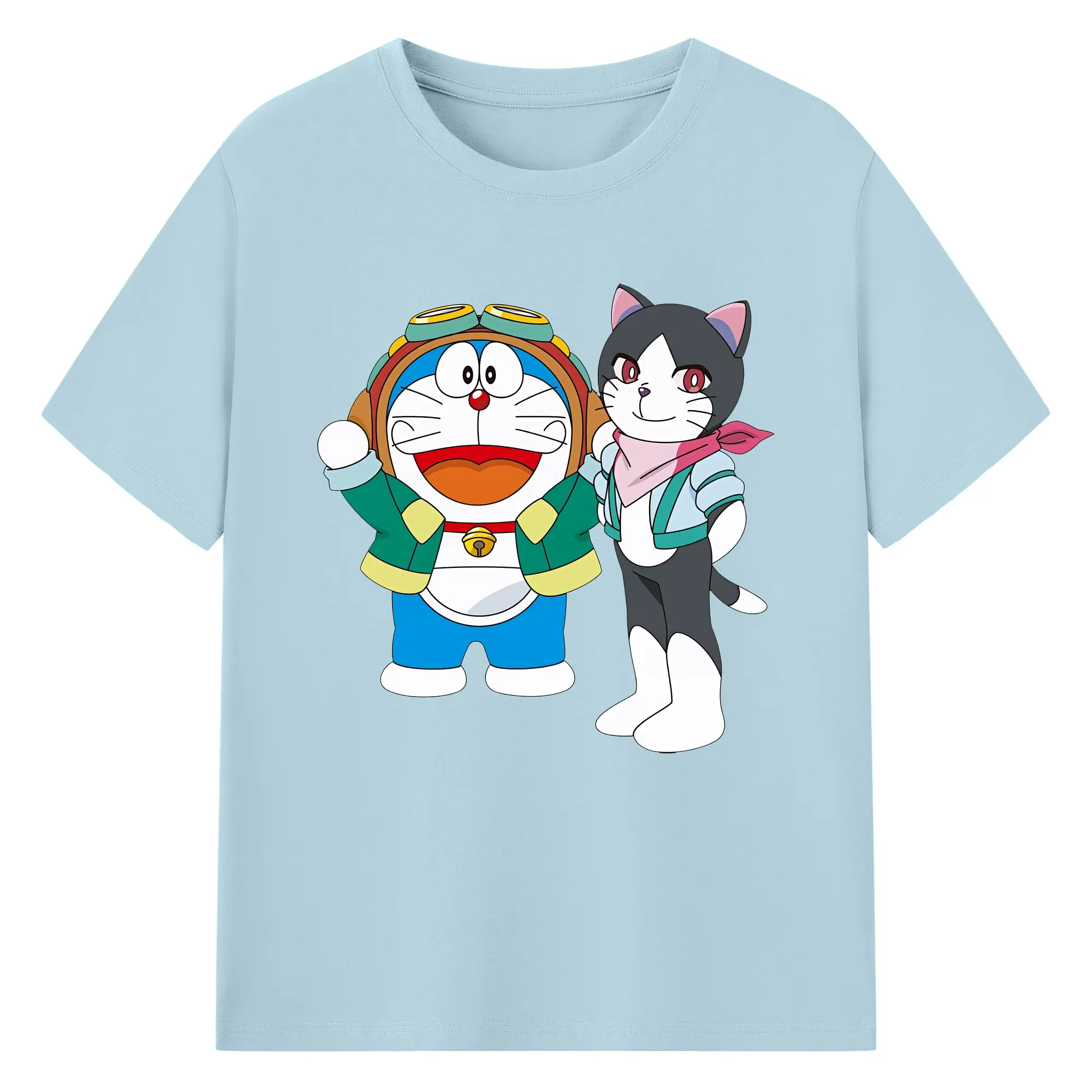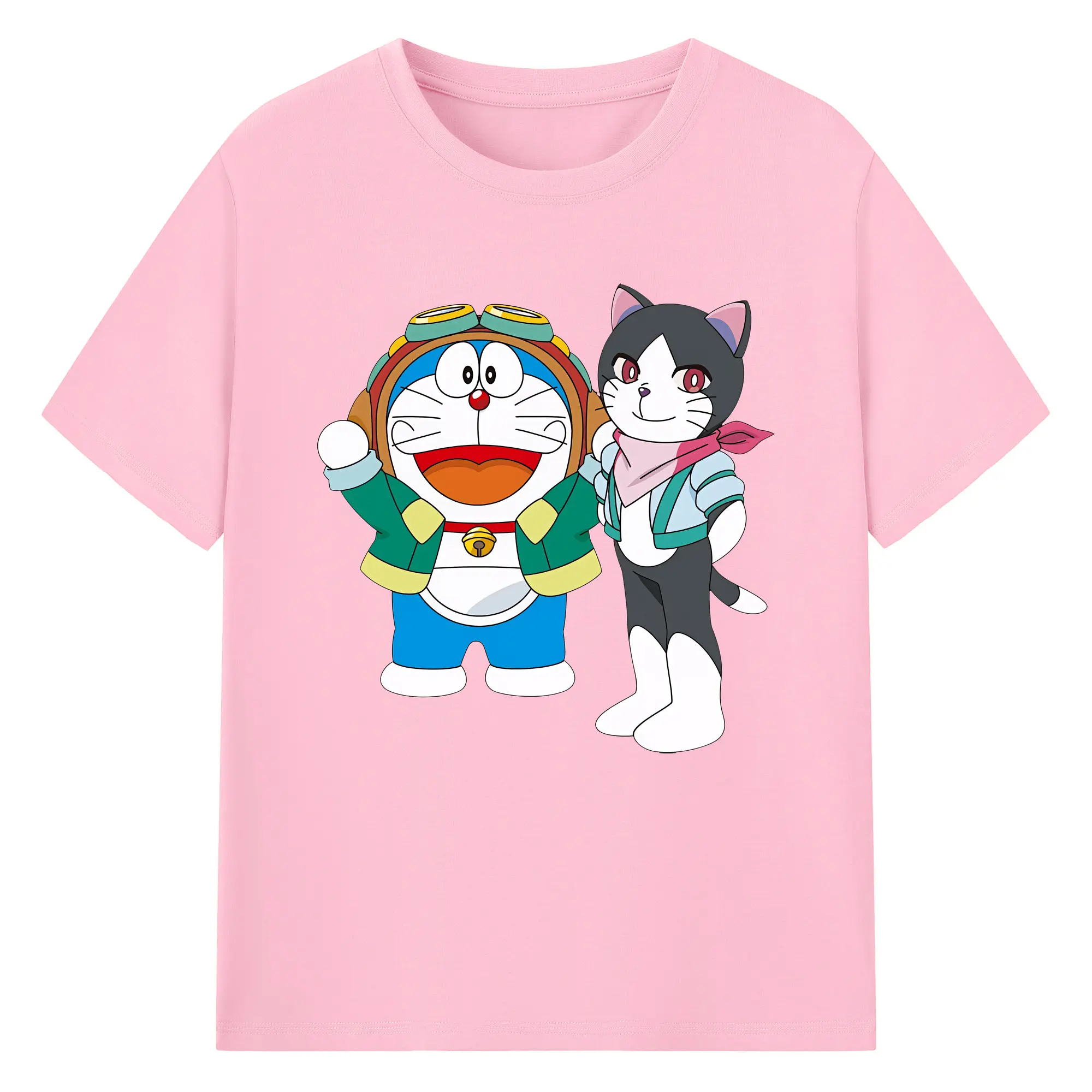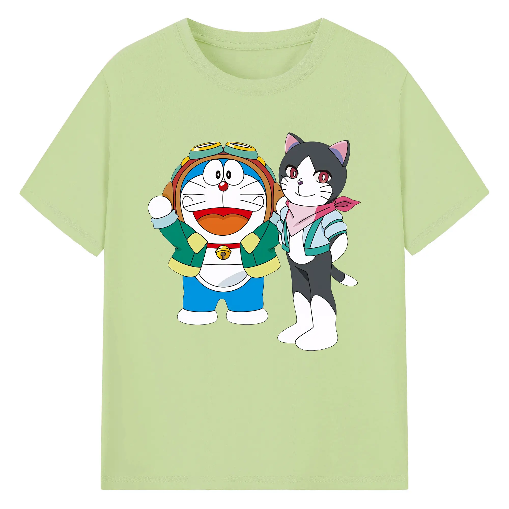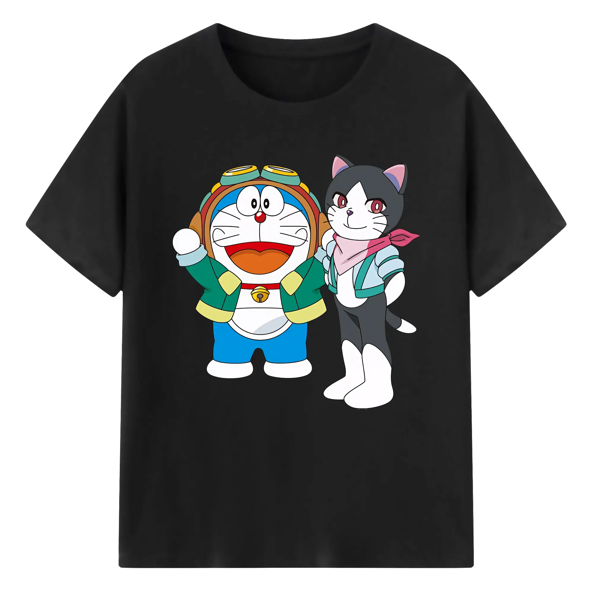 初音ミク&猫 カワイイちびキャラ オリジナルデザイン - 綿100% 半袖Tシャツ ・ フロントプリント ・ 快適 通気性 ・ 日常使い 散歩 スポーツ用