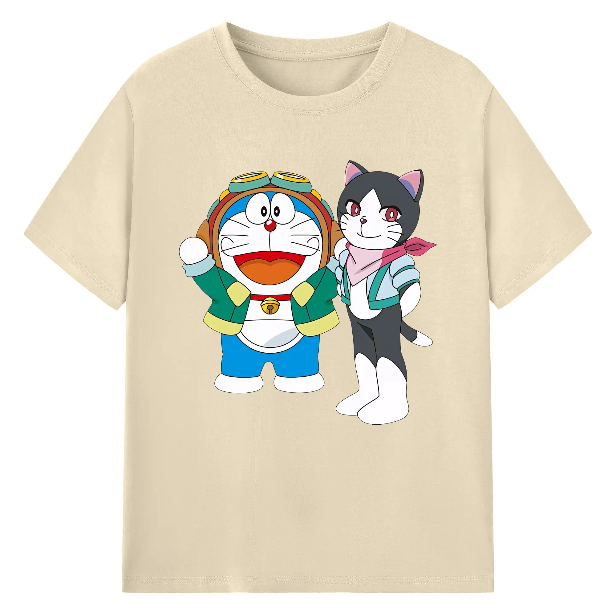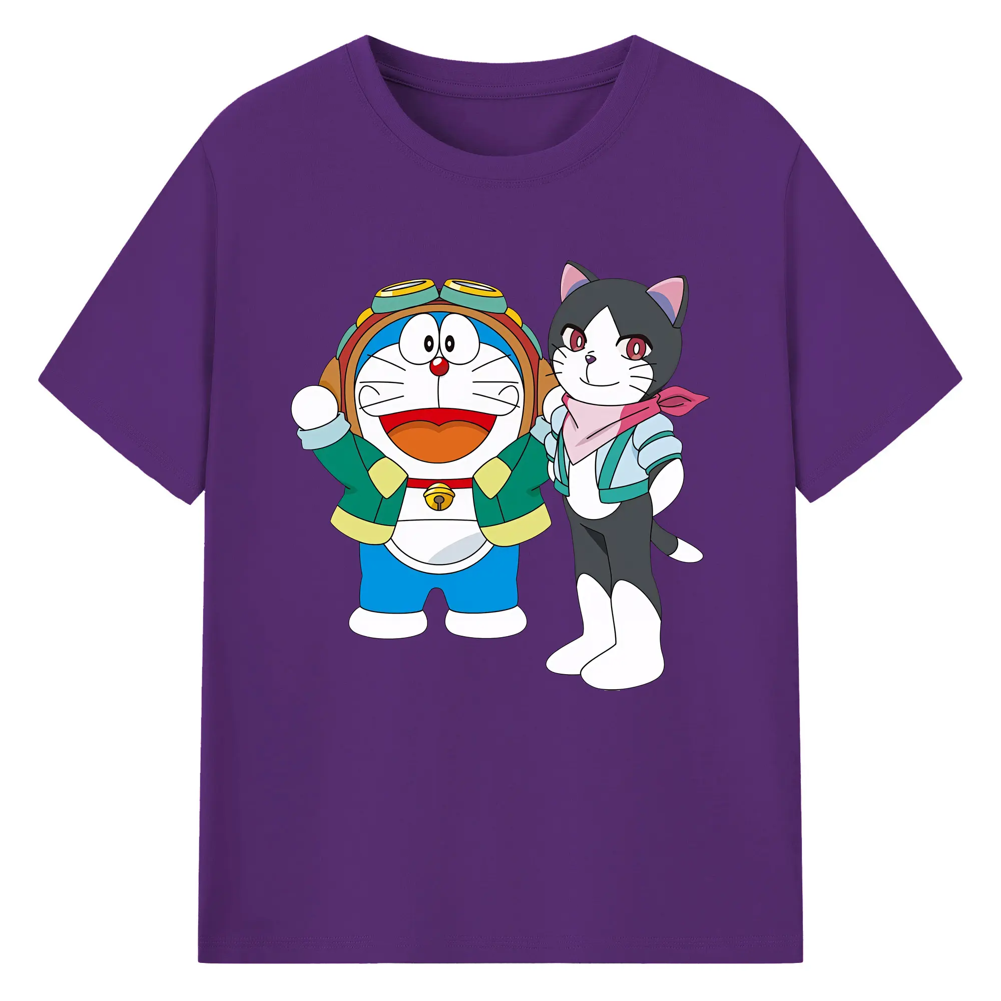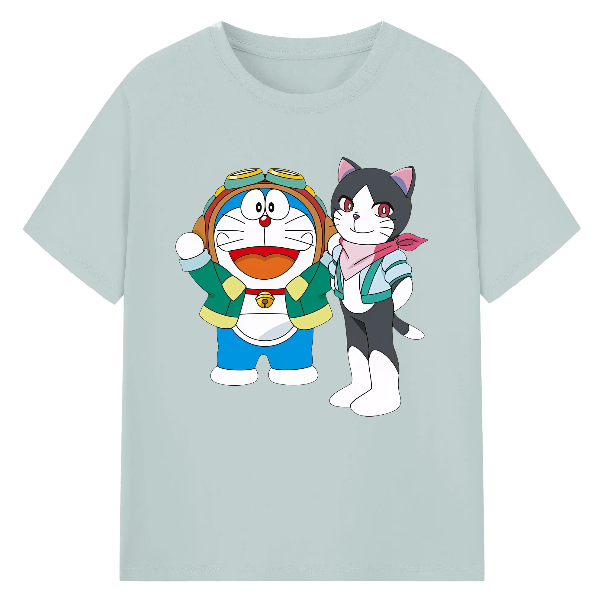 初音ミク&猫 カワイイちびキャラ オリジナルデザイン - 綿100% 半袖Tシャツ ・ フロントプリント ・ 快適 通気性 ・ 日常使い 散歩 スポーツ用