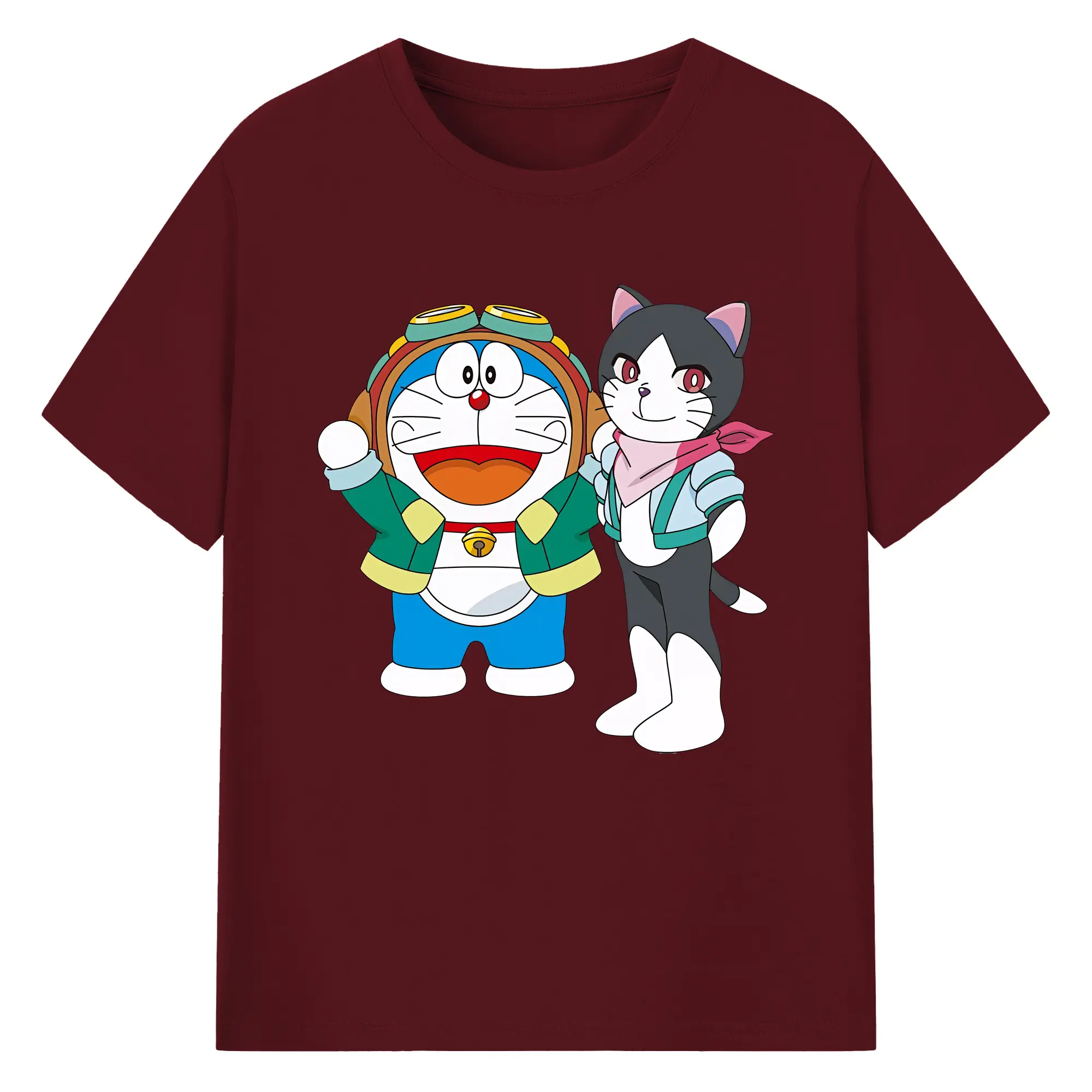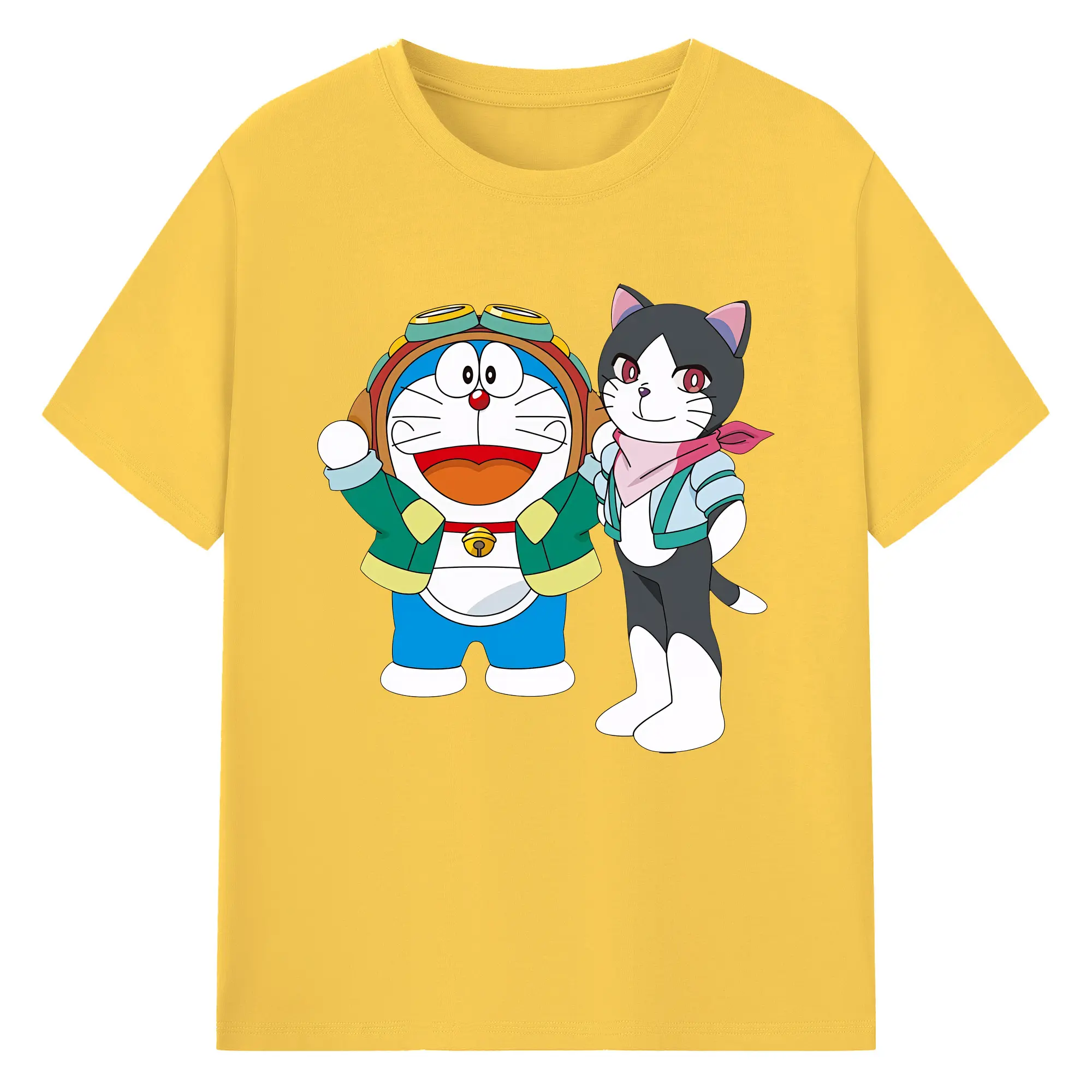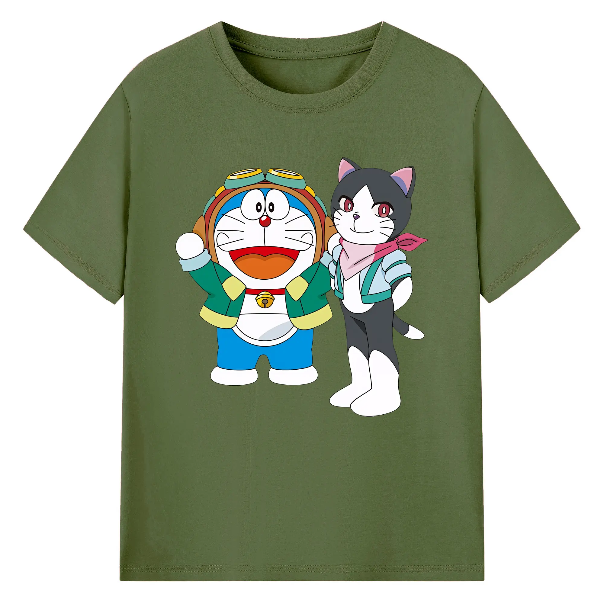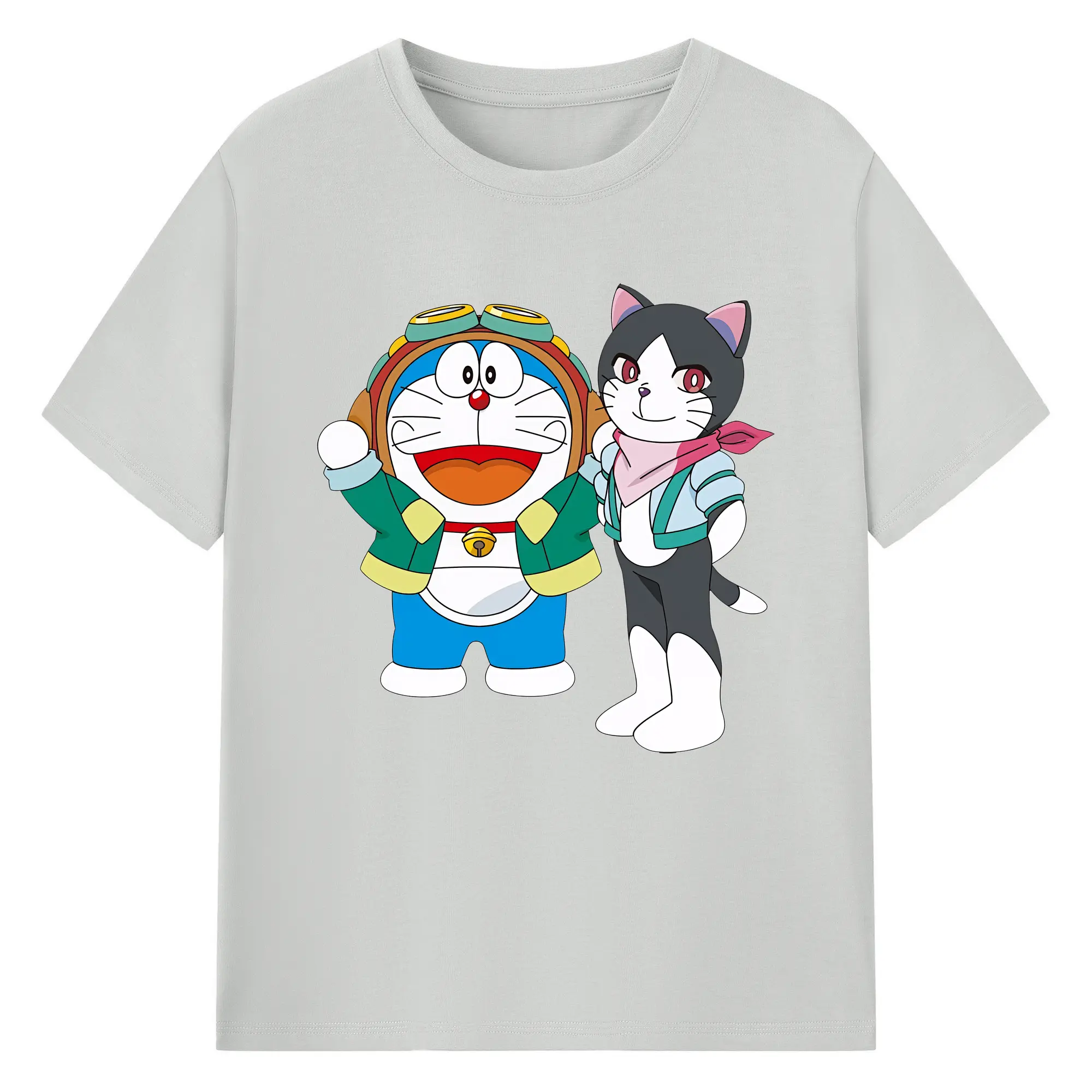 初音ミク&猫 カワイイちびキャラ オリジナルデザイン - 綿100% 半袖Tシャツ ・ フロントプリント ・ 快適 通気性 ・ 日常使い 散歩 スポーツ用