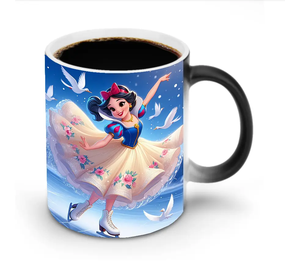 プリンセス 白雪姫 アイススケート エレガント オリジナルデザイン - 変色マグカップ ・ セラミック ・ 熱転写プリント ・ 耐久性 高品質 ・ ギフト・自宅用 コーヒー お茶