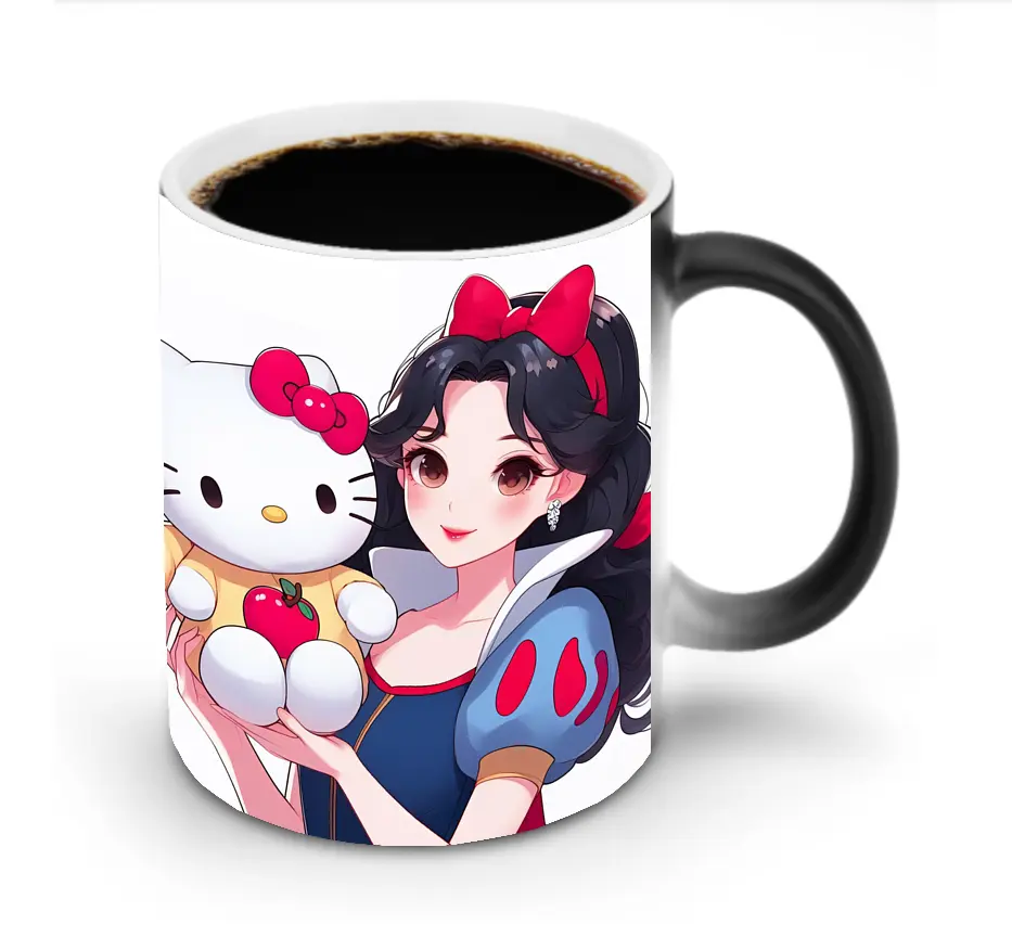 プリンセス 白雪姫&ハローキティ コラボ かわいい オリジナルデザイン - 変色マグカップ ・ セラミック ・ 熱転写プリント ・ 耐久性 高品質 ・ ギフト・自宅用 コーヒー お茶