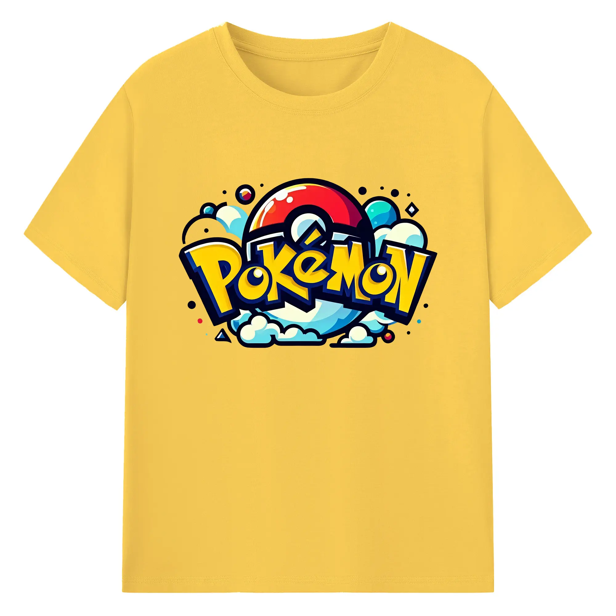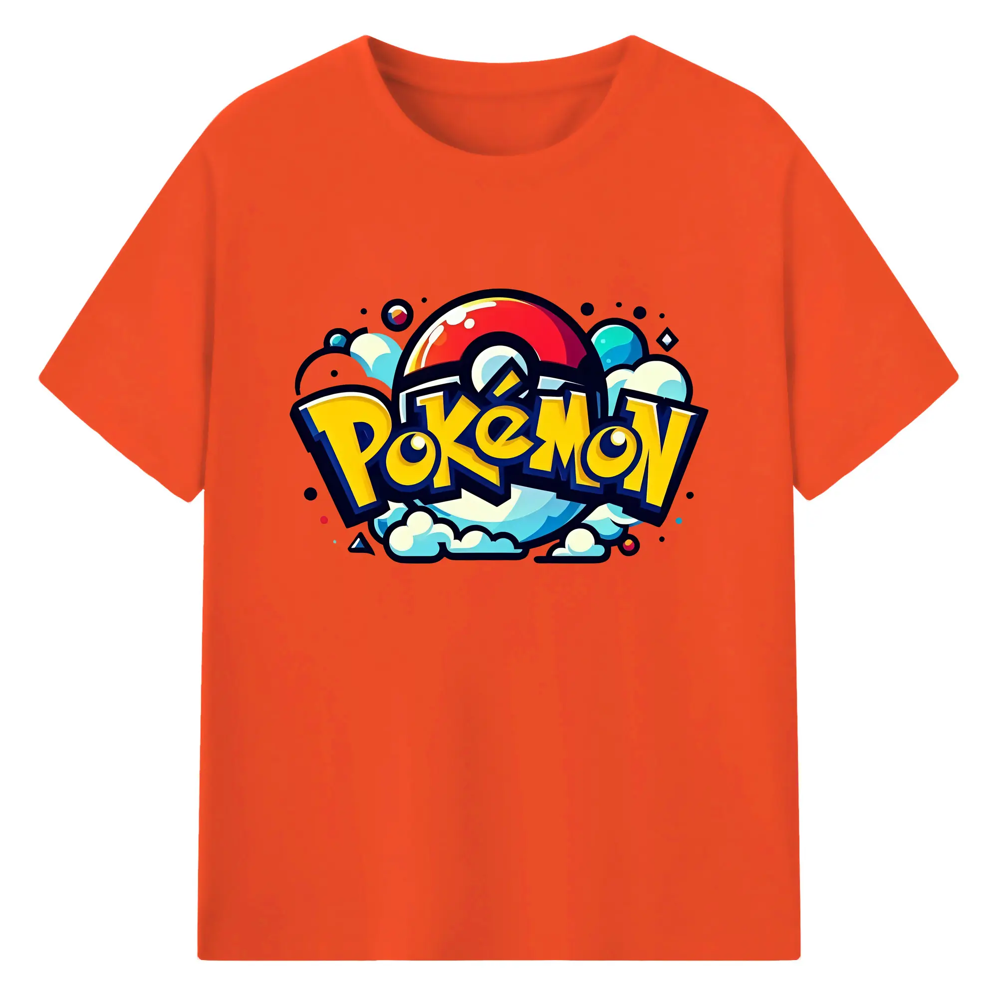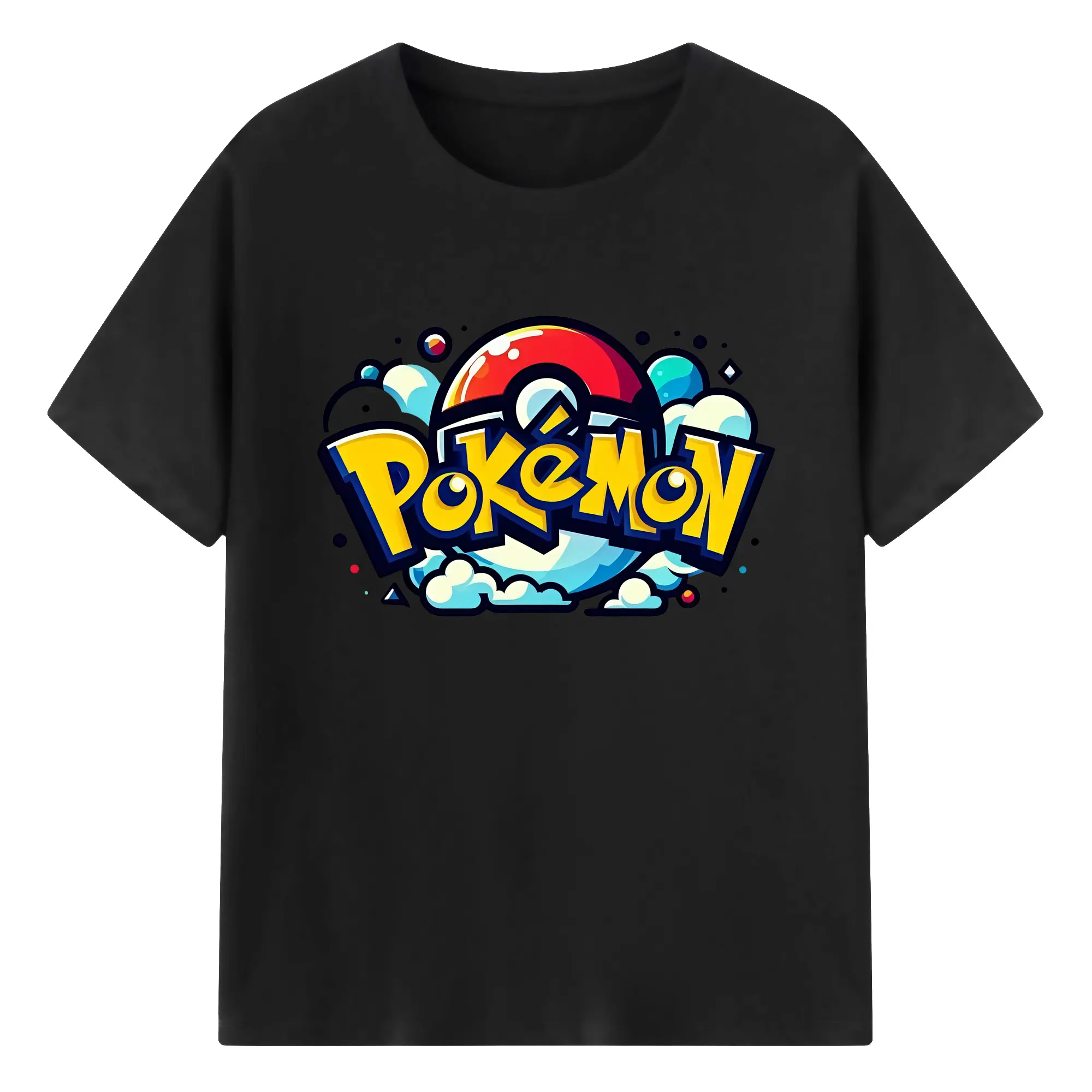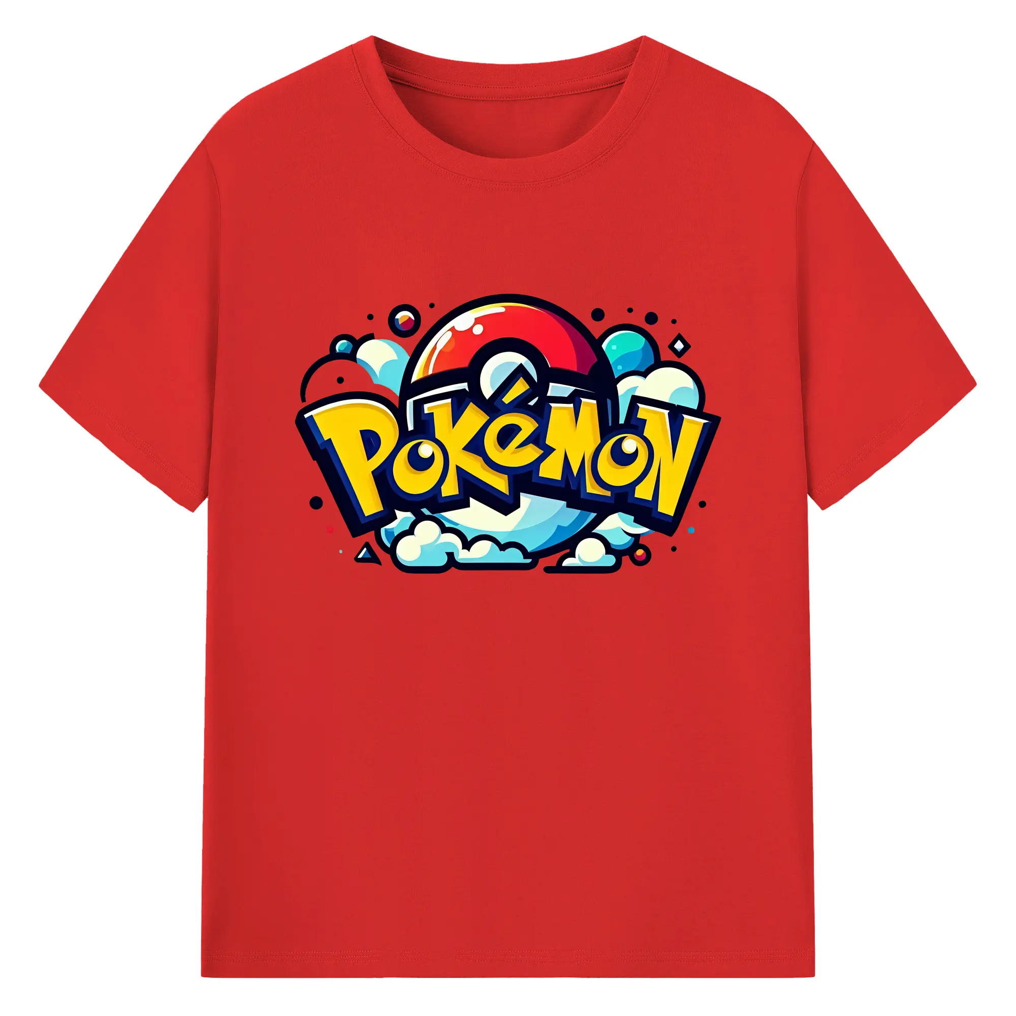 ポケモン 全キャラクター集合 モンスターボール 賑やか オリジナルデザイン - 綿100% 半袖Tシャツ ・ フロントプリント ・ 快適 通気性 ・ 日常使い 散歩 スポーツ用