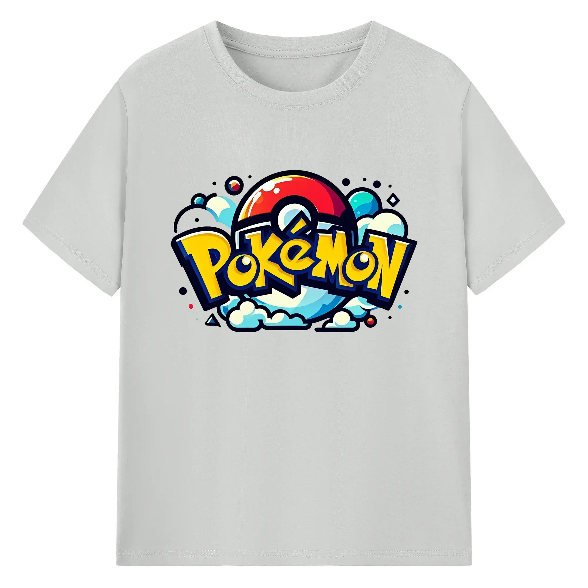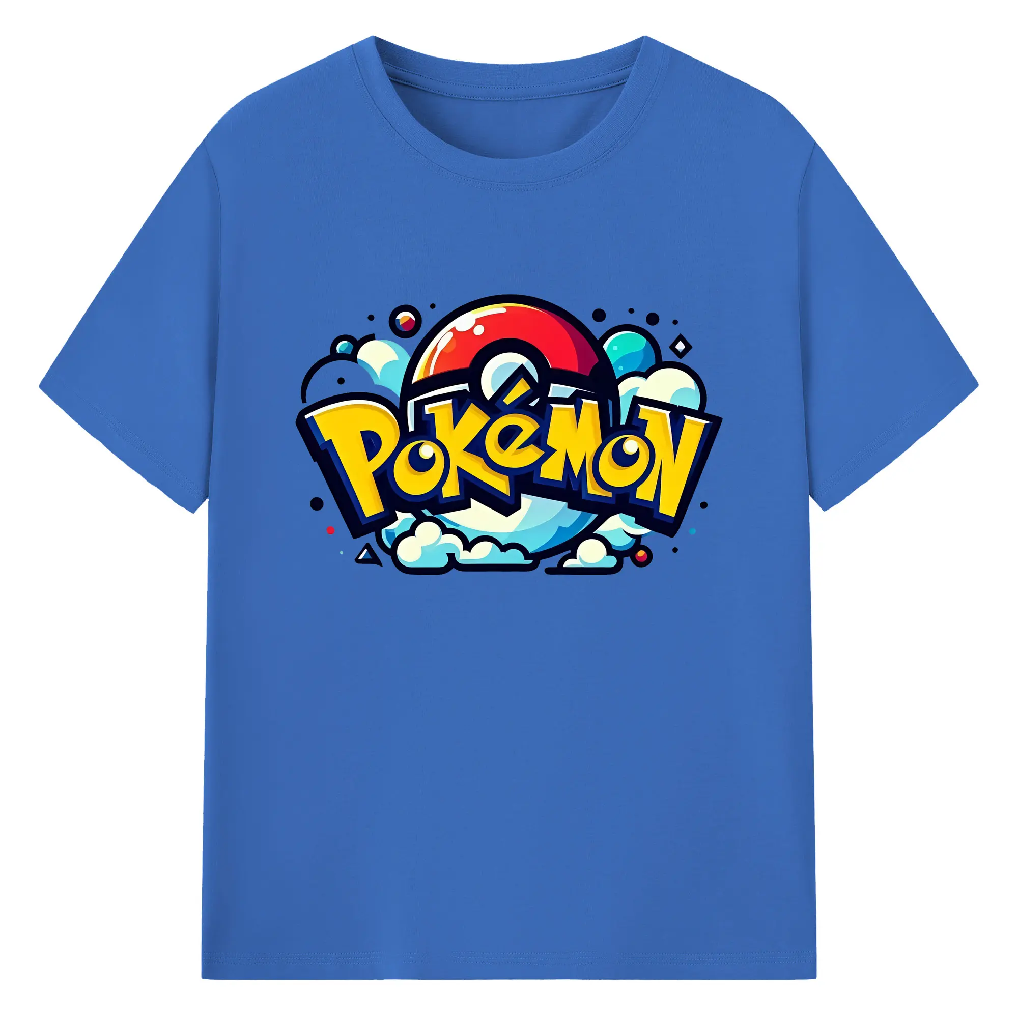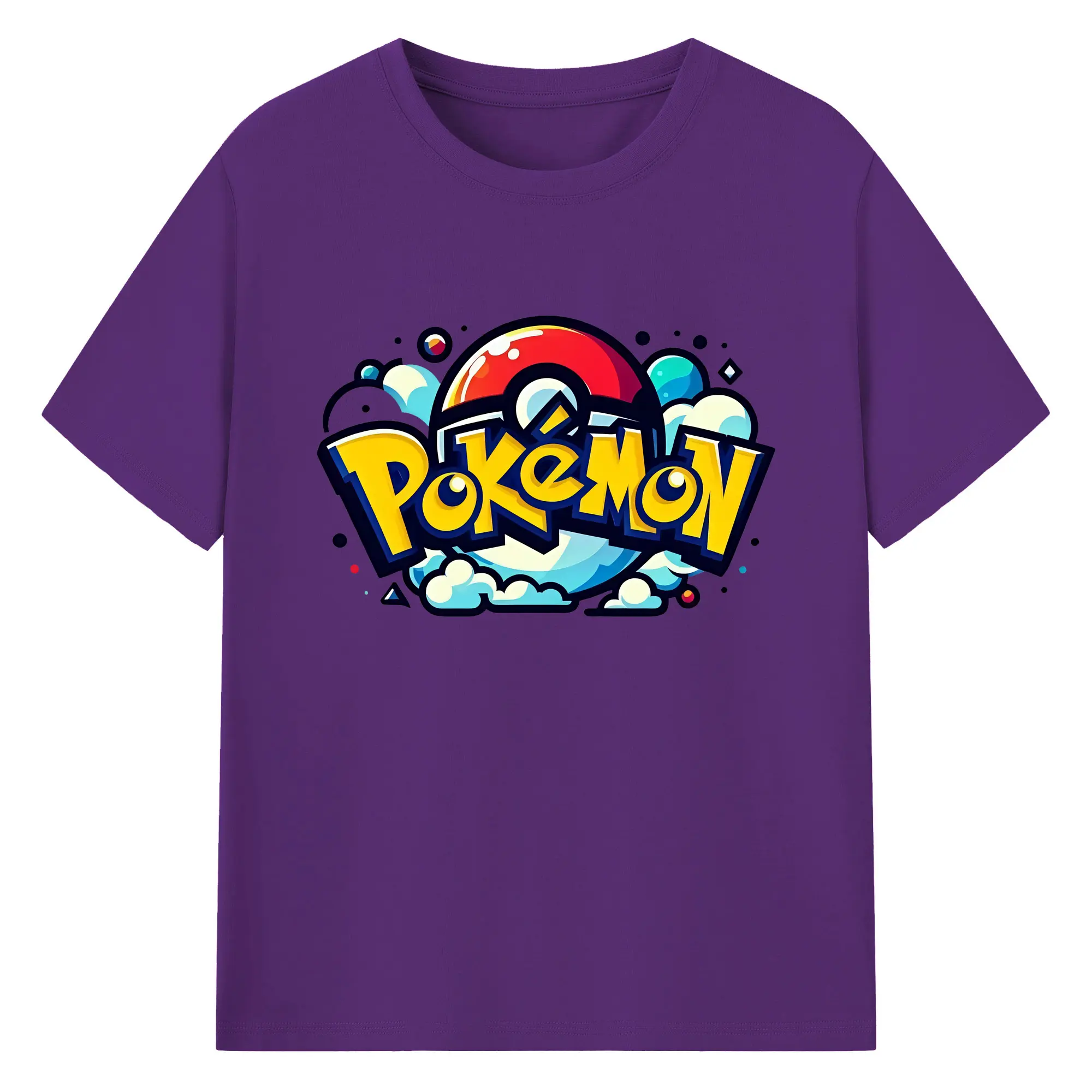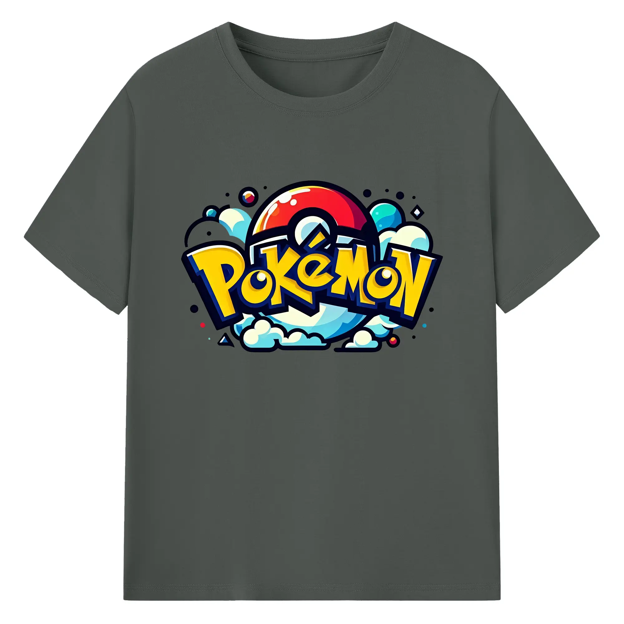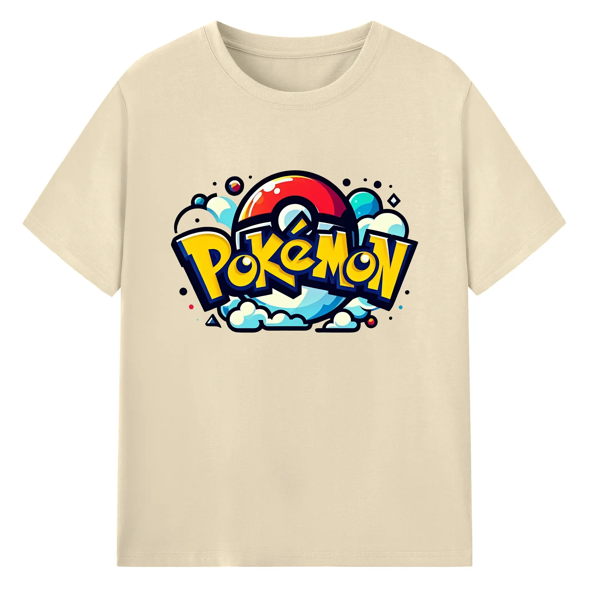 ポケモン 全キャラクター集合 モンスターボール 賑やか オリジナルデザイン - 綿100% 半袖Tシャツ ・ フロントプリント ・ 快適 通気性 ・ 日常使い 散歩 スポーツ用