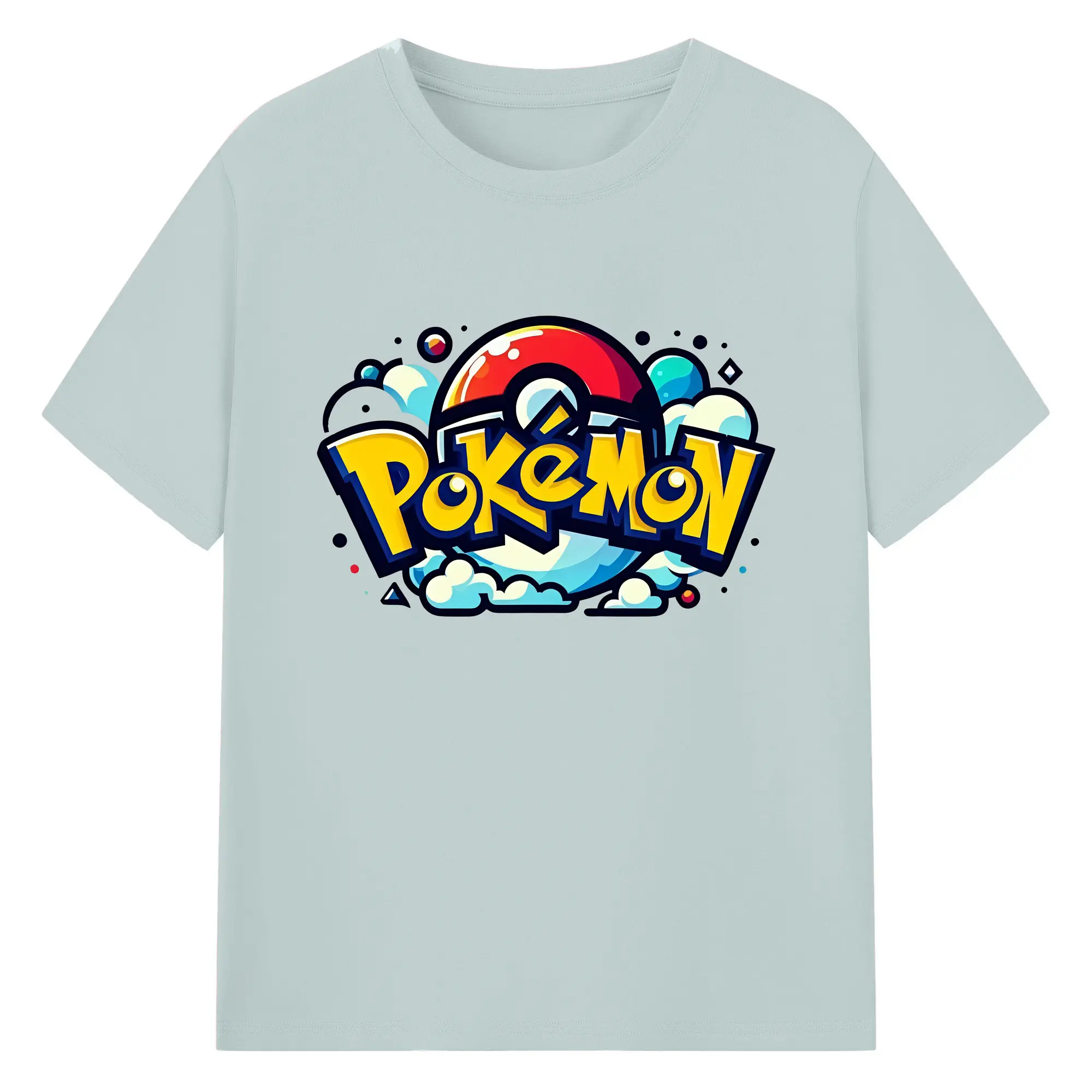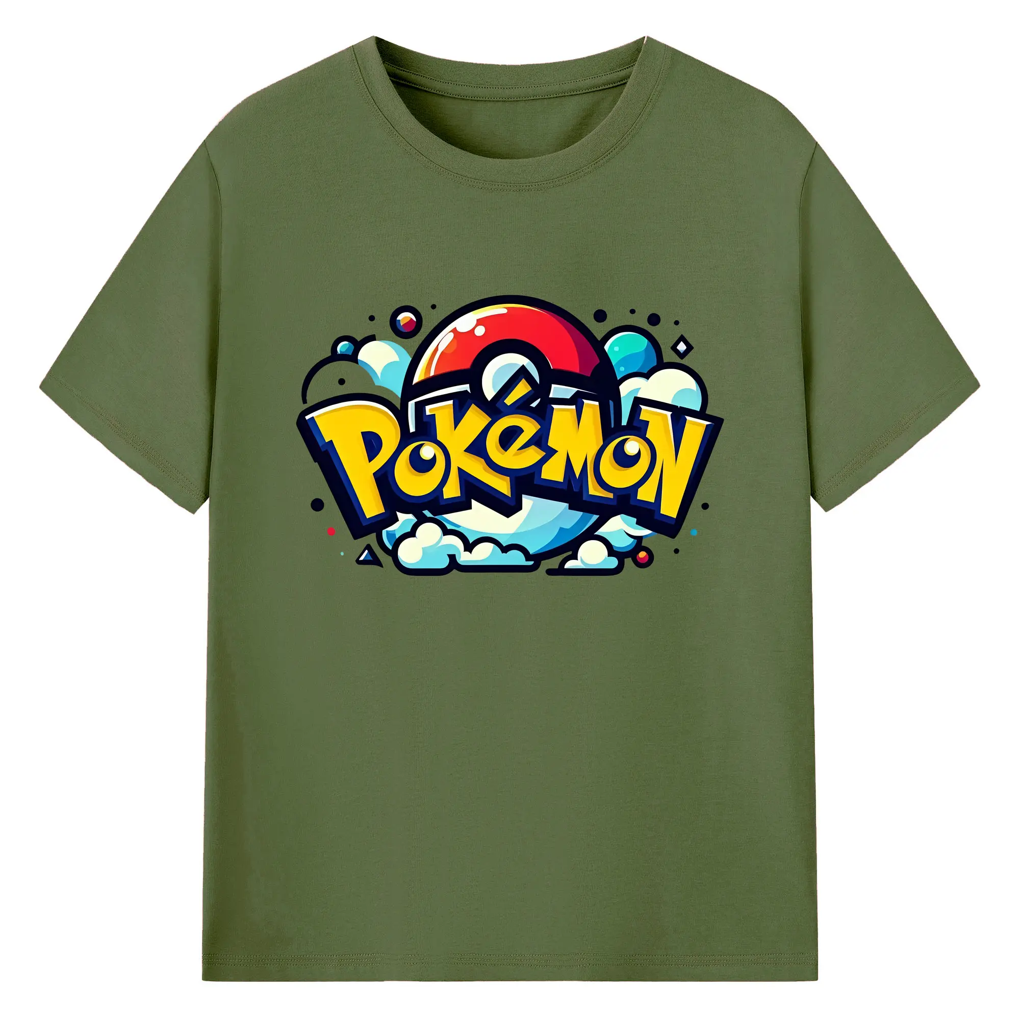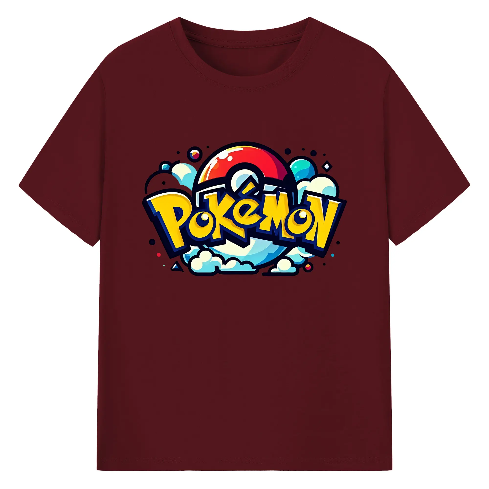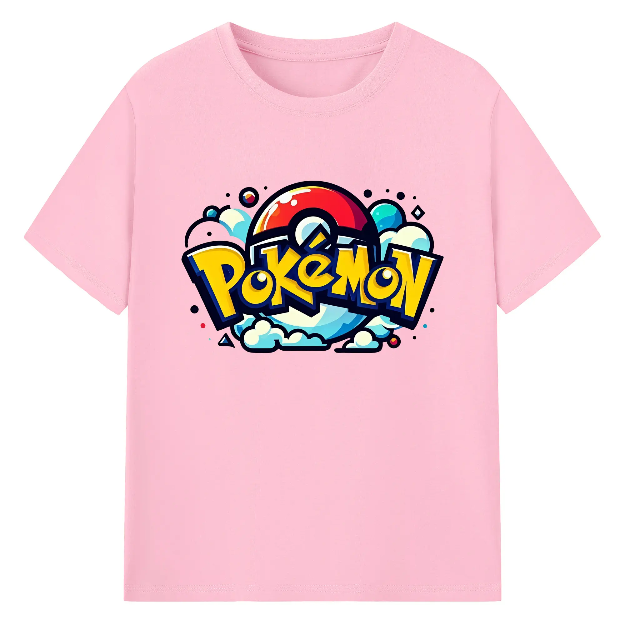 ポケモン 全キャラクター集合 モンスターボール 賑やか オリジナルデザイン - 綿100% 半袖Tシャツ ・ フロントプリント ・ 快適 通気性 ・ 日常使い 散歩 スポーツ用