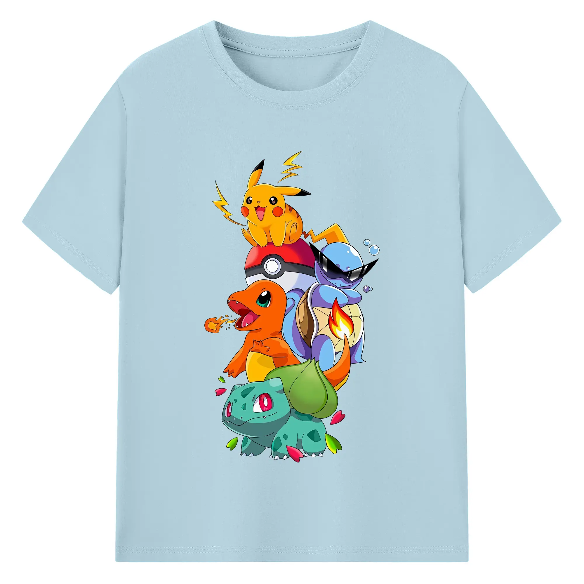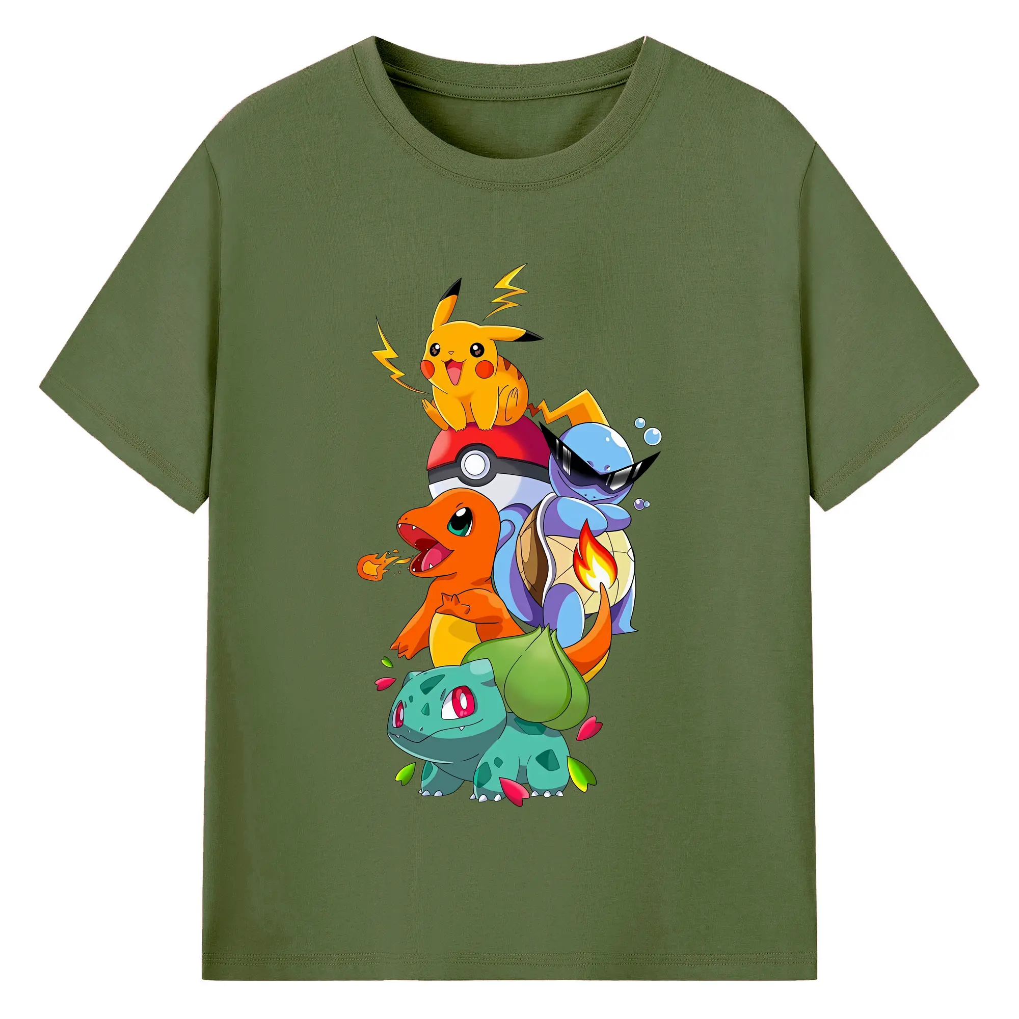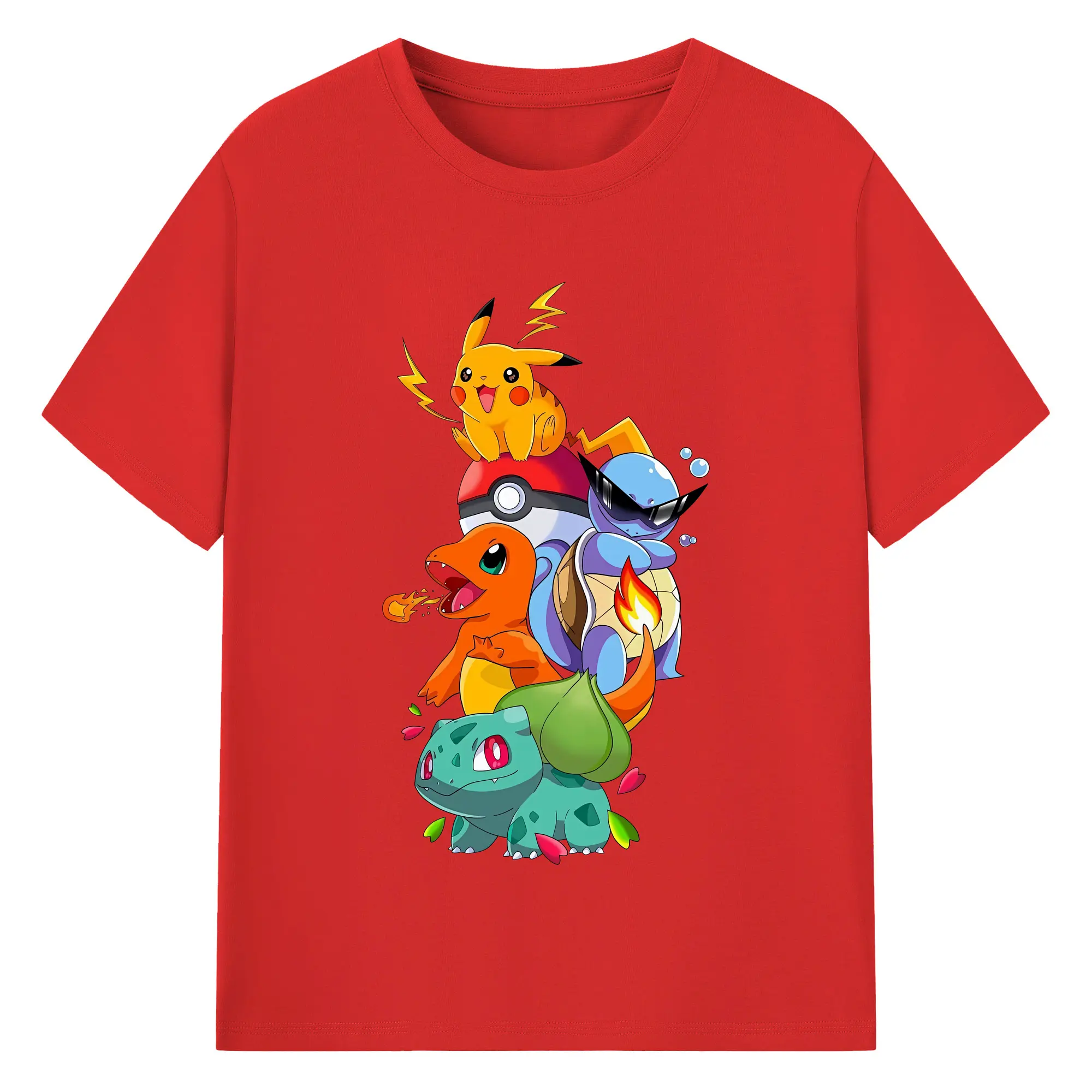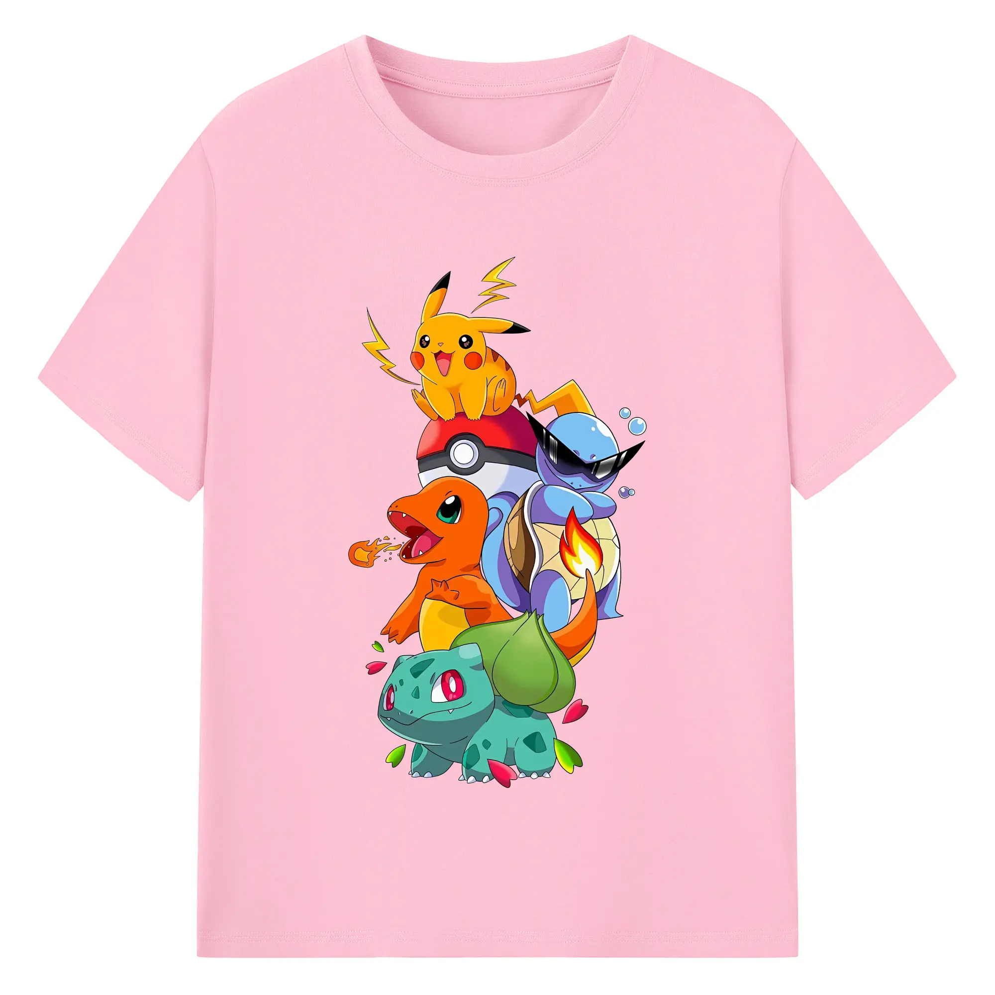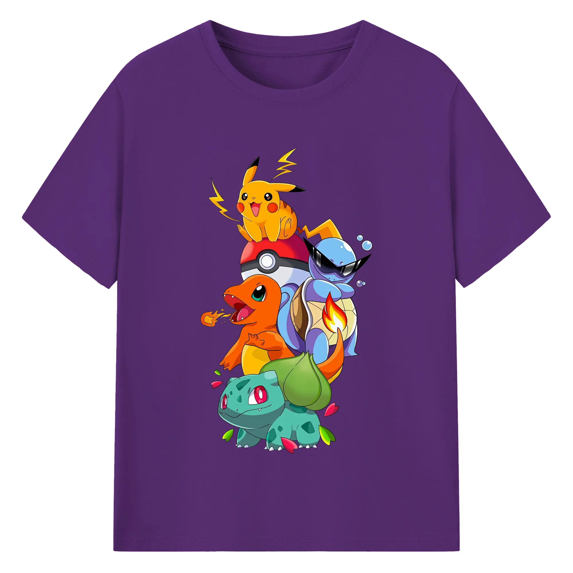 ポケモン ピカチュウ ヒトカゲ フシギダネ カラフルな仲間たち オリジナルデザイン - 綿100% 半袖Tシャツ ・ フロントプリント ・ 快適 通気性 ・ 日常使い 散歩 スポーツ用