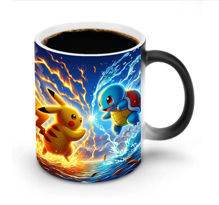 ポケモン ゼニガメ・ピカチュウ バトル 激しい オリジナルデザイン - 変色マグカップ ・ セラミック ・ 熱転写プリント ・ 耐久性 高品質 ・ ギフト・自宅用 コーヒー お茶