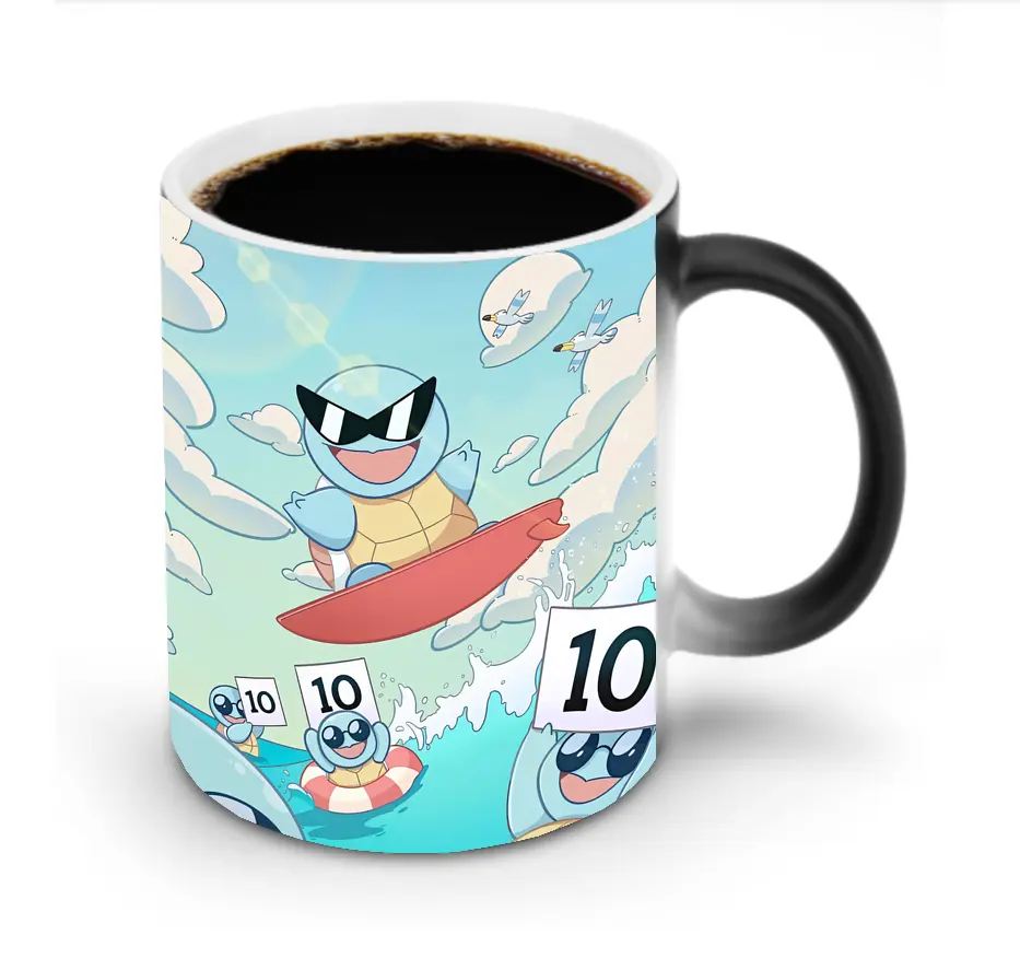 ポケモン ゼニガメ サーフィン クール オリジナルデザイン - 変色マグカップ ・ セラミック ・ 熱転写プリント ・ 耐久性 高品質 ・ ギフト・自宅用 コーヒー お茶