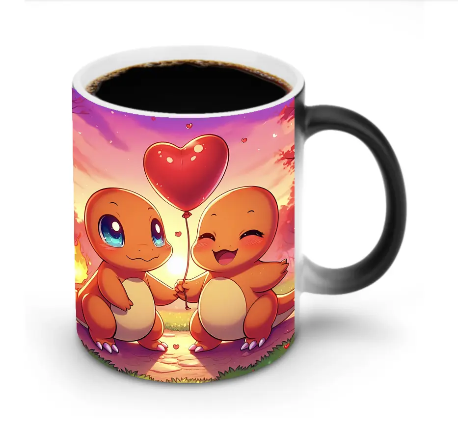ポケモン ヒトカゲ ハート風船 可愛い オリジナルデザイン - 変色マグカップ ・ セラミック ・ 熱転写プリント ・ 耐久性 高品質 ・ ギフト・自宅用 コーヒー お茶