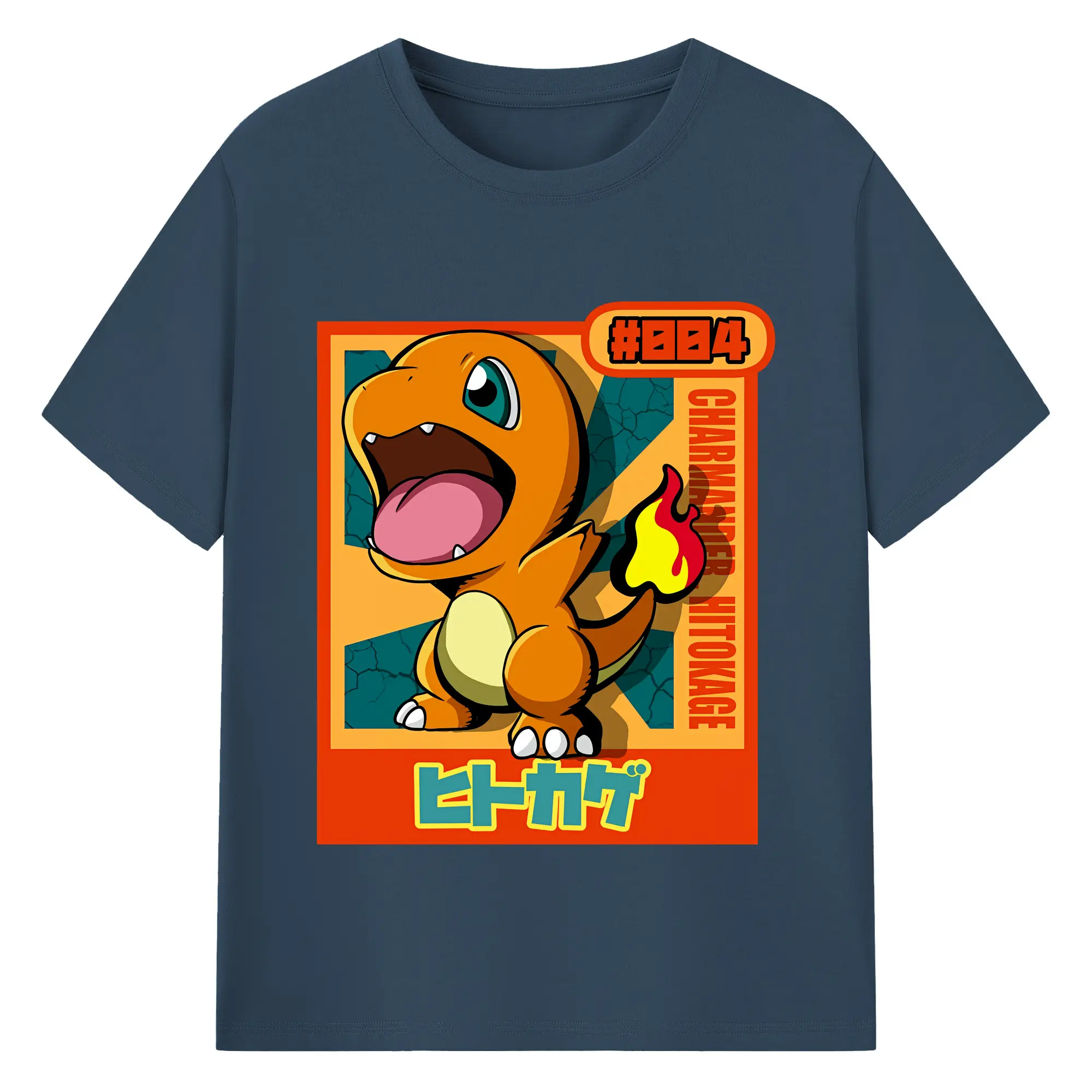 ポケモン ゼニガメチーム グラフィティ風 オリジナルデザイン - 綿100% 半袖Tシャツ ・ フロントプリント ・ 快適 通気性 ・ 日常使い 散歩 スポーツ用