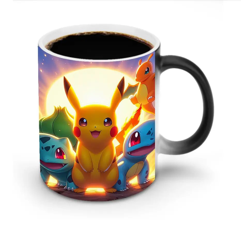 ポケモン ピカチュウ&ゼニガメ&フシギダネ クラシック オリジナルデザイン - 変色マグカップ ・ セラミック ・ 熱転写プリント ・ 耐久性 高品質 ・ ギフト・自宅用 コーヒー お茶