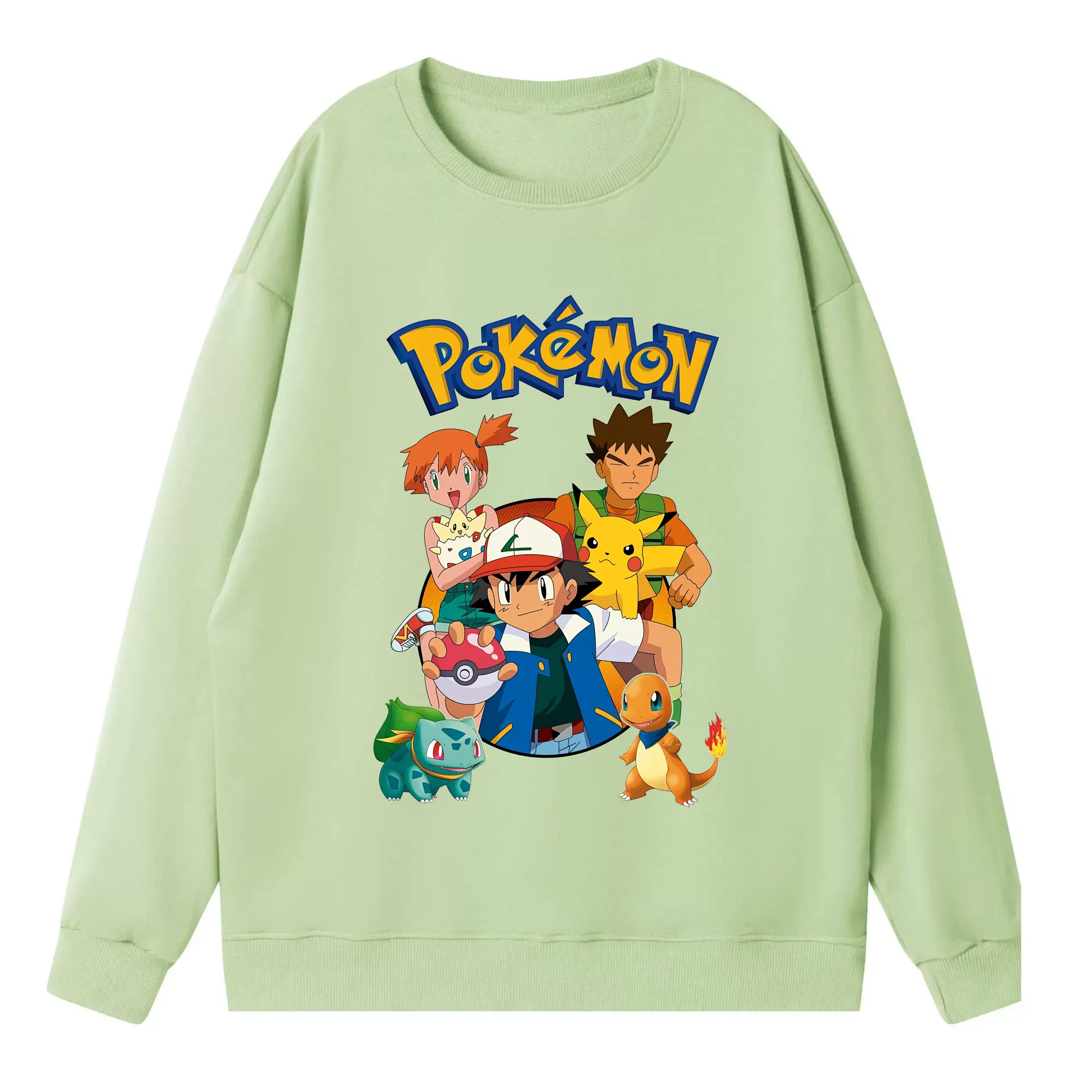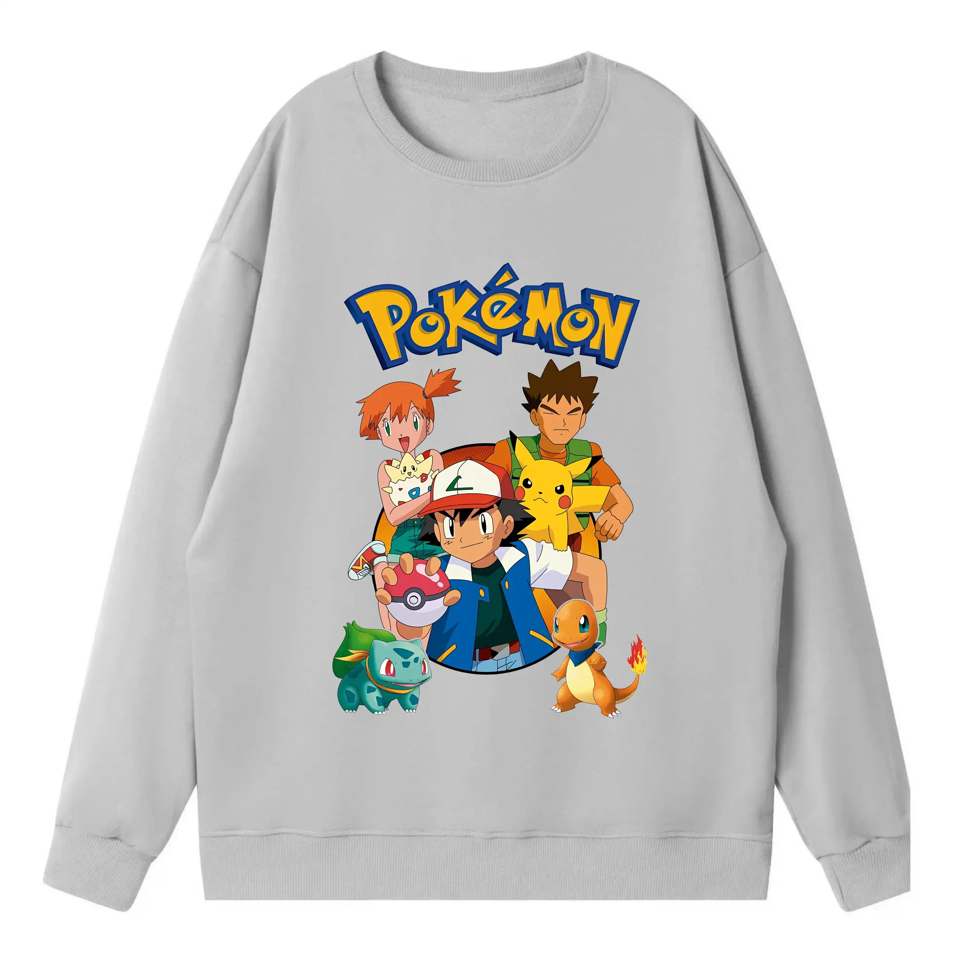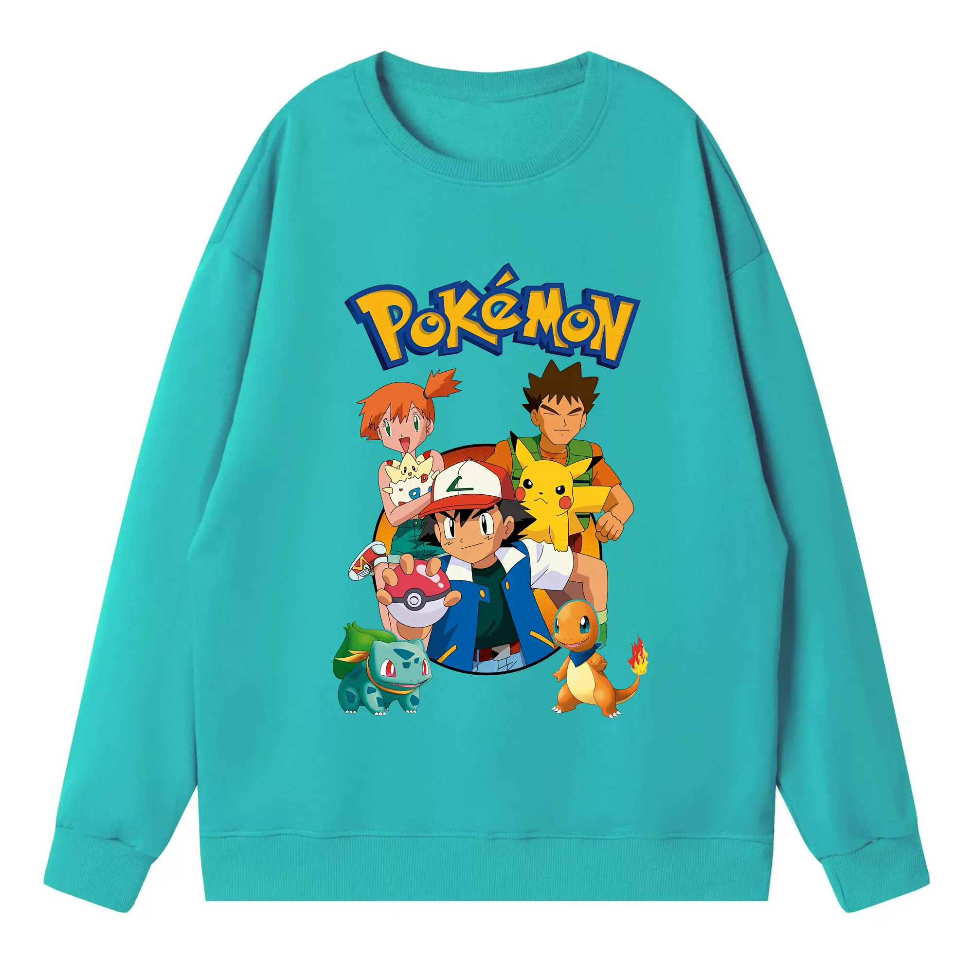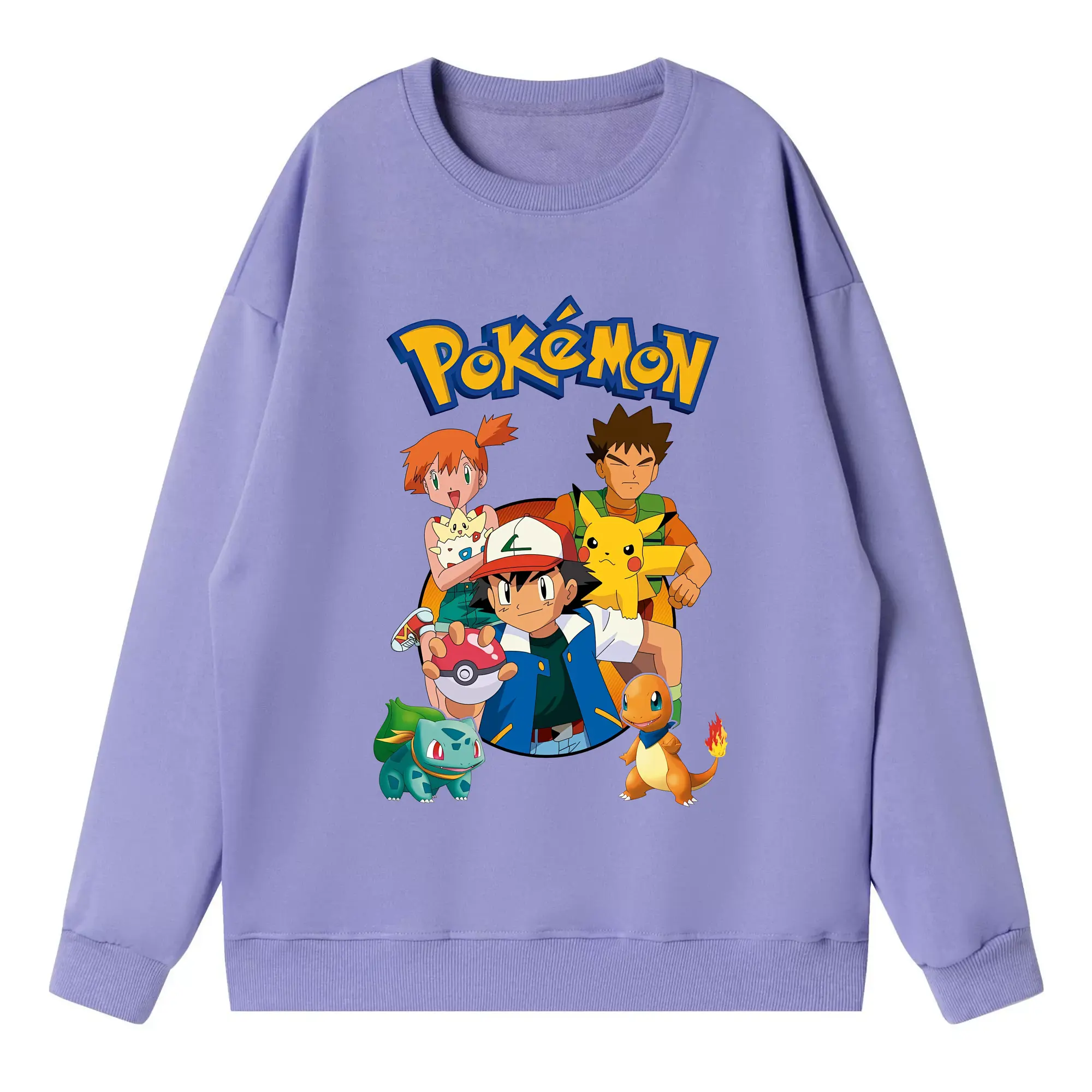 ポケモン ピカチュウ カラフル オリジナルデザイン - 薄手 クルーネック スウェット 裏毛260g · ポリエステル 春秋向け カジュアル 男女兼用 · トレーナー デイリー スポーツ 散歩に最適