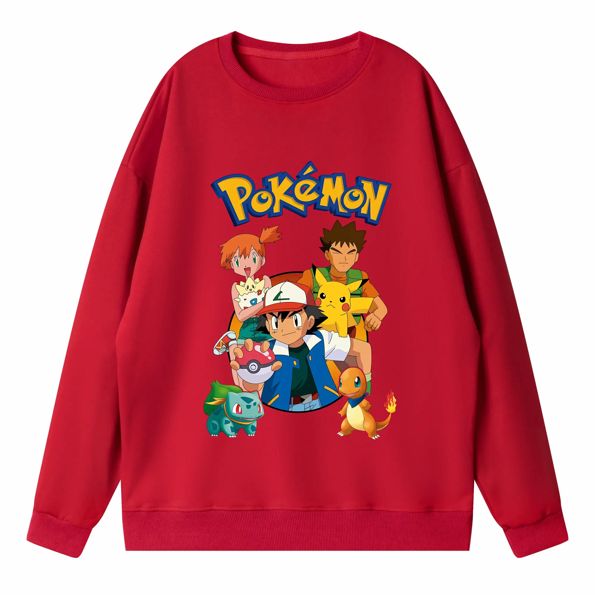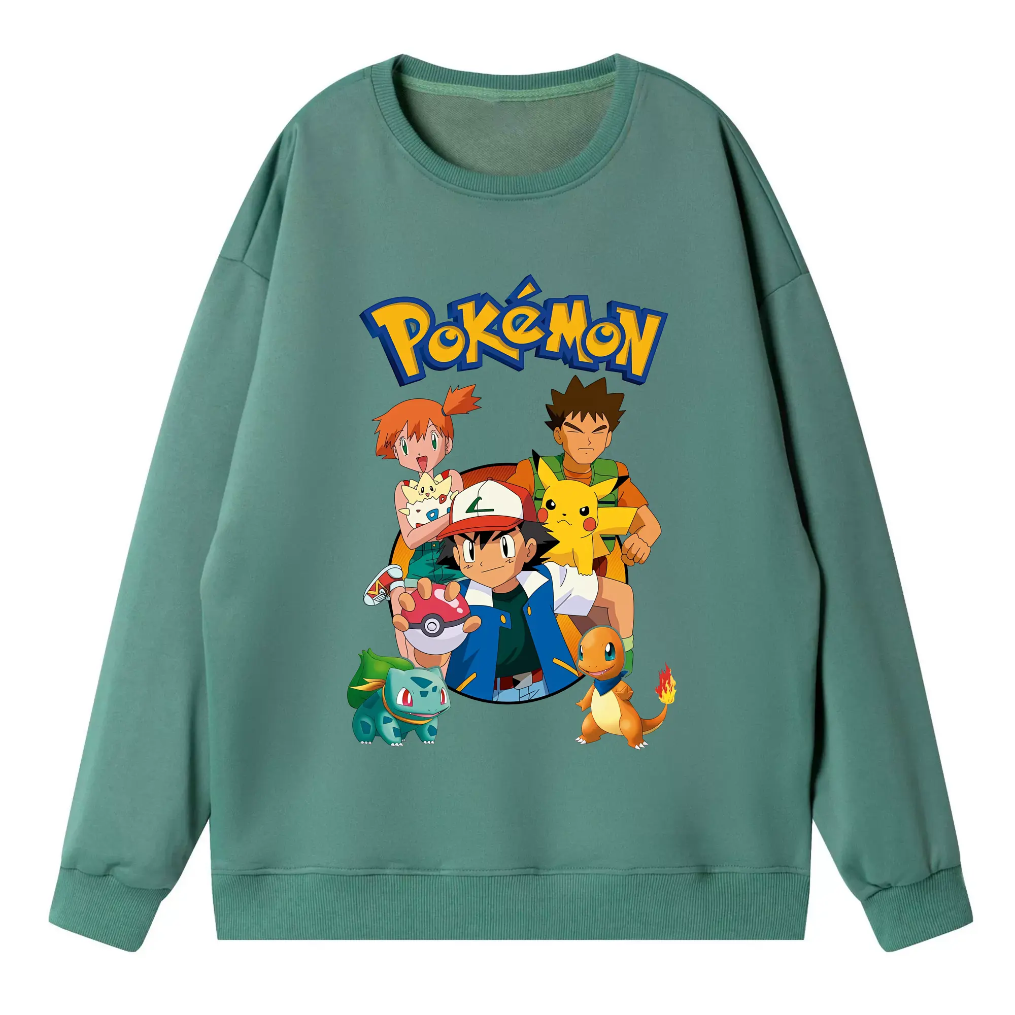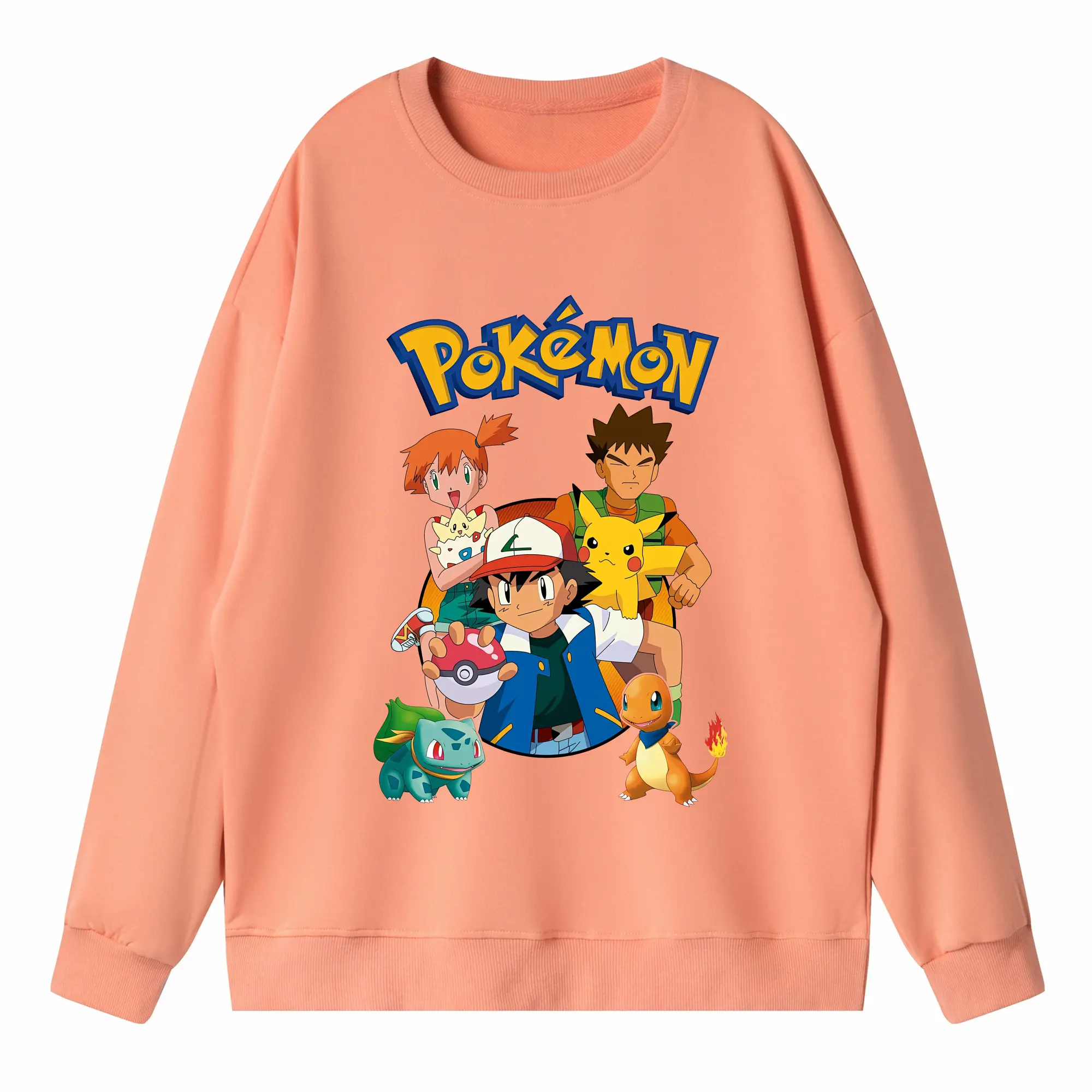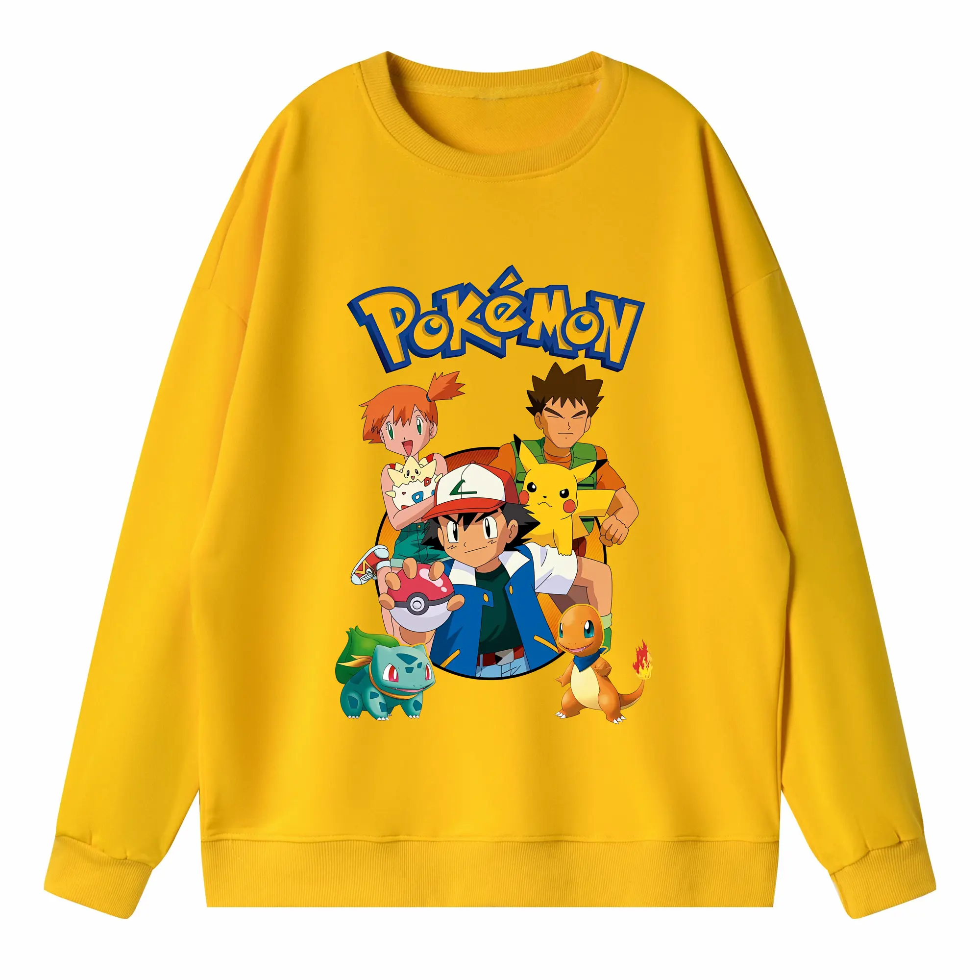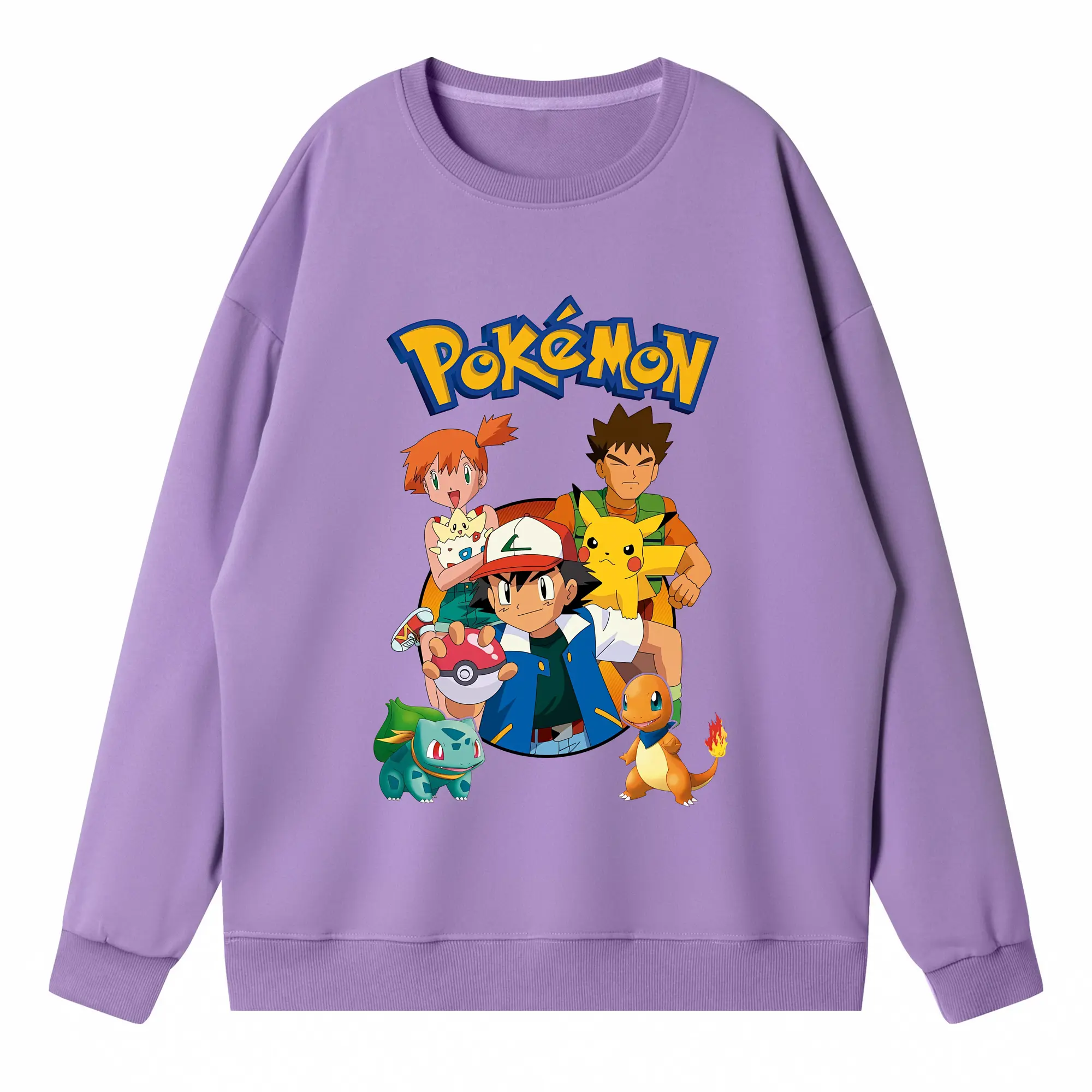 ポケモン ピカチュウ カラフル オリジナルデザイン - 薄手 クルーネック スウェット 裏毛260g · ポリエステル 春秋向け カジュアル 男女兼用 · トレーナー デイリー スポーツ 散歩に最適