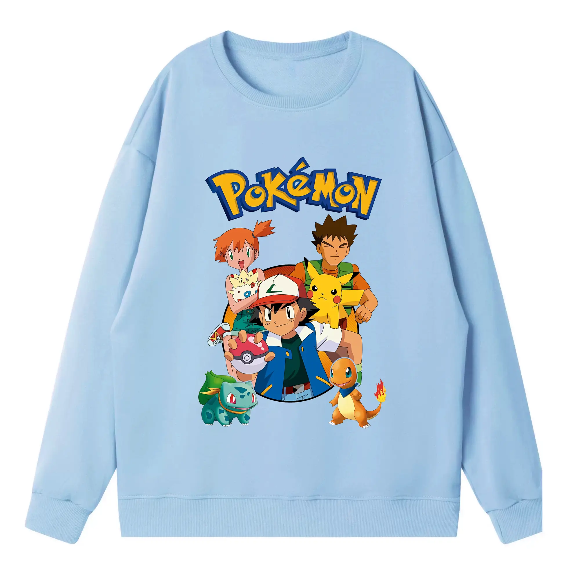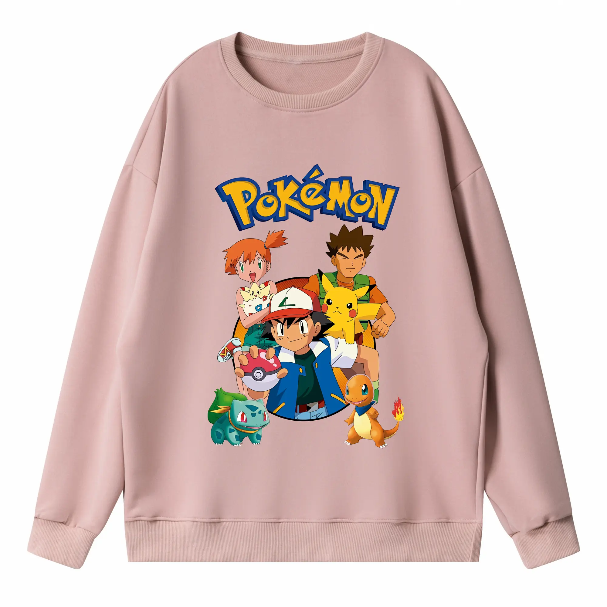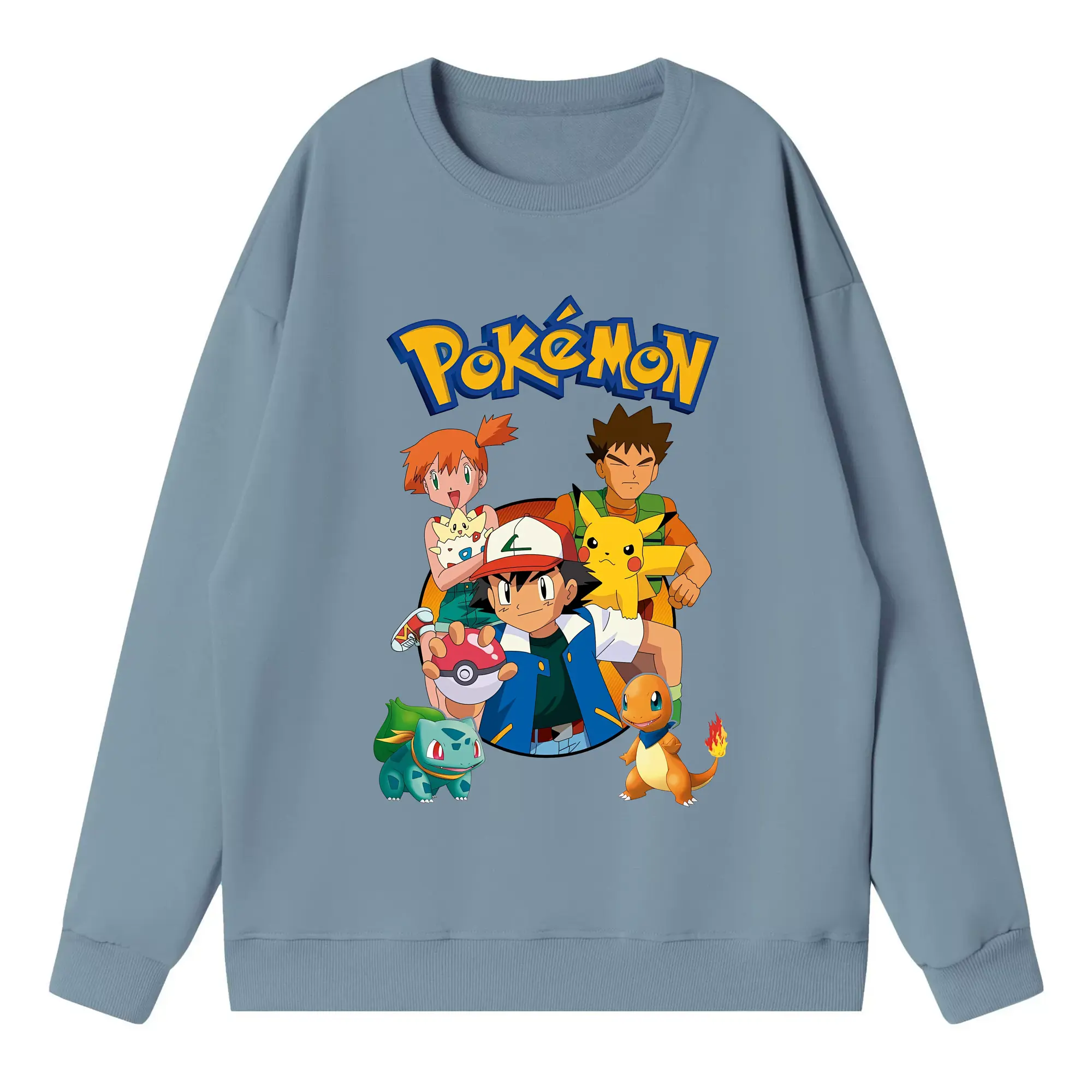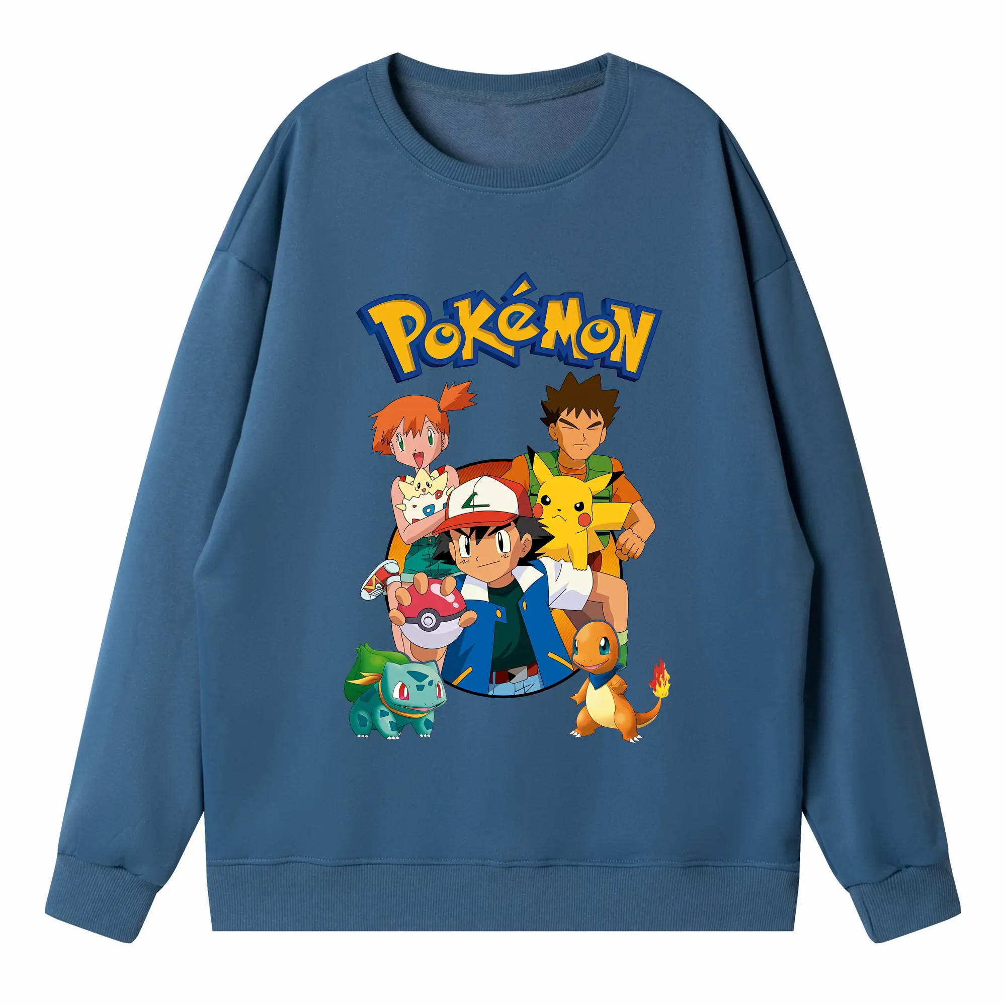 ポケモン ピカチュウ カラフル オリジナルデザイン - 薄手 クルーネック スウェット 裏毛260g · ポリエステル 春秋向け カジュアル 男女兼用 · トレーナー デイリー スポーツ 散歩に最適