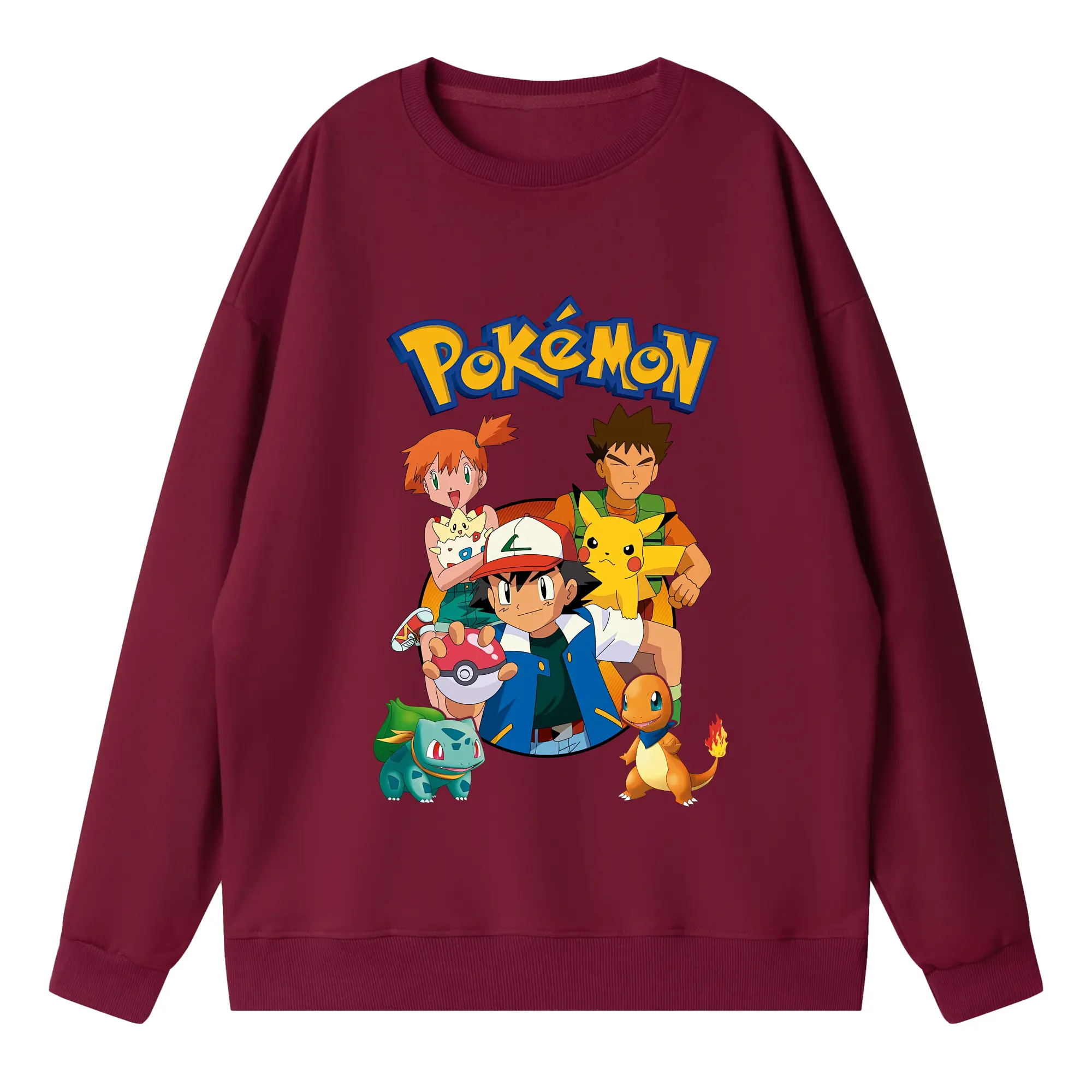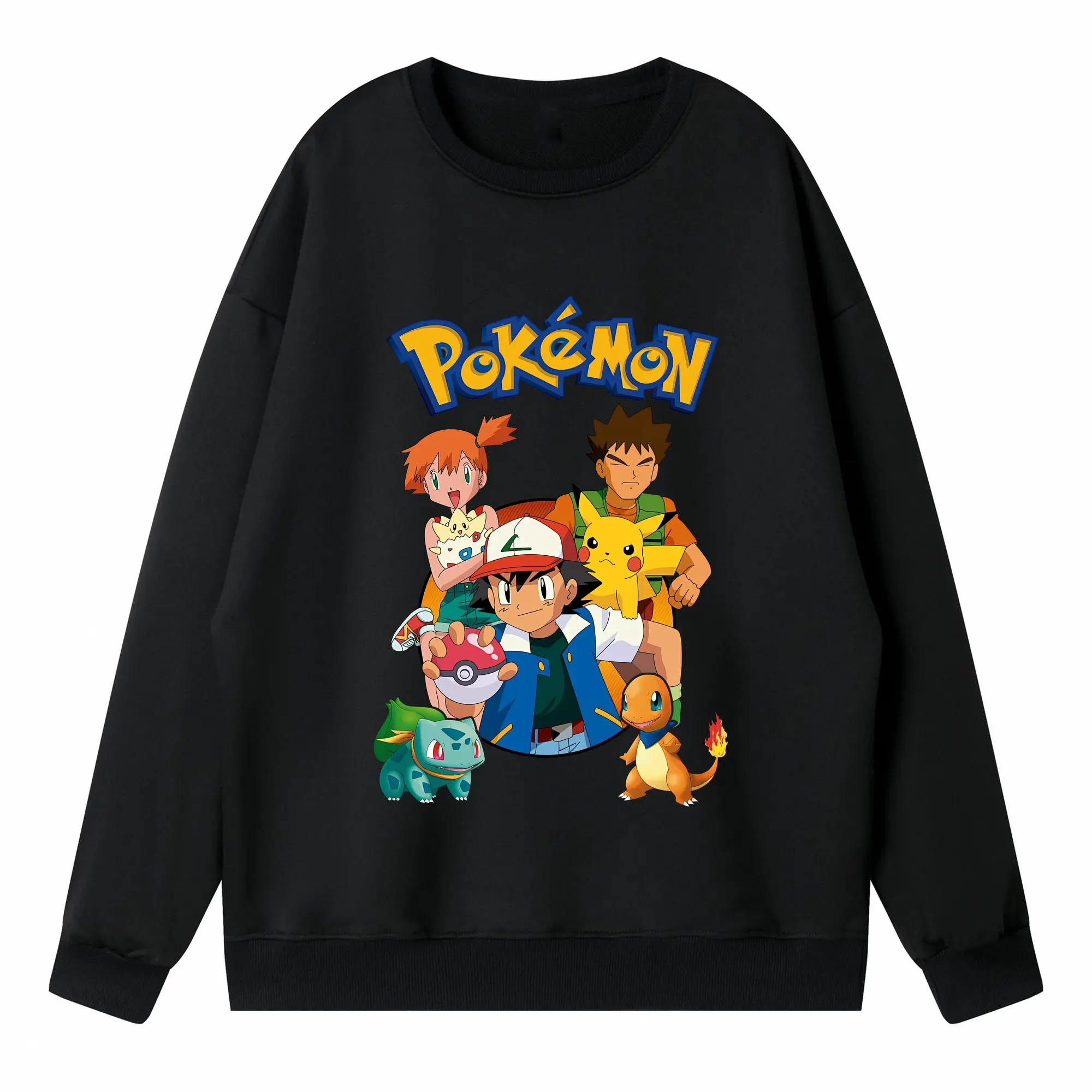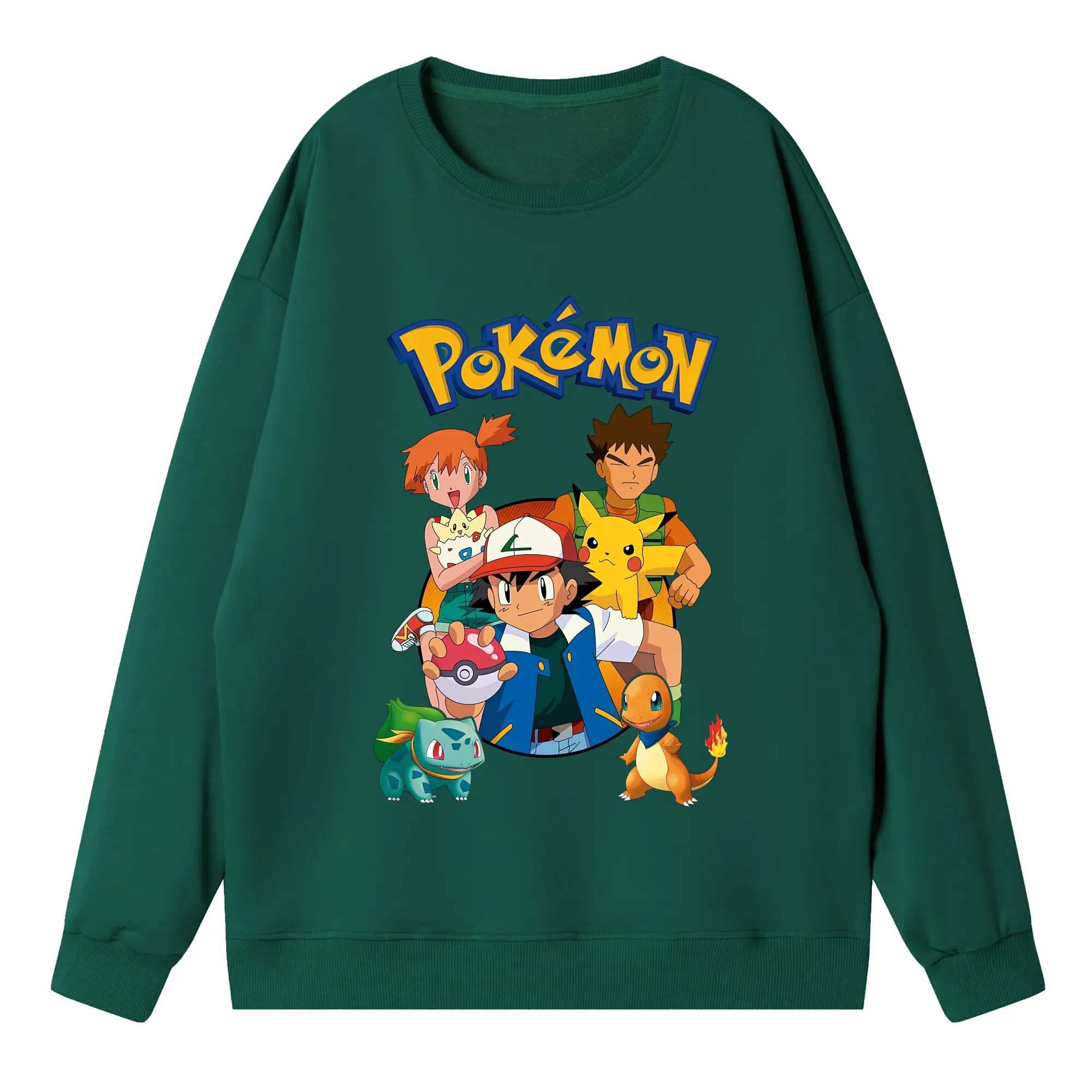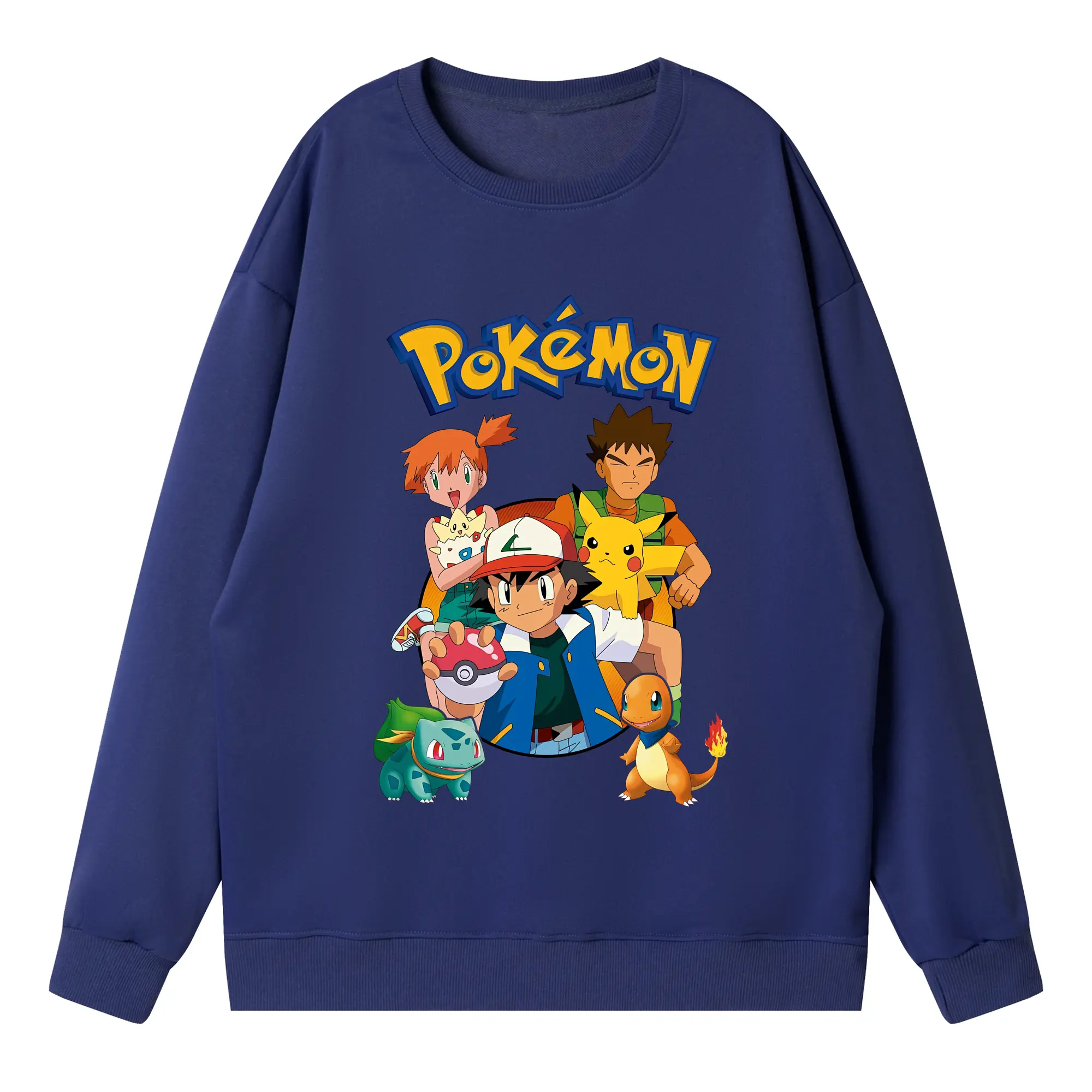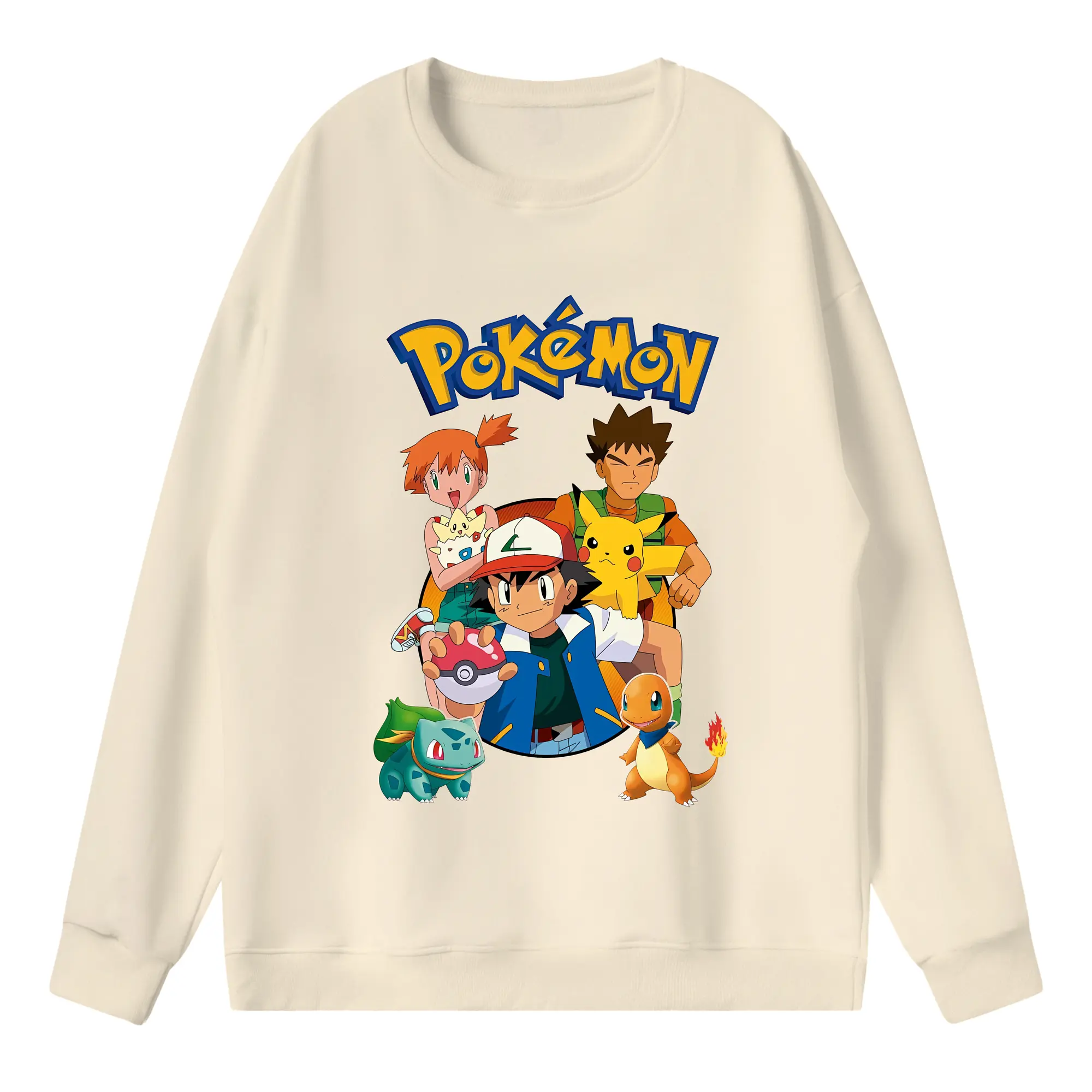 ポケモン ピカチュウ カラフル オリジナルデザイン - 薄手 クルーネック スウェット 裏毛260g · ポリエステル 春秋向け カジュアル 男女兼用 · トレーナー デイリー スポーツ 散歩に最適